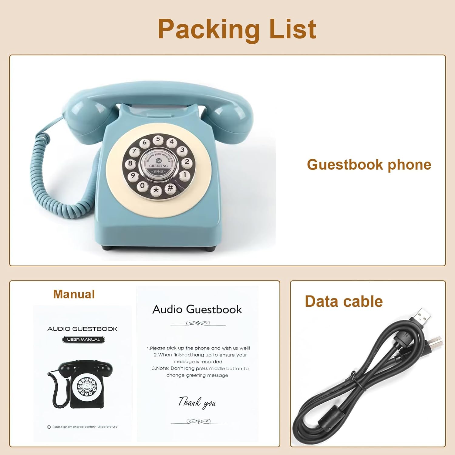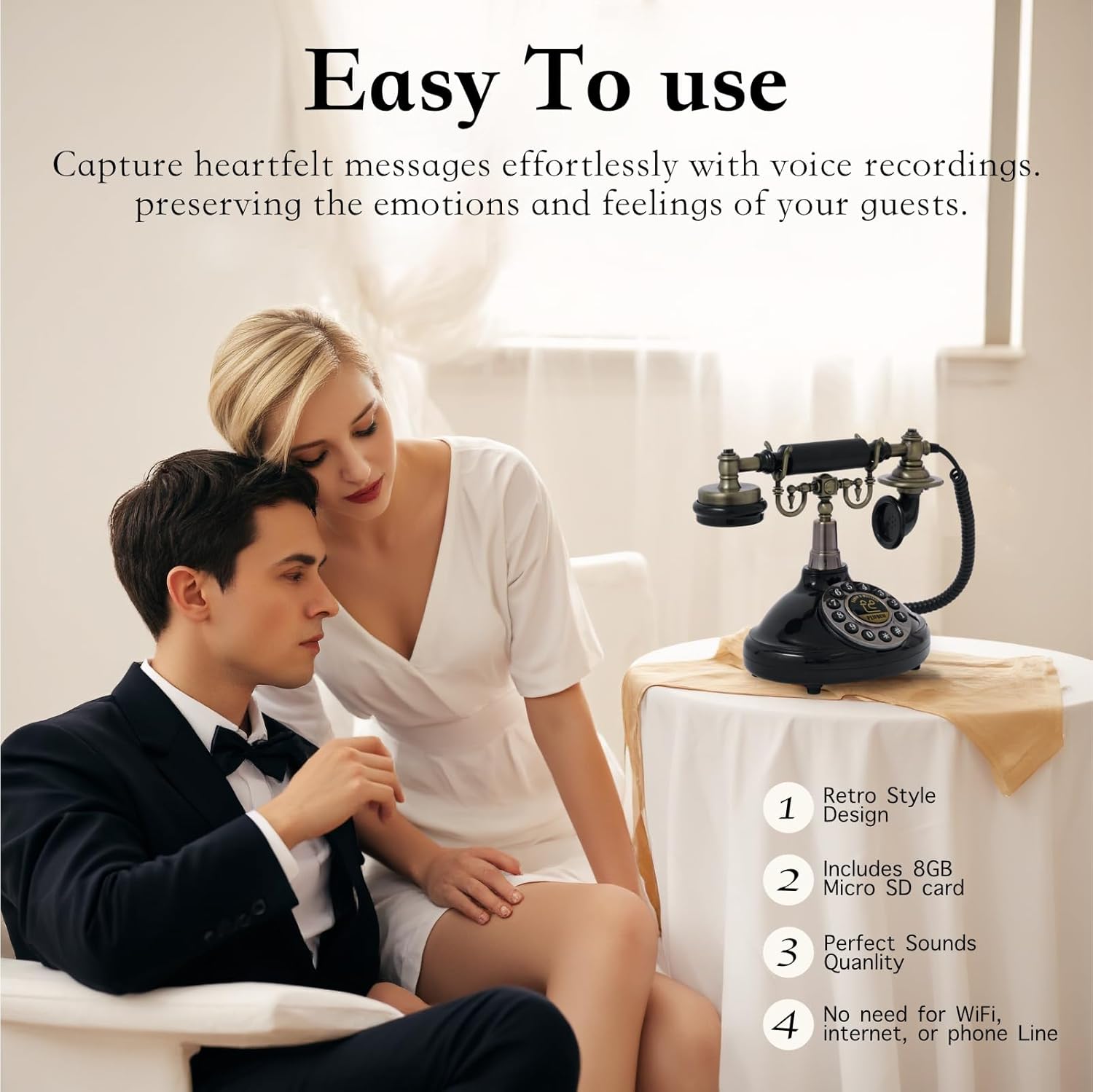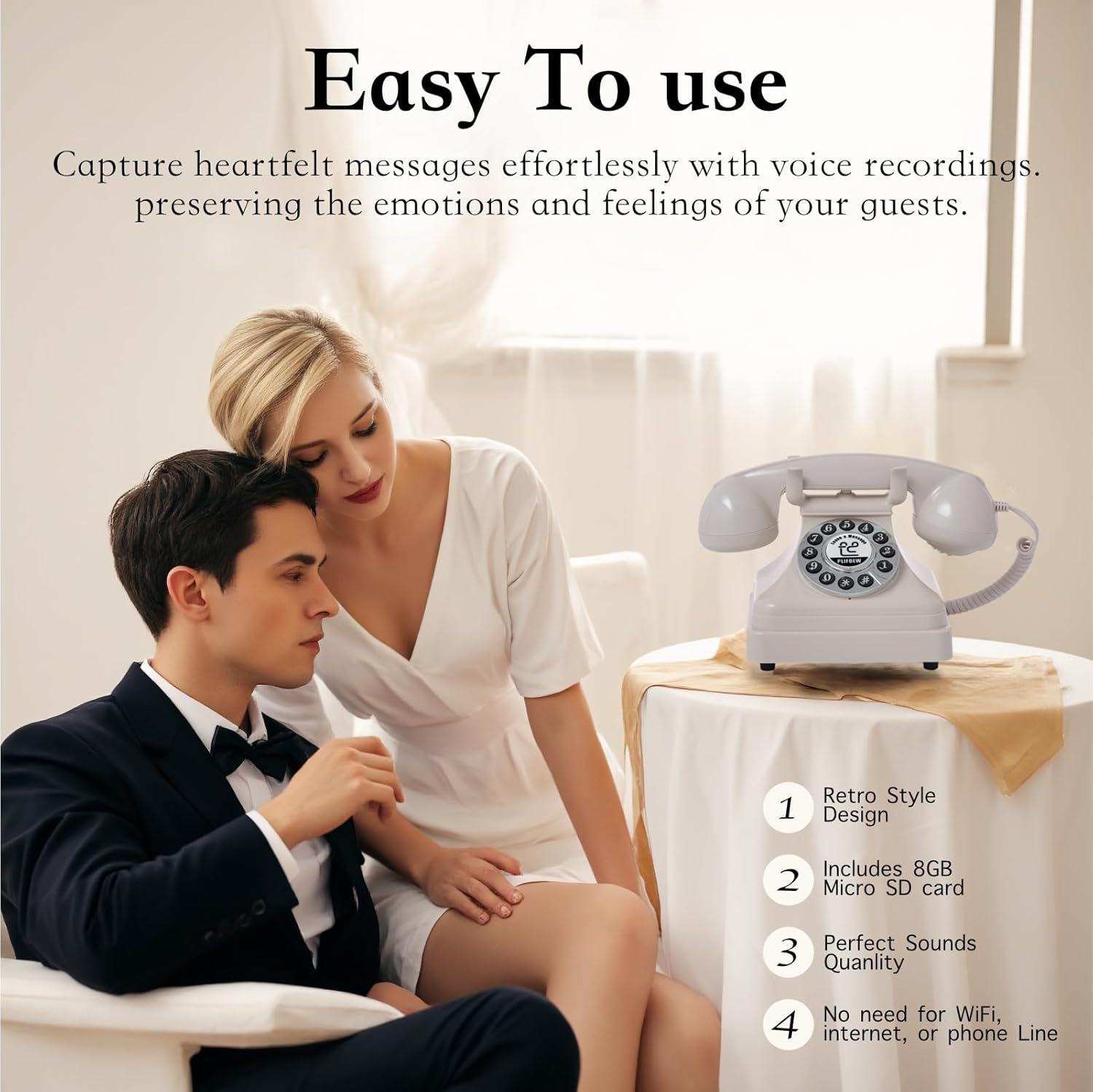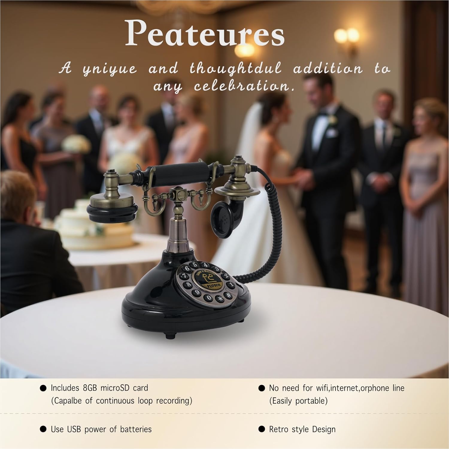 Audio Guest Book Phone Audio GuestBook for Weddings Record Customized Audio Messages Guest Book Classic Retro Style for Parties Birthdays Rentals Confessions Special Occasions (Black)