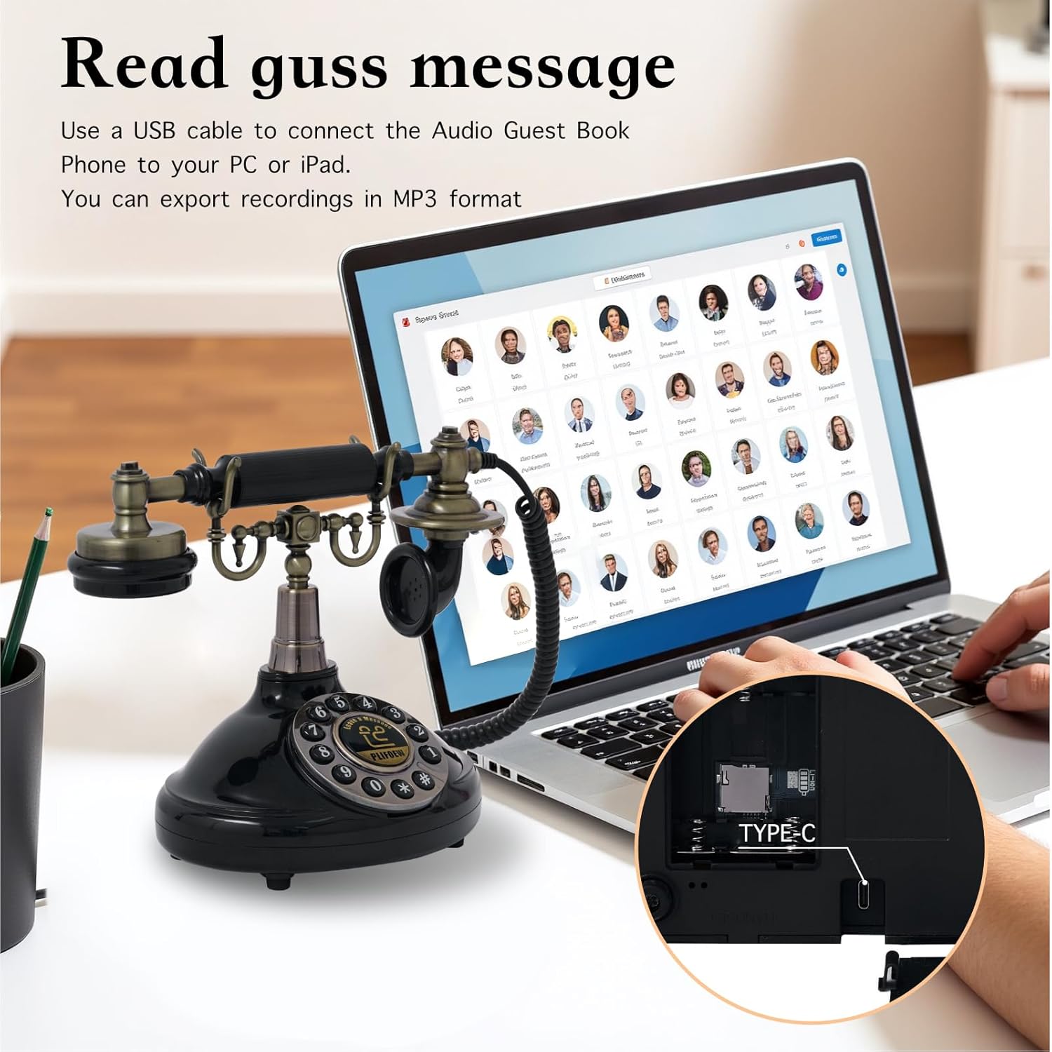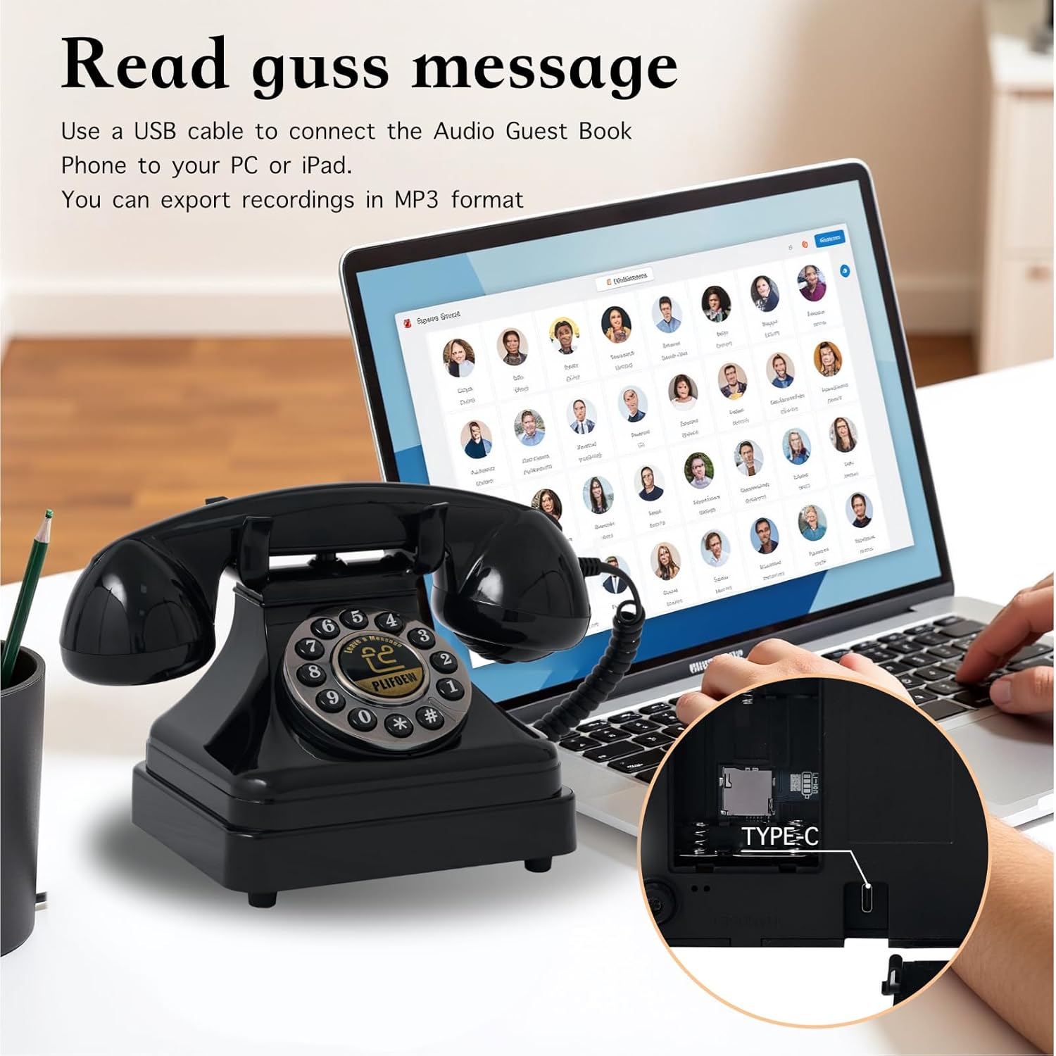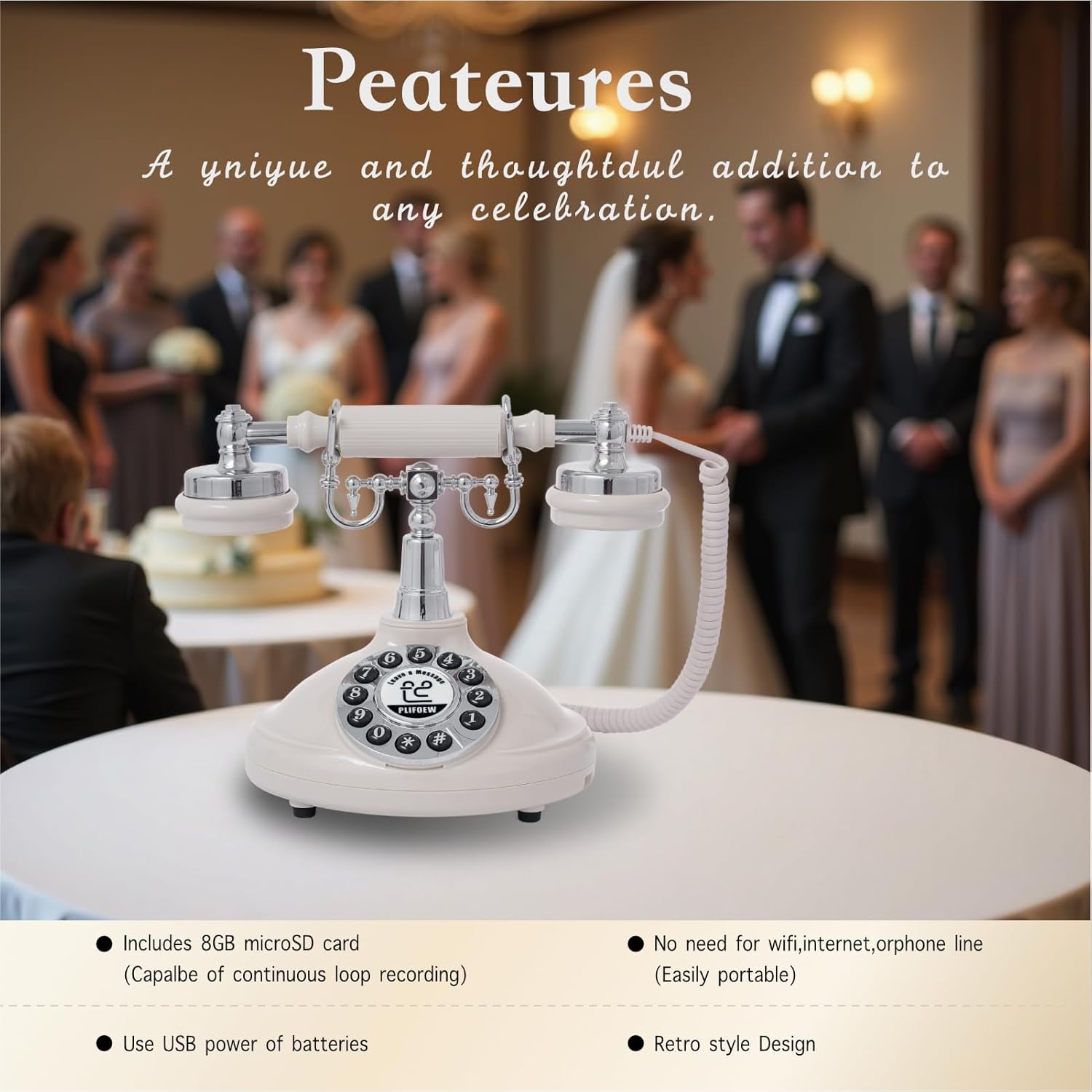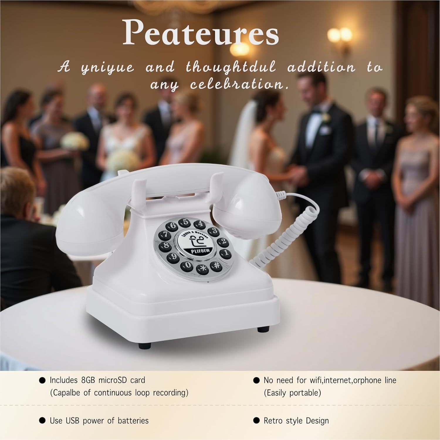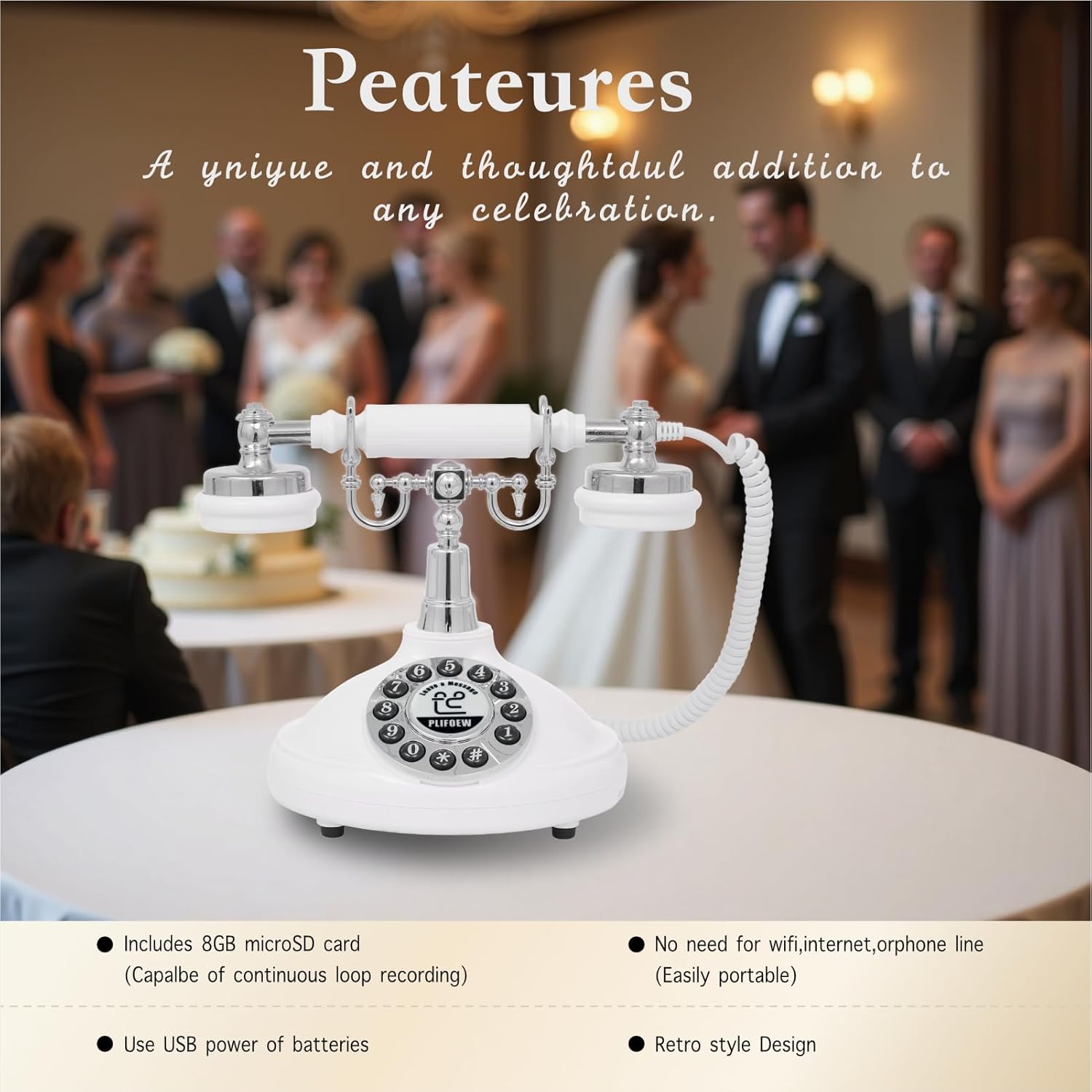 Audio Guest Book Phone Audio GuestBook for Weddings Record Customized Audio Messages Guest Book Classic Retro Style for Parties Birthdays Rentals Confessions Special Occasions (Black)