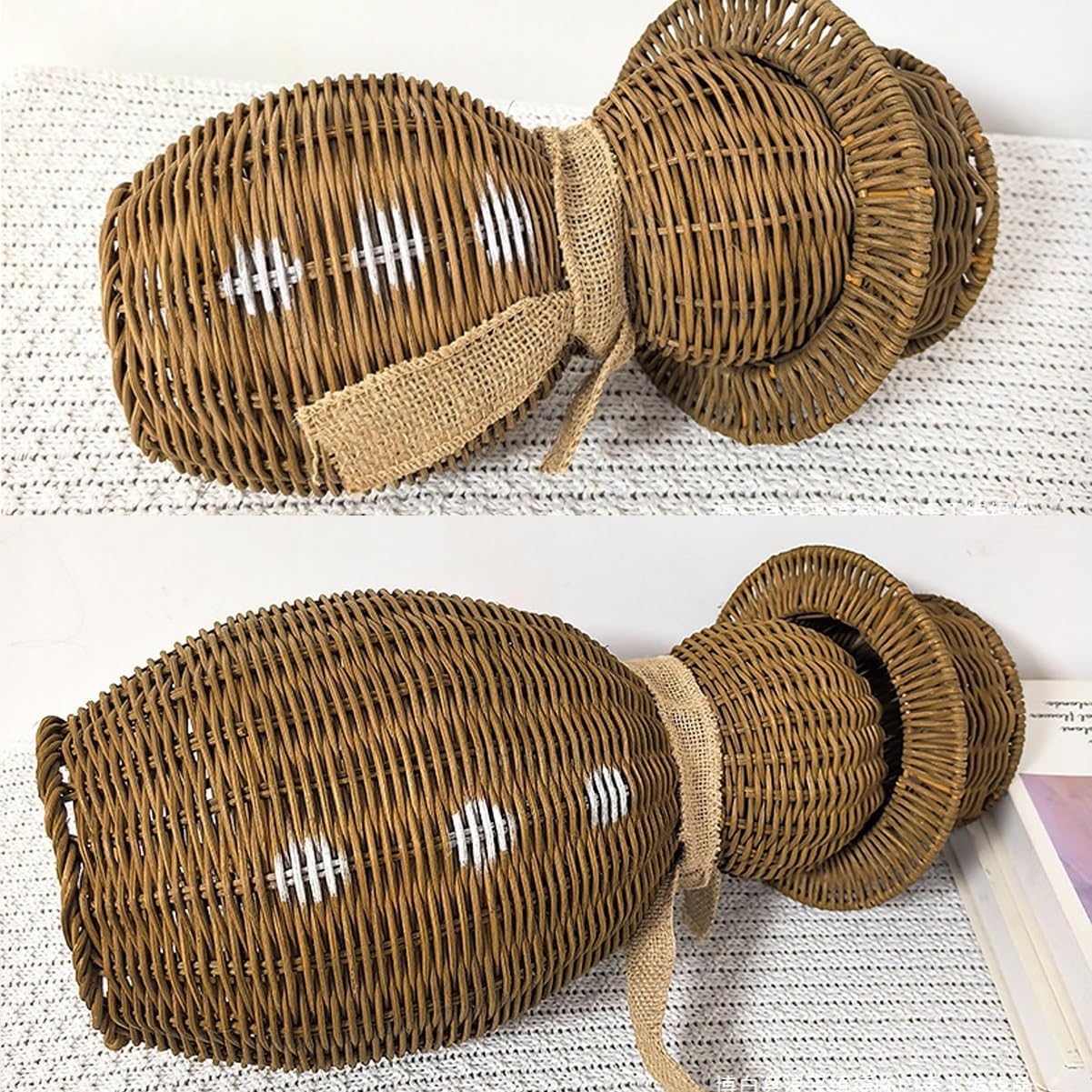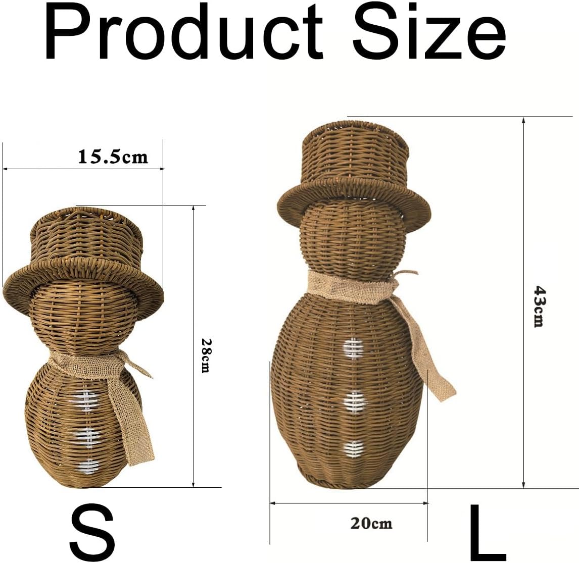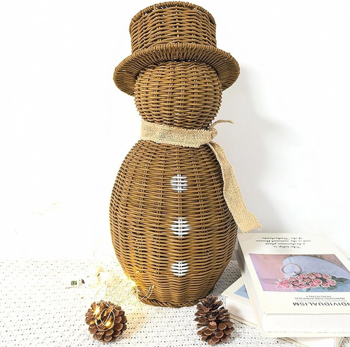 Rattan Snowman, Wicker Christmas Decoration Snowman Plush Snowmans with Scarf for Home Garden, Vintage Winter Centerpiece Table Decor Gift Farmhouse for Party Home Kitchen Shelf(L)