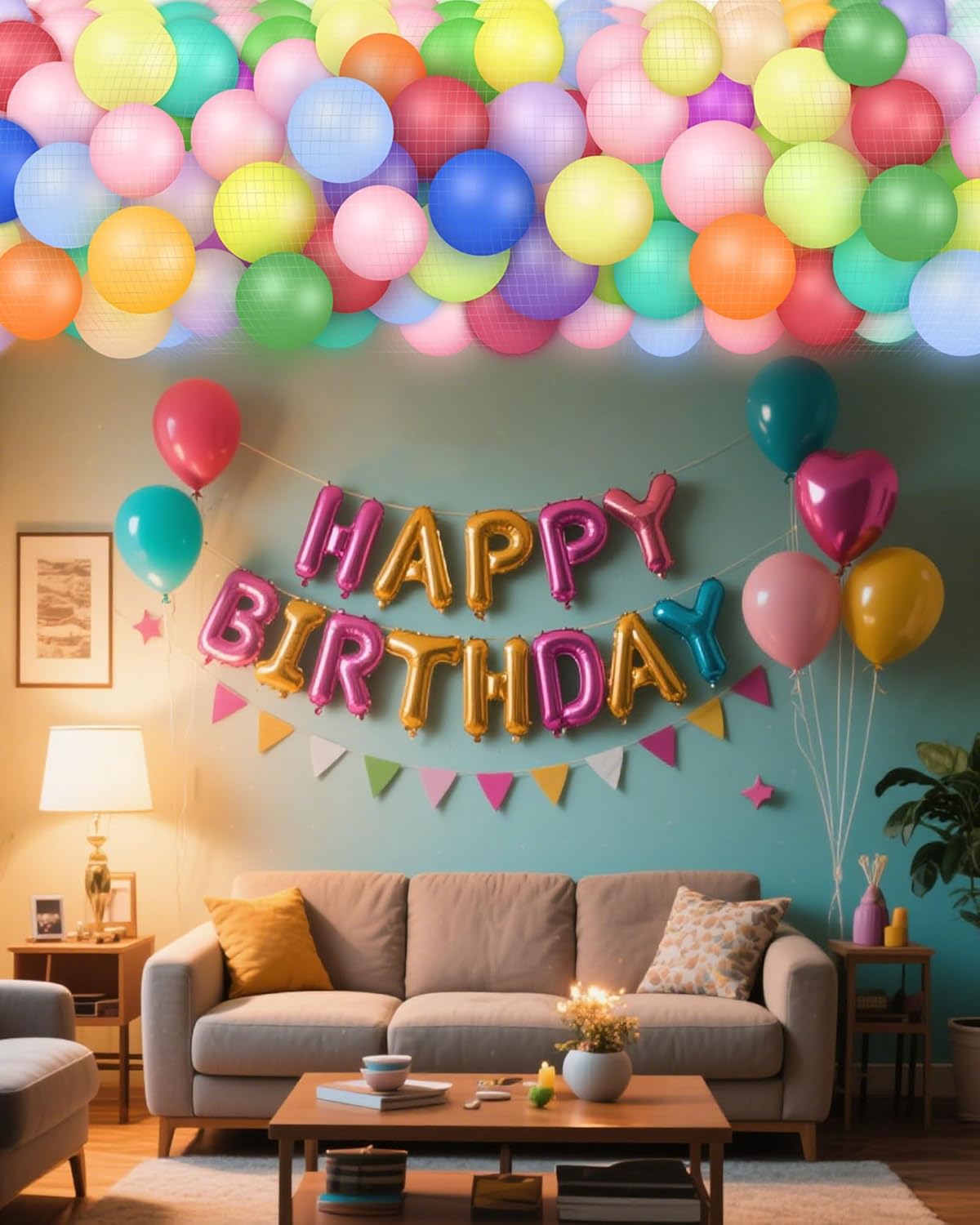 Balloon Drop Net for Ceiling Release,Balloon Release Net Bag Kit of 1000 Balloons, Pumps, Family Reunion Birthday Celebration, Graduation, Wedding, New Year Eve Party Decorations