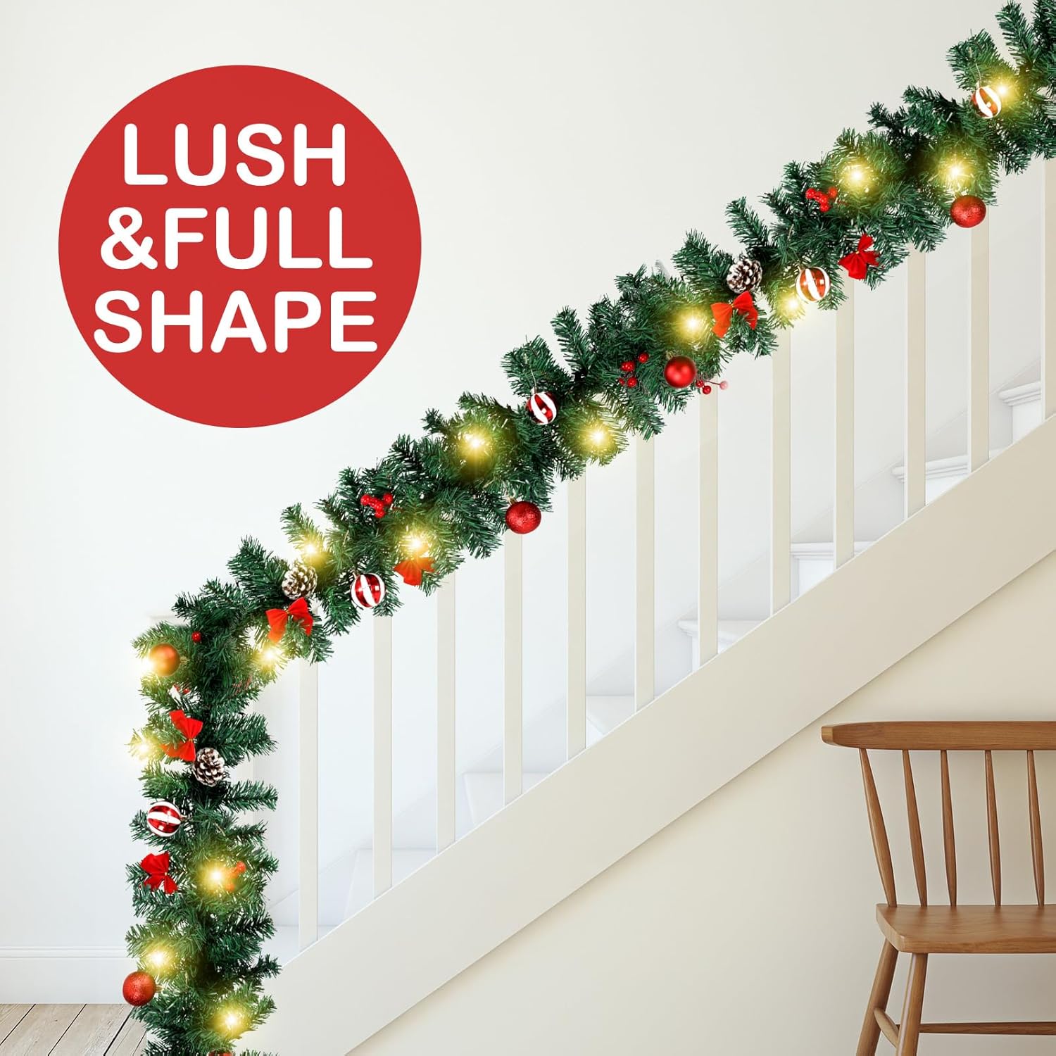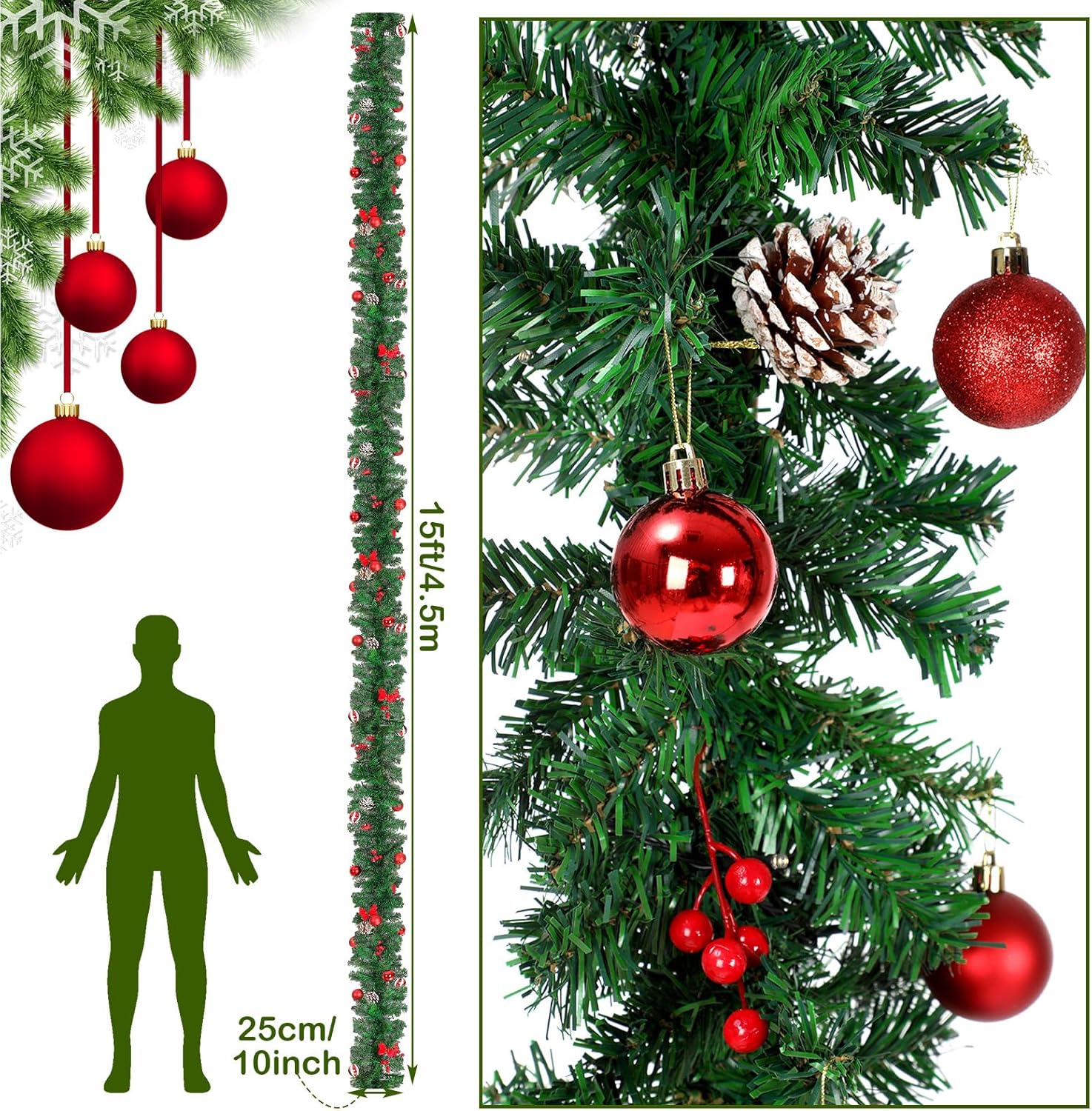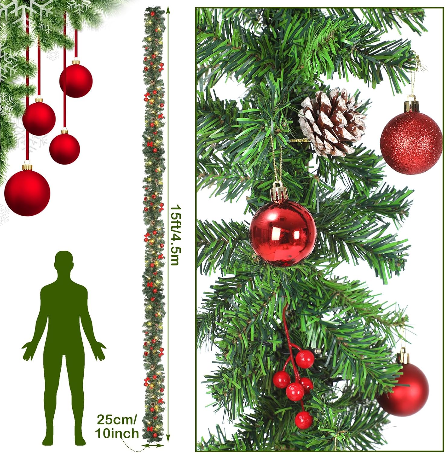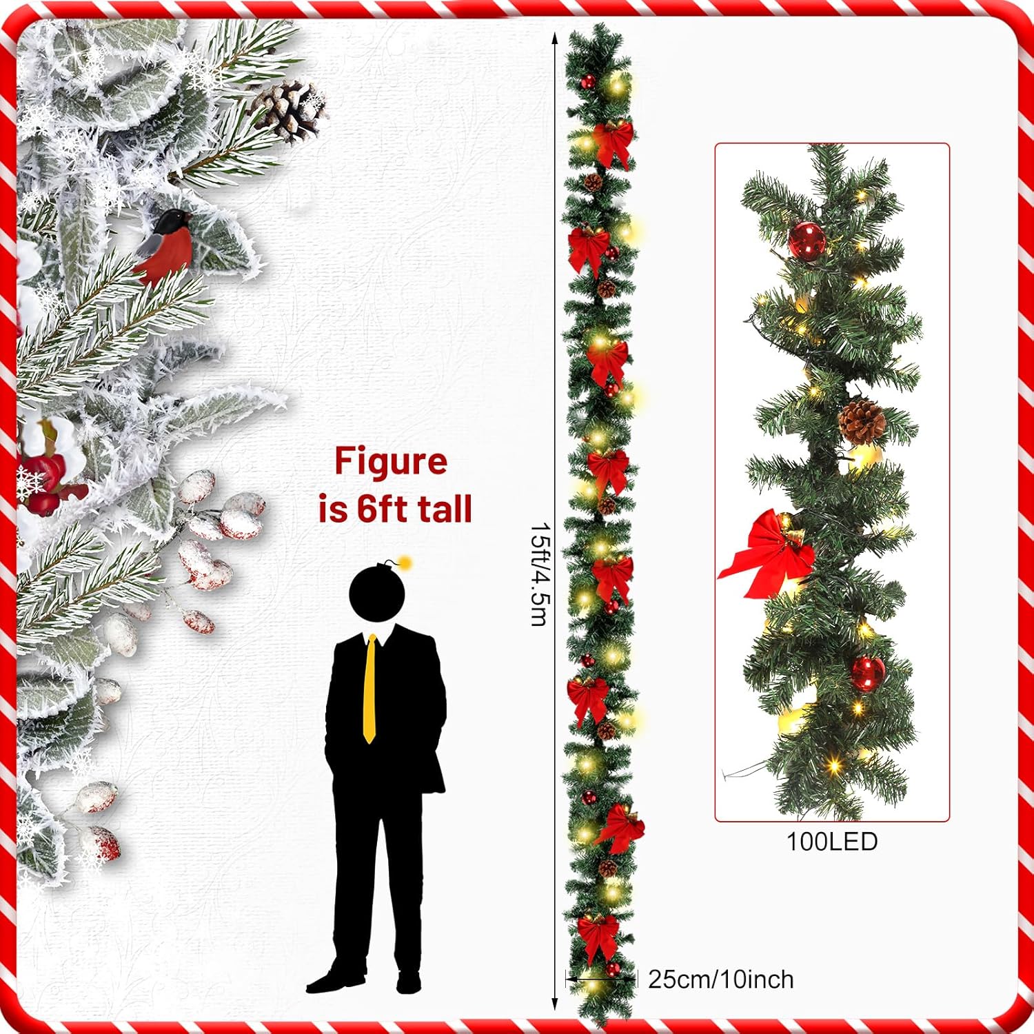 Ceenna Extra Long 15ft Christmas Garland with Light 100 LED Prelit Lights Artificial Pine Christmas Indoor Outdoor Decorations Xmas Holiday Front Door Fireplace Home Decor(Candy Canes Garland)