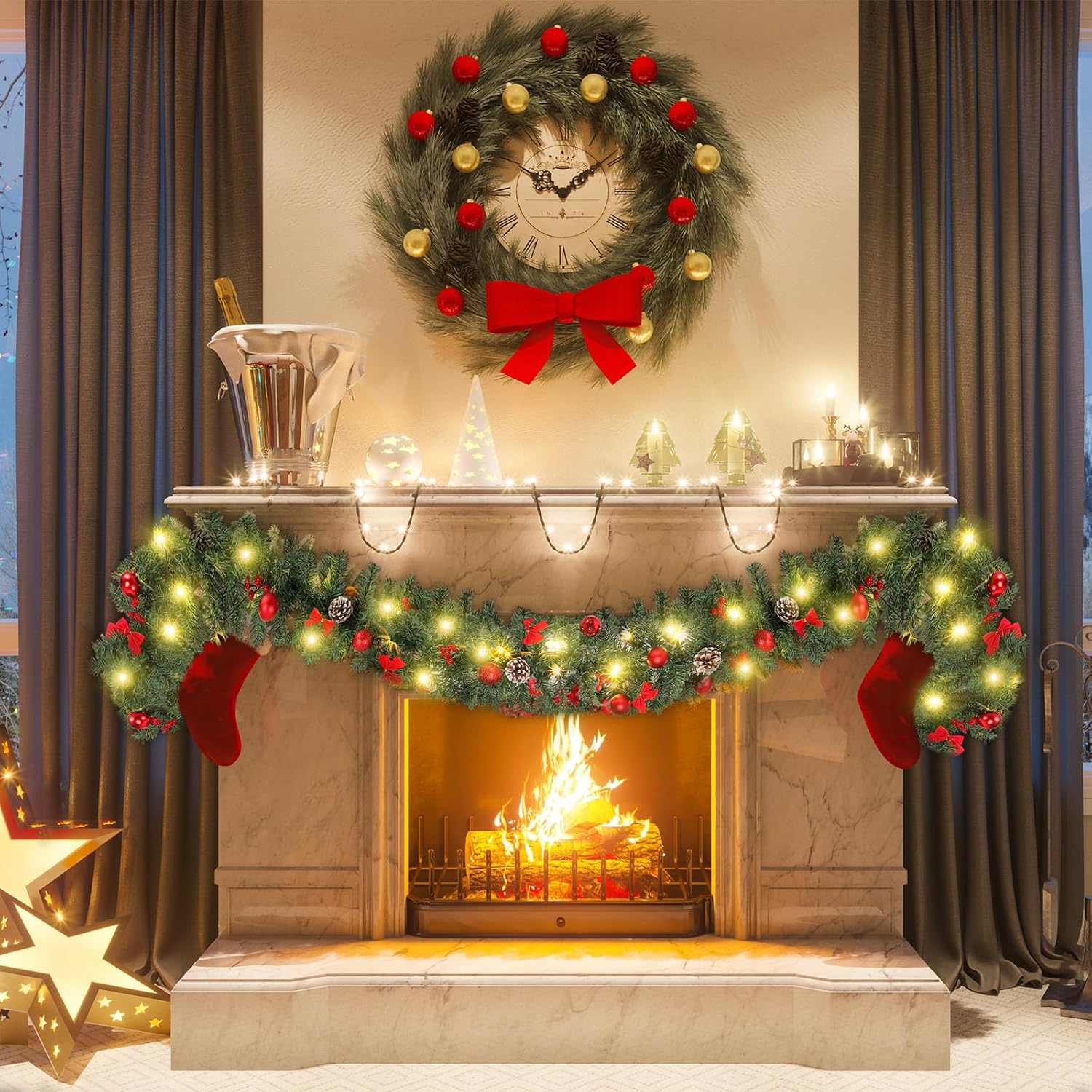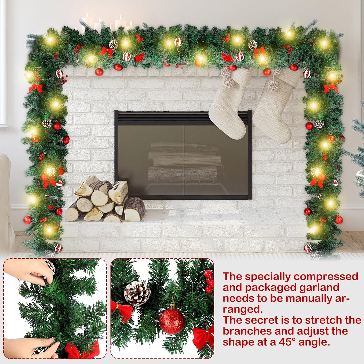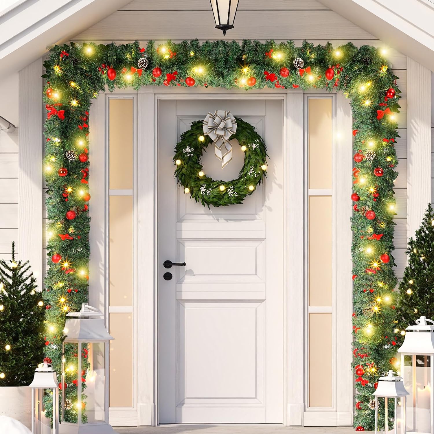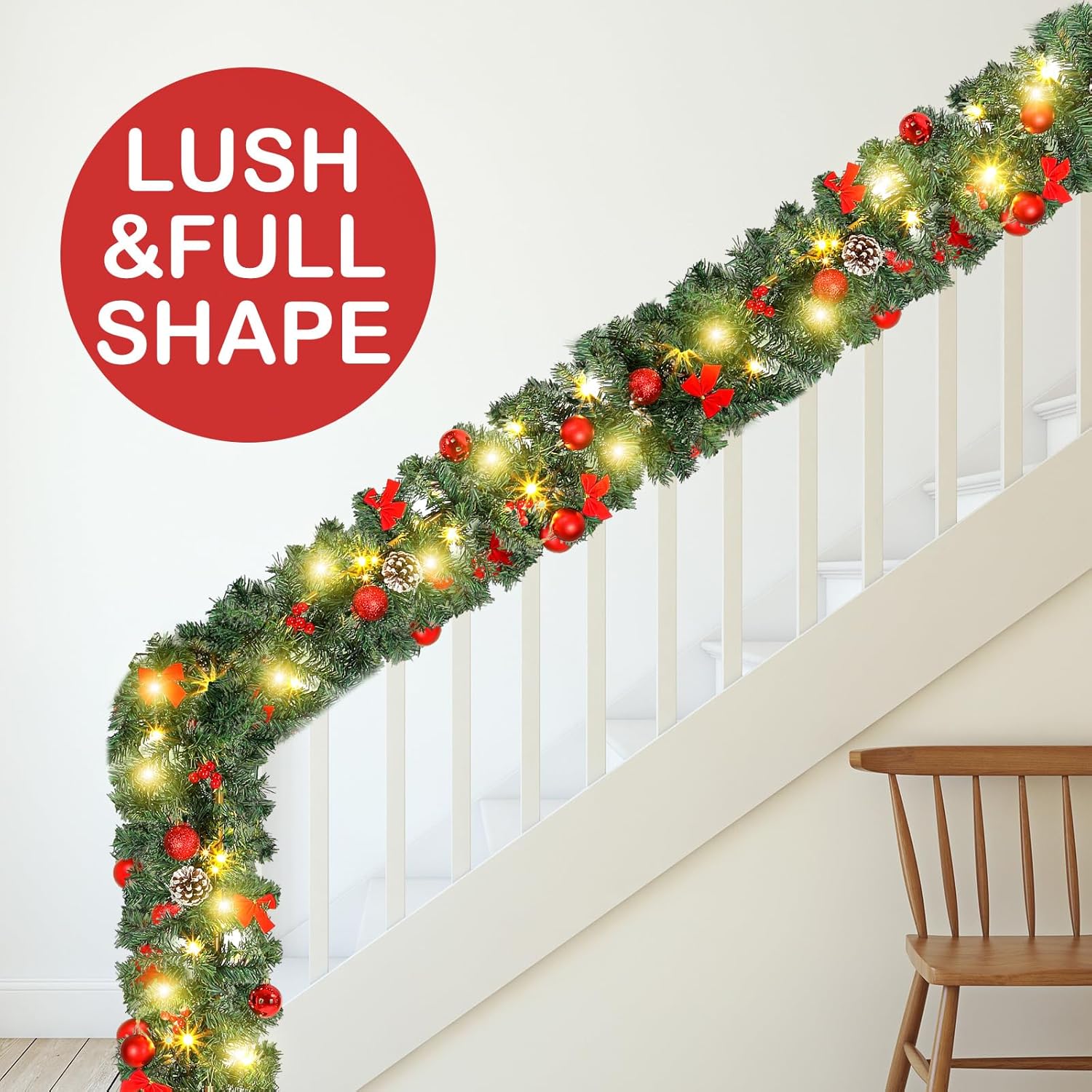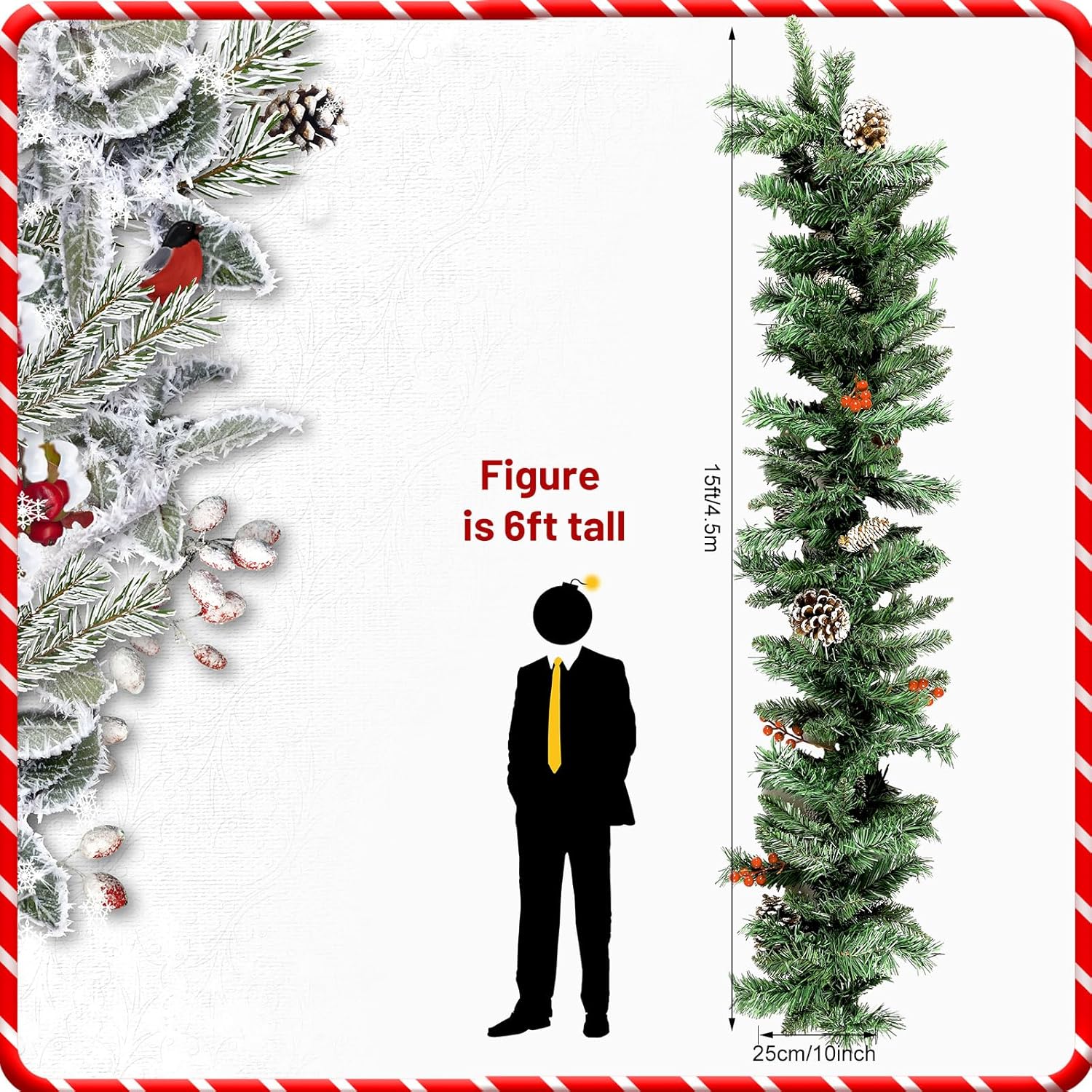 Ceenna Extra Long 15ft Christmas Garland with Light 100 LED Prelit Lights Artificial Pine Christmas Indoor Outdoor Decorations Xmas Holiday Front Door Fireplace Home Decor(Candy Canes Garland)