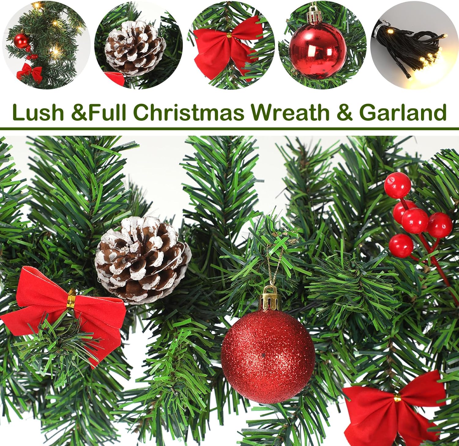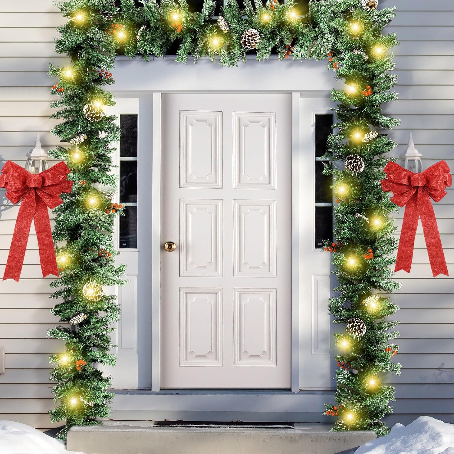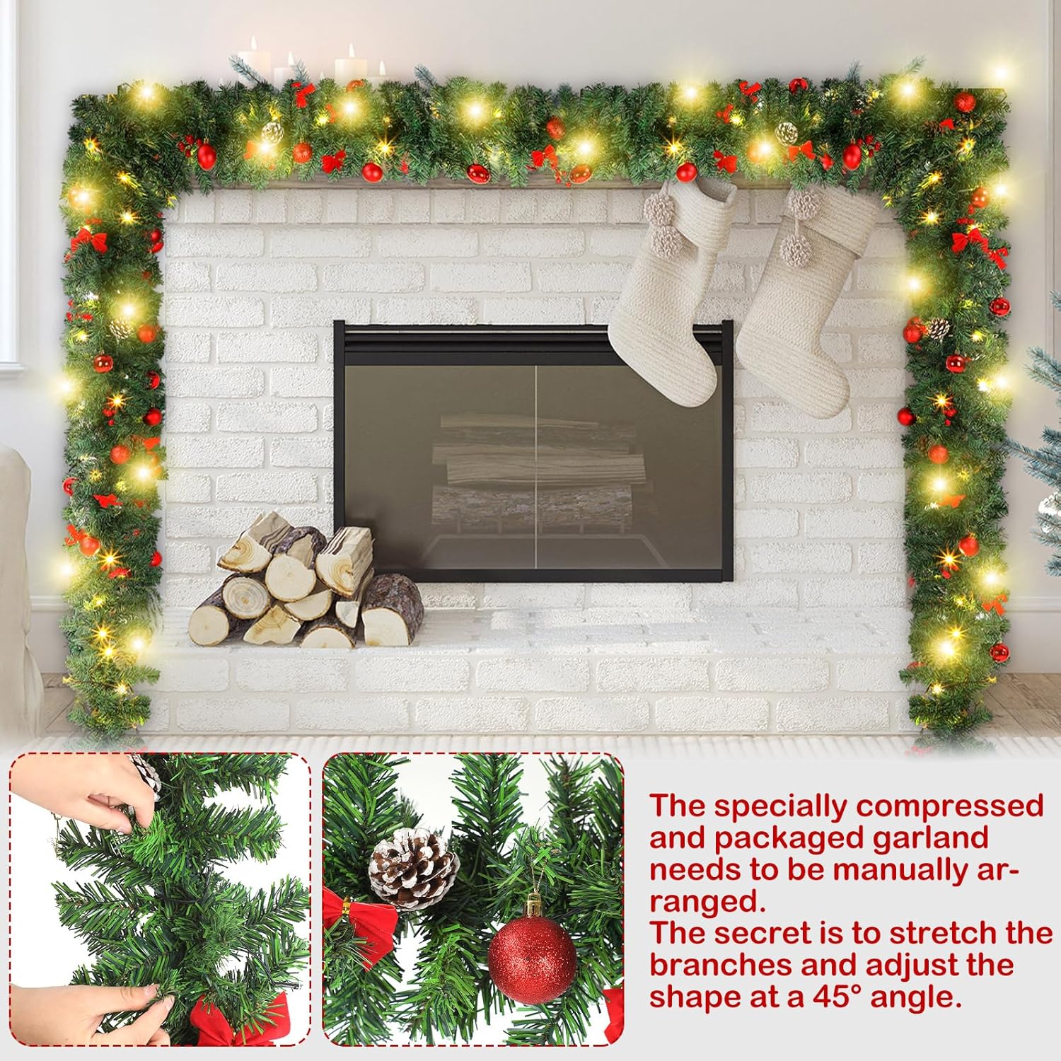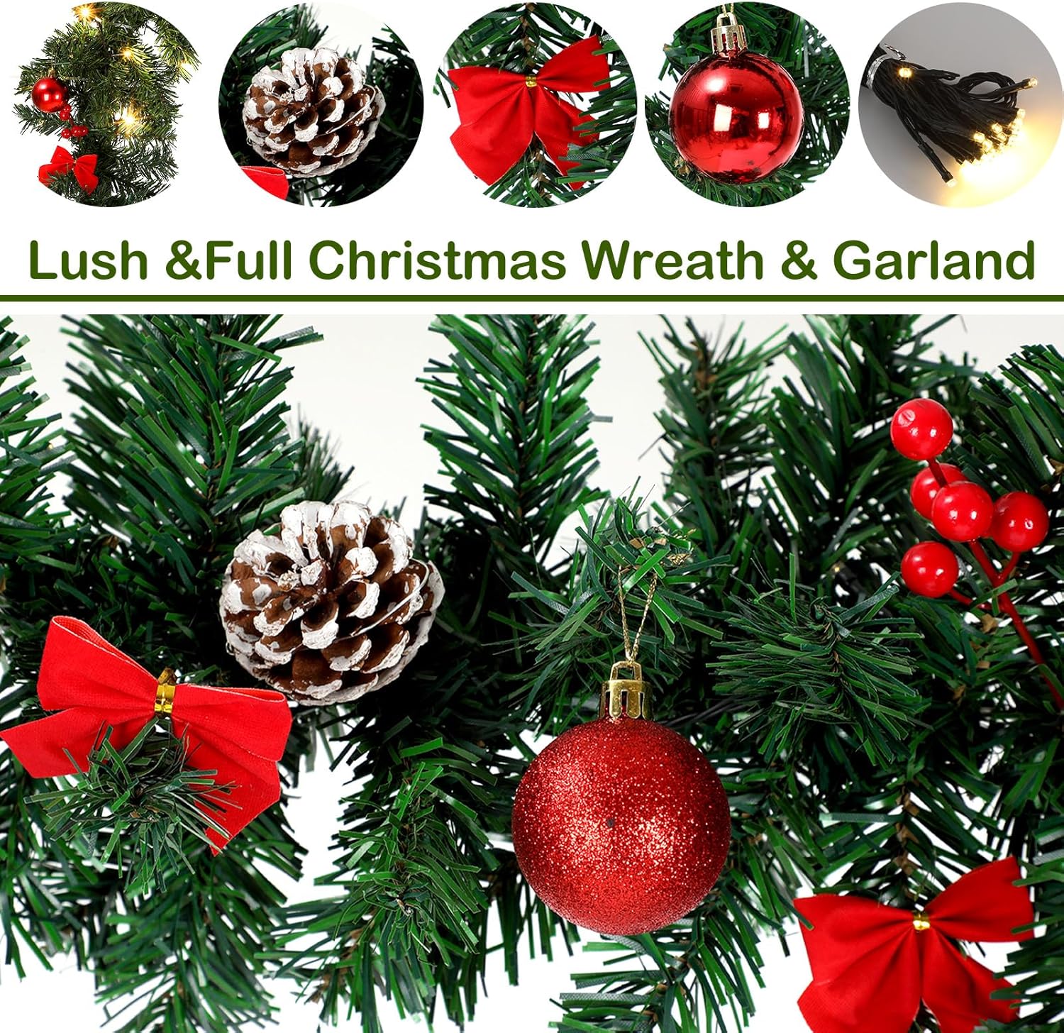 Ceenna Extra Long 15ft Christmas Garland with Light 100 LED Prelit Lights Artificial Pine Christmas Indoor Outdoor Decorations Xmas Holiday Front Door Fireplace Home Decor(Candy Canes Garland)