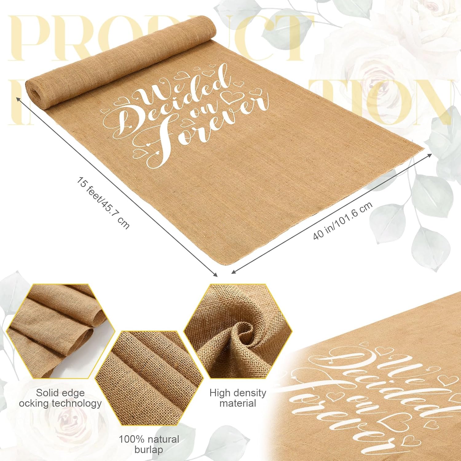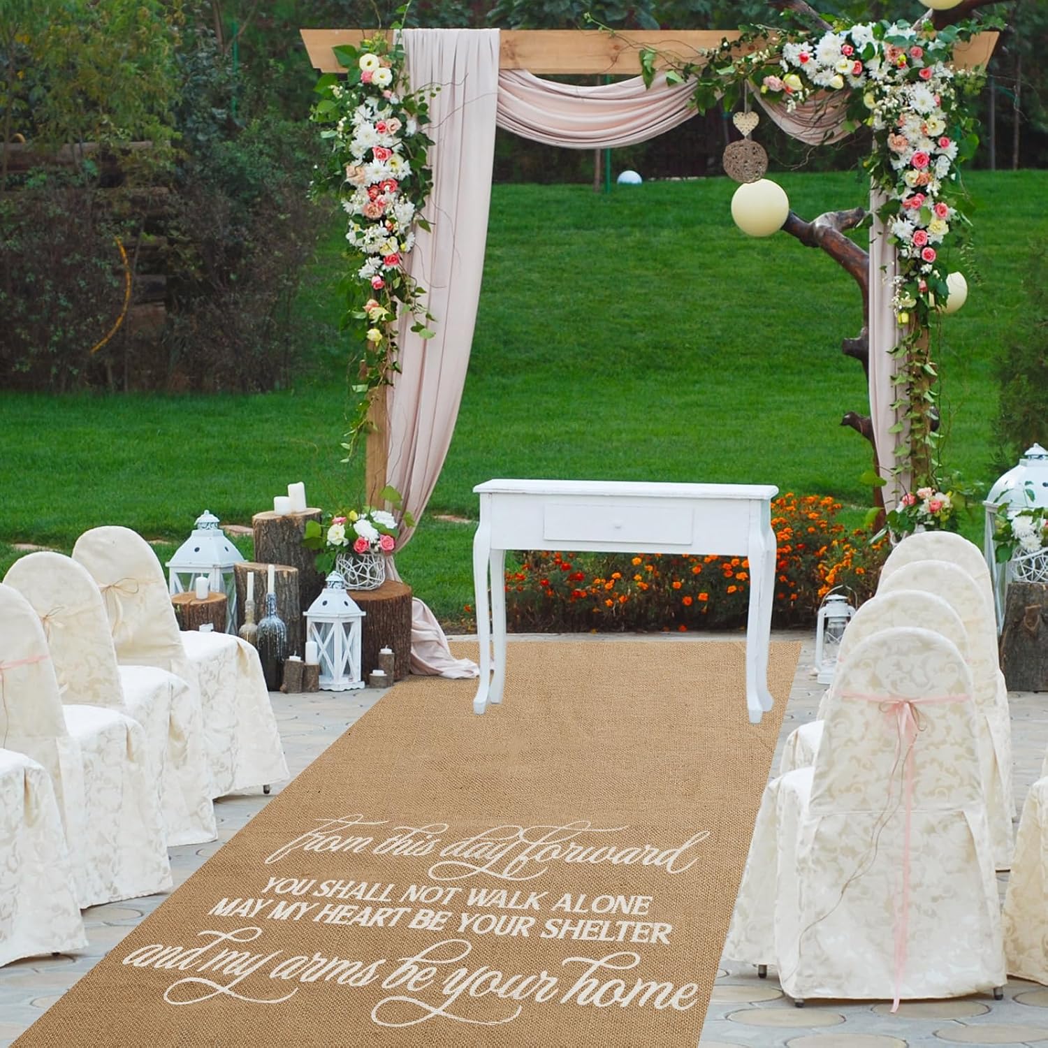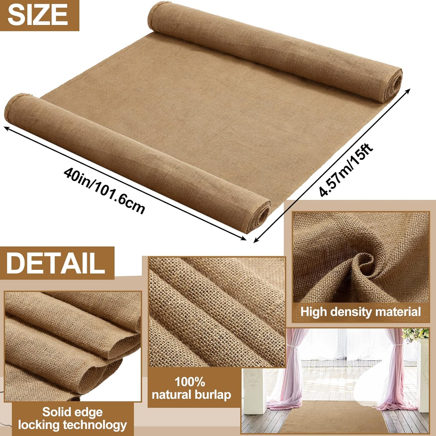 Tudomro 40 Inch x 100 Ft Extra Long Natural Burlap Wedding Aisle Runner Outdoor Jute Burlap Aisle Runner for Wedding Ceremony Rustic Indoor Carpet for Walkway (Stylish Style)