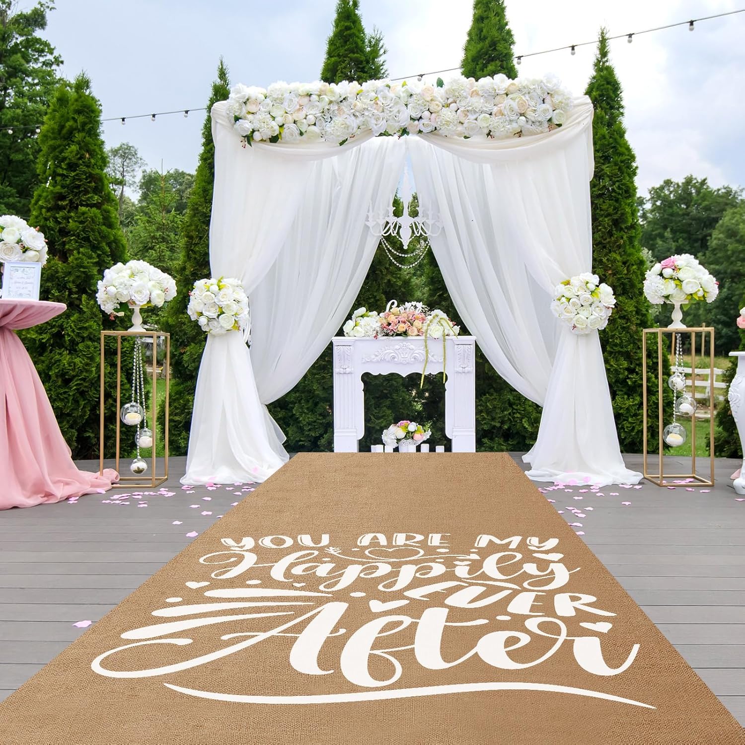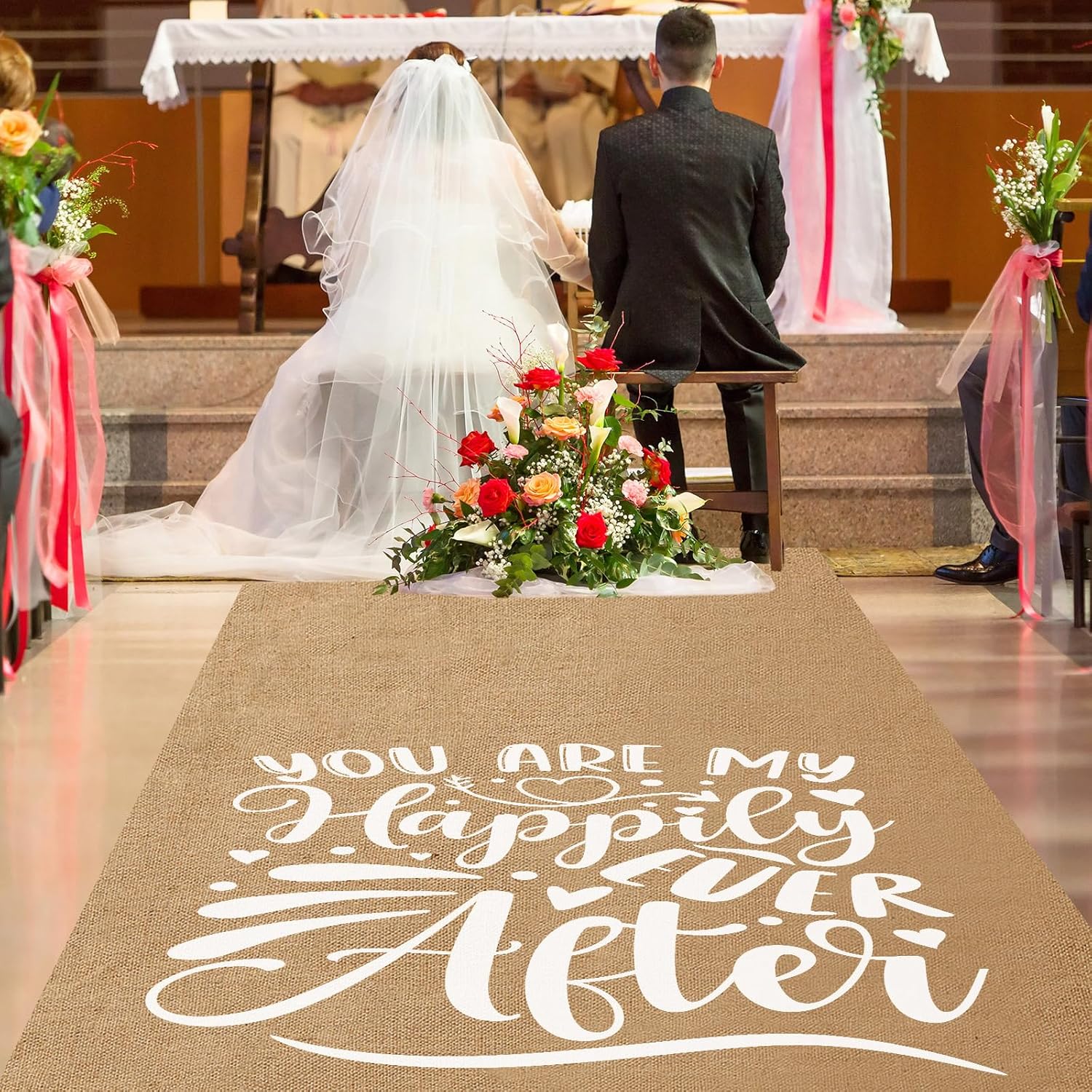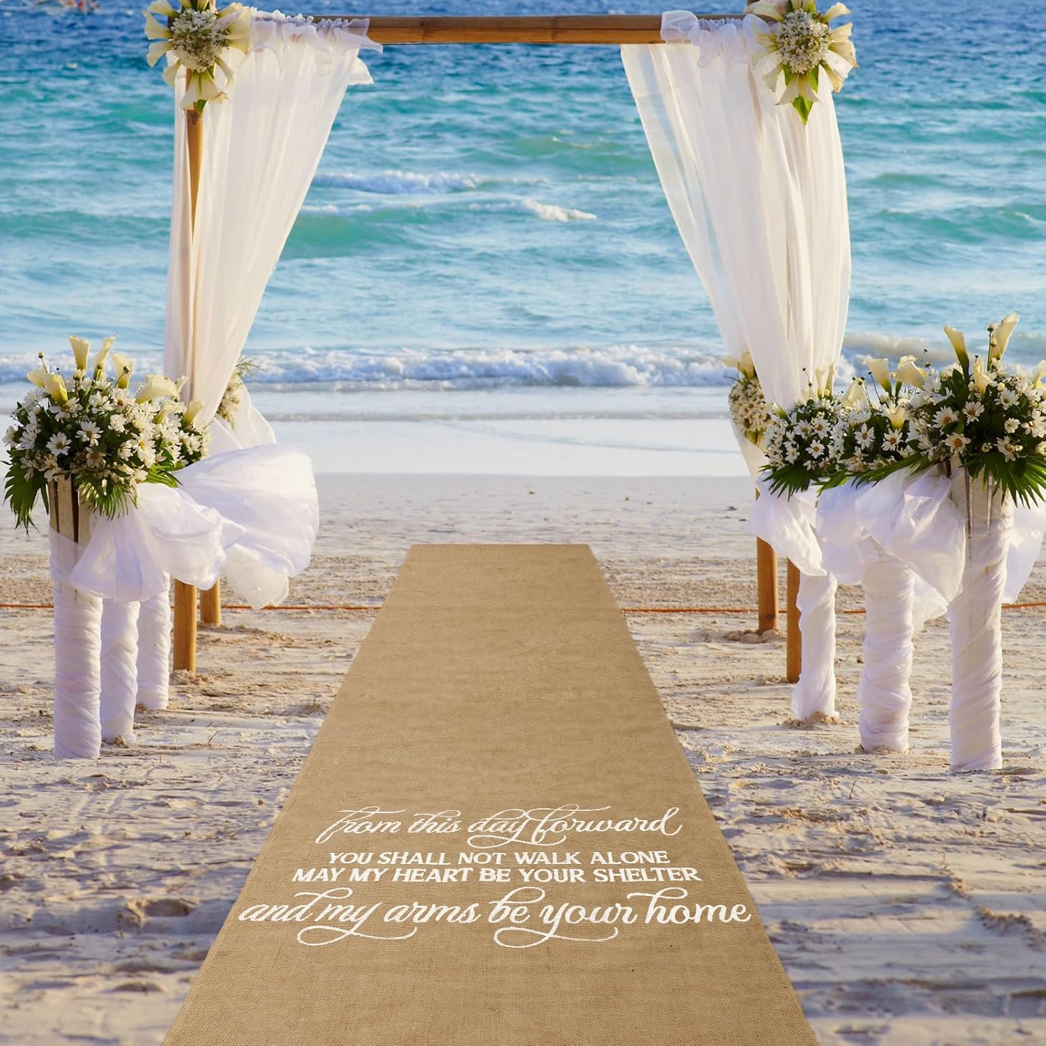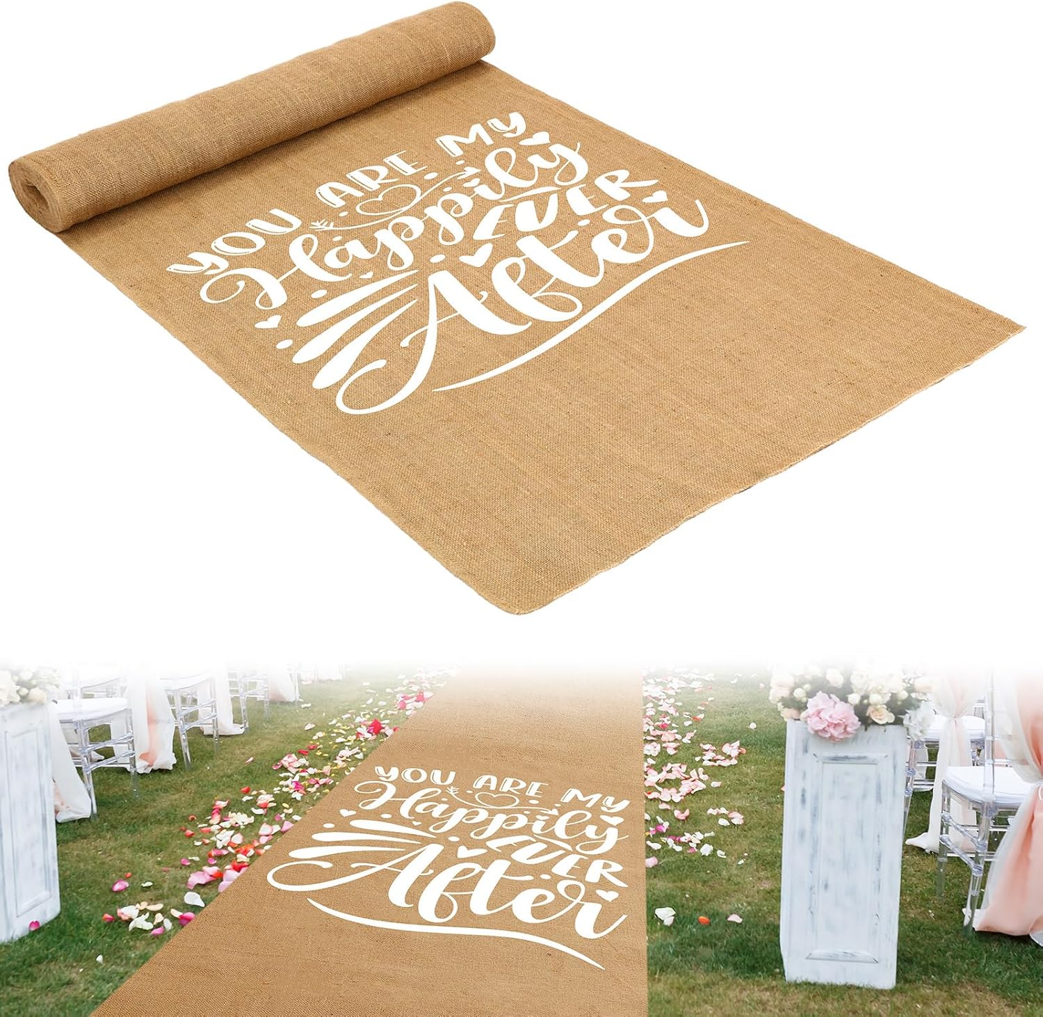 Tudomro 40 Inch x 100 Ft Extra Long Natural Burlap Wedding Aisle Runner Outdoor Jute Burlap Aisle Runner for Wedding Ceremony Rustic Indoor Carpet for Walkway (Stylish Style)