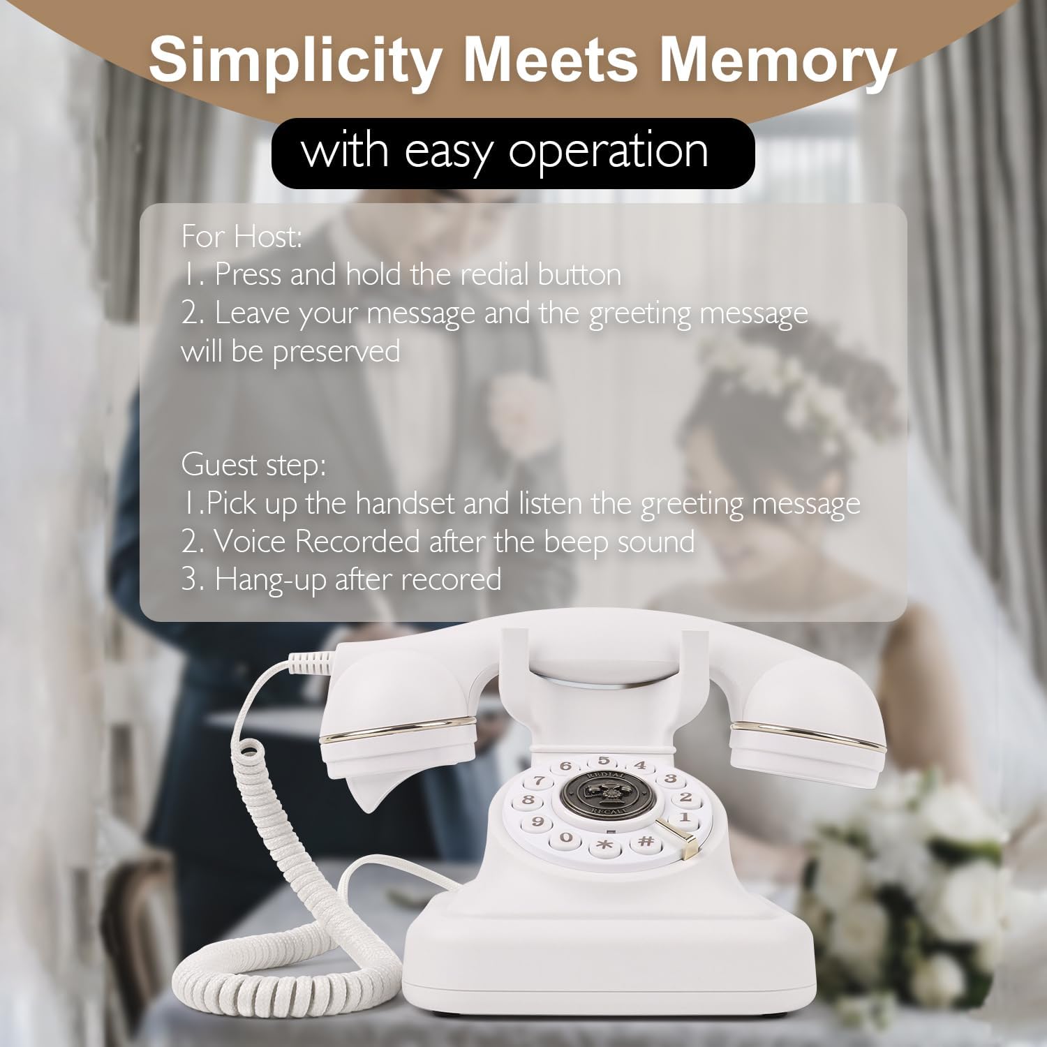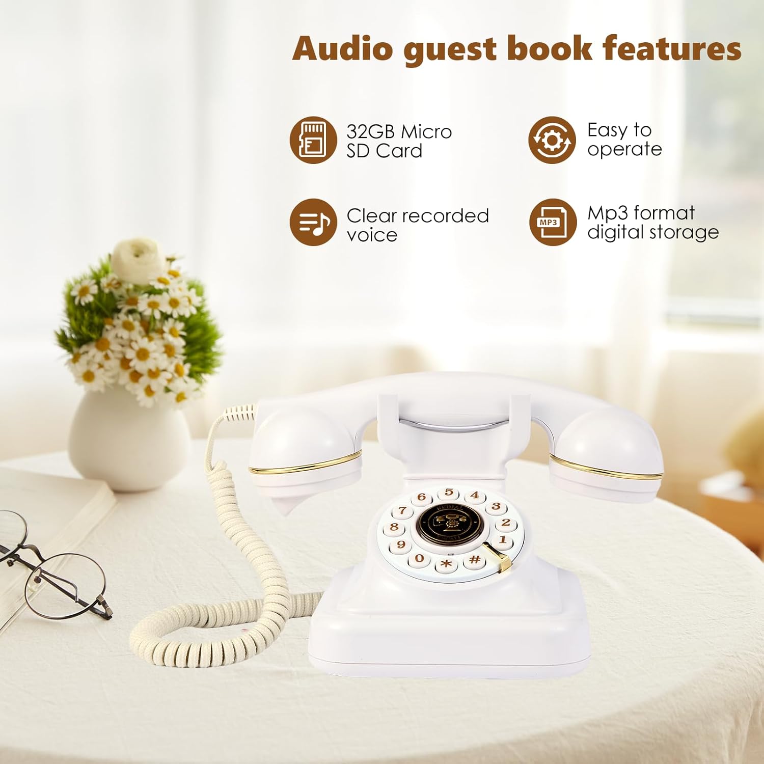 Audio Guest Book Wedding Phone, Audio Gueestbook for Recording Guest Messages, Audio Guest Book Phone for Wedding, Baby Shower, Guaduation, Engagement Party(White)