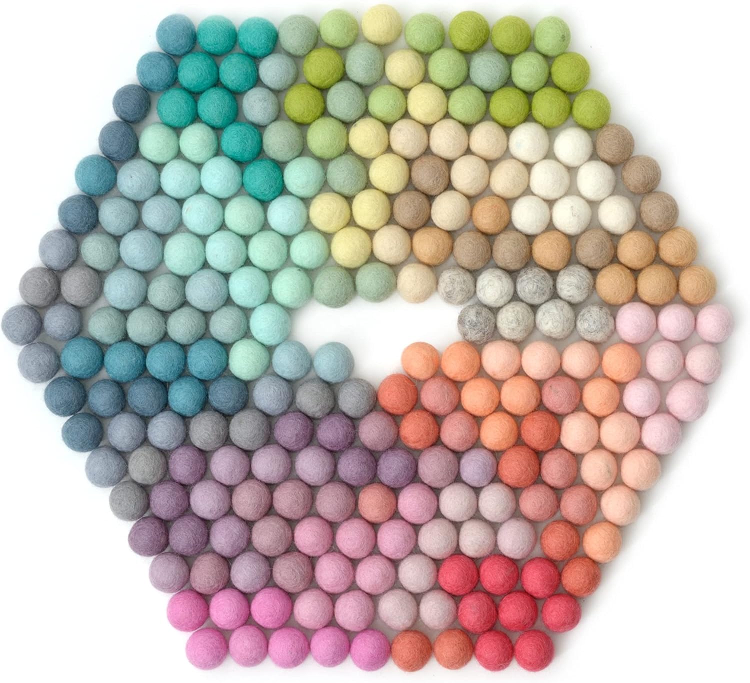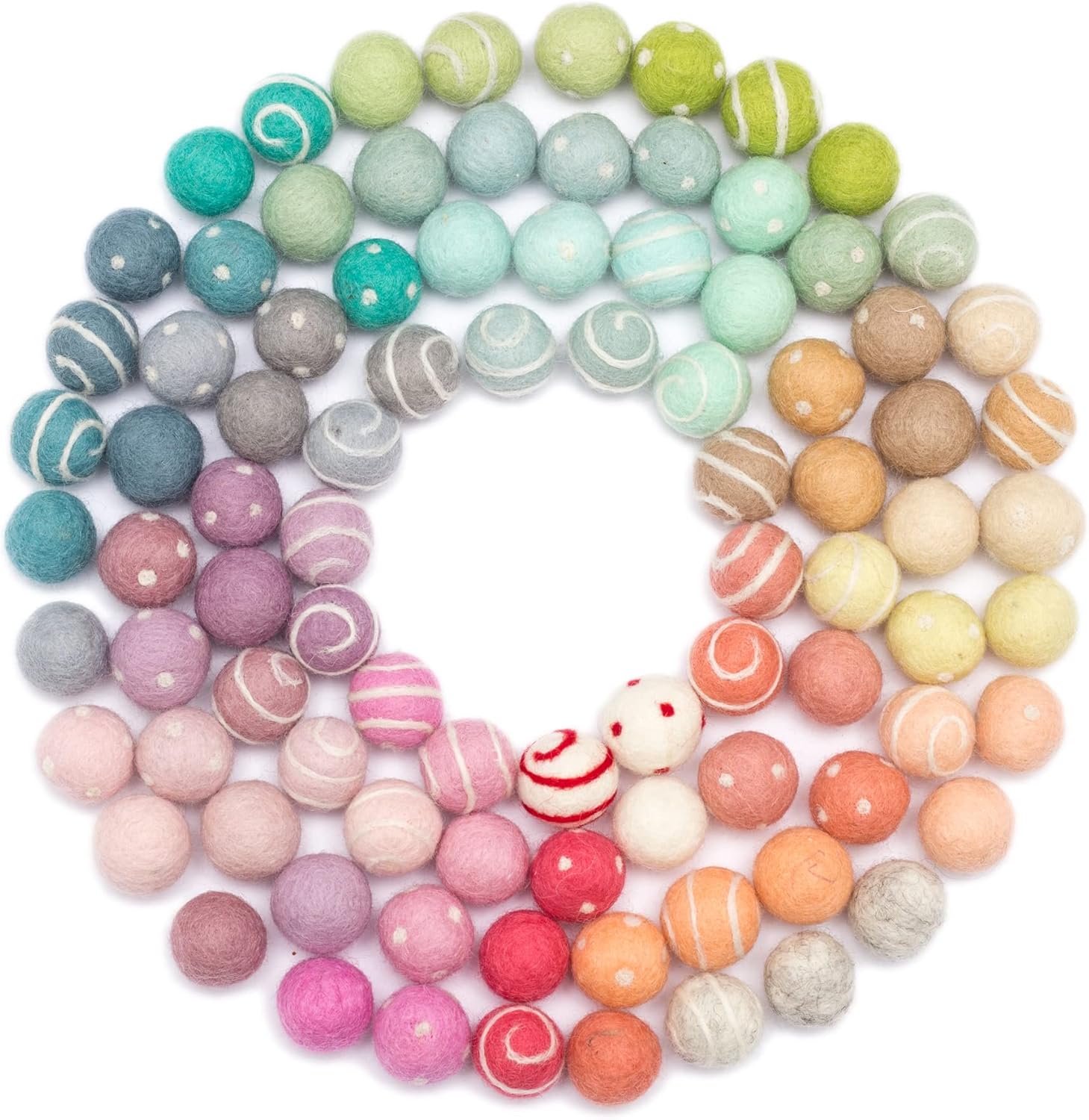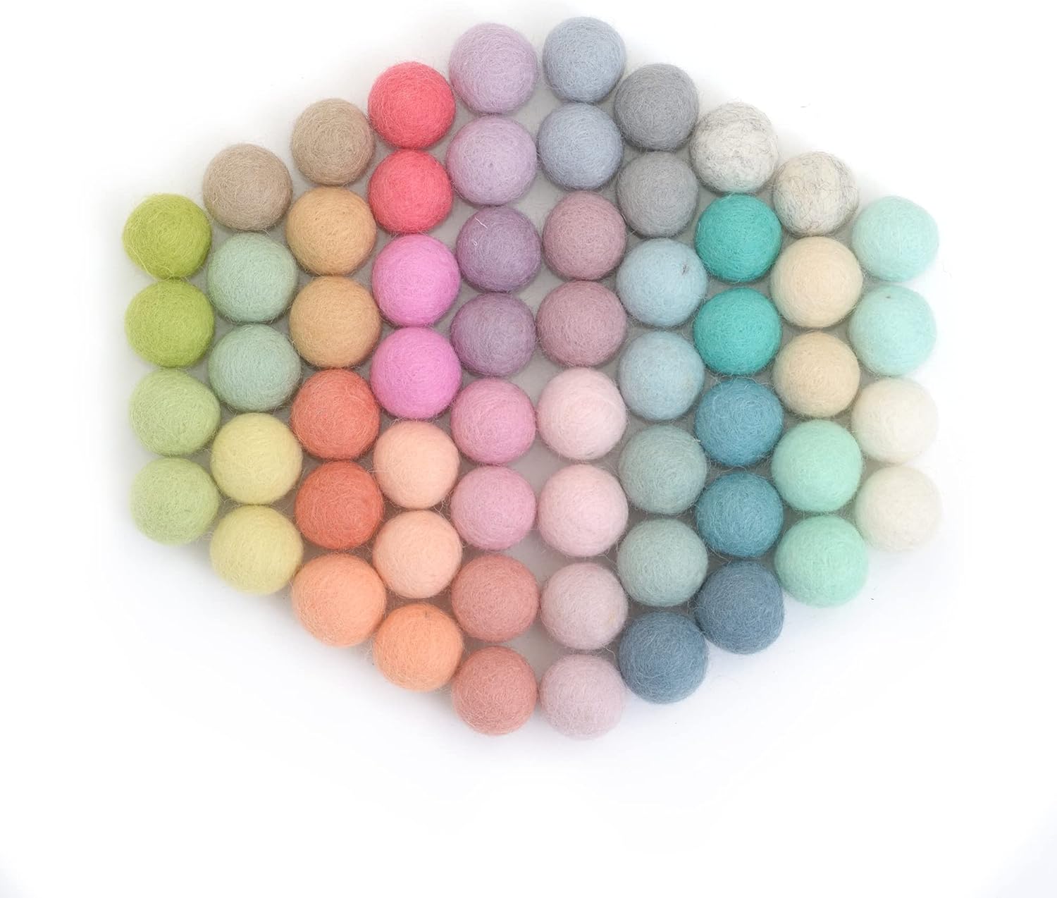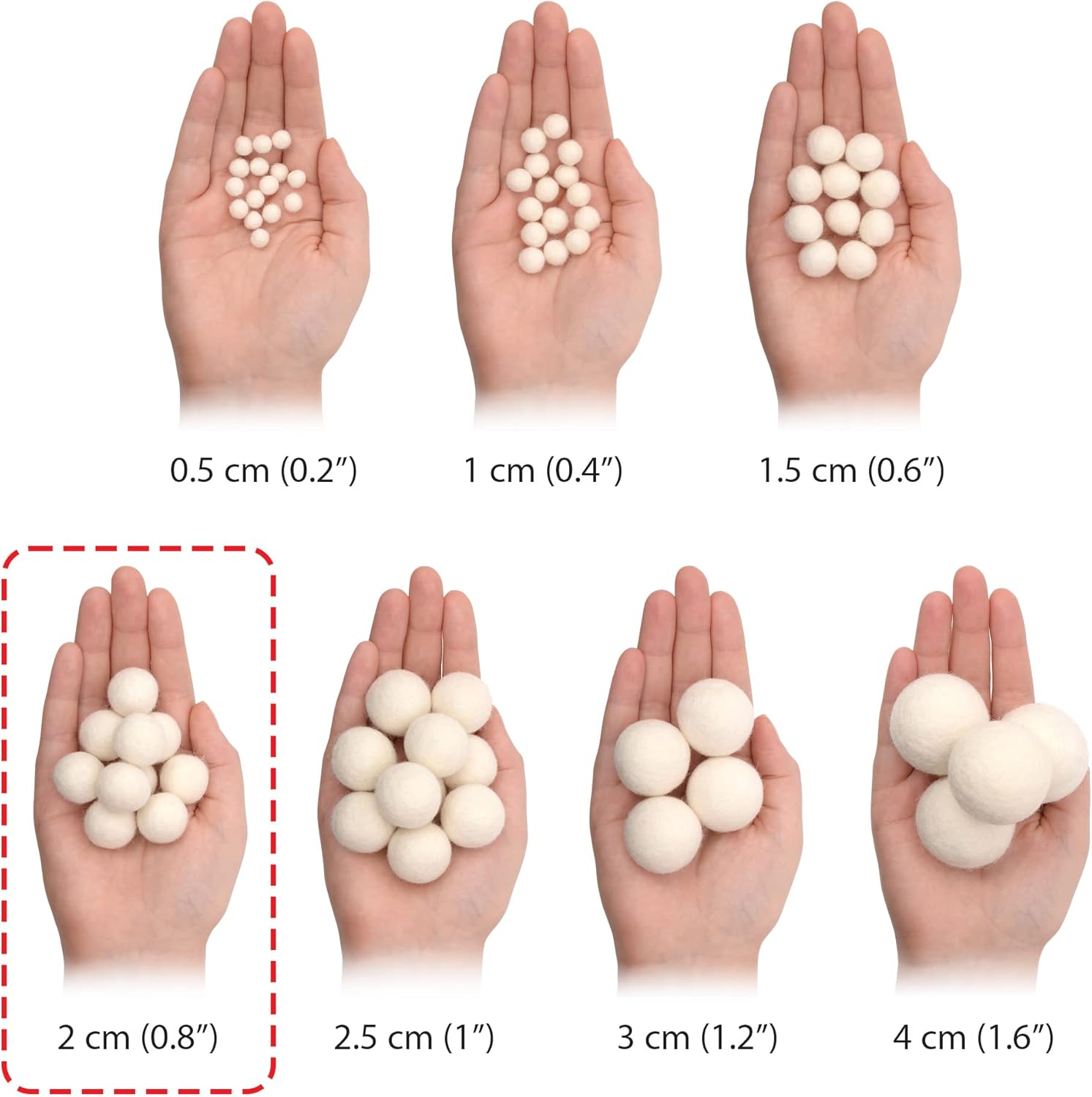 Glaciart One Felt Pom Poms, Wool Felt Balls (800 Pieces) 2 cm – 0.8 Inch, Handmade Felted 30 Pastel Colors (Green, Pink, Blue, Yellow and More) Bulk Small Puff for Felting and Garland