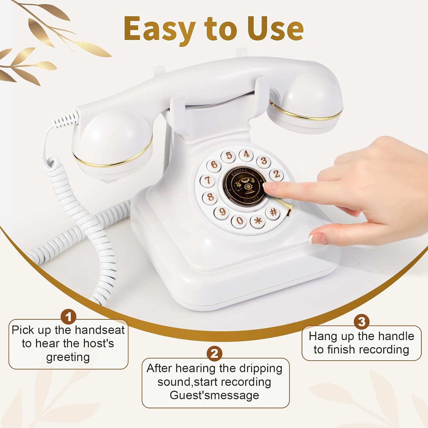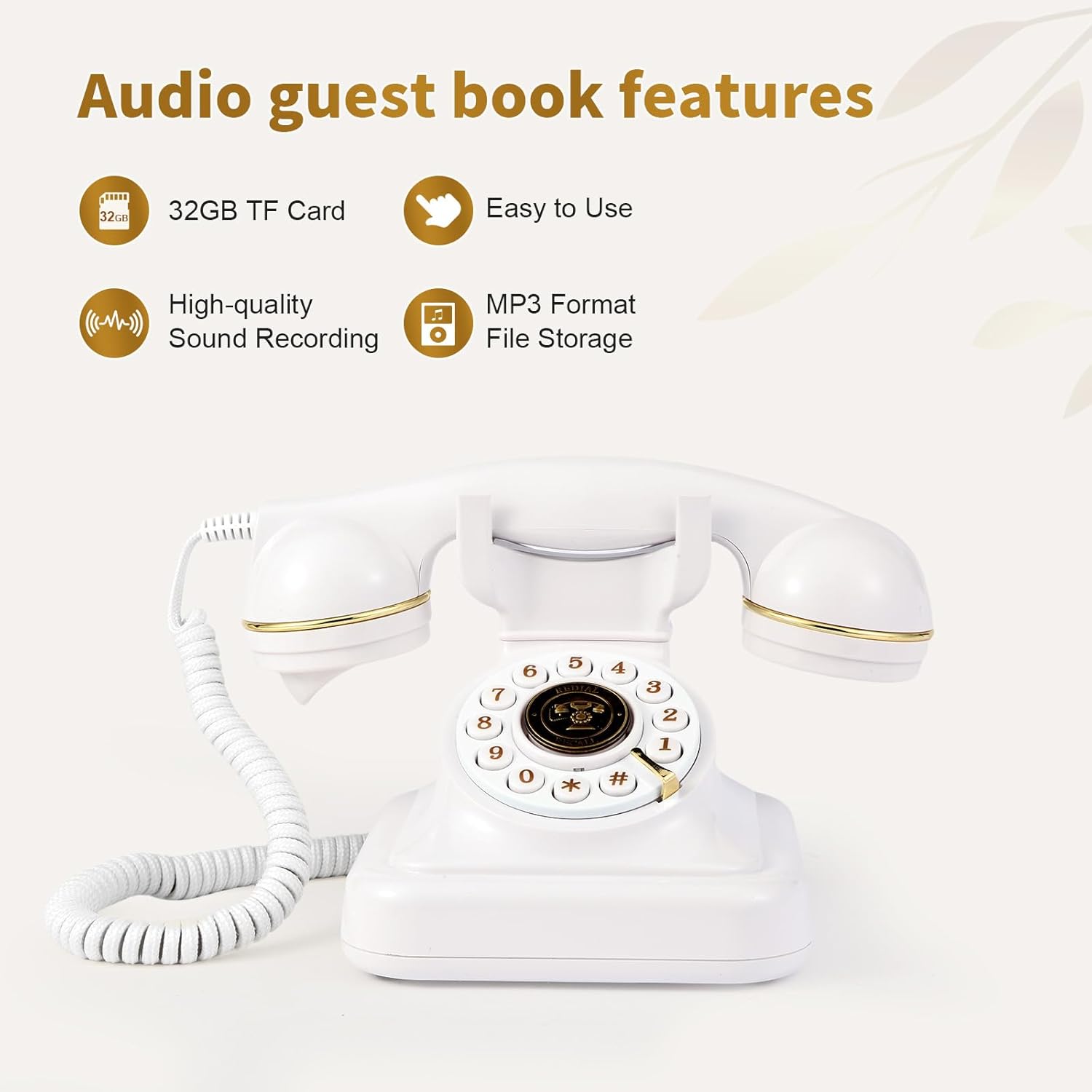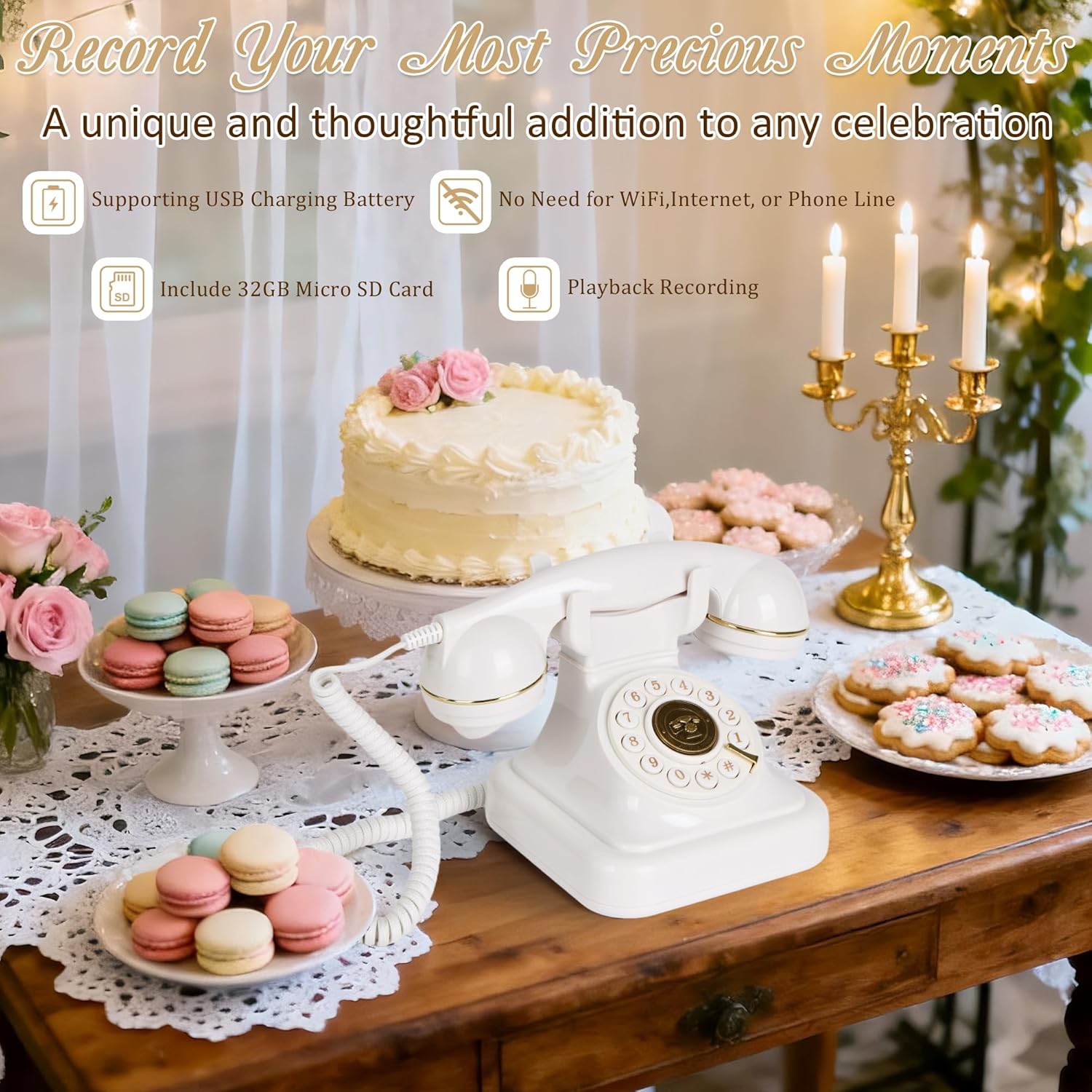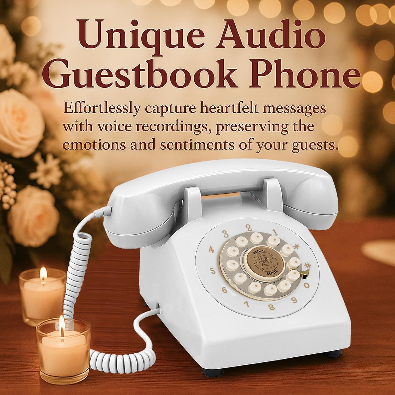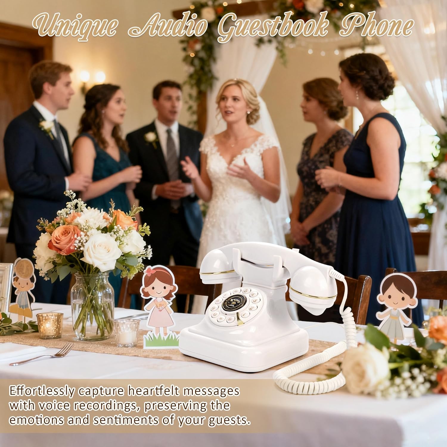 Audio Guest Book Wedding Phone, Audio Guest Book Record Customized Audio Messages Guest Book Alternatives Classic Retro Phone for Parties Birthdays Rentals Confessions Special Occasions (White)