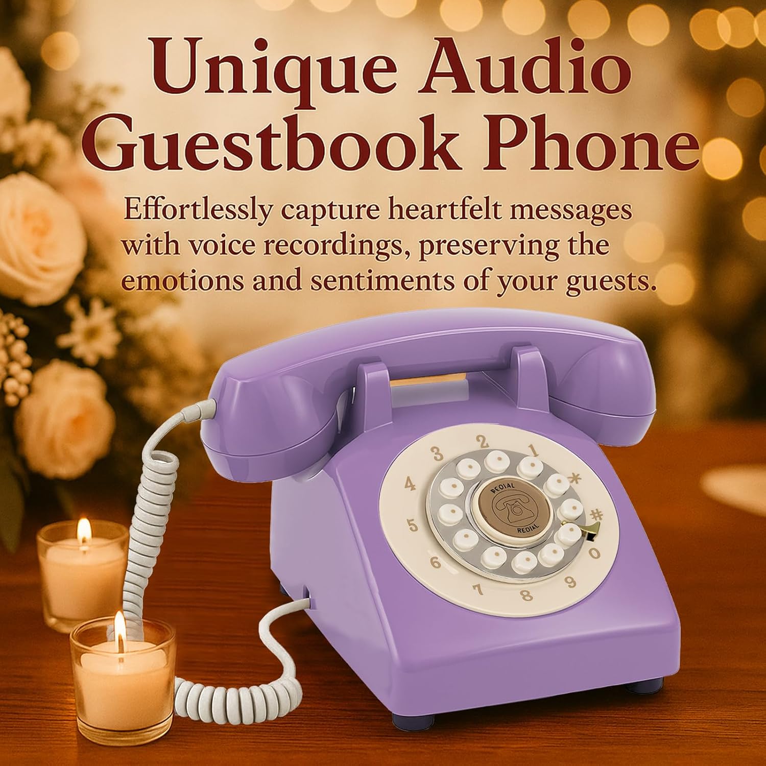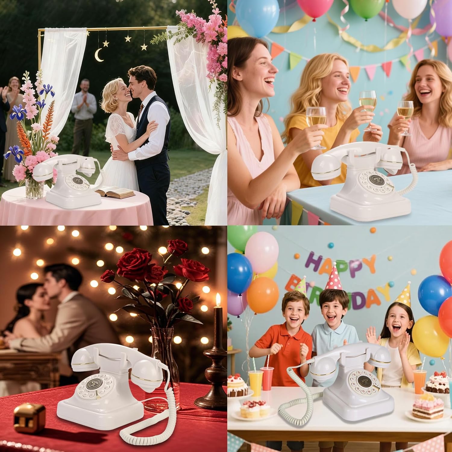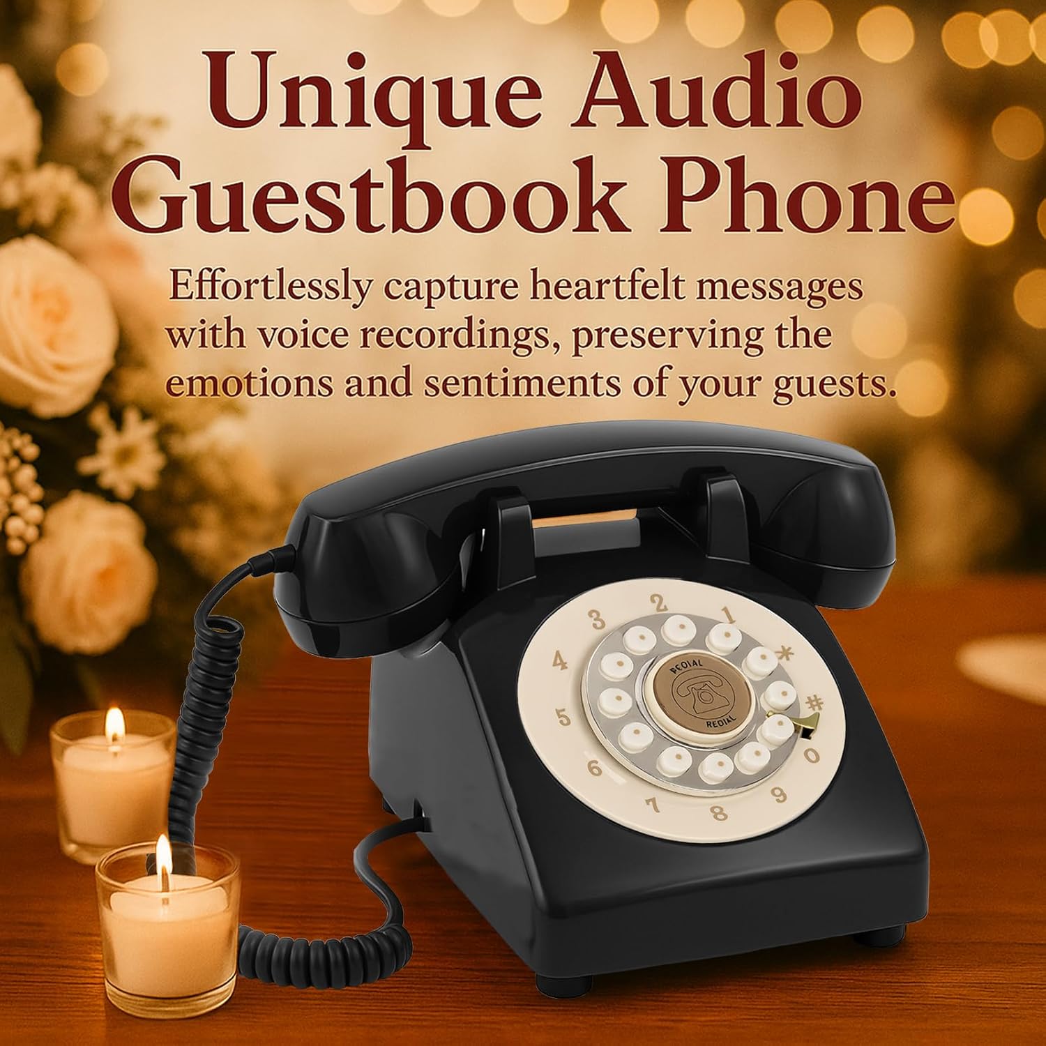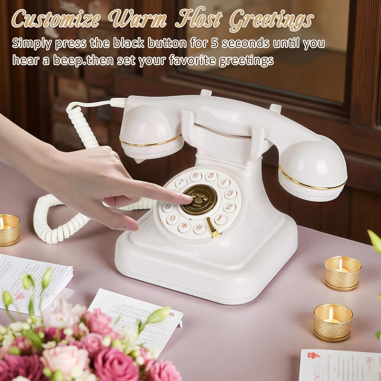 Audio Guest Book Wedding Phone, Audio Guest Book Record Customized Audio Messages Guest Book Alternatives Classic Retro Phone for Parties Birthdays Rentals Confessions Special Occasions (White)