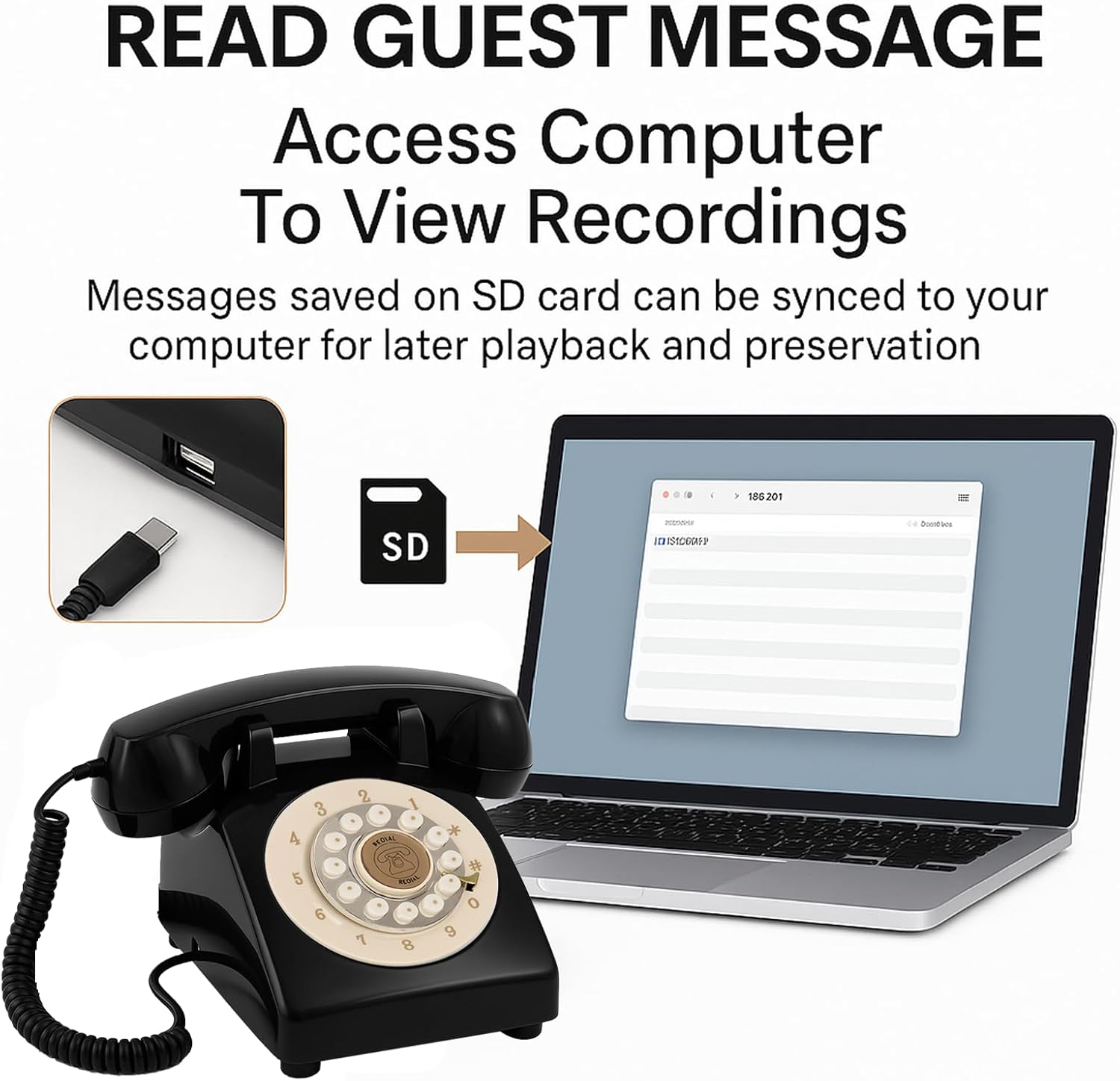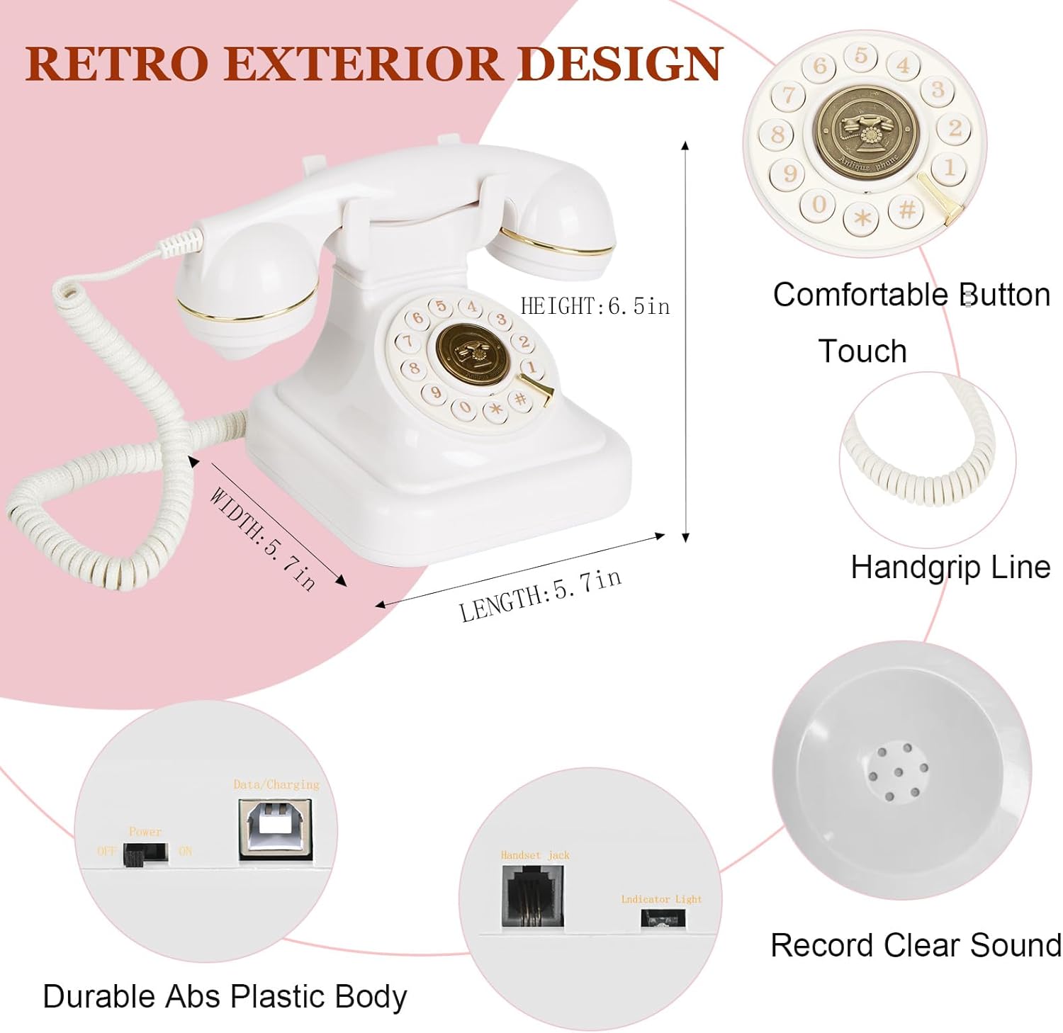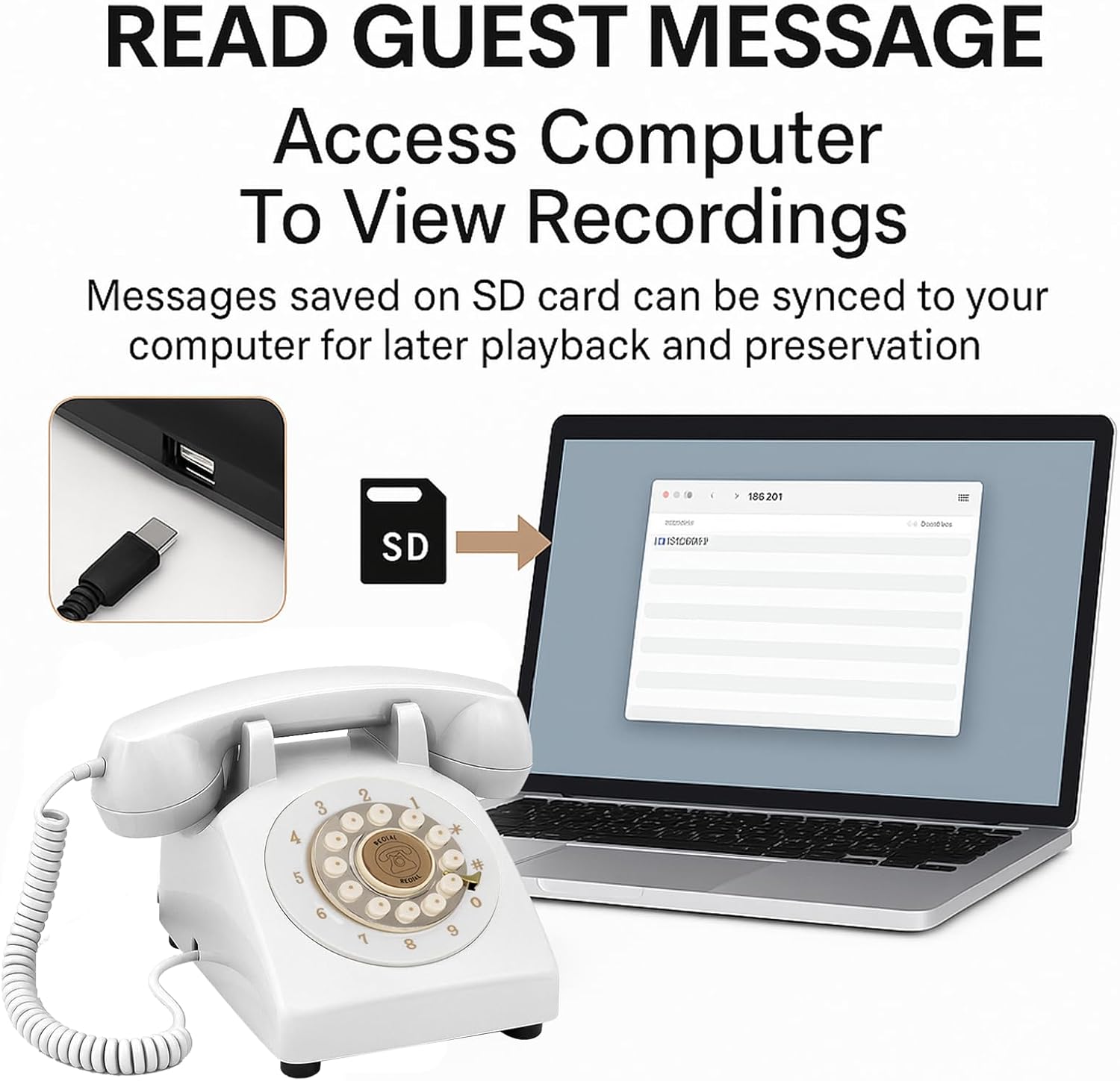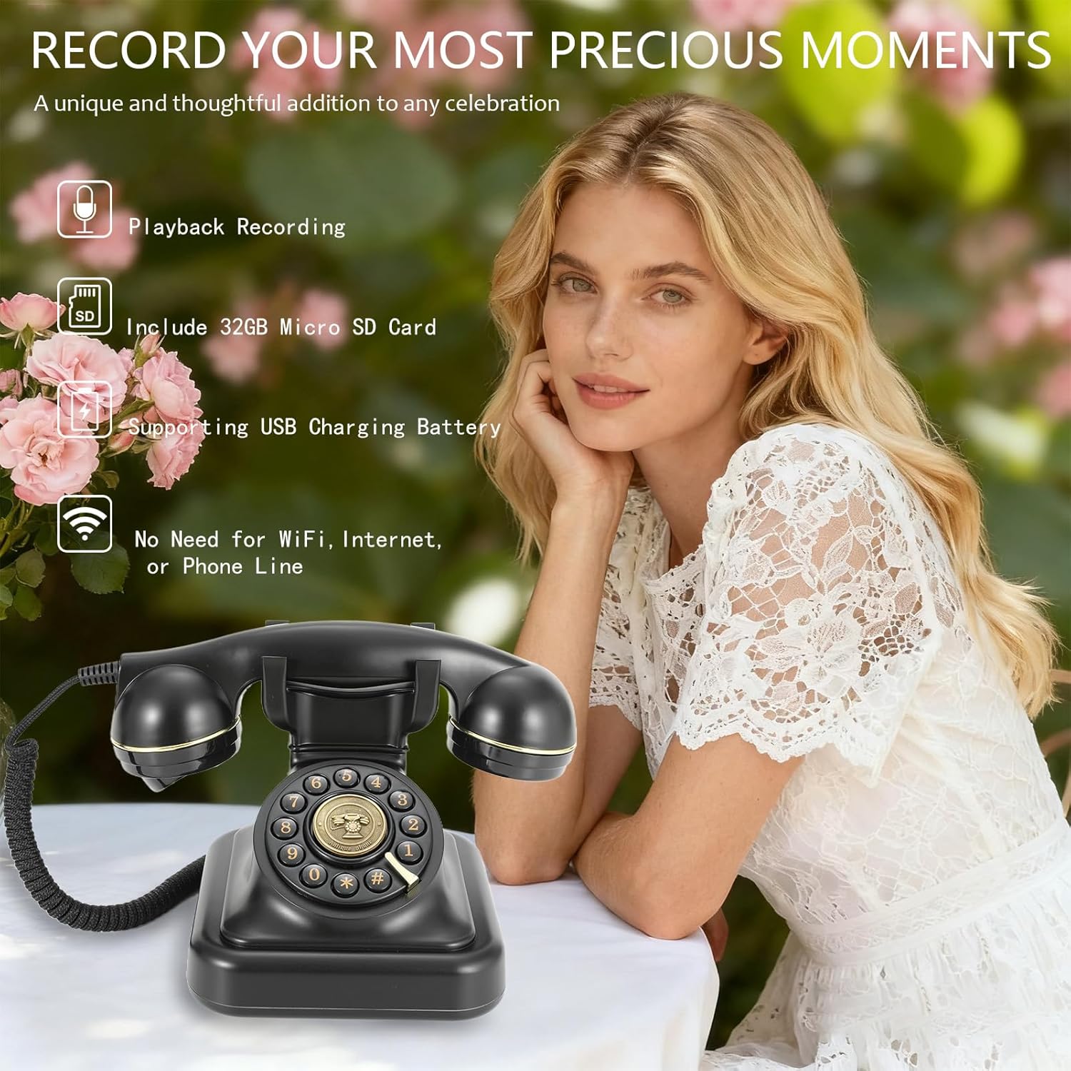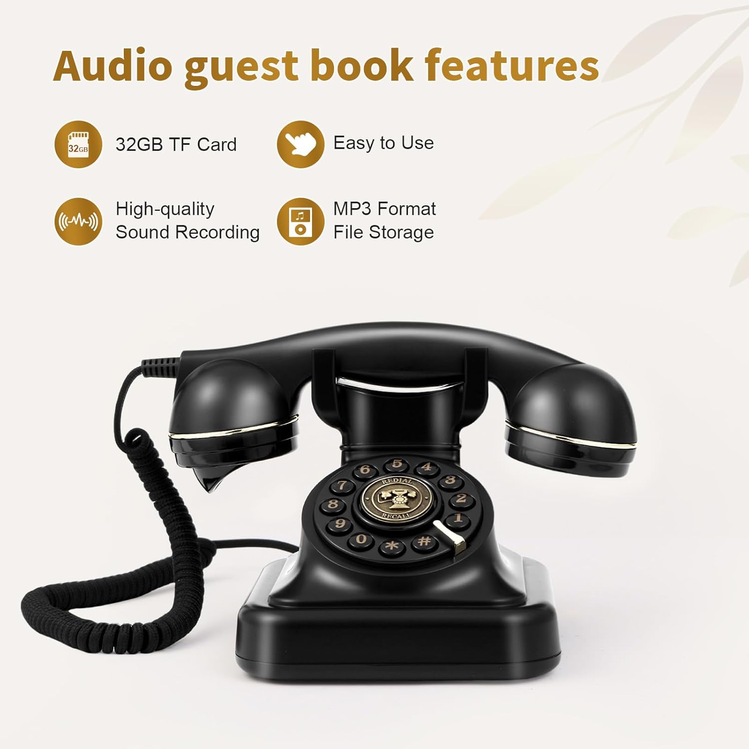 Audio Guest Book Wedding Phone, Audio Guest Book Record Customized Audio Messages Guest Book Alternatives Classic Retro Phone for Parties Birthdays Rentals Confessions Special Occasions (White)
