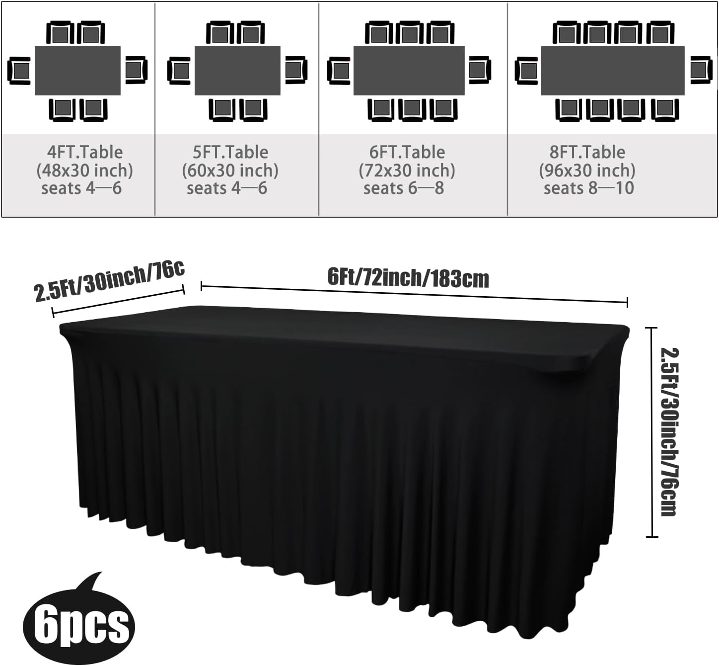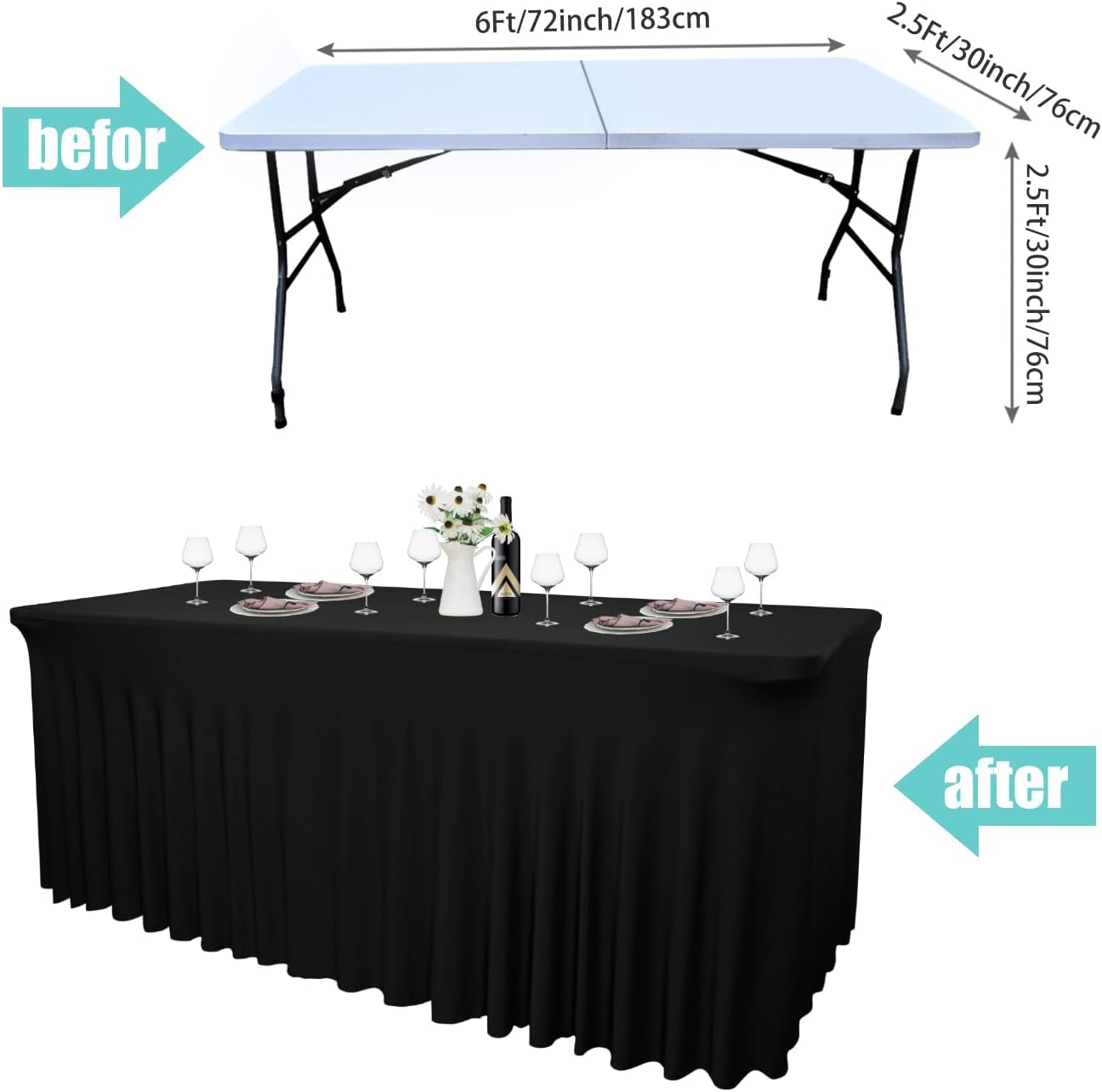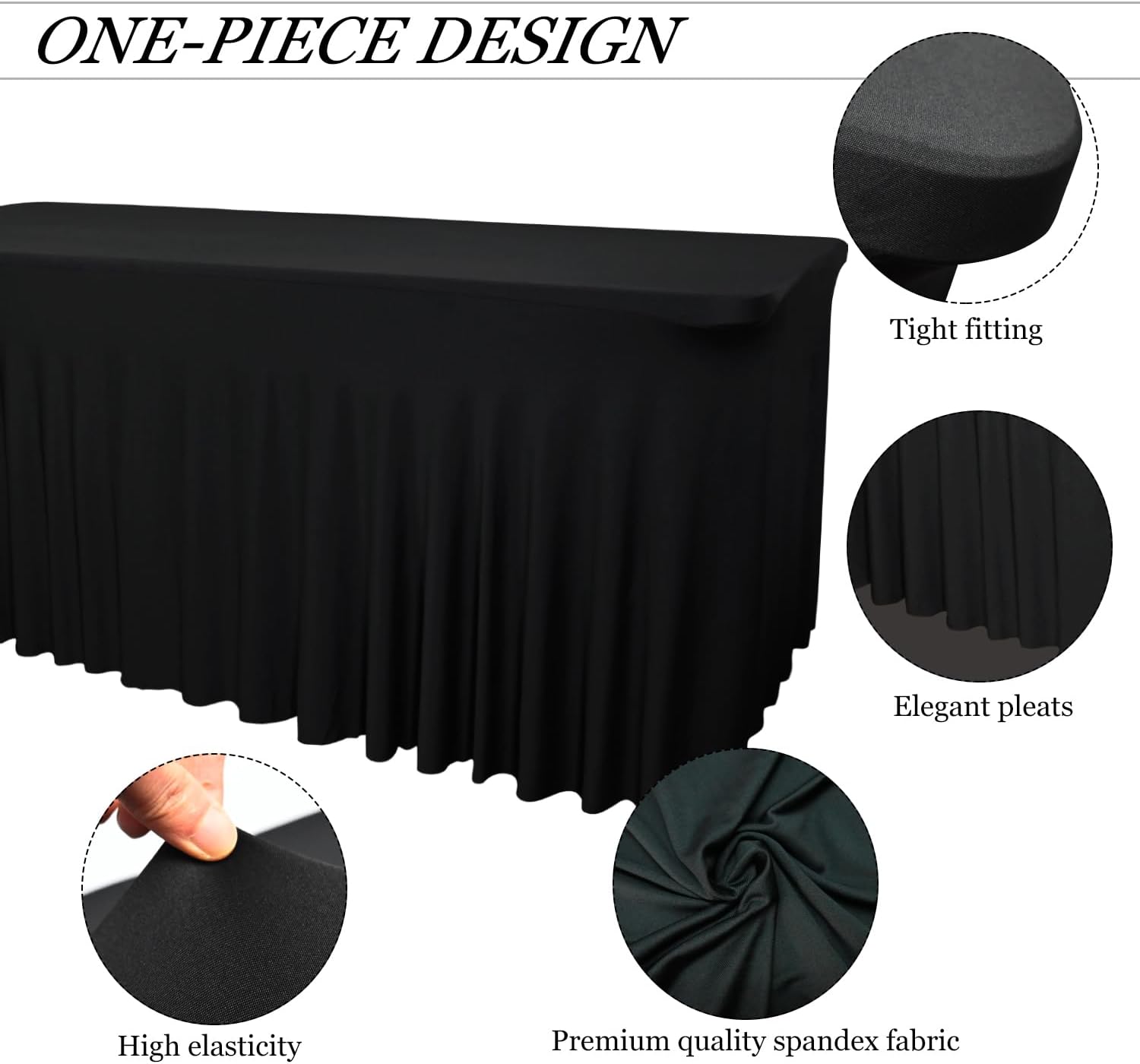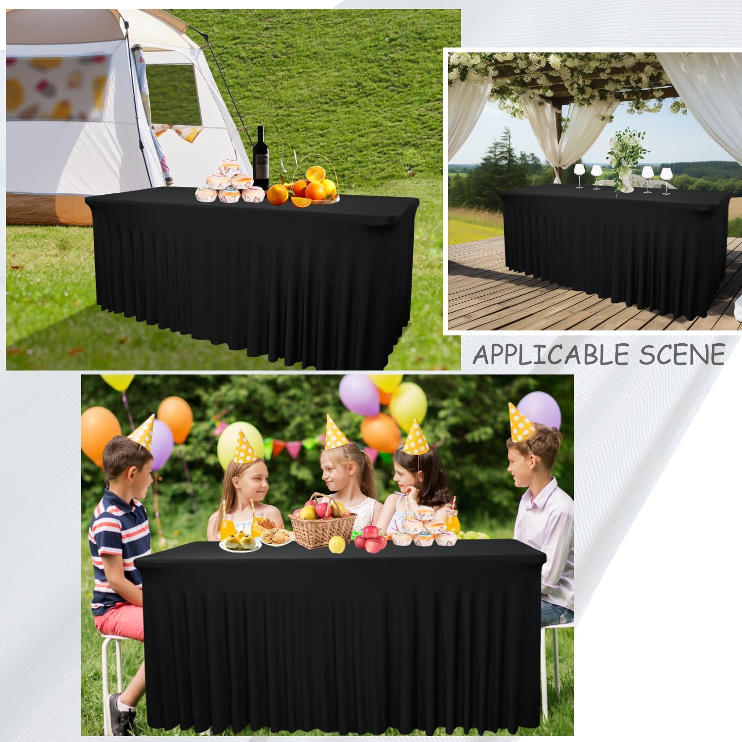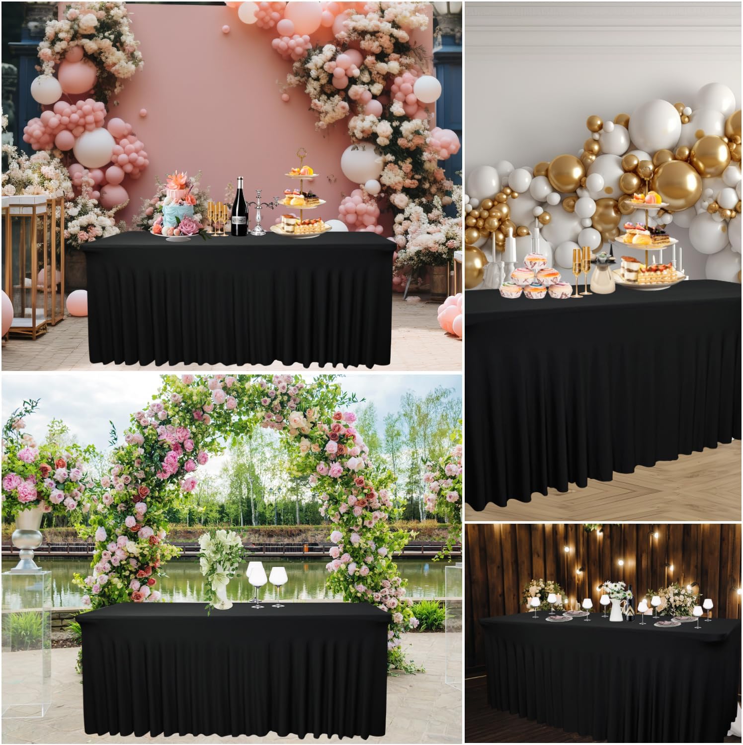 4 Pack - Black Spandex Table Skirt for 6ft Tables (72" L x 30" W x 30" H) | Stretch, Washable & Wrinkle-Resistant Fitted Cover | Banquet, Birthday Party Decor