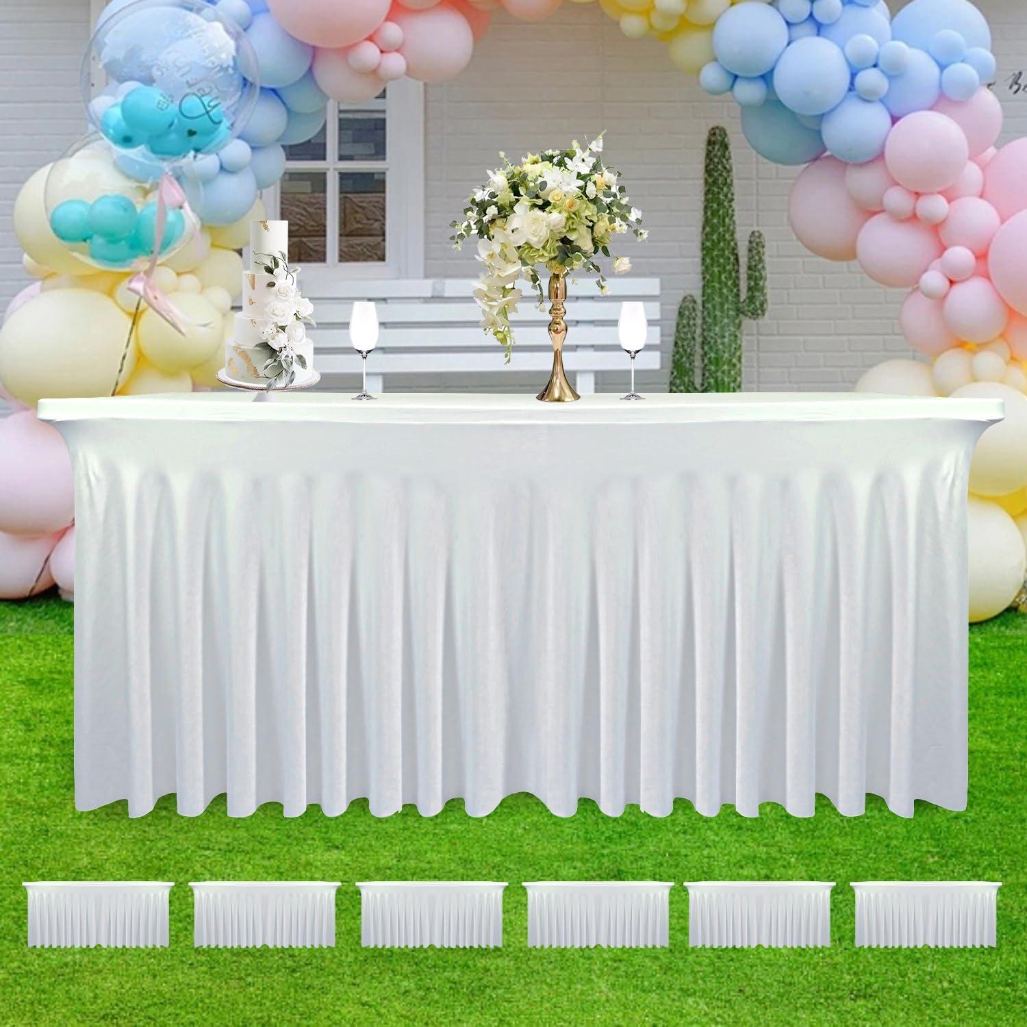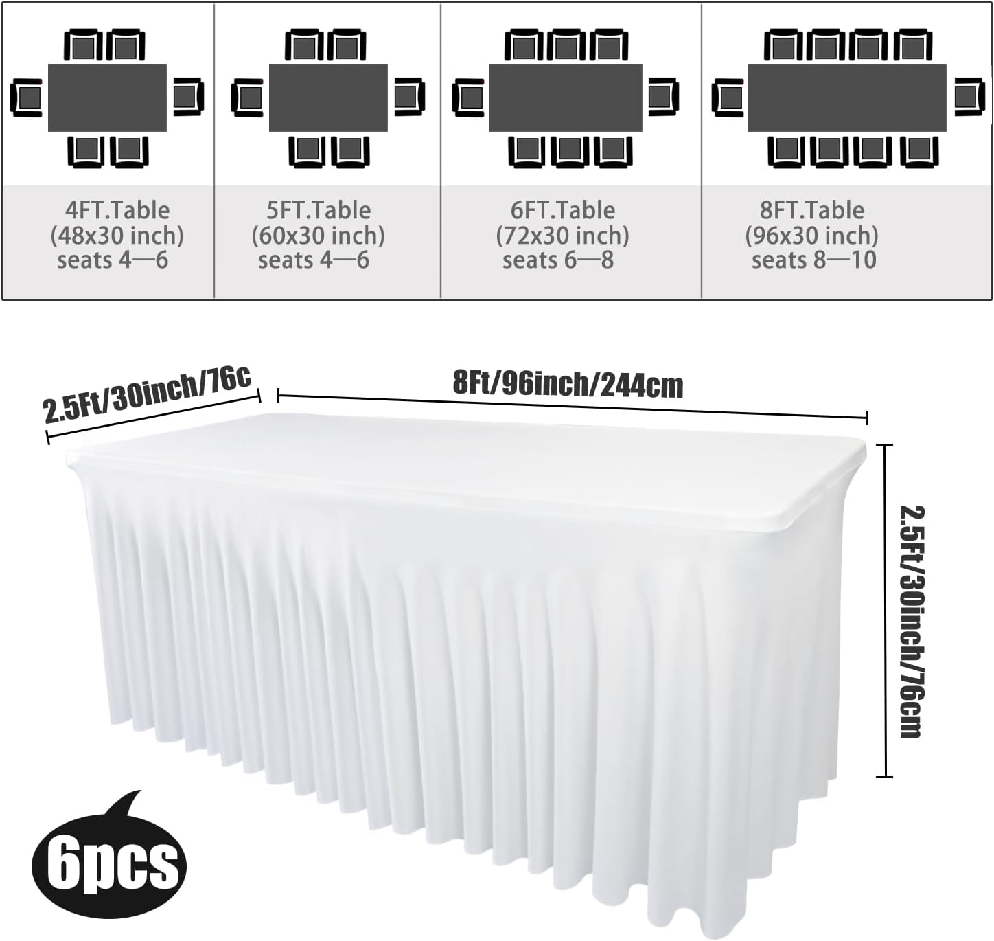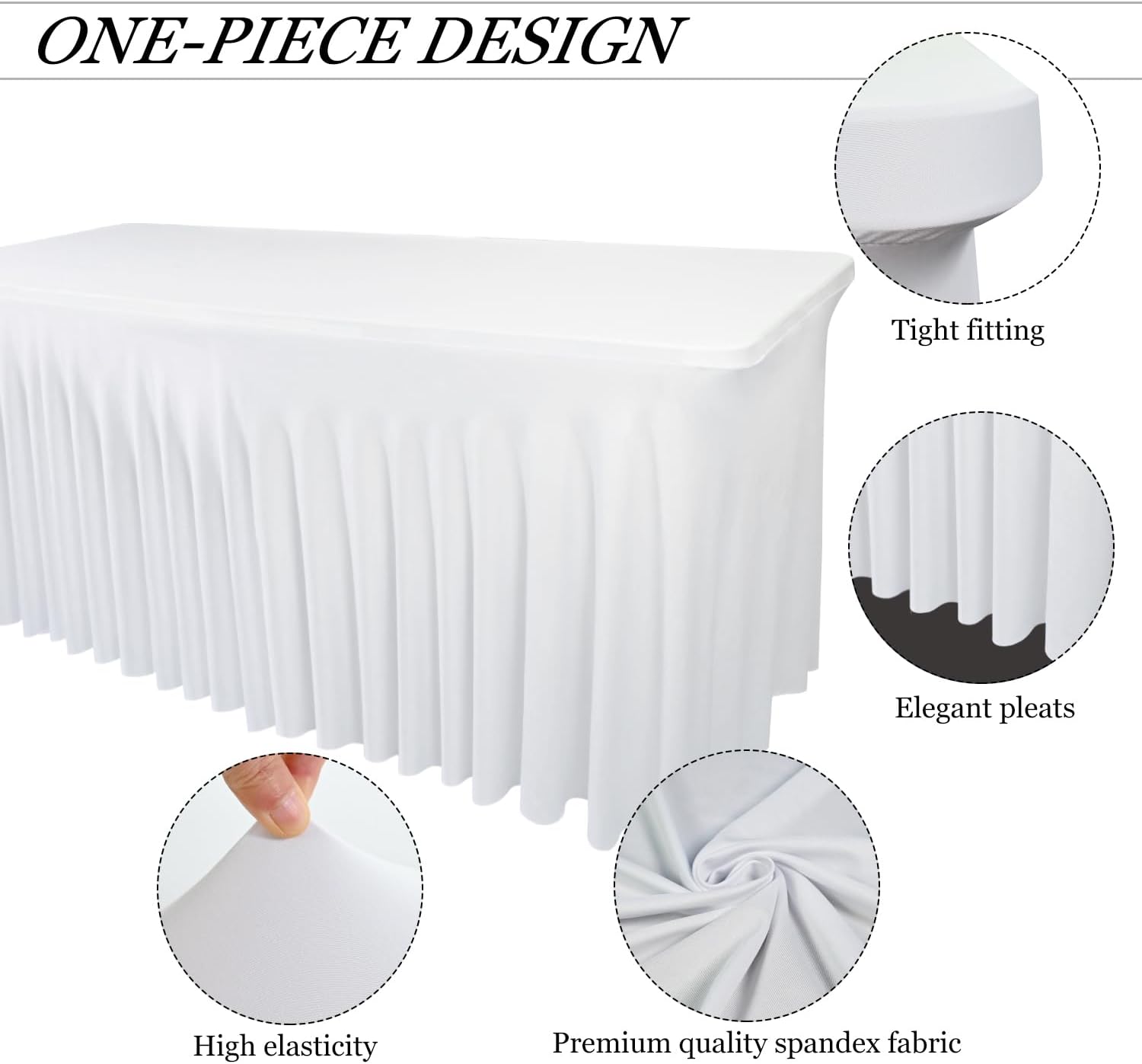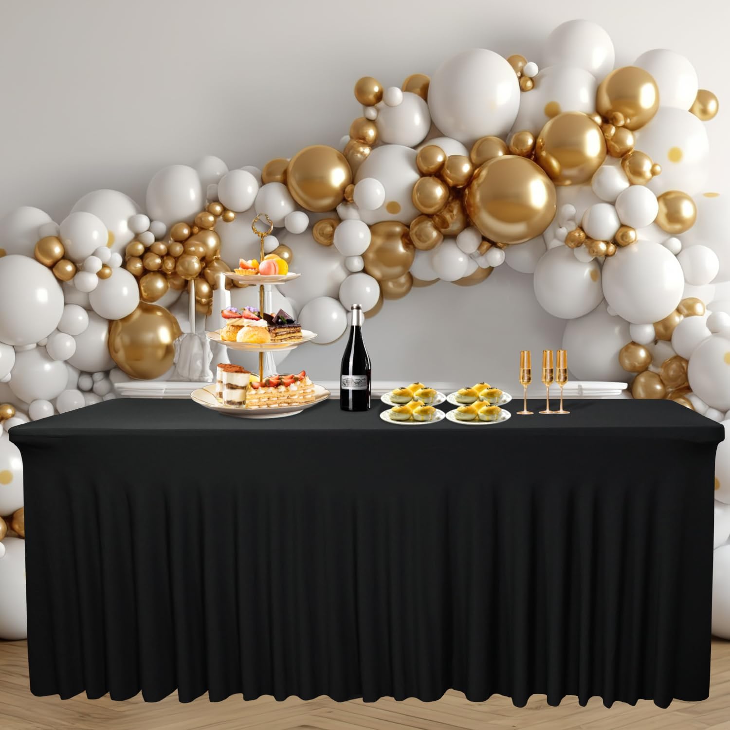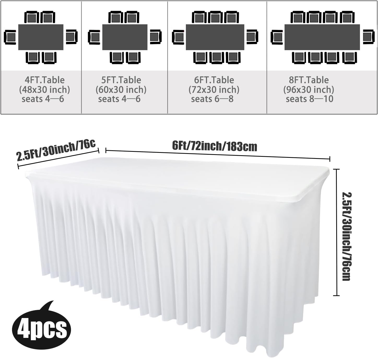 4 Pack - Black Spandex Table Skirt for 6ft Tables (72" L x 30" W x 30" H) | Stretch, Washable & Wrinkle-Resistant Fitted Cover | Banquet, Birthday Party Decor