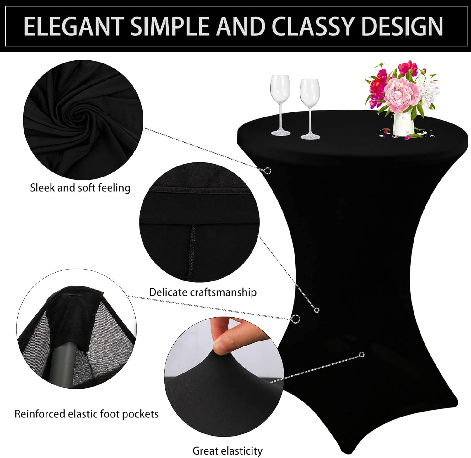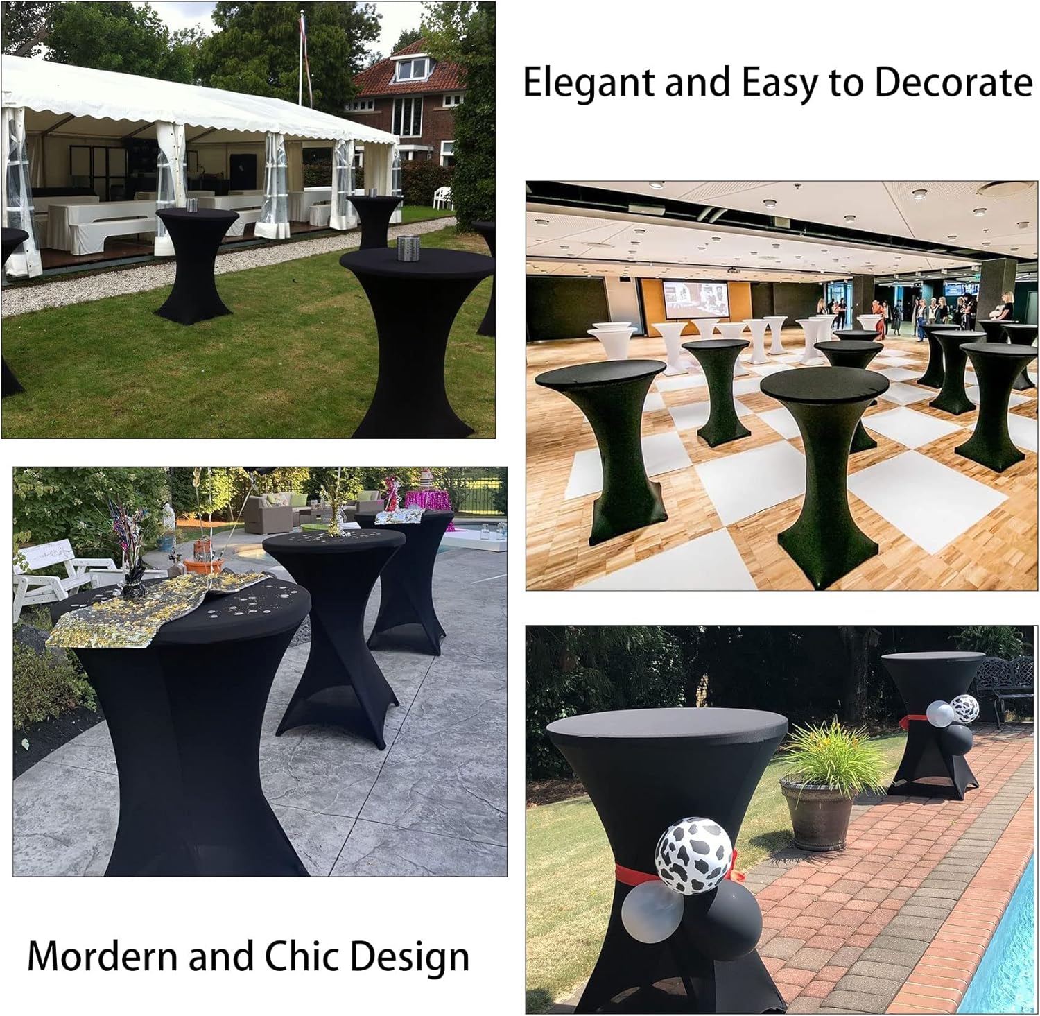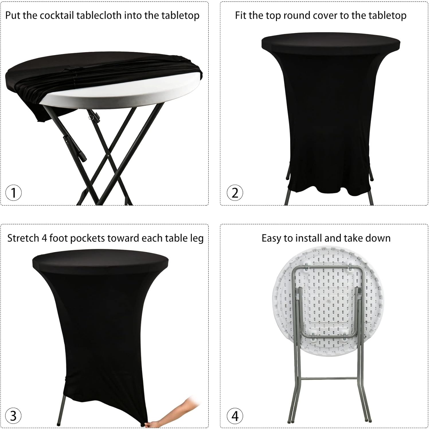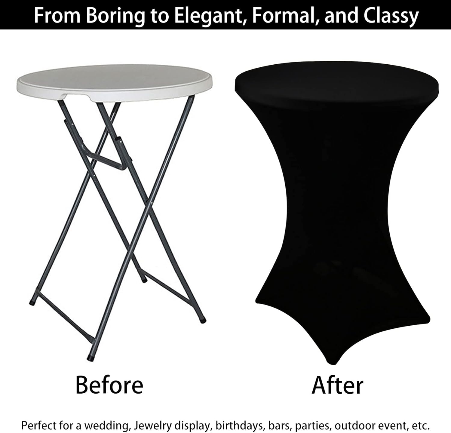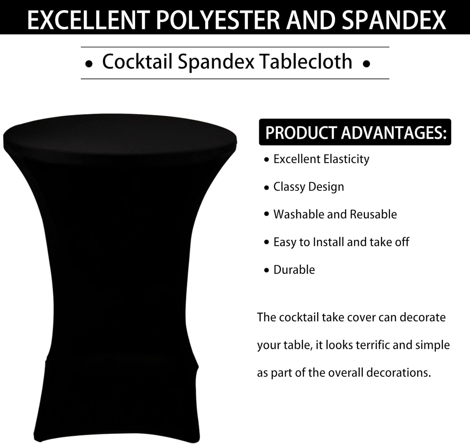 12 Pack Pack Cocktail Spandex Tablecloth 32"x43" Cocktail Table Cover Fitted for High Top Round Table for Bar Wedding Birthday Party Banquet (Black)