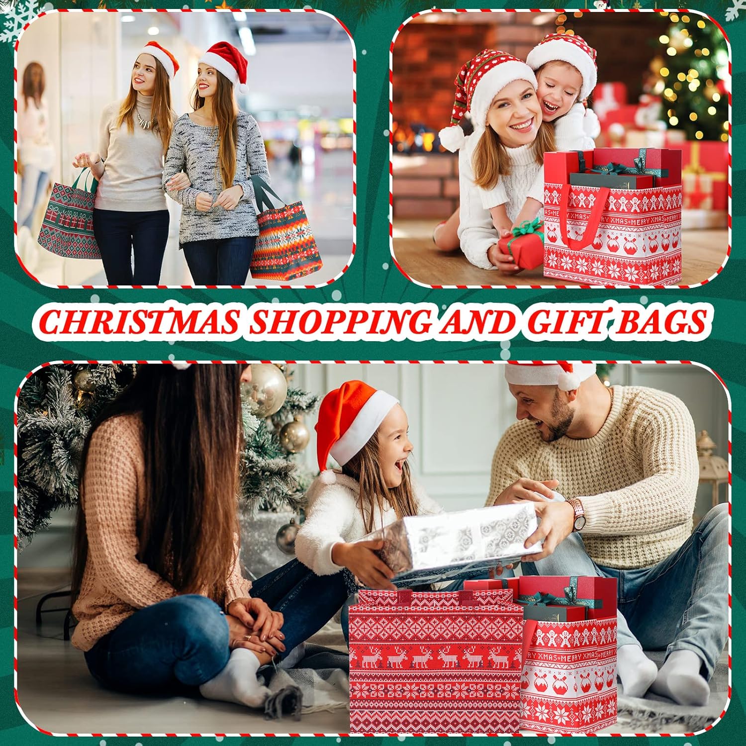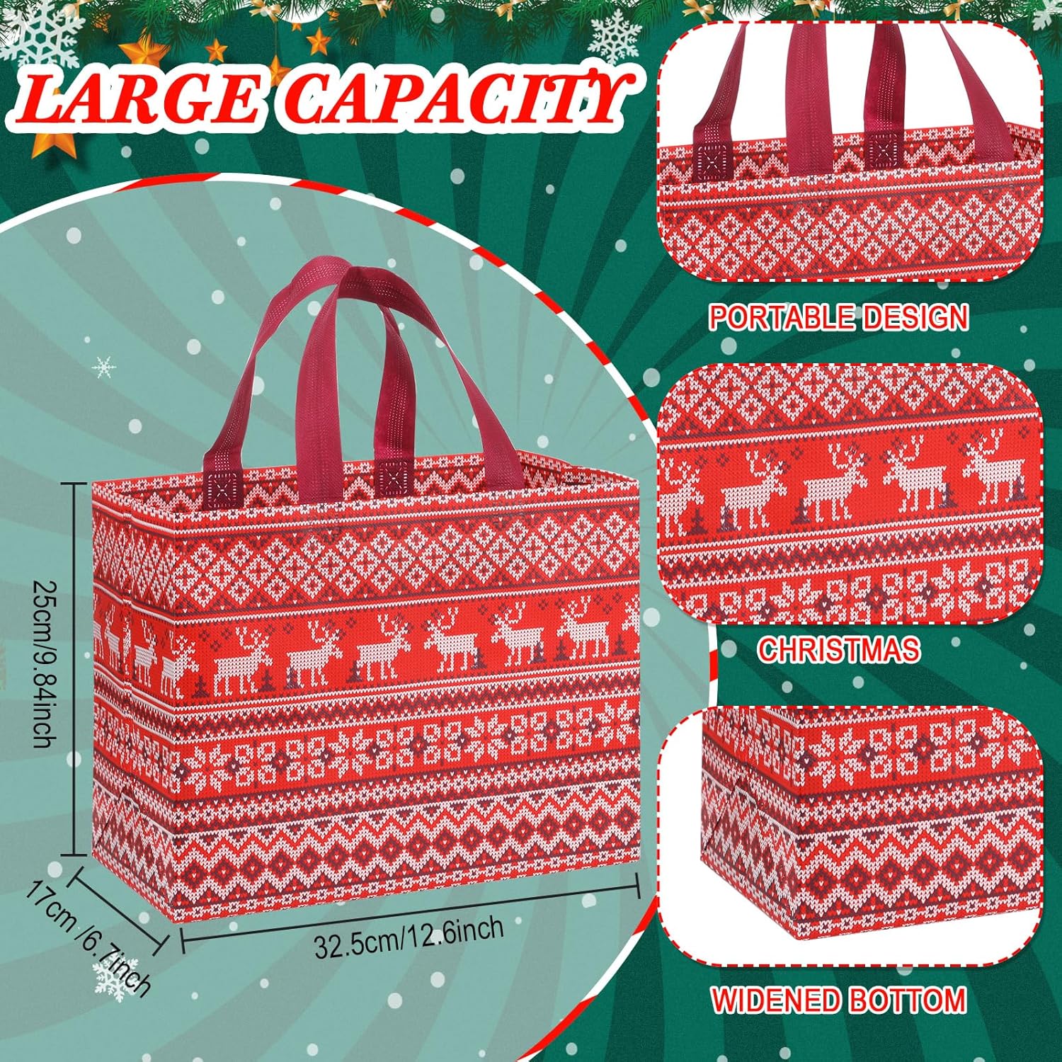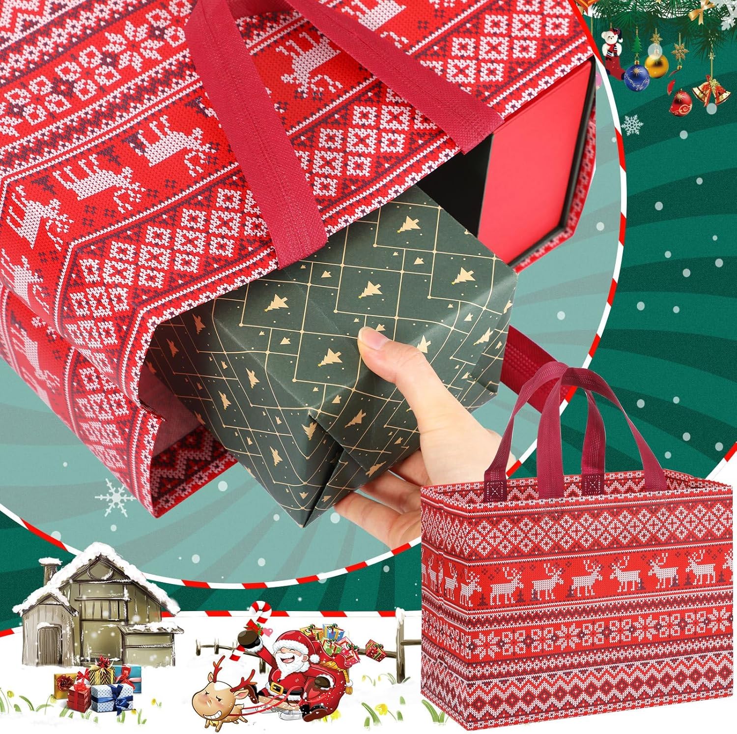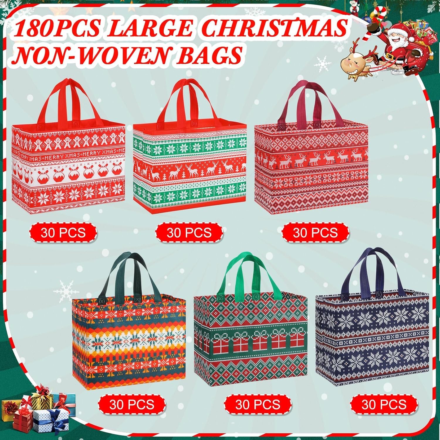 Sanwuta 180 Pcs Ugly Sweater Christmas Bags for Gifts Large Christmas Tote Bags Reusable Non Woven Treat Pockets 12.8 x 9.8 x 6.7 in