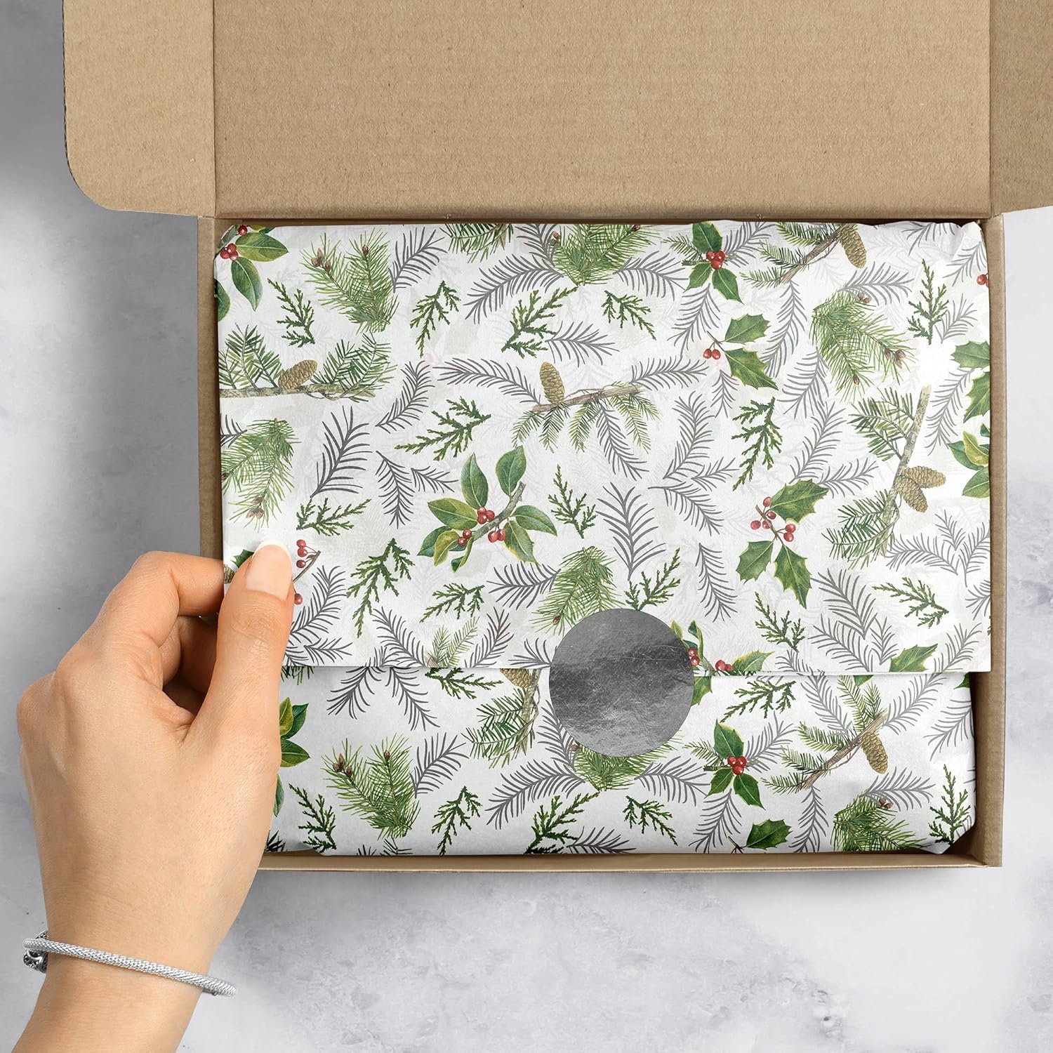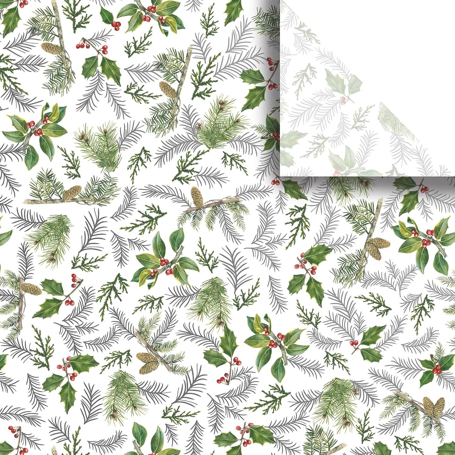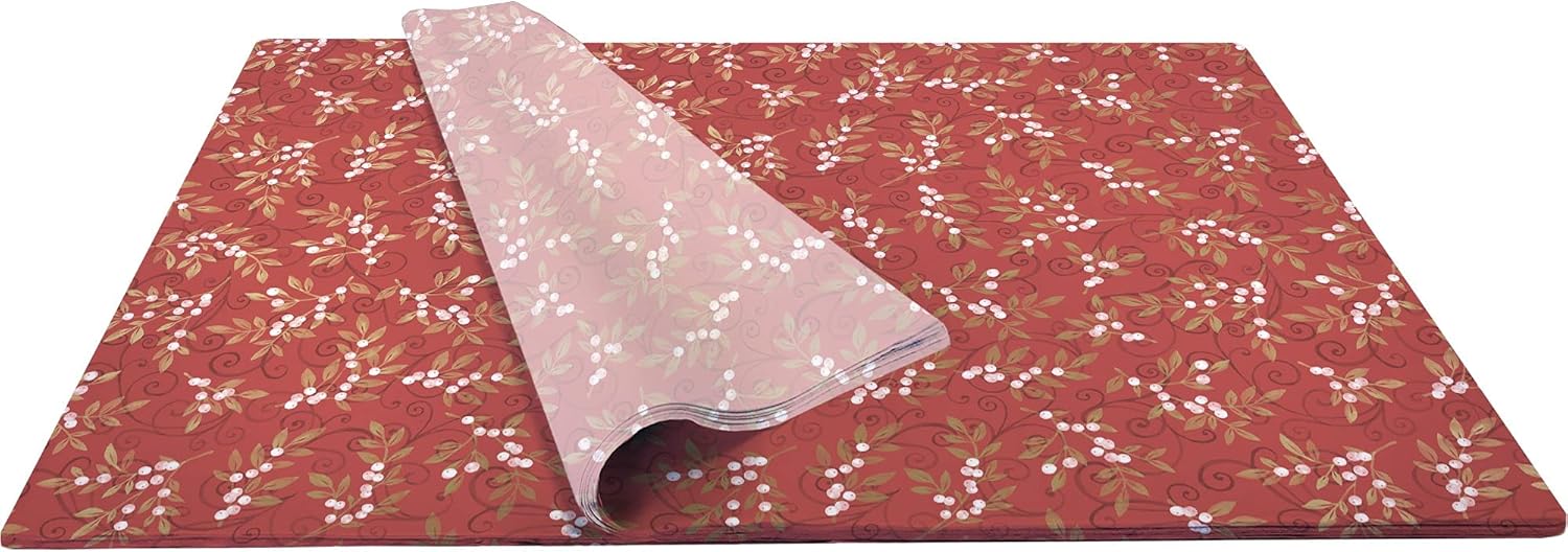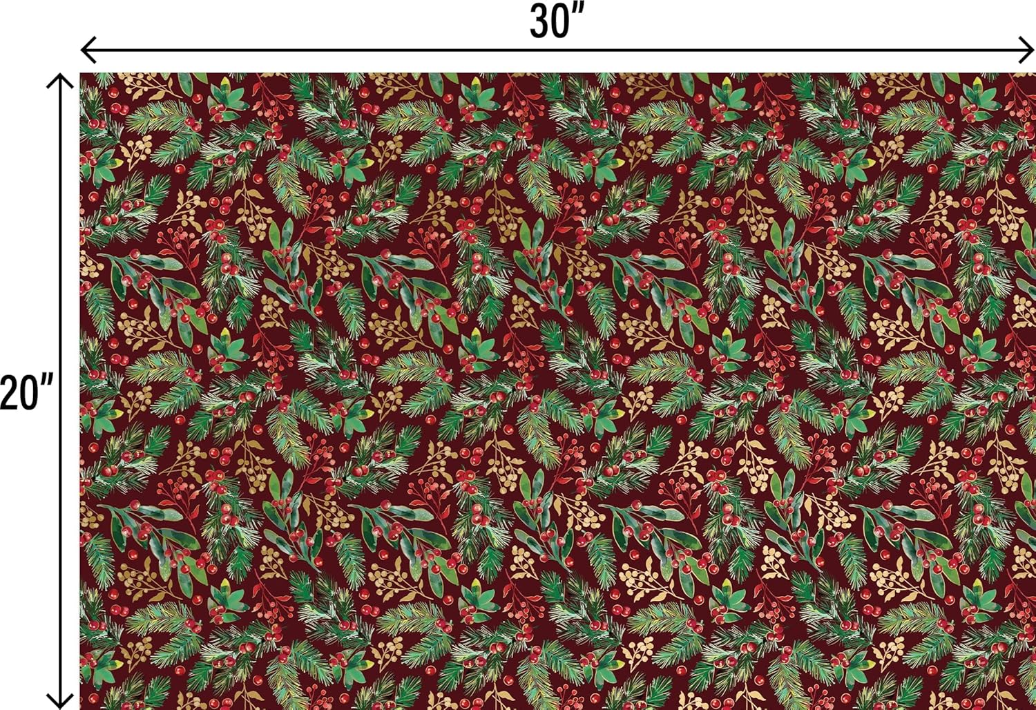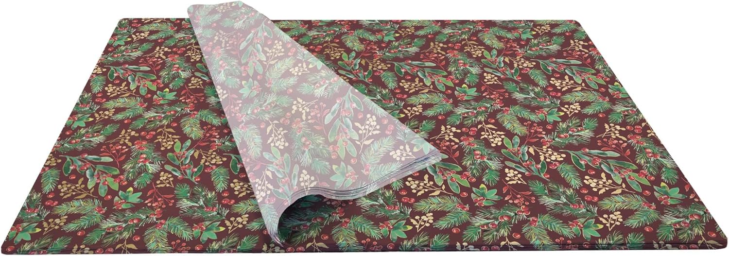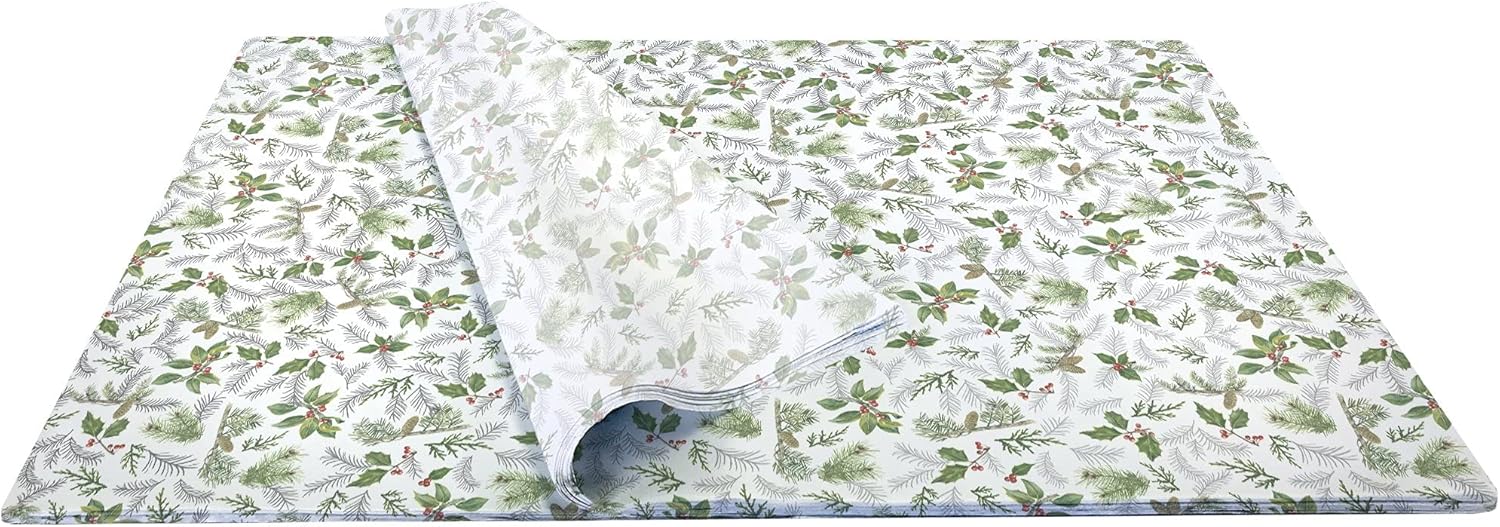 Jillson & Roberts Printed Christmas Gift Tissue 20" x 30", Winter Foliage (240 Unfolded Sheets)