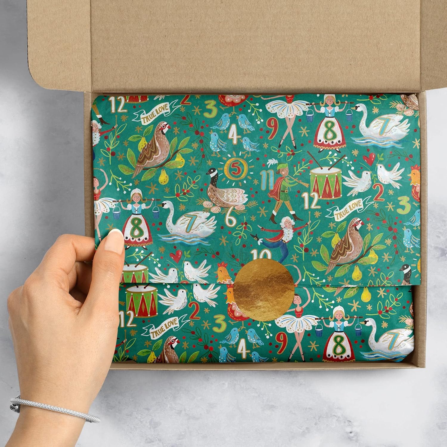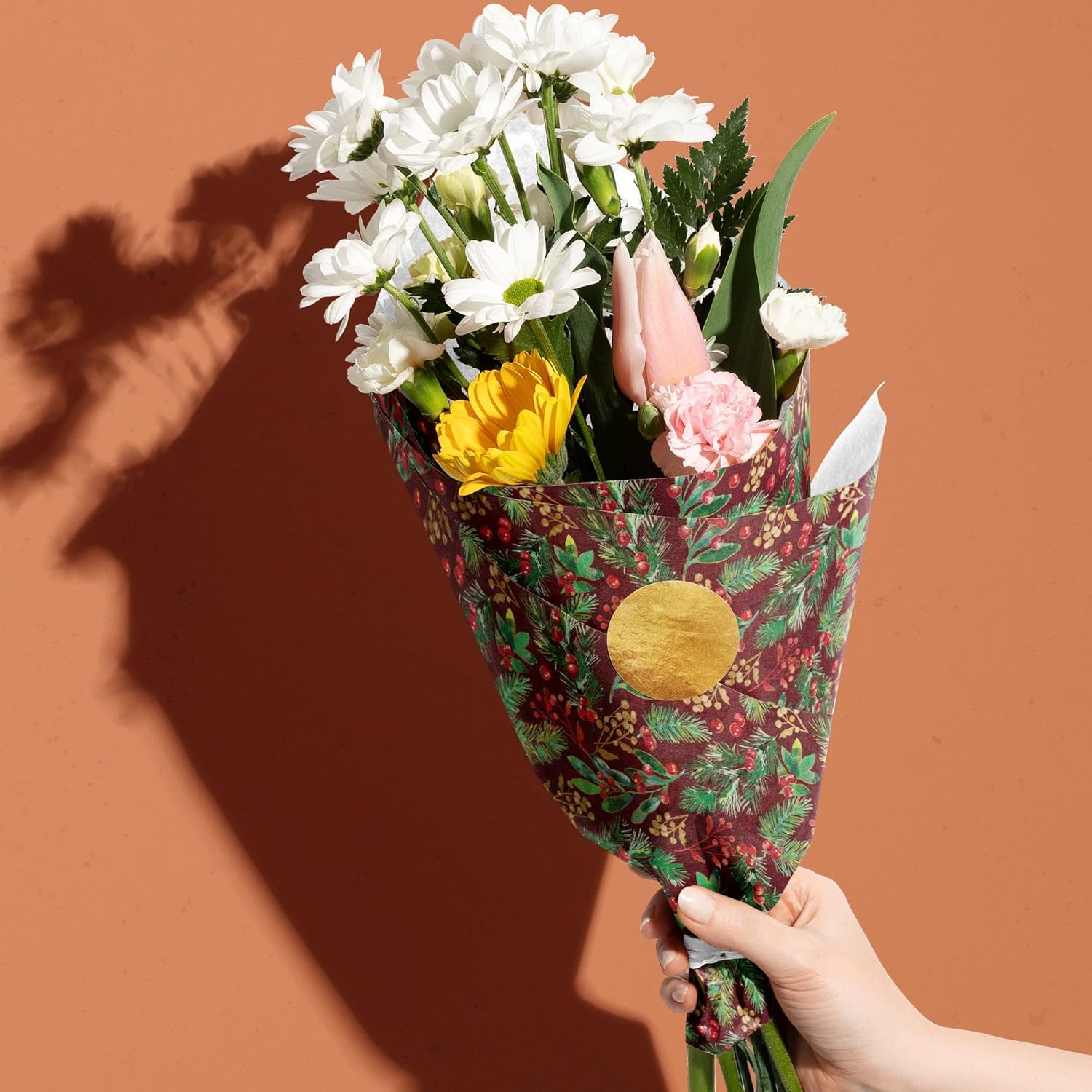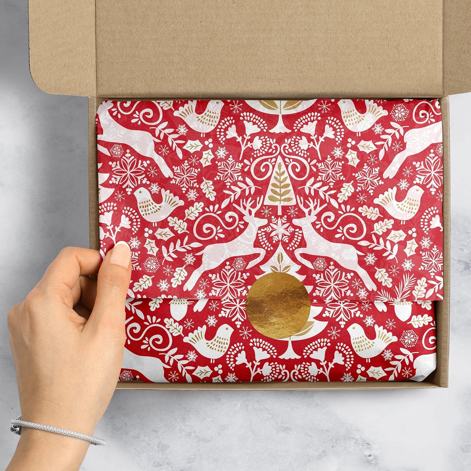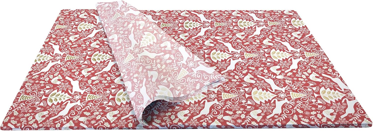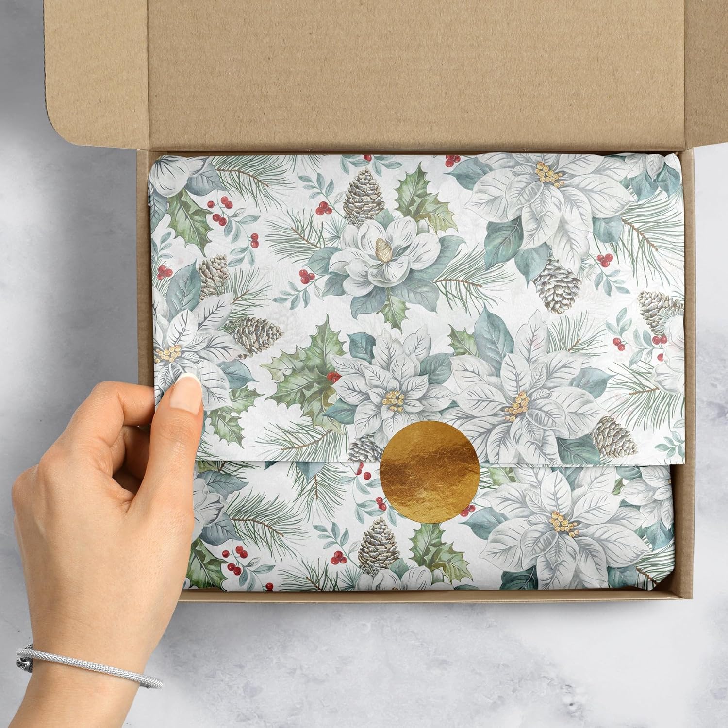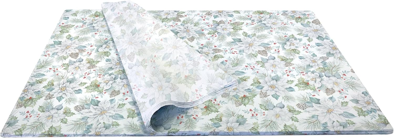 Jillson & Roberts Printed Christmas Gift Tissue 20" x 30", Winter Foliage (240 Unfolded Sheets)