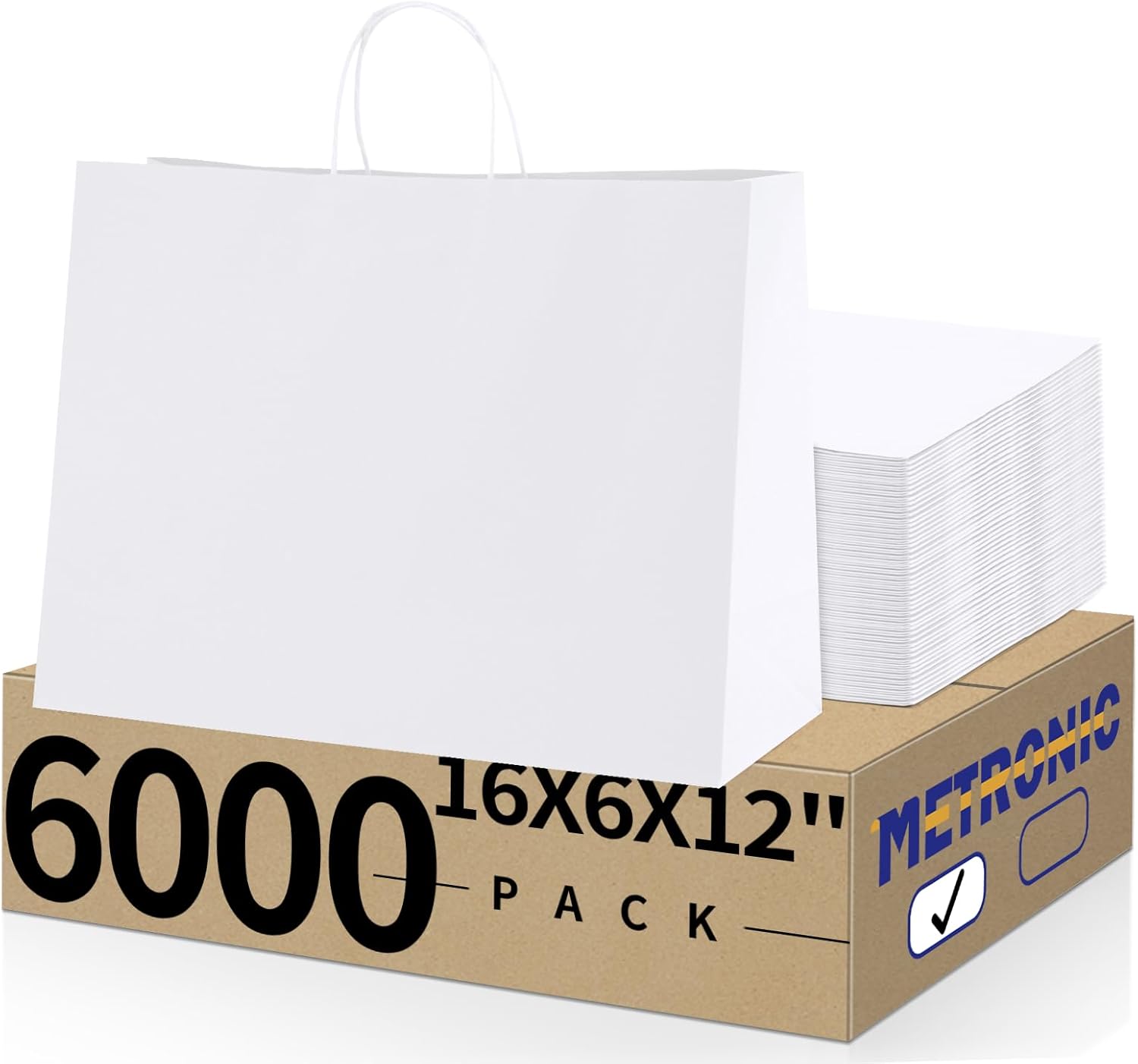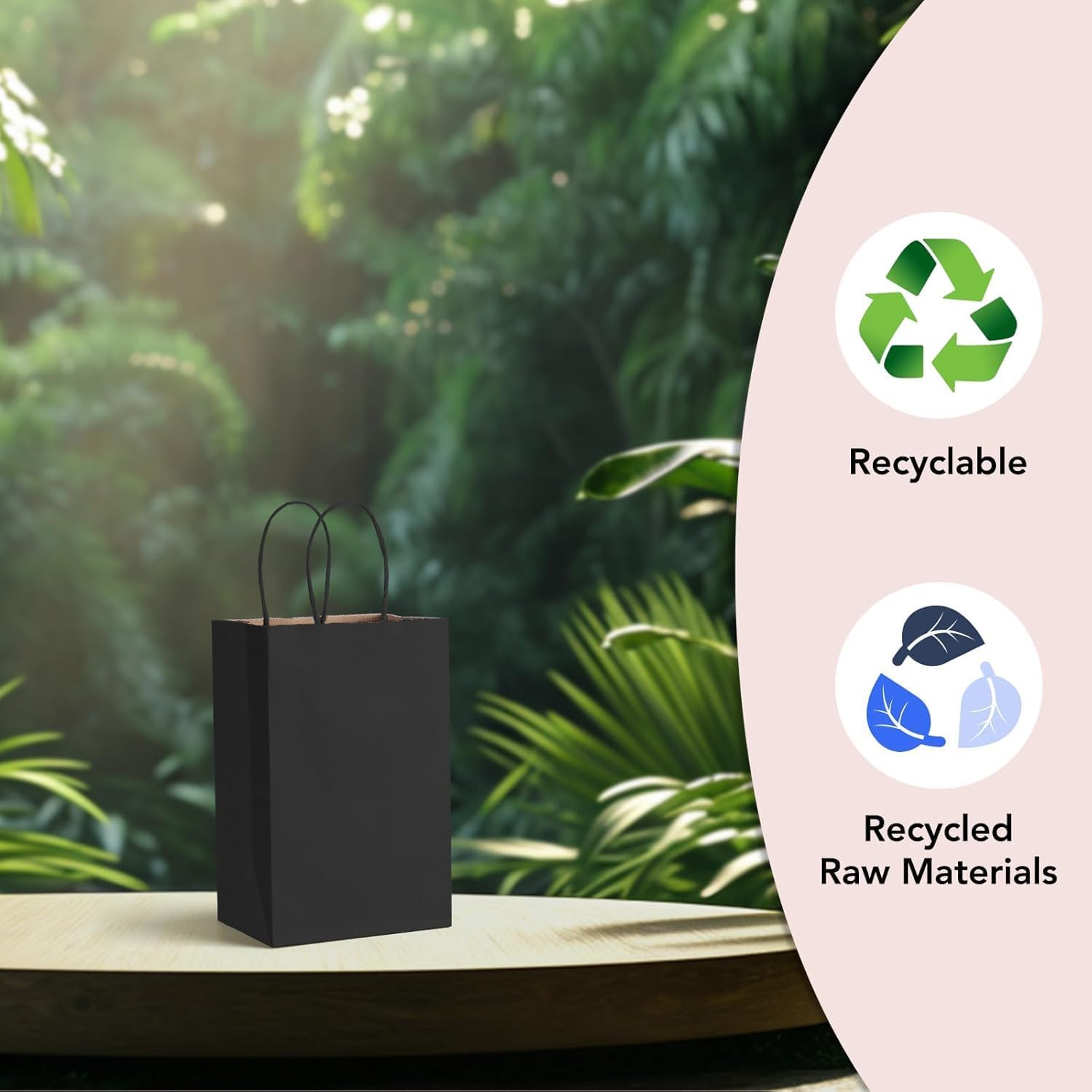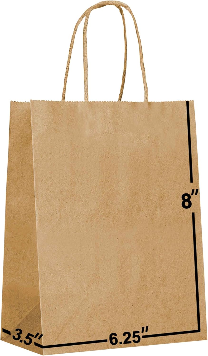 Brown Paper Bags with Handles Bulk [400 Bags] 6.25x3.5x8. Ideal for Shopping, Packaging, Retail, Party, Craft, Gifts, Wedding, Recycled, Business, Goody and Merchandise Bag