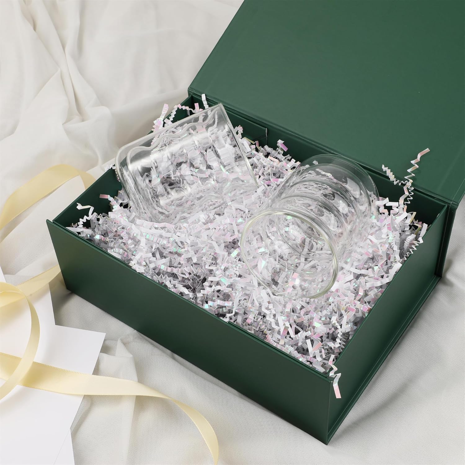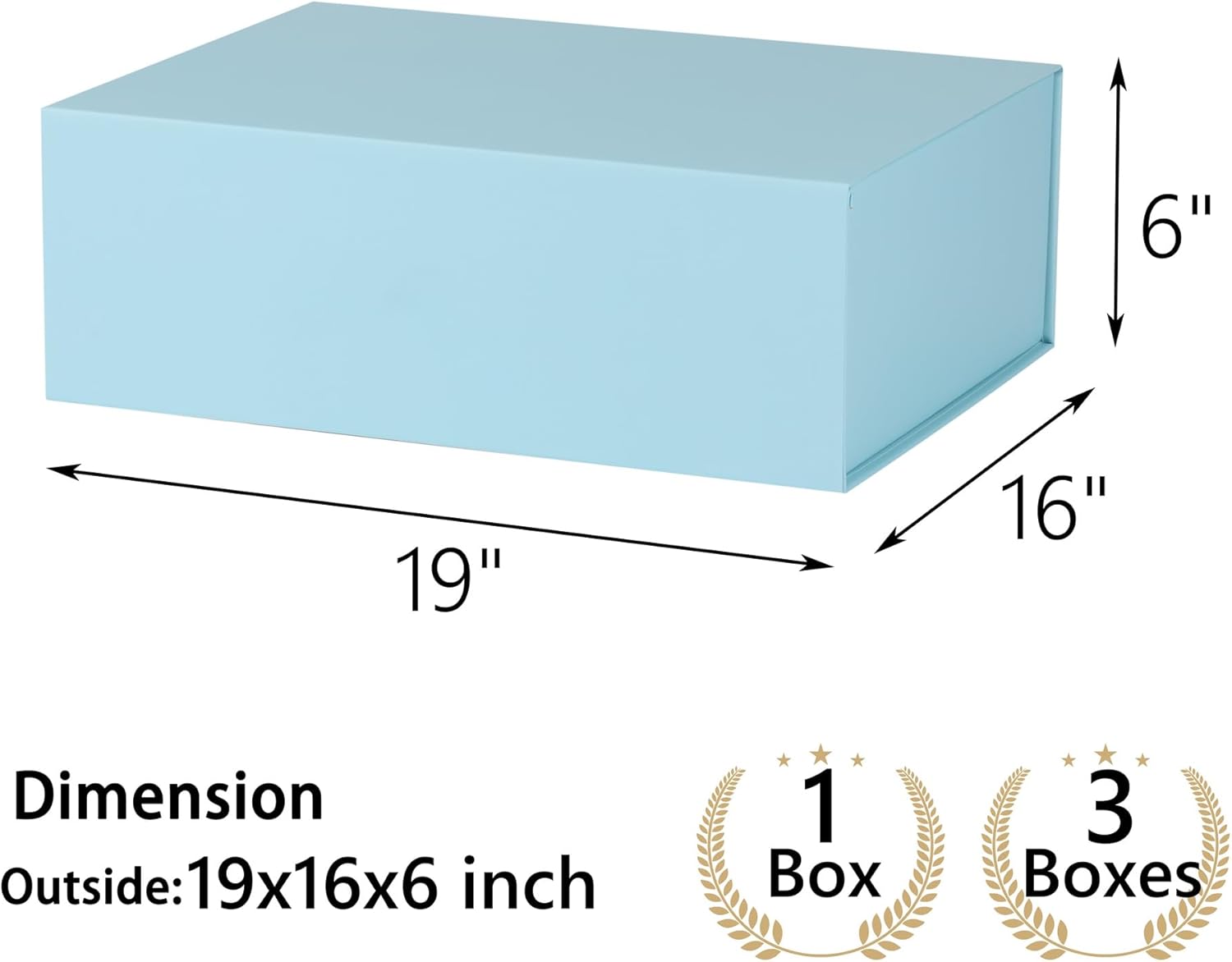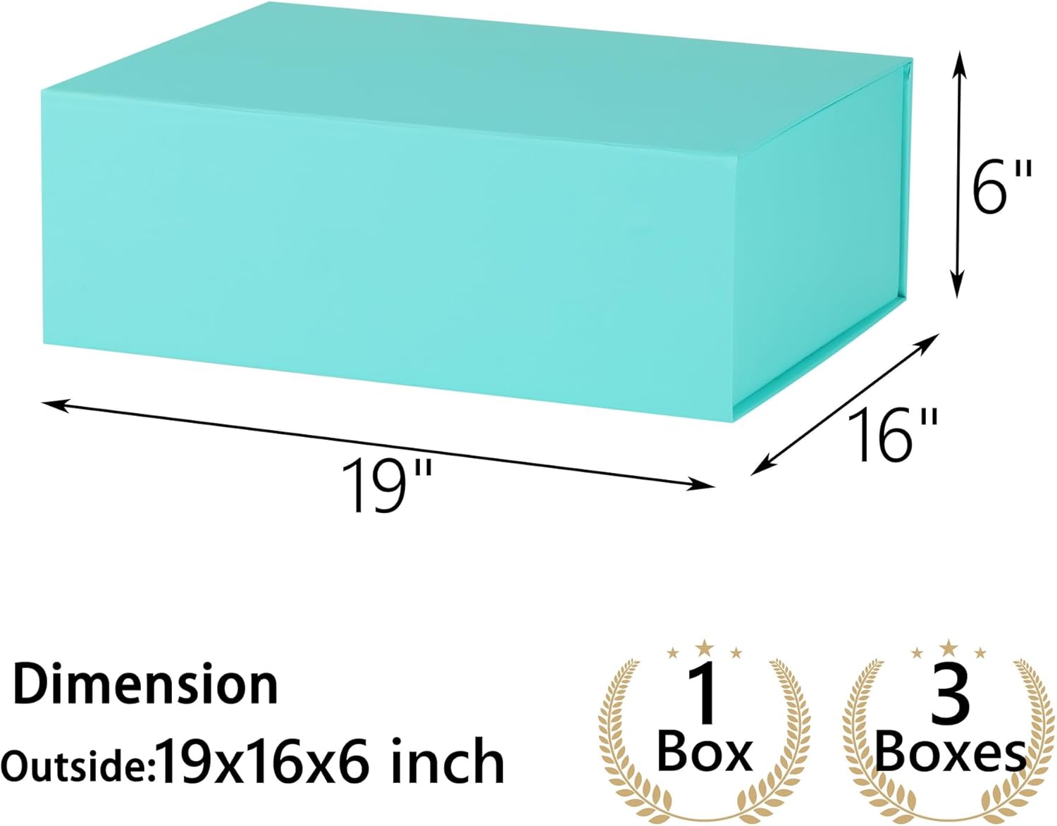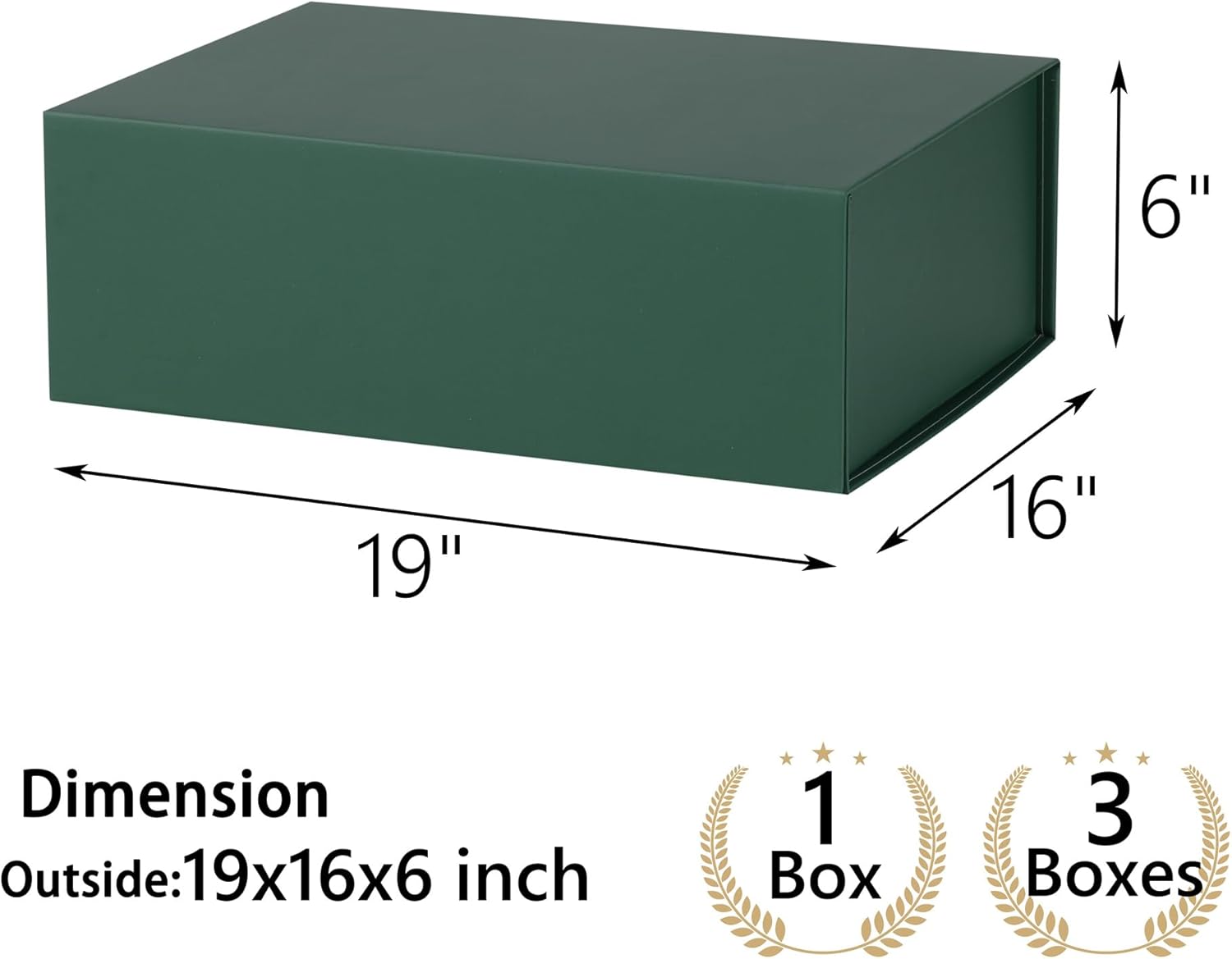 Green Gift Box, 19x16x6 inches, Magnetic, Includes Ribbon and DIY Stickers, Multi-Occasion, 3 Count