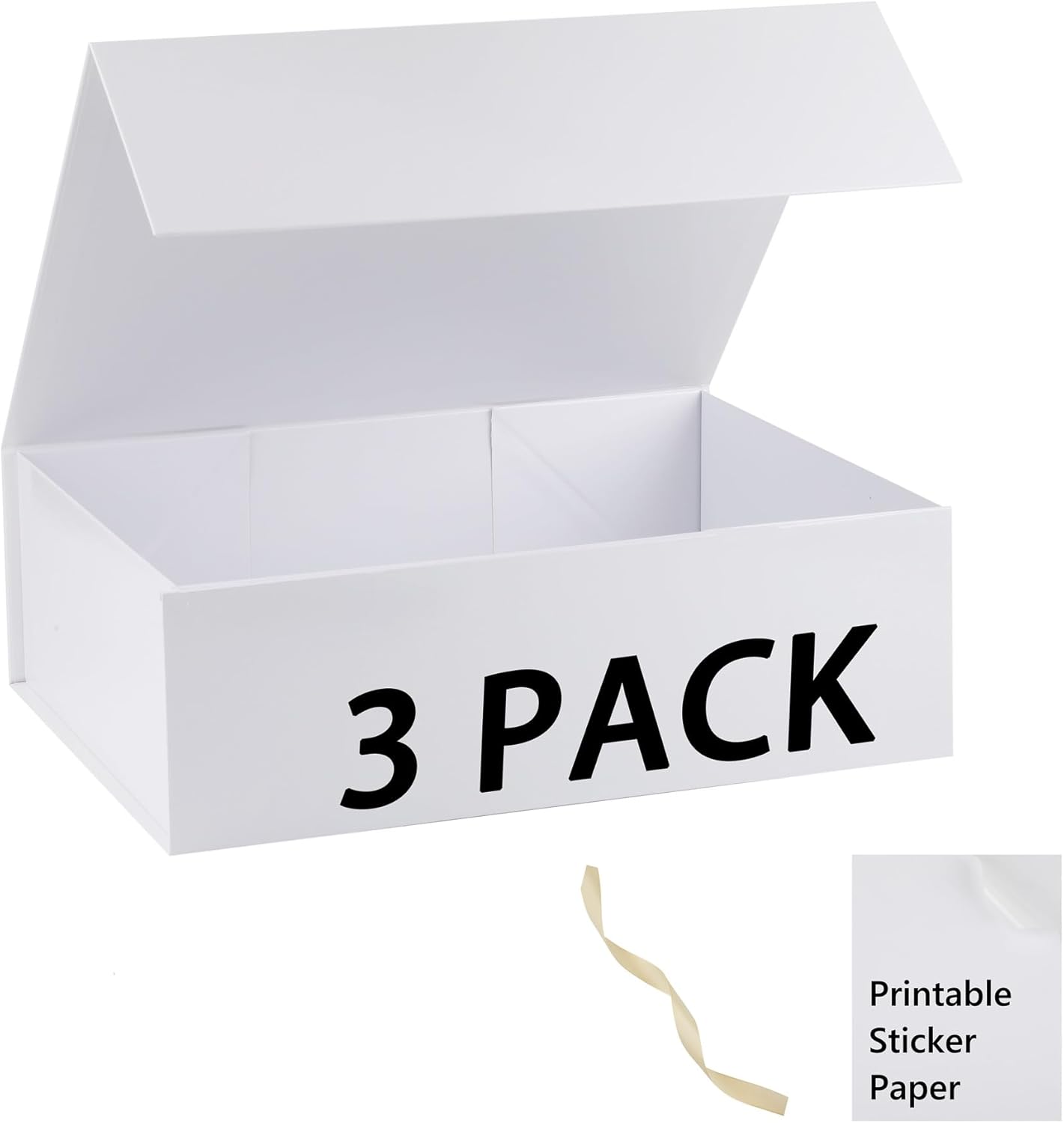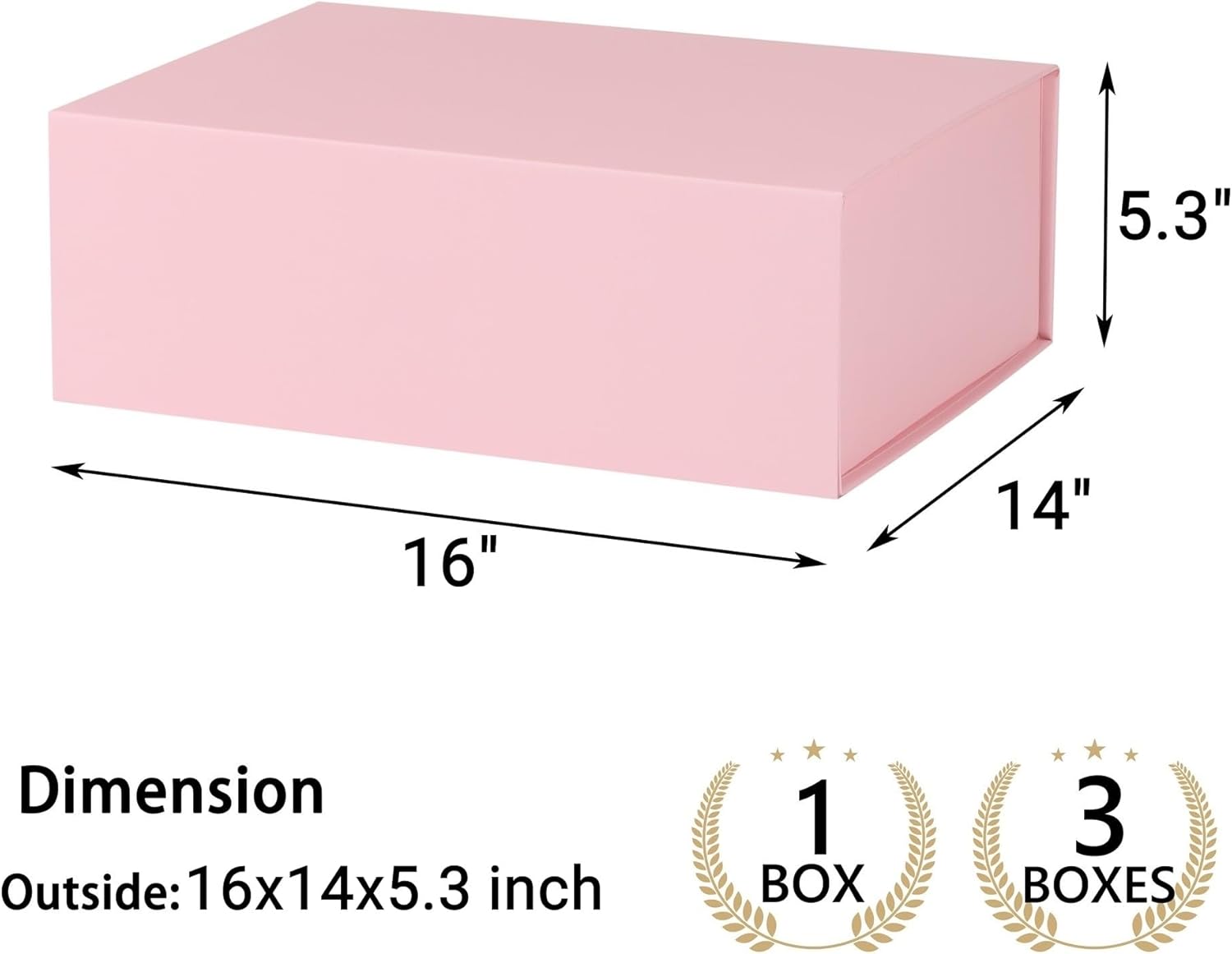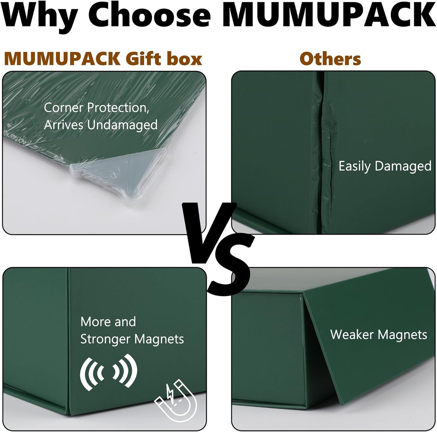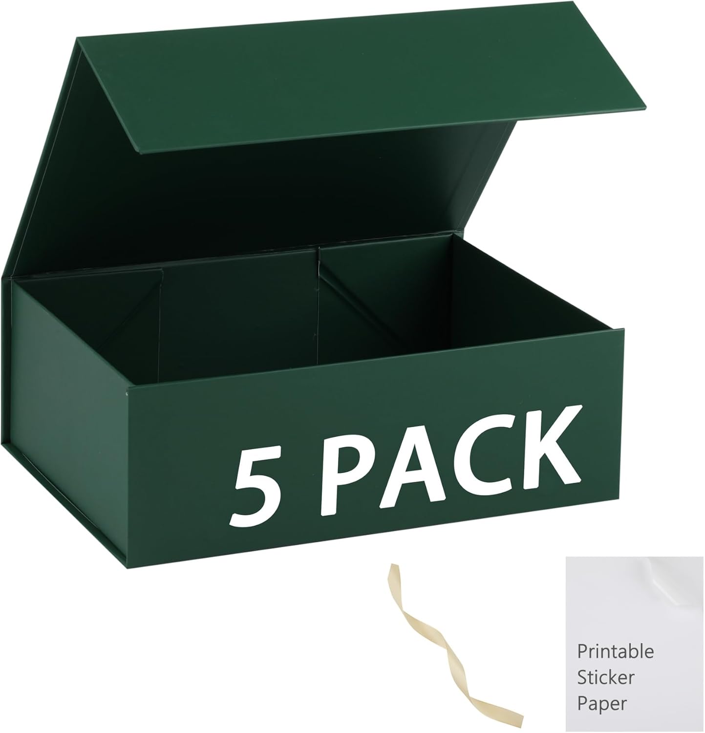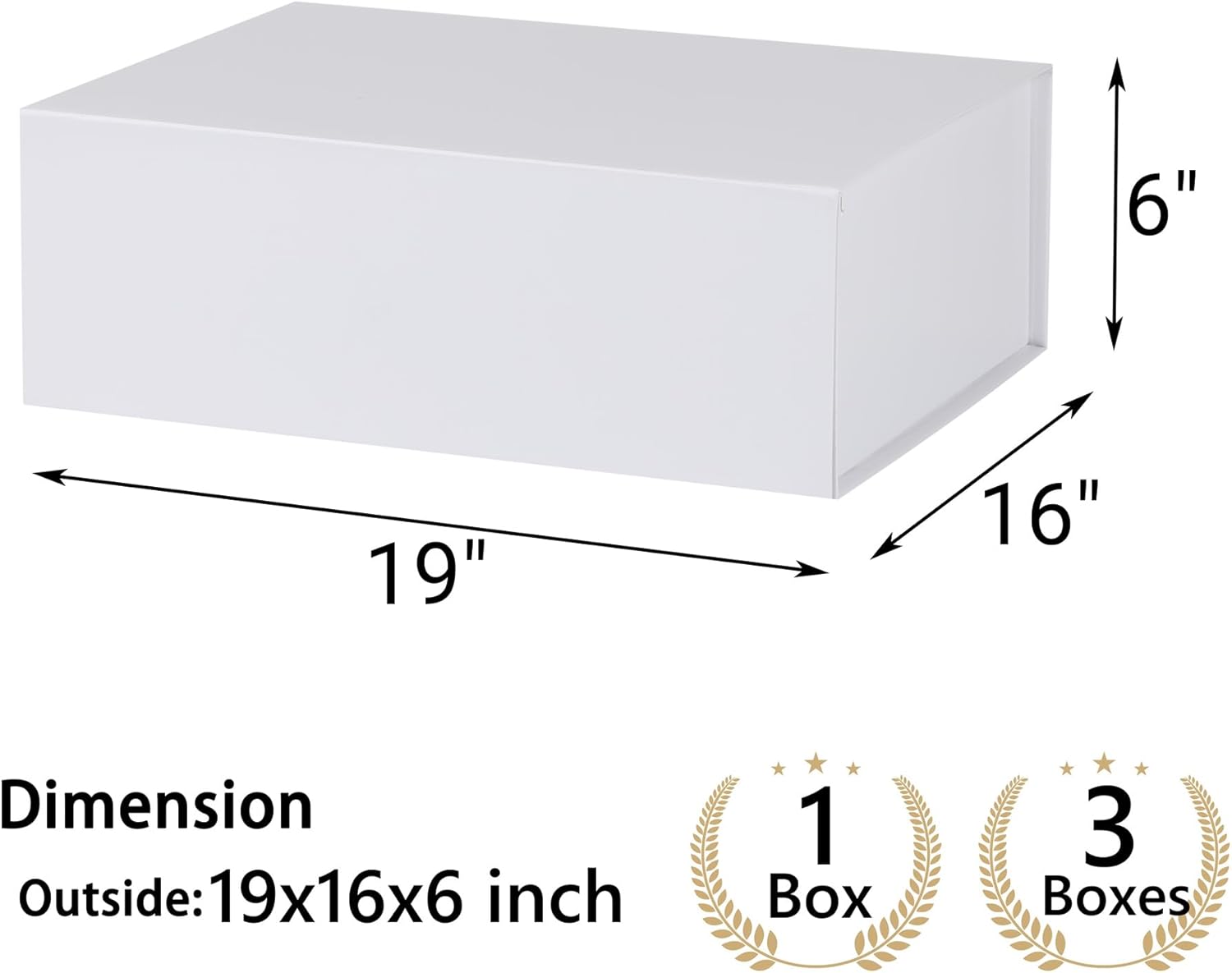 Green Gift Box, 19x16x6 inches, Magnetic, Includes Ribbon and DIY Stickers, Multi-Occasion, 3 Count