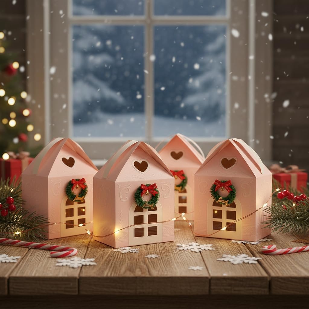 12 Pack Christmas Wonderland Cottage Gift Box, 3D Pop up Christmas House Gift Boxes, Large House Shaped Paper Candy Box, Real Estate Agent Gifts Houses Shaped Paper Bag, Party Favors