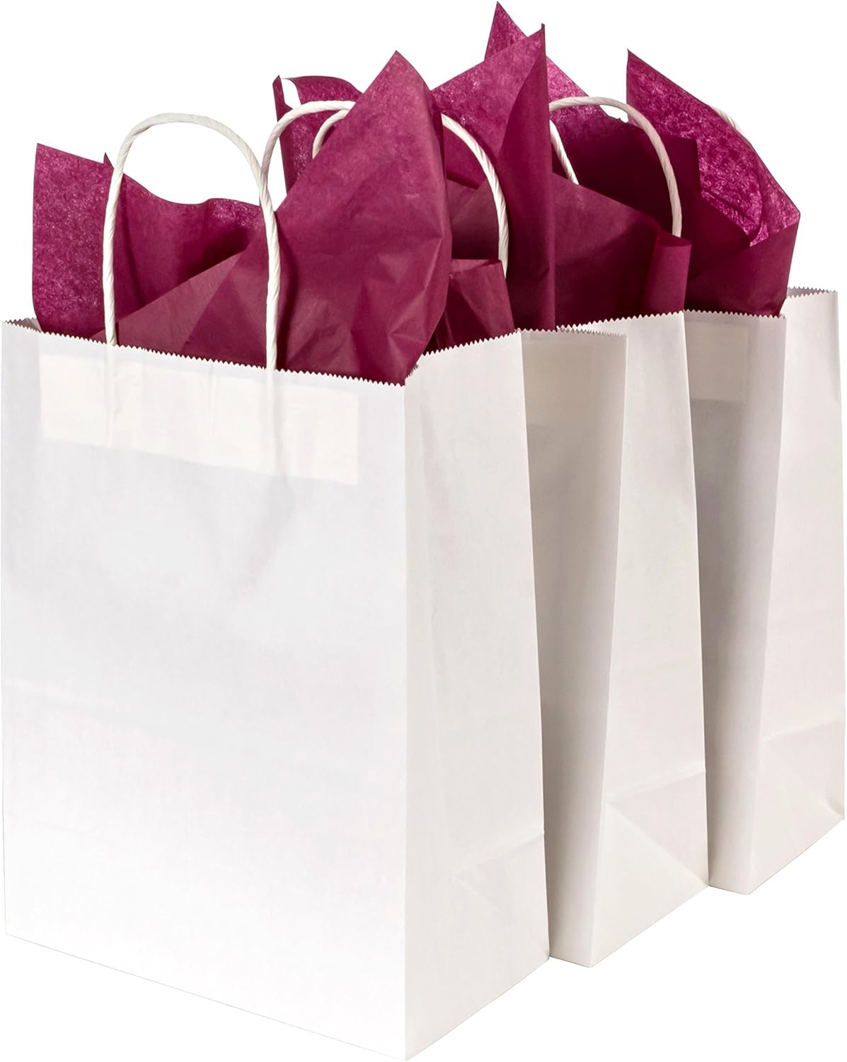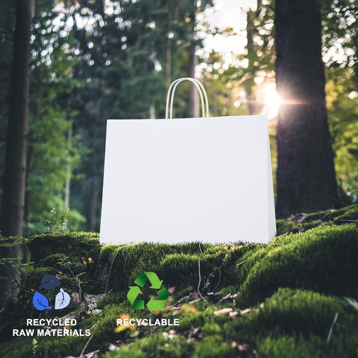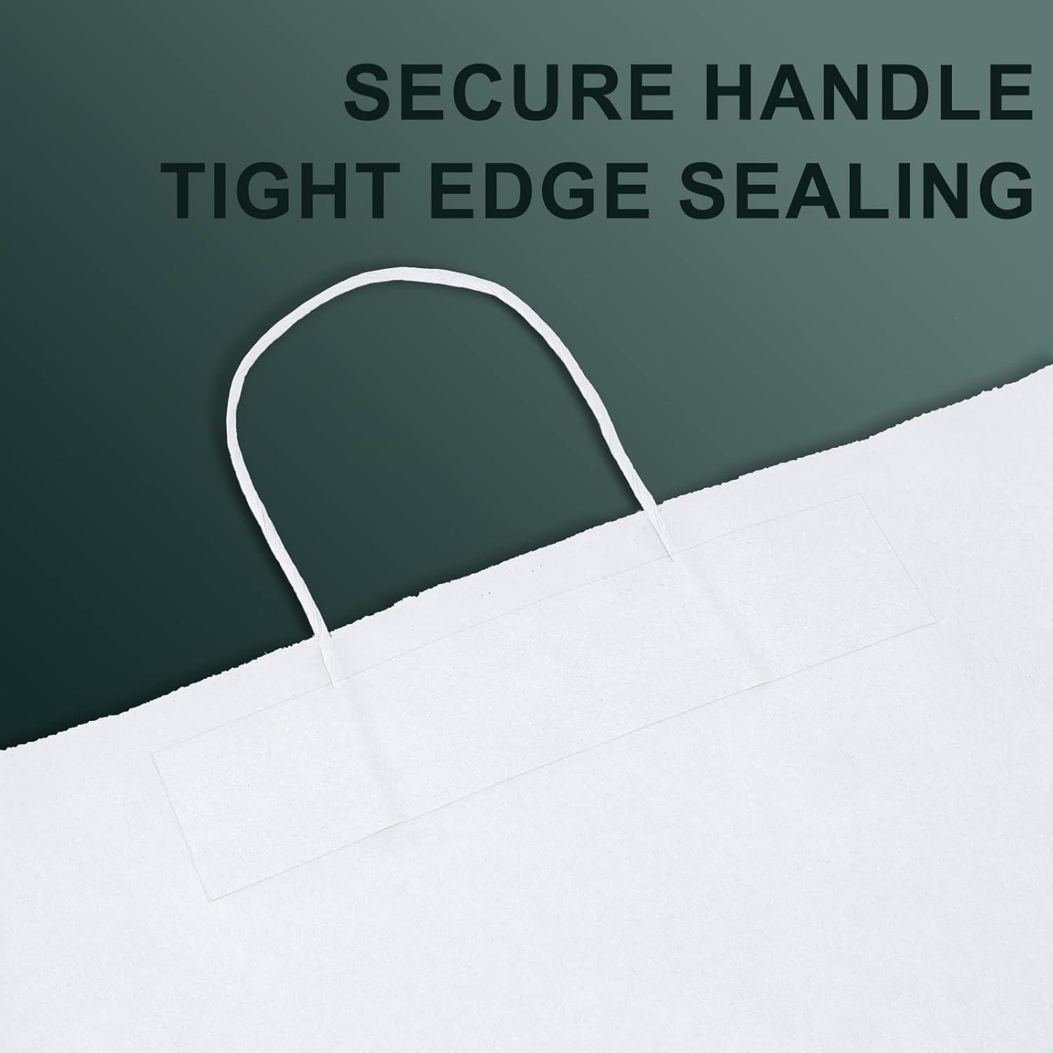White Kraft Paper Gift Bags with Handles Bulk 200 Bags [ 2 box of 100] 10 X 5 X 13 Ideal for Shopping, Packaging, Retail, Party, Craft, Gifts, Wedding, Recycled, Business, Goody and Merchandise Bag