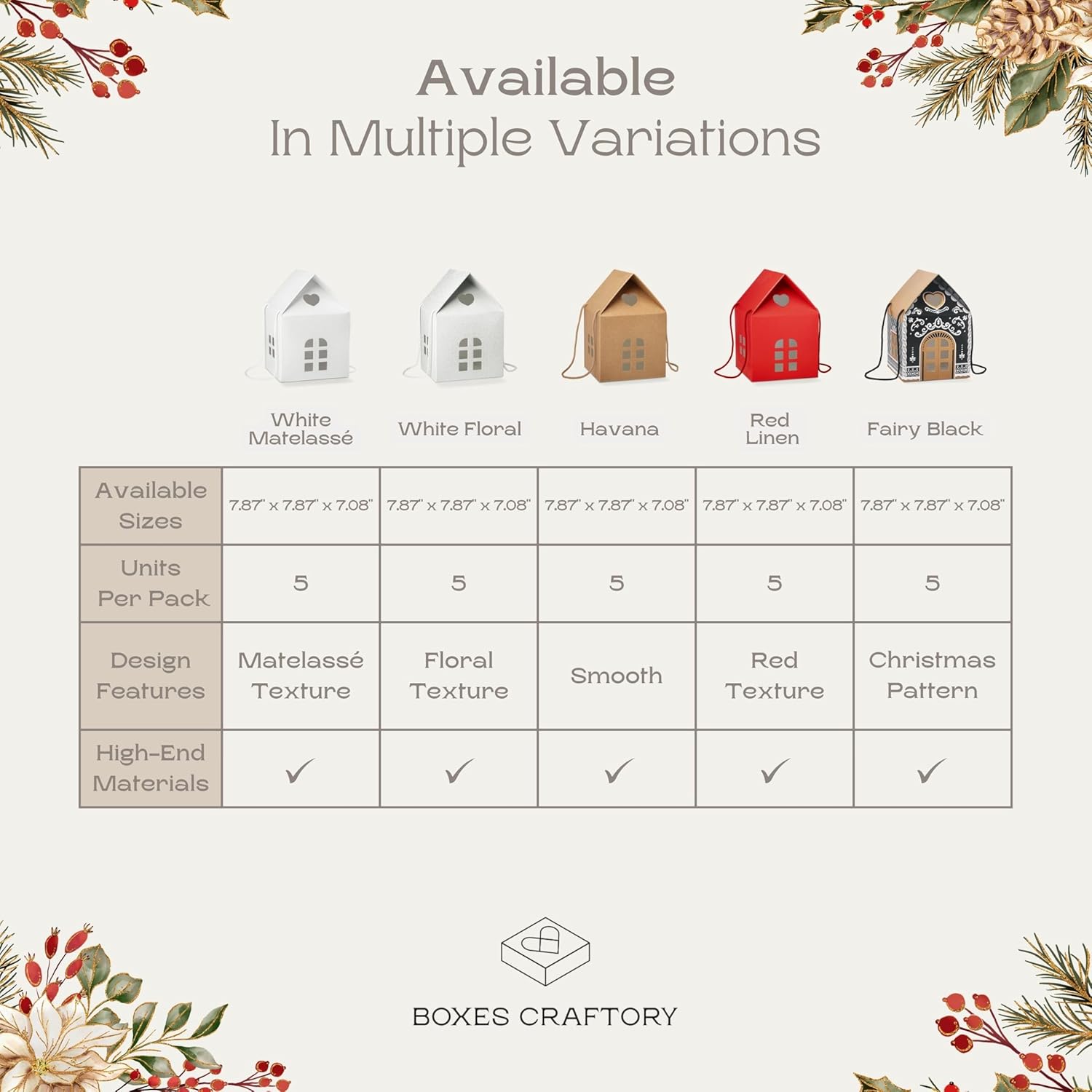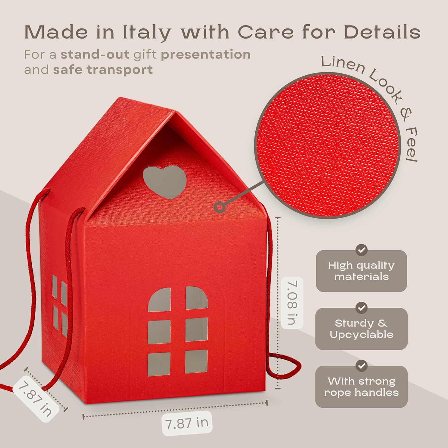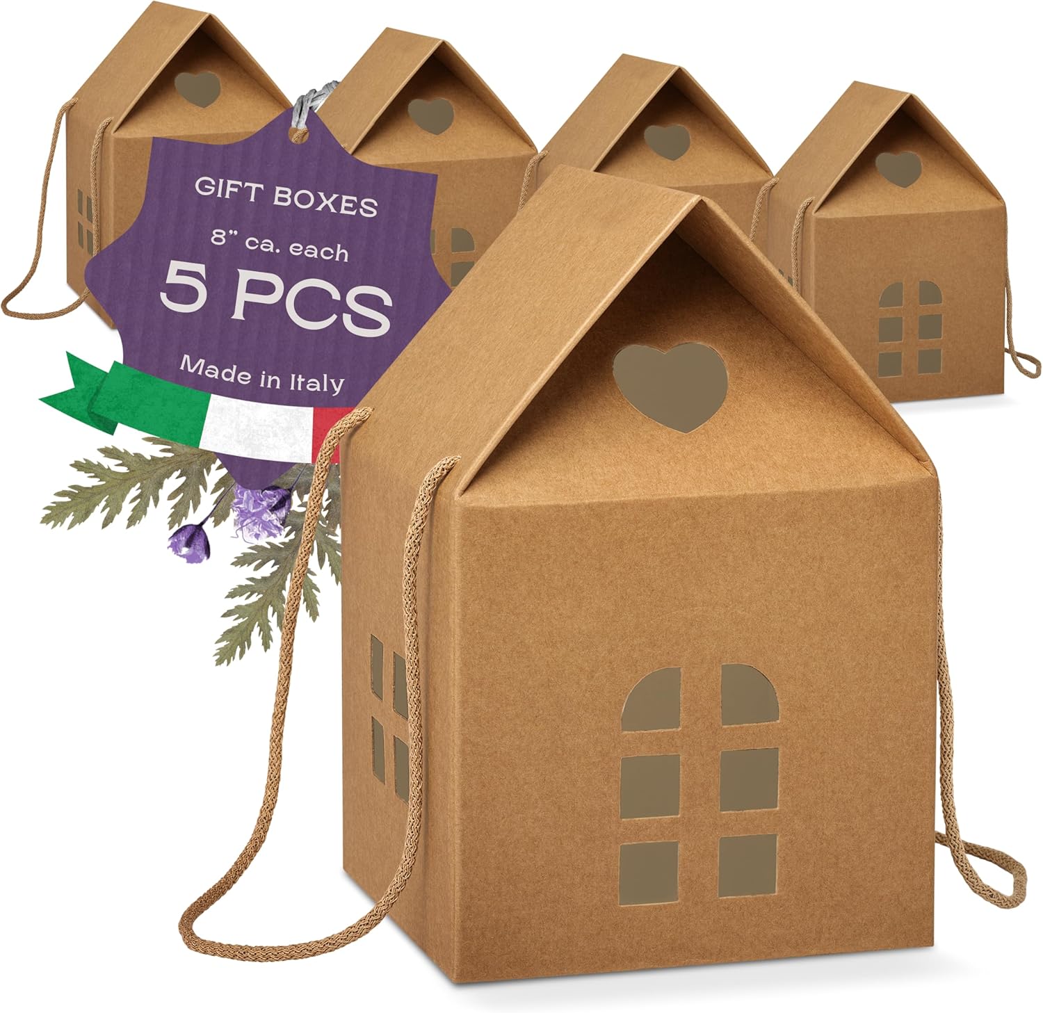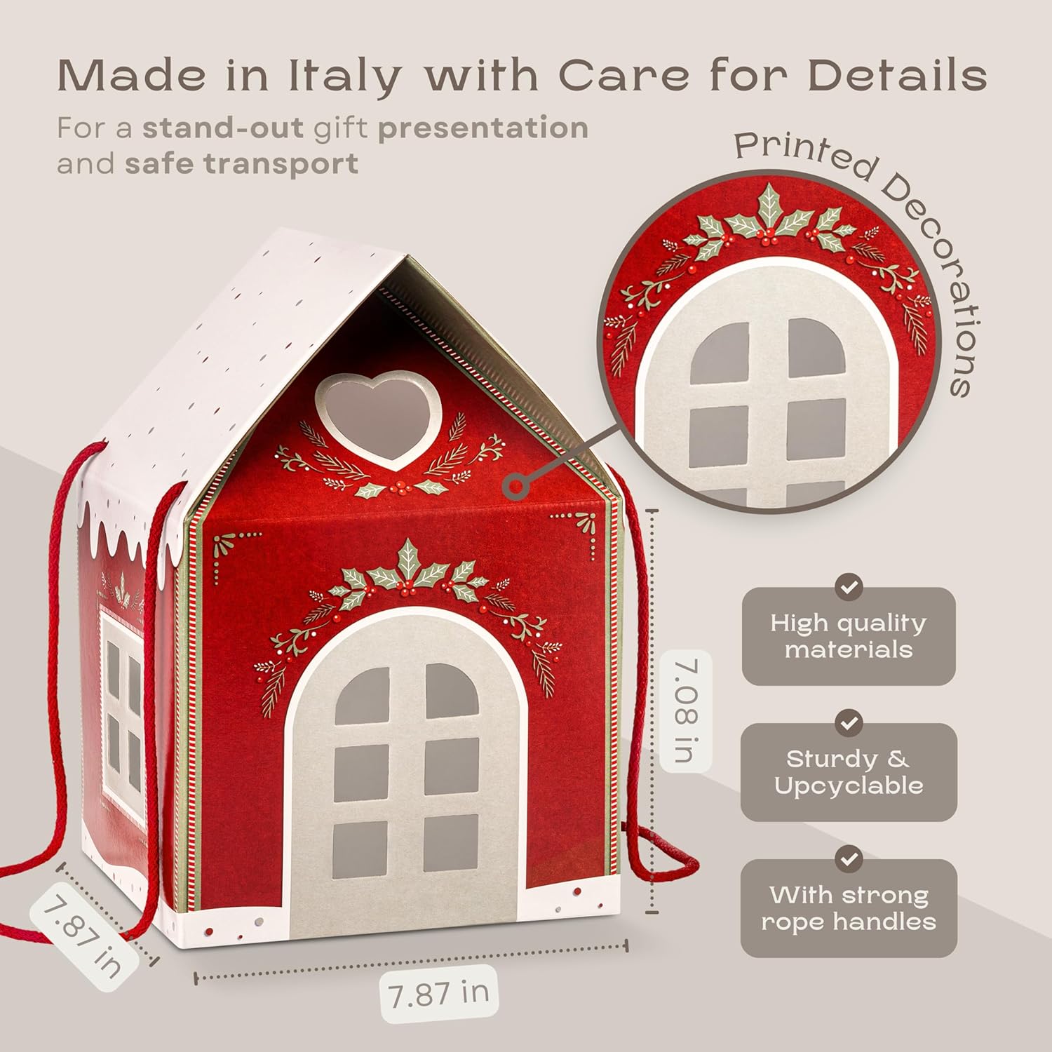 Pack of 5 House Shaped Gift Boxes (7.87 x 7.87 x 7.08 inch) - Mansion Ideal for Presents and for Treats - Red Christmas