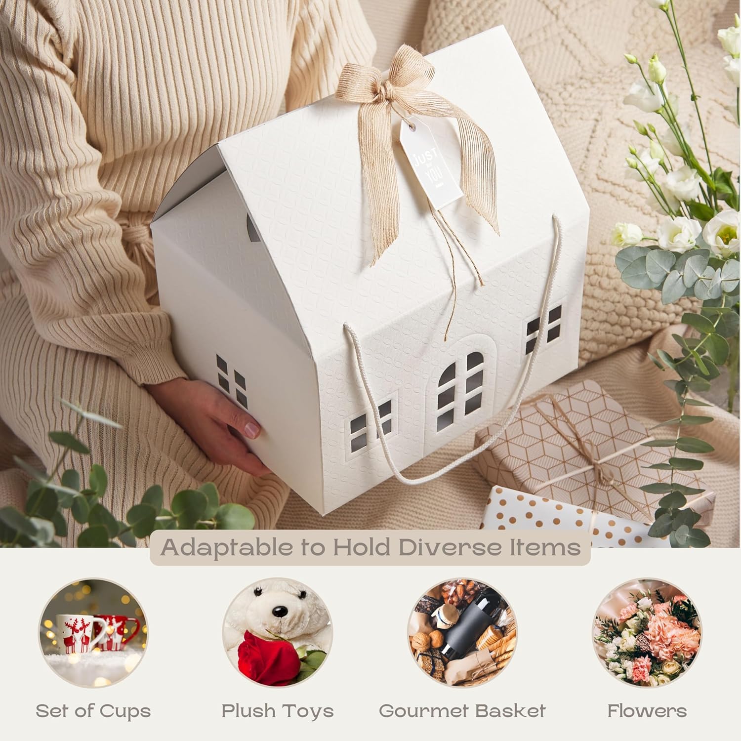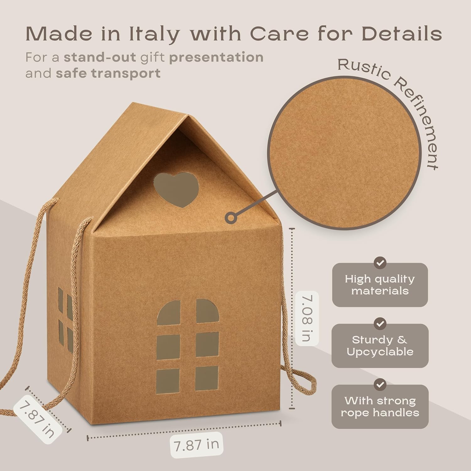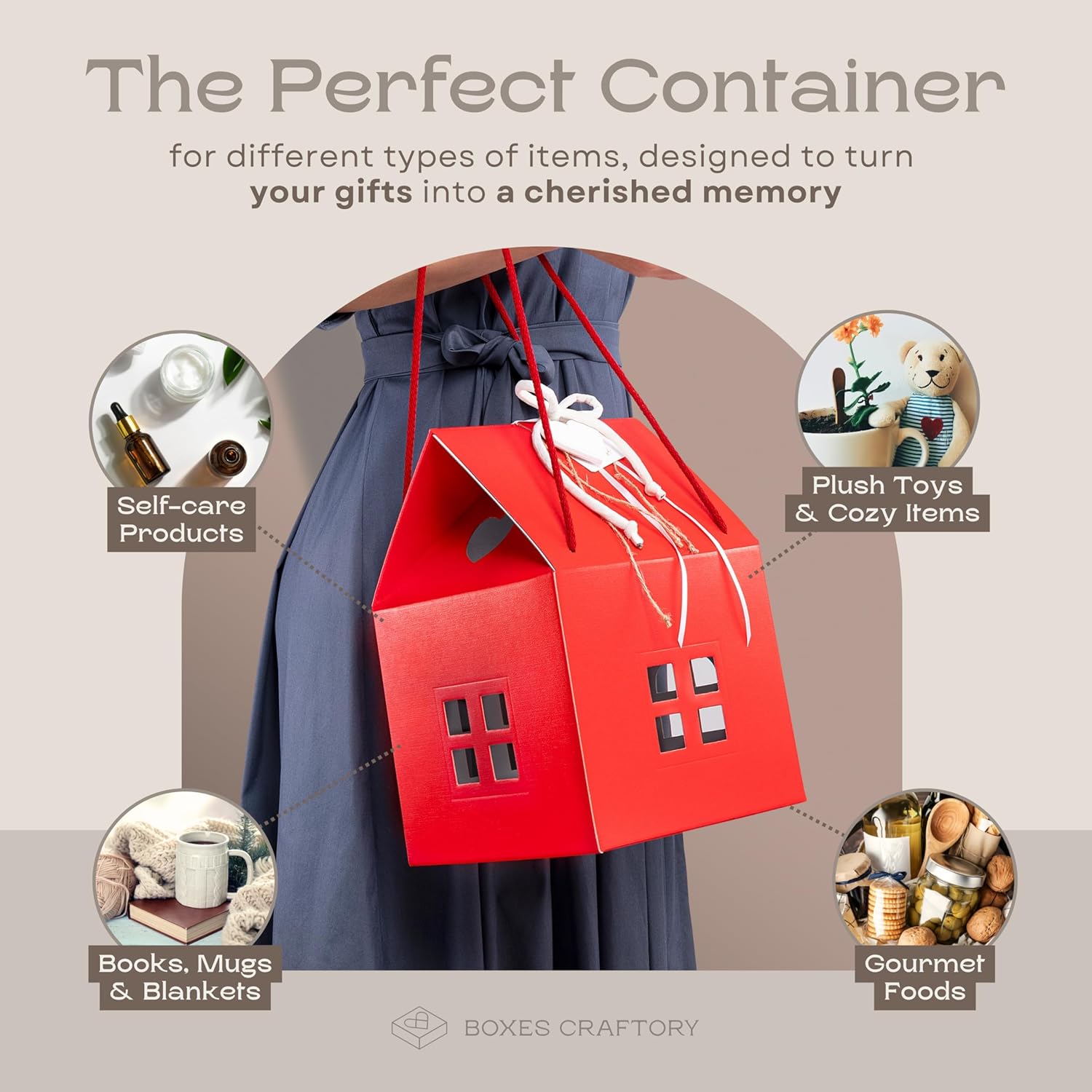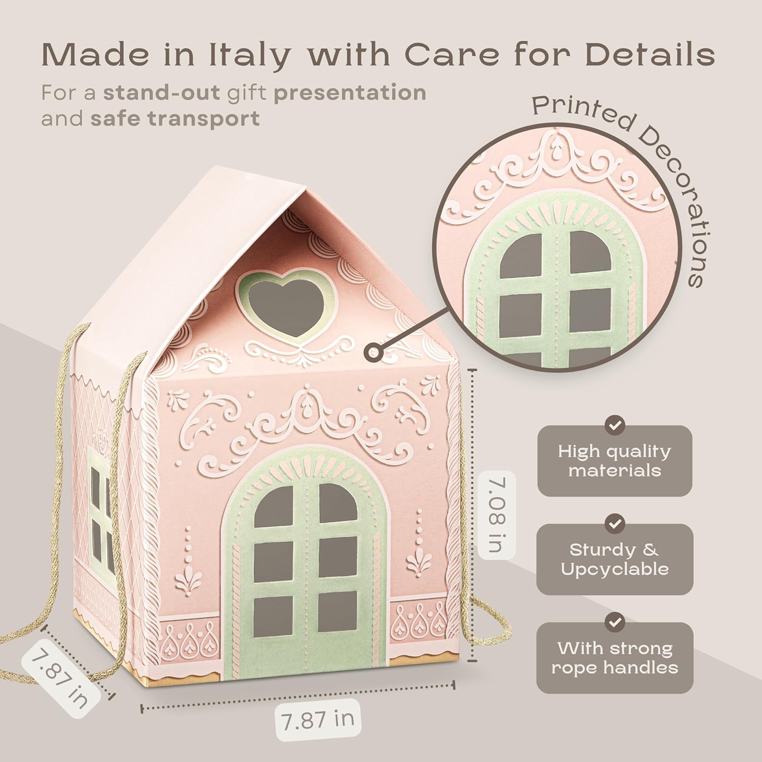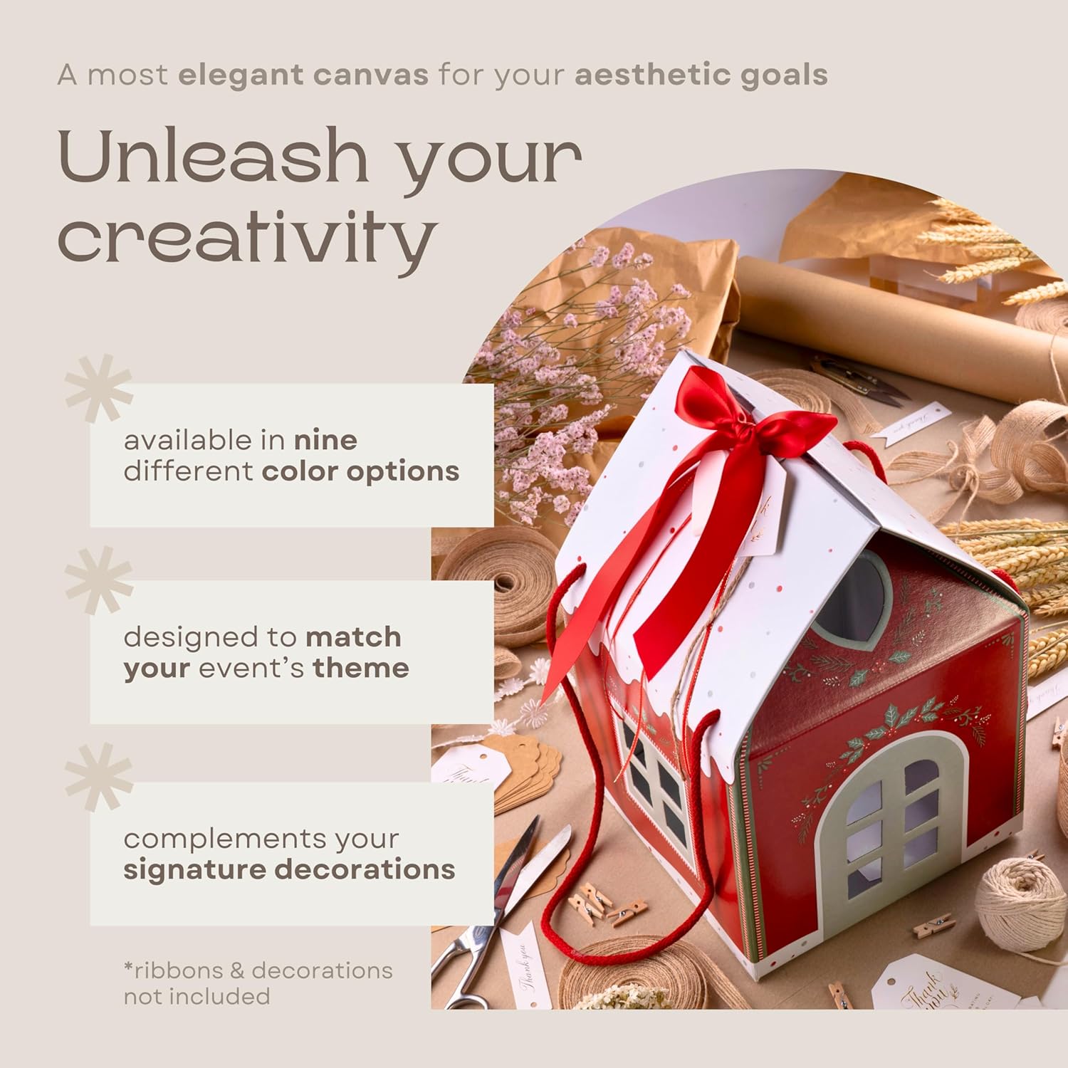 Pack of 5 House Shaped Gift Boxes (7.87 x 7.87 x 7.08 inch) - Mansion Ideal for Presents and for Treats - Red Christmas