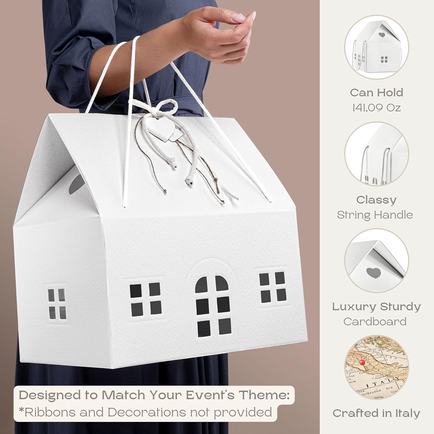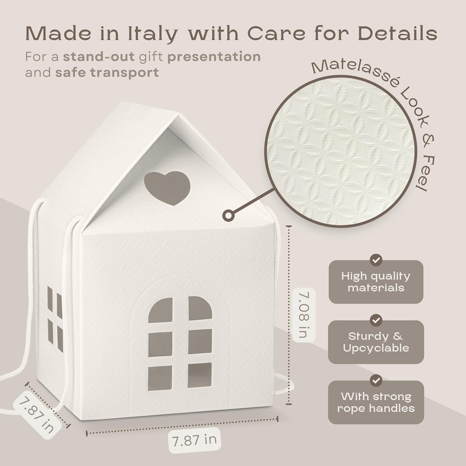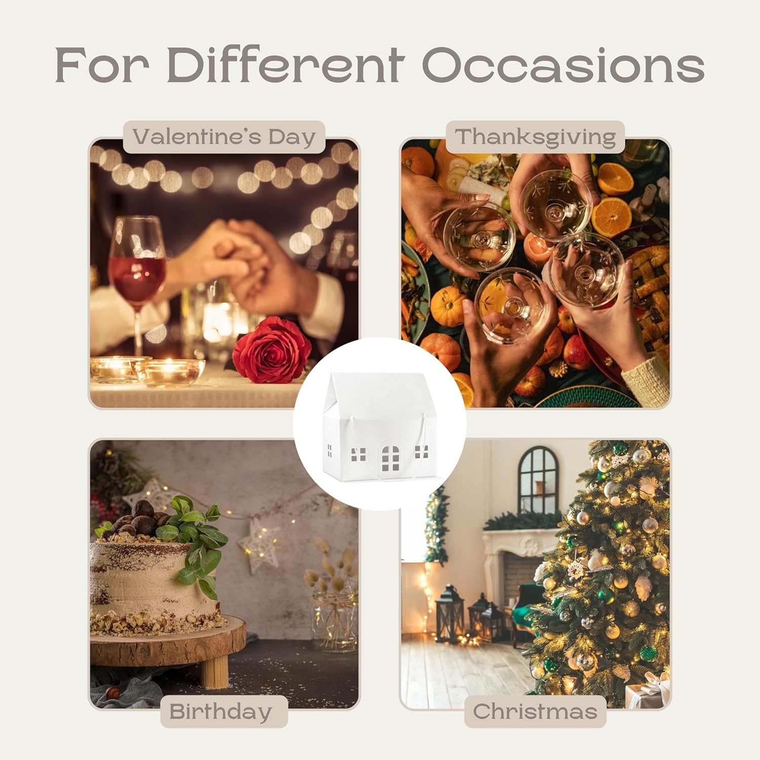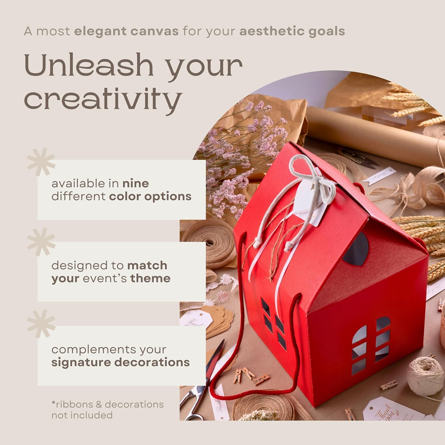 Pack of 5 House Shaped Gift Boxes (7.87 x 7.87 x 7.08 inch) - Mansion Ideal for Presents and for Treats - Red Christmas