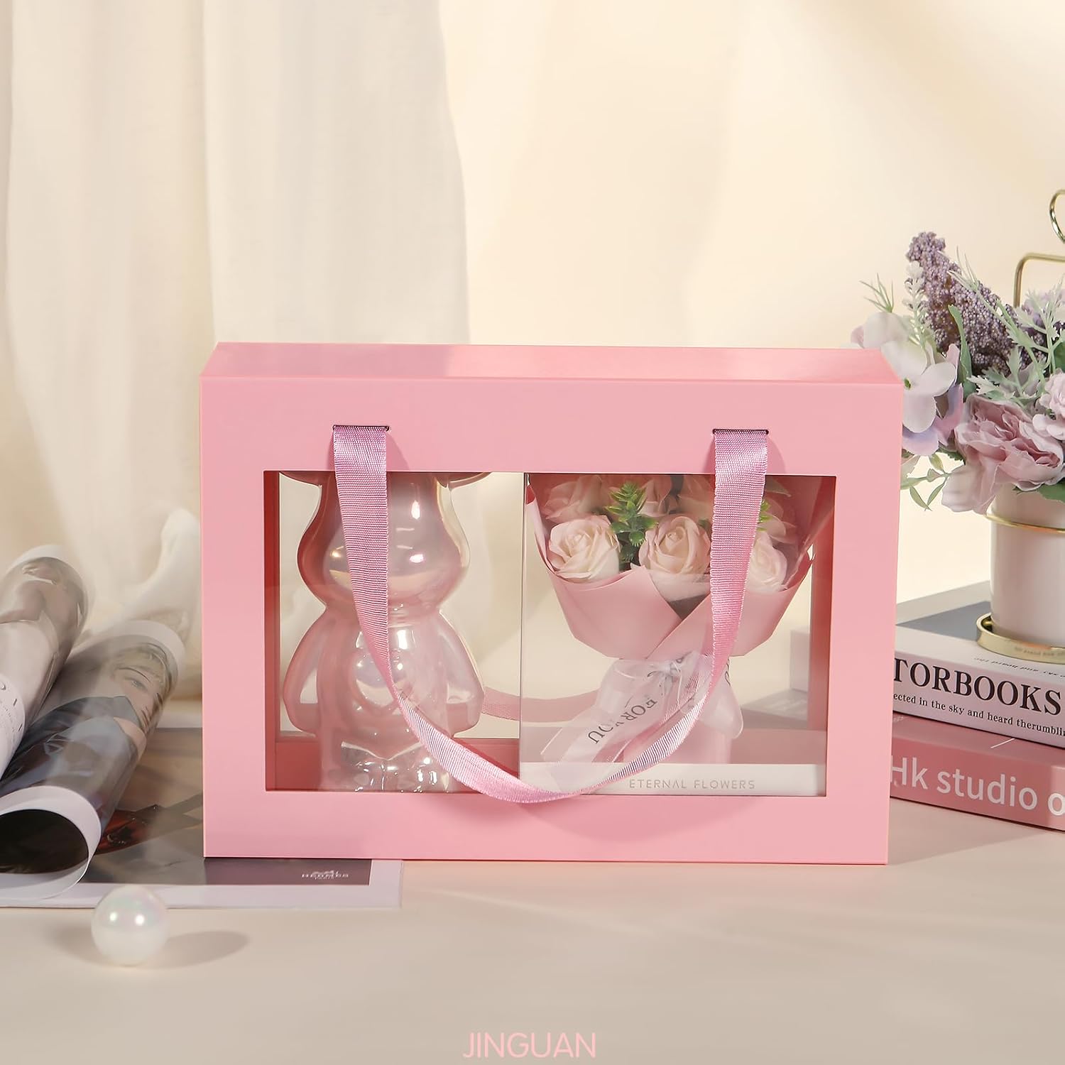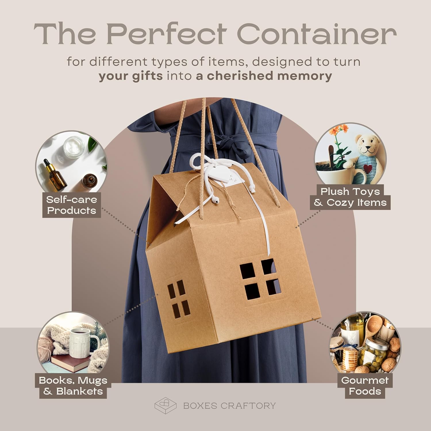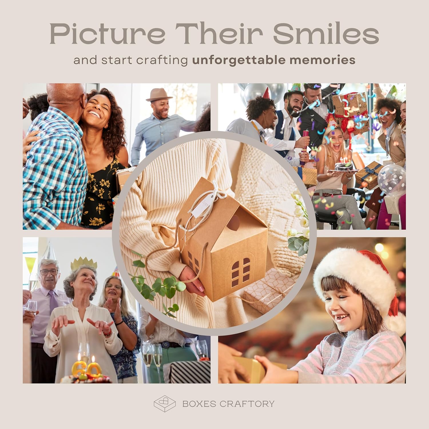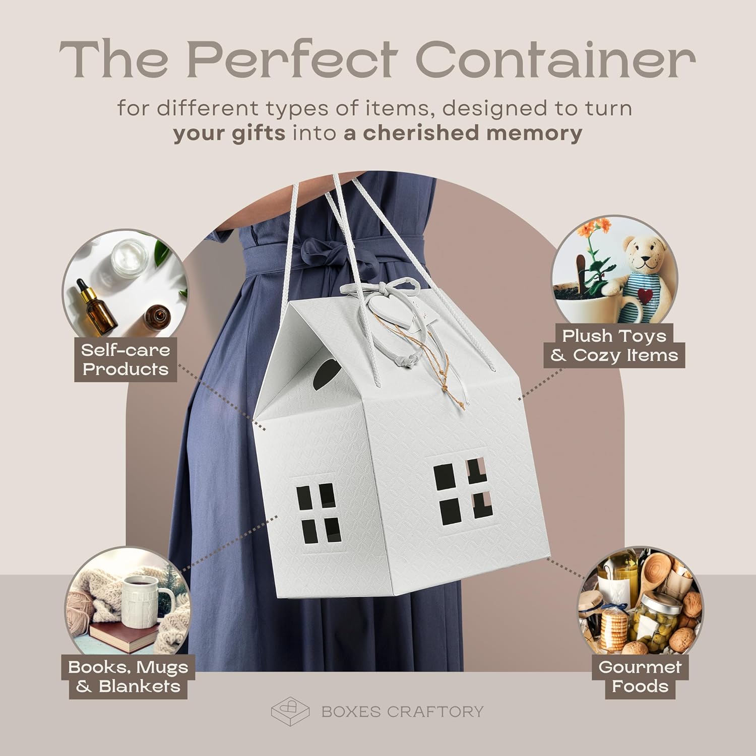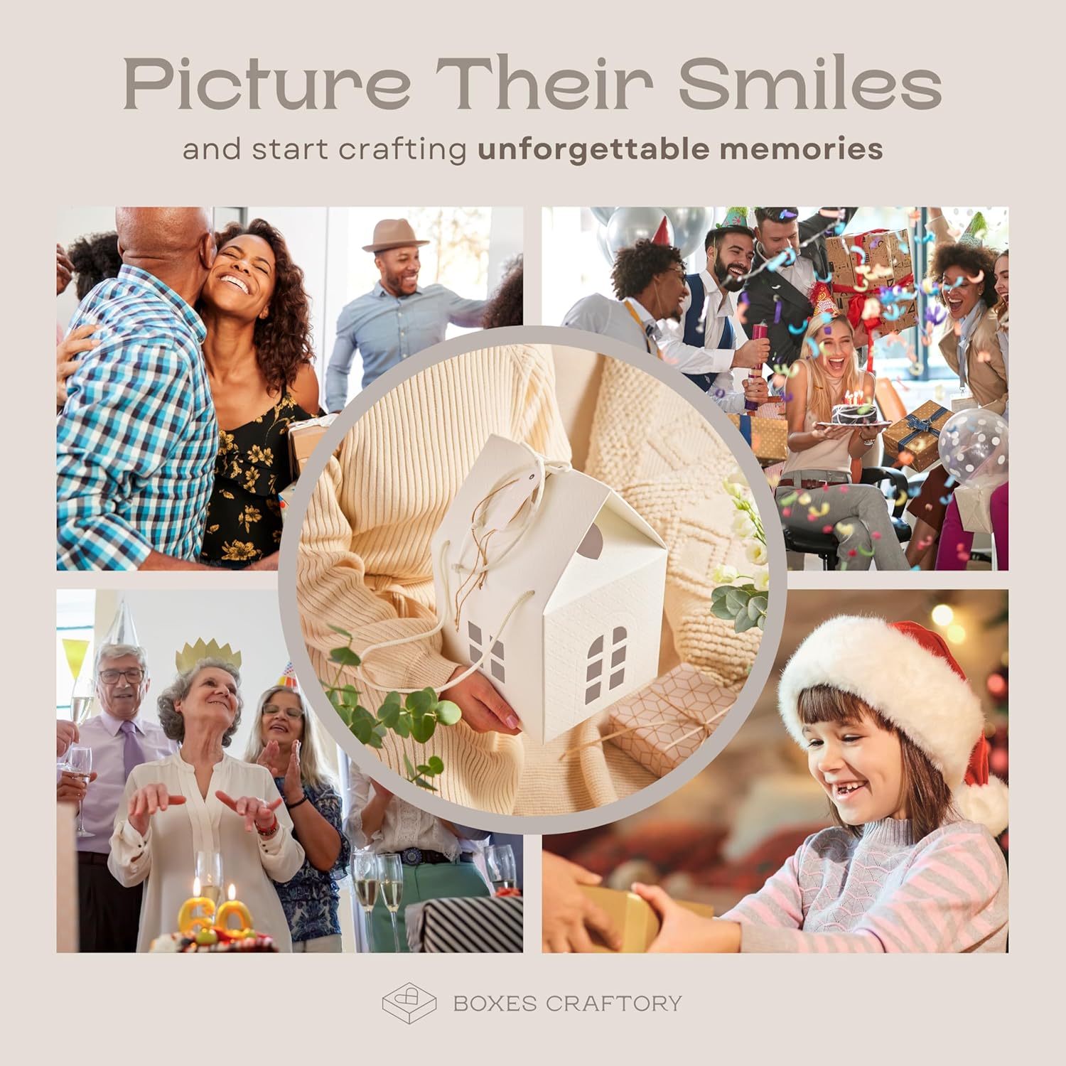 Pack of 5 House Shaped Gift Boxes (7.87 x 7.87 x 7.08 inch) - Mansion Ideal for Presents and for Treats - Red Christmas