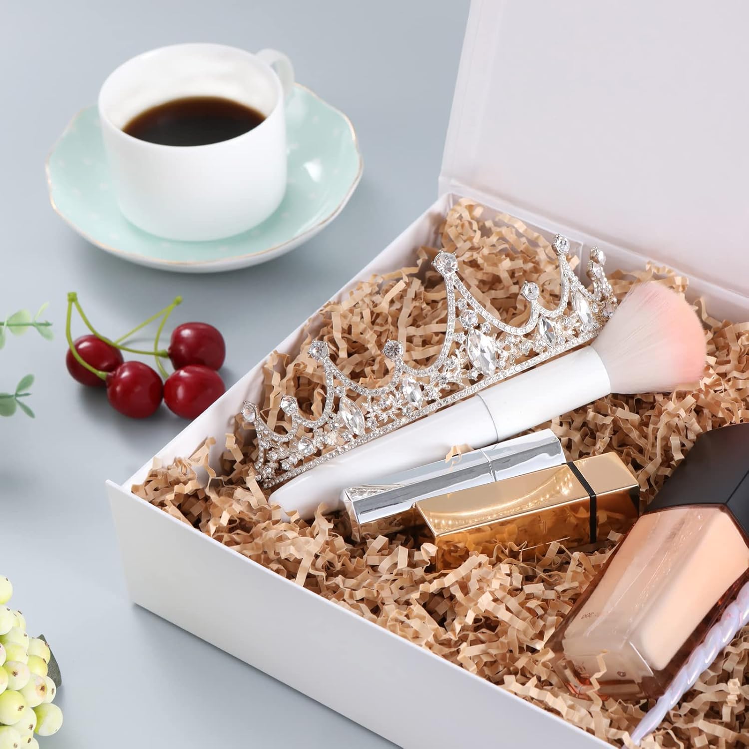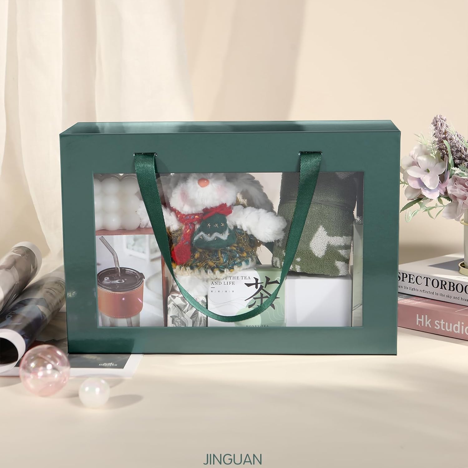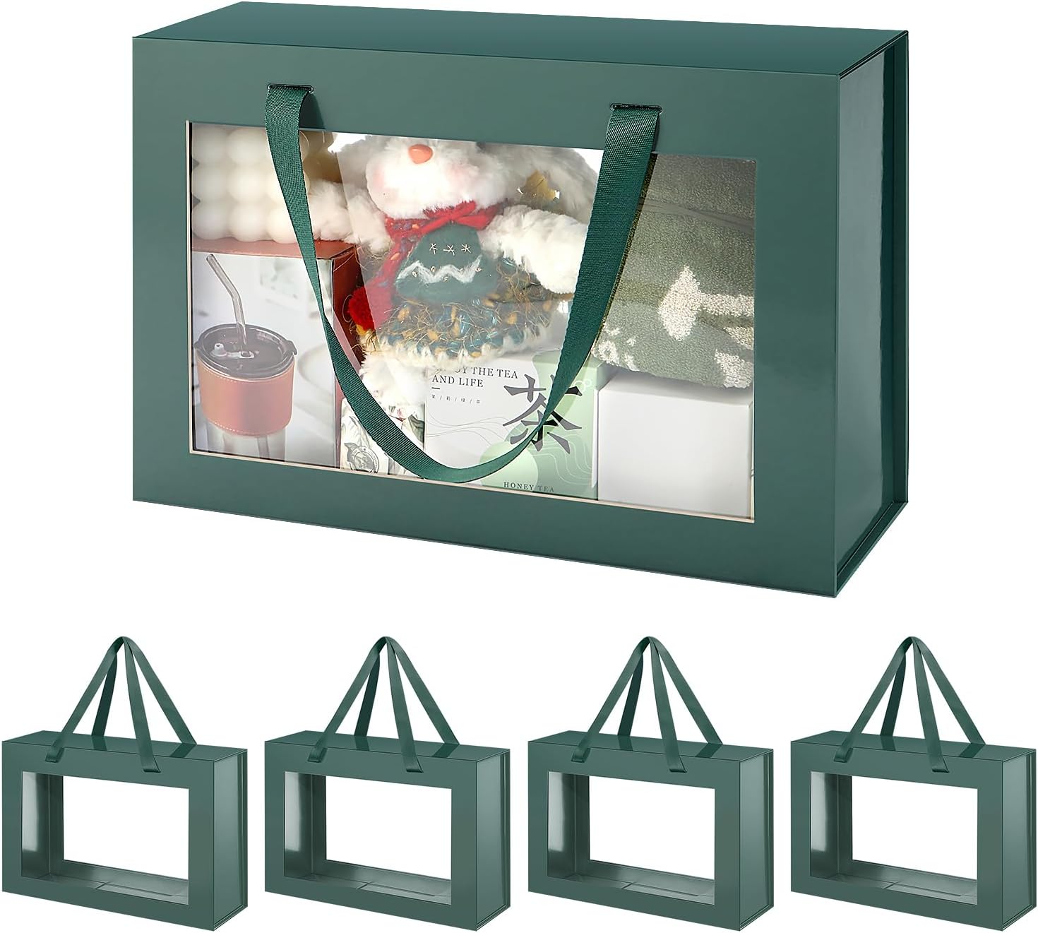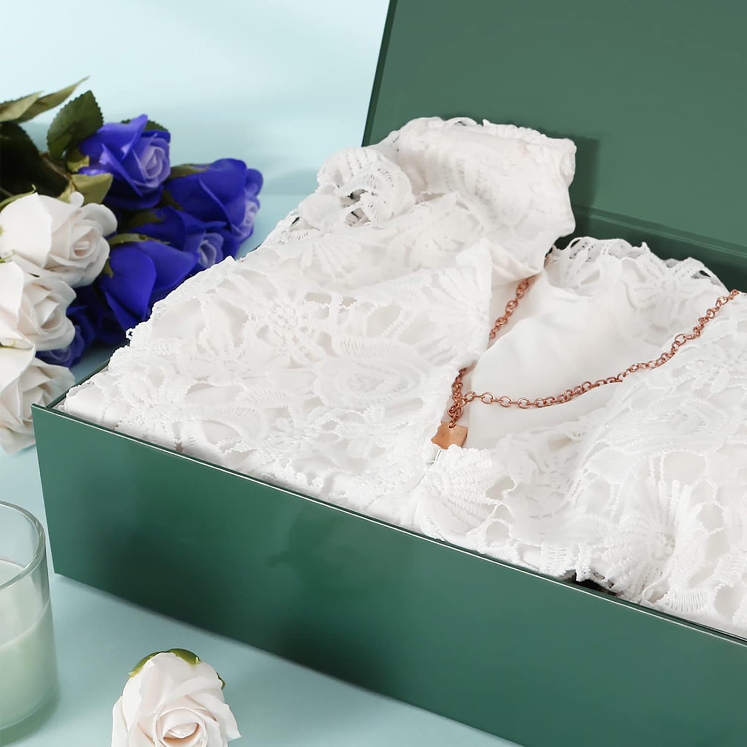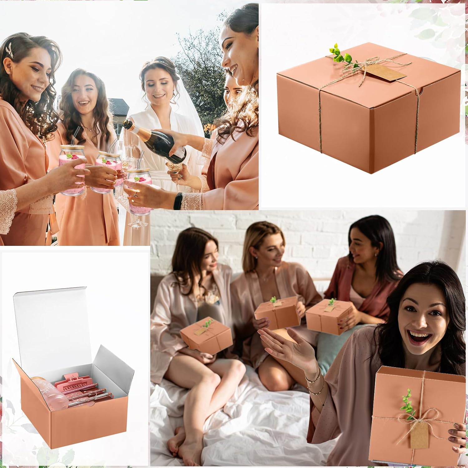 8 Sets/ 80 Pcs Bridesmaid Proposal Gifts Maid of Honor Gifts for Wedding, Include Glass Cup Makeup Bag Glitter Pen Card Bracelet Hair Clip Gift Box Kraft Tags Grass Twine(Green)