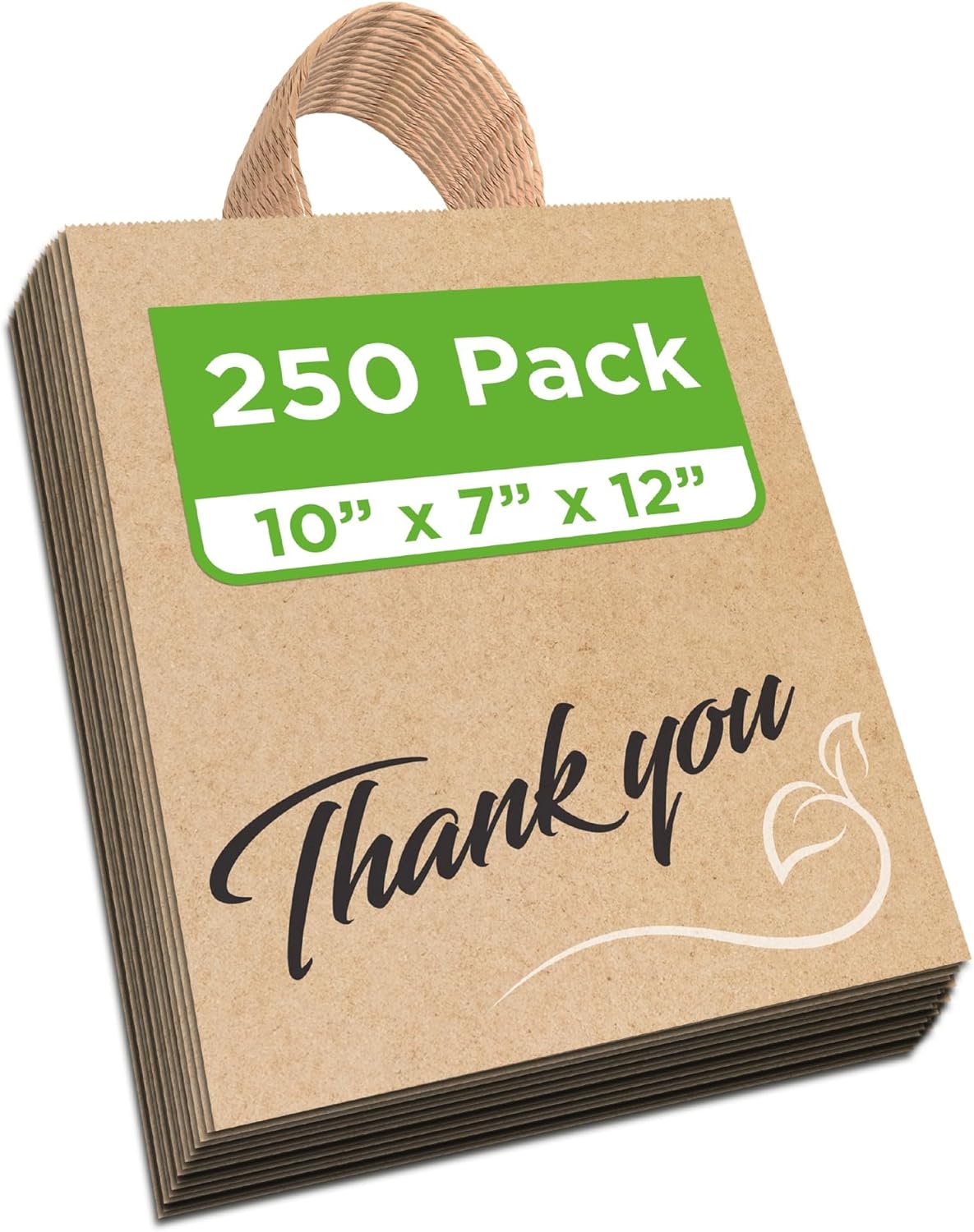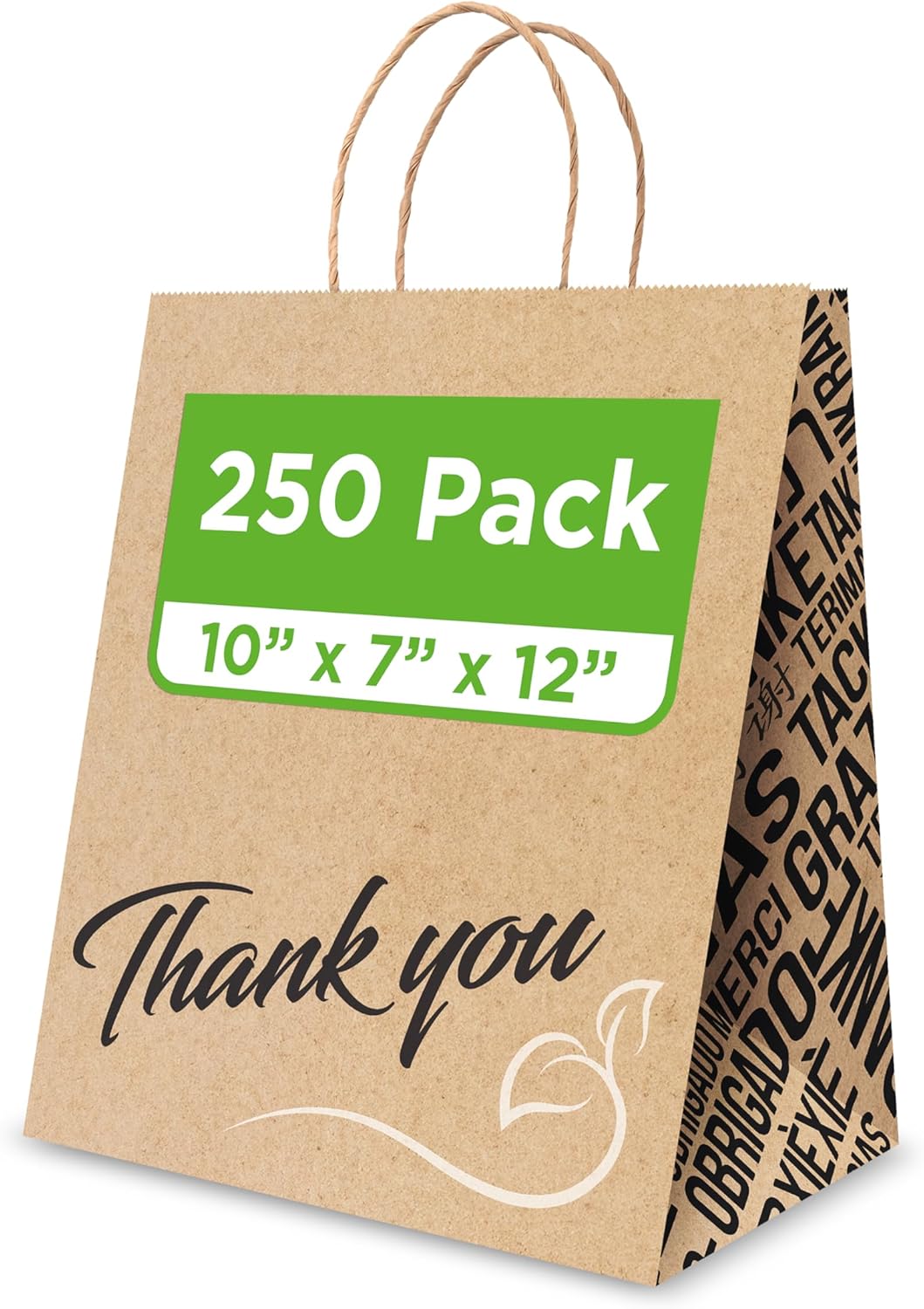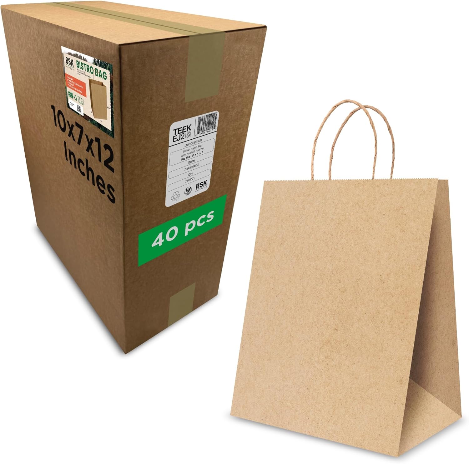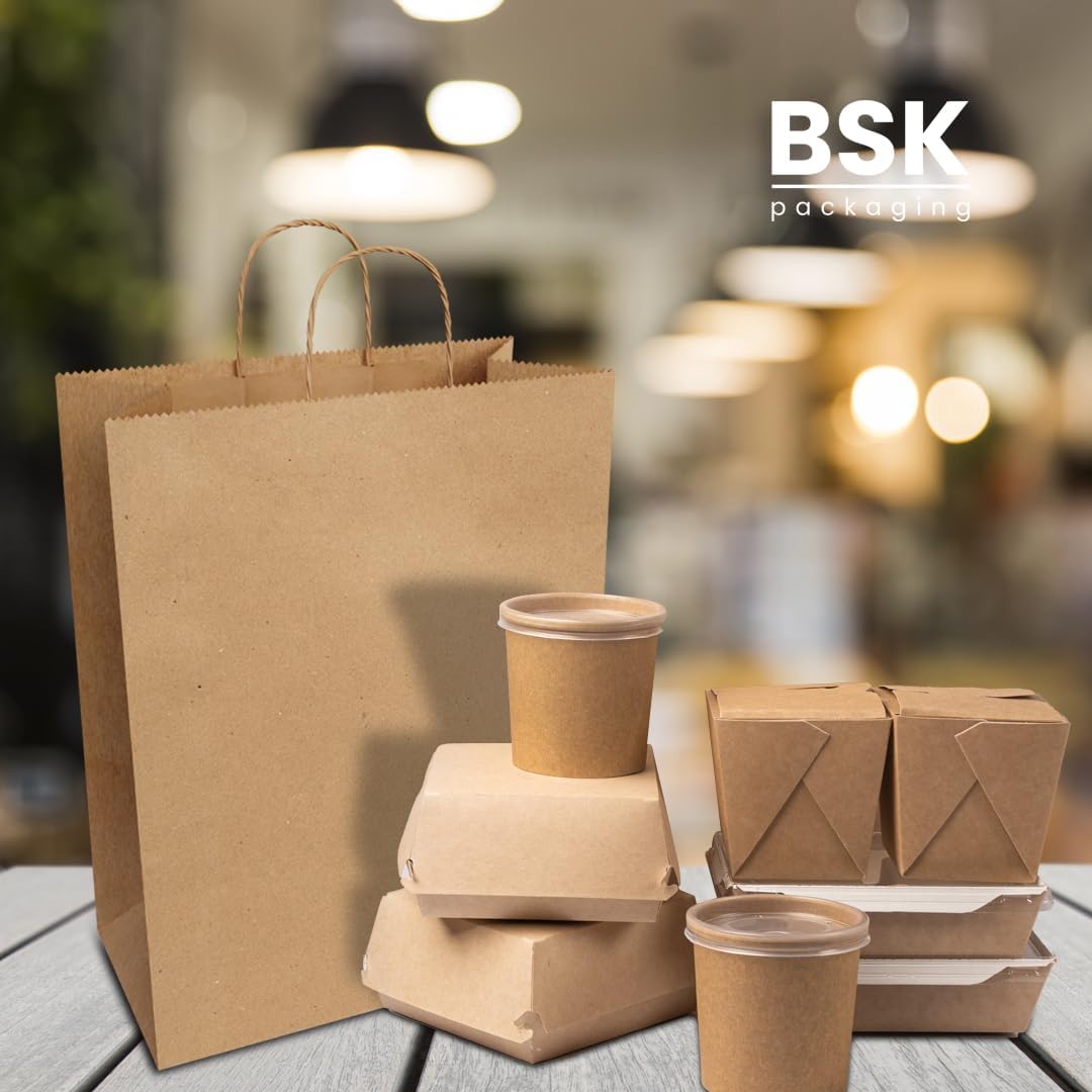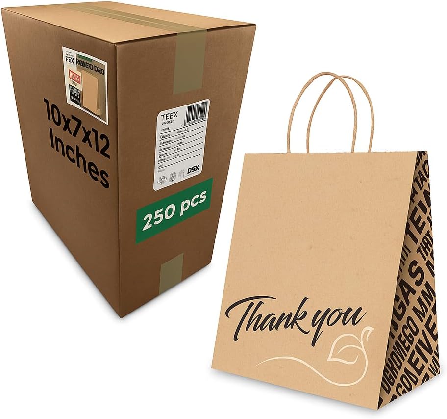 Bistro Brown Kraft Paper Bags | 10x7x12 Inches – 250 Pcs | with Twisted Handles – Shopping Bags for your Business, ideal for Takeout Containers & Restaurants/Grocers.