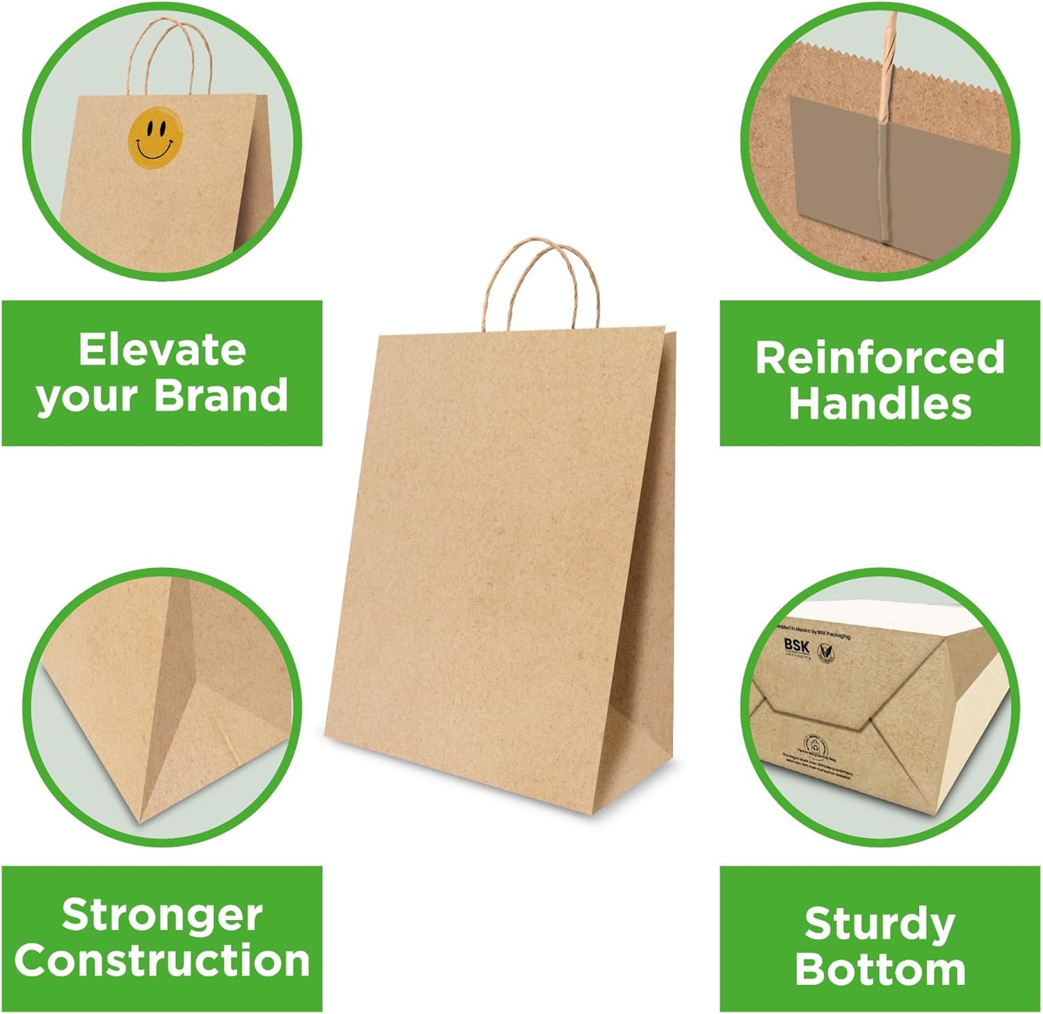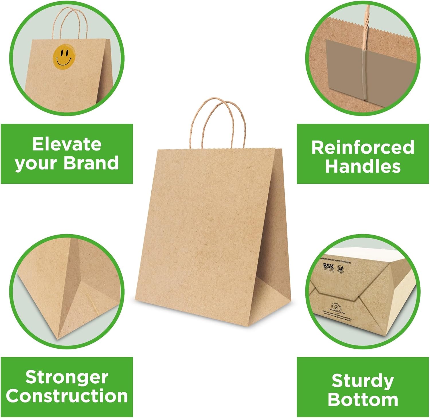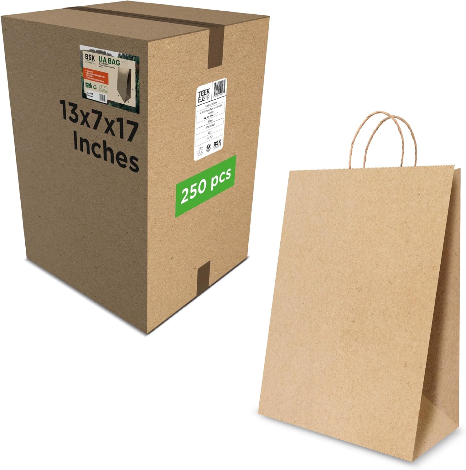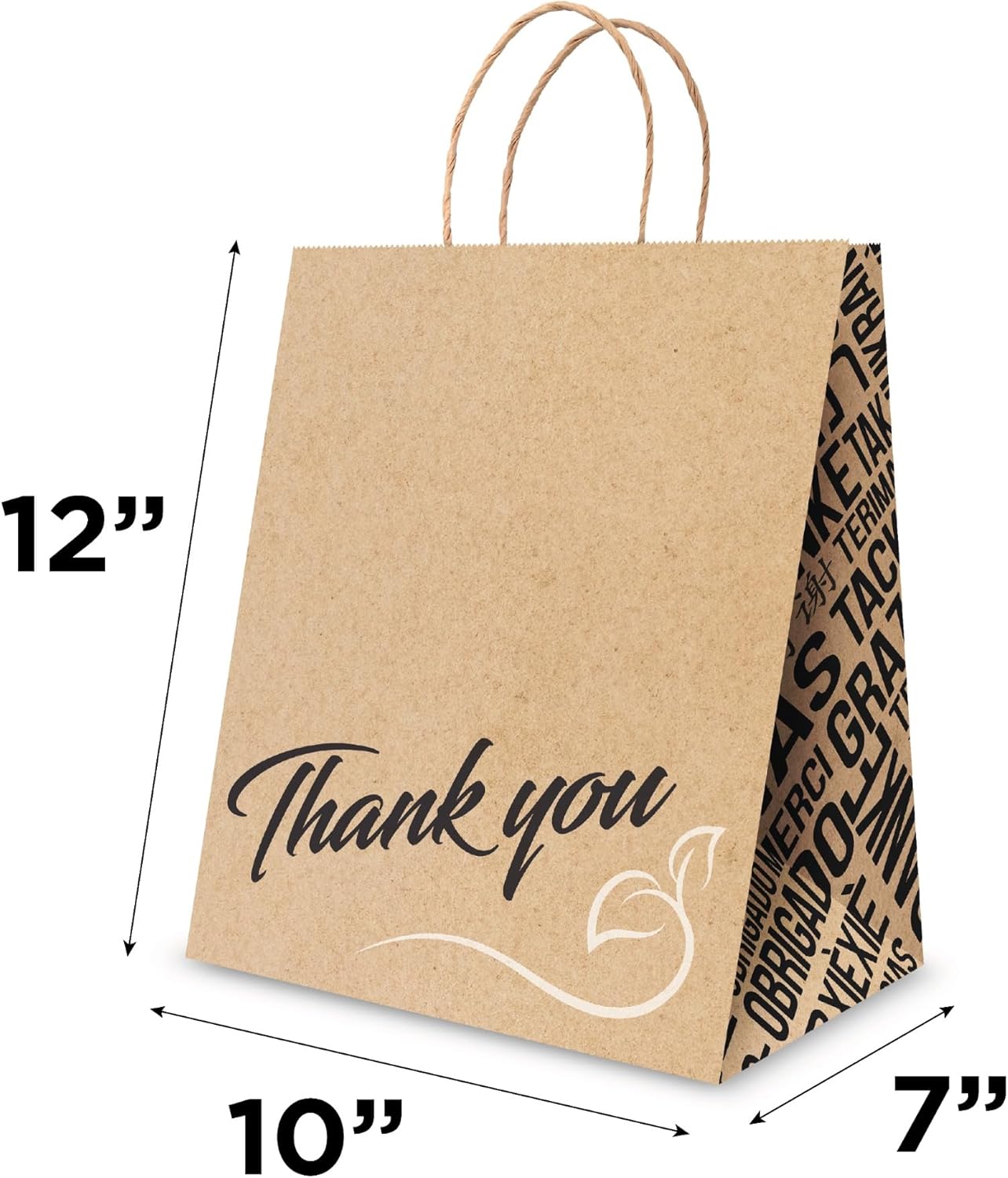 Bistro Brown Kraft Paper Bags | 10x7x12 Inches – 250 Pcs | with Twisted Handles – Shopping Bags for your Business, ideal for Takeout Containers & Restaurants/Grocers.