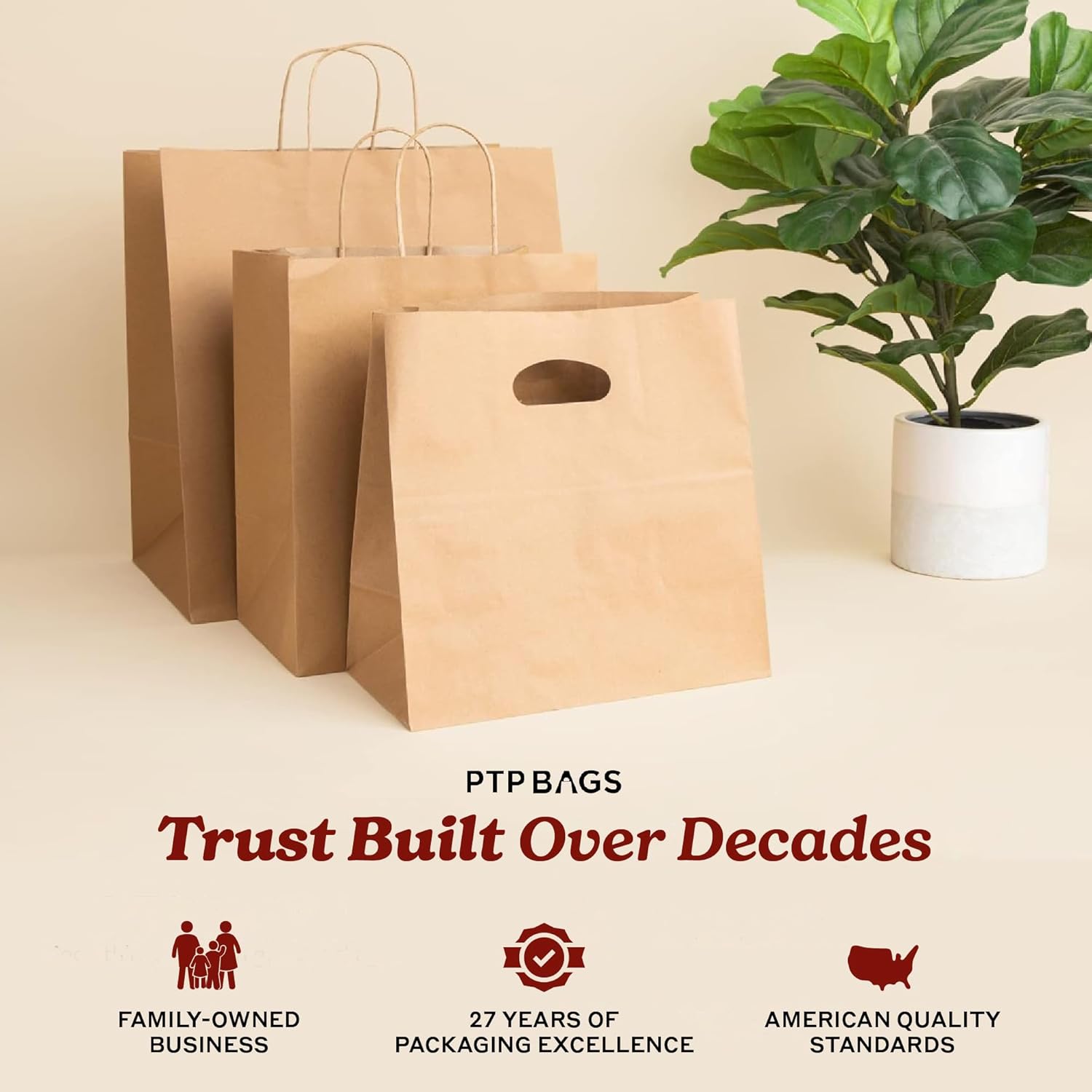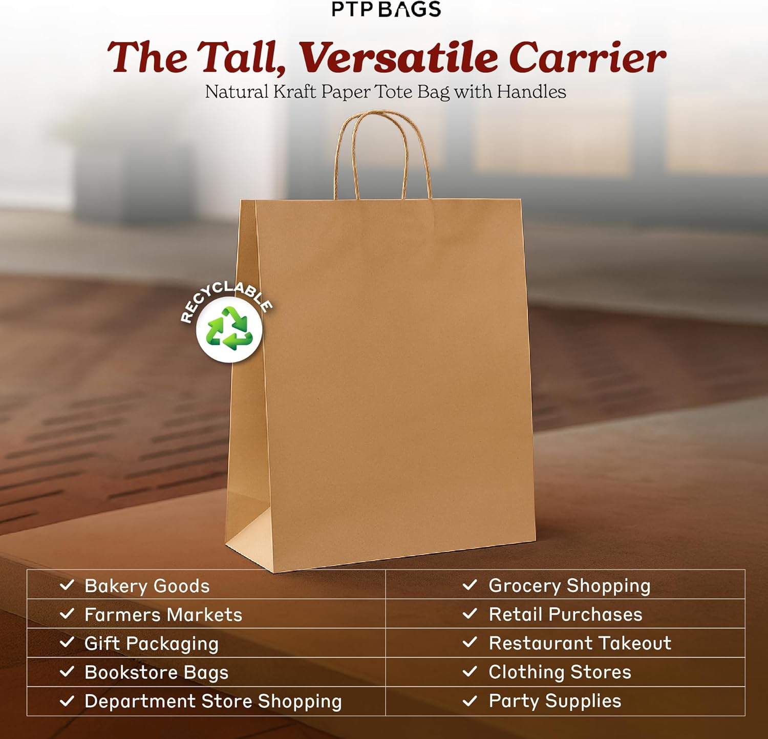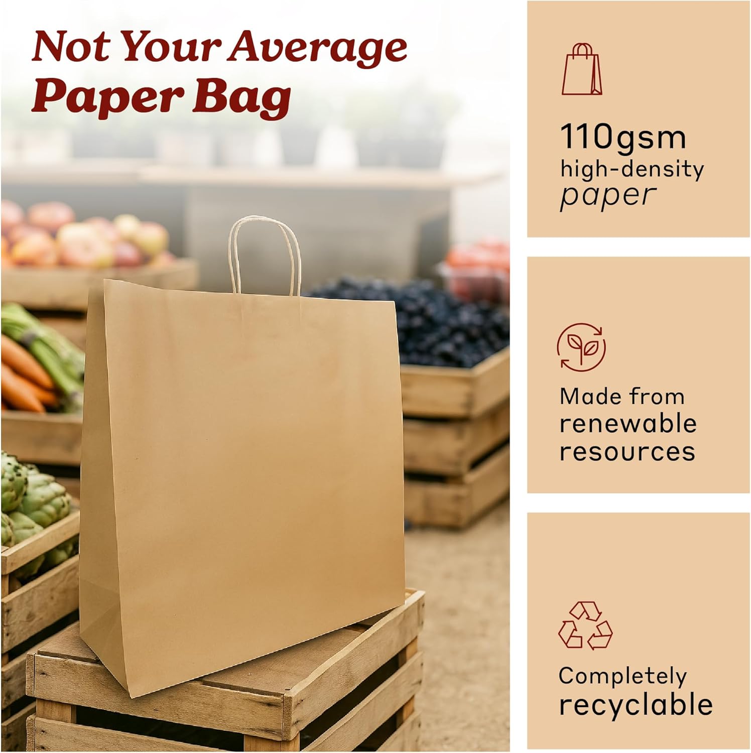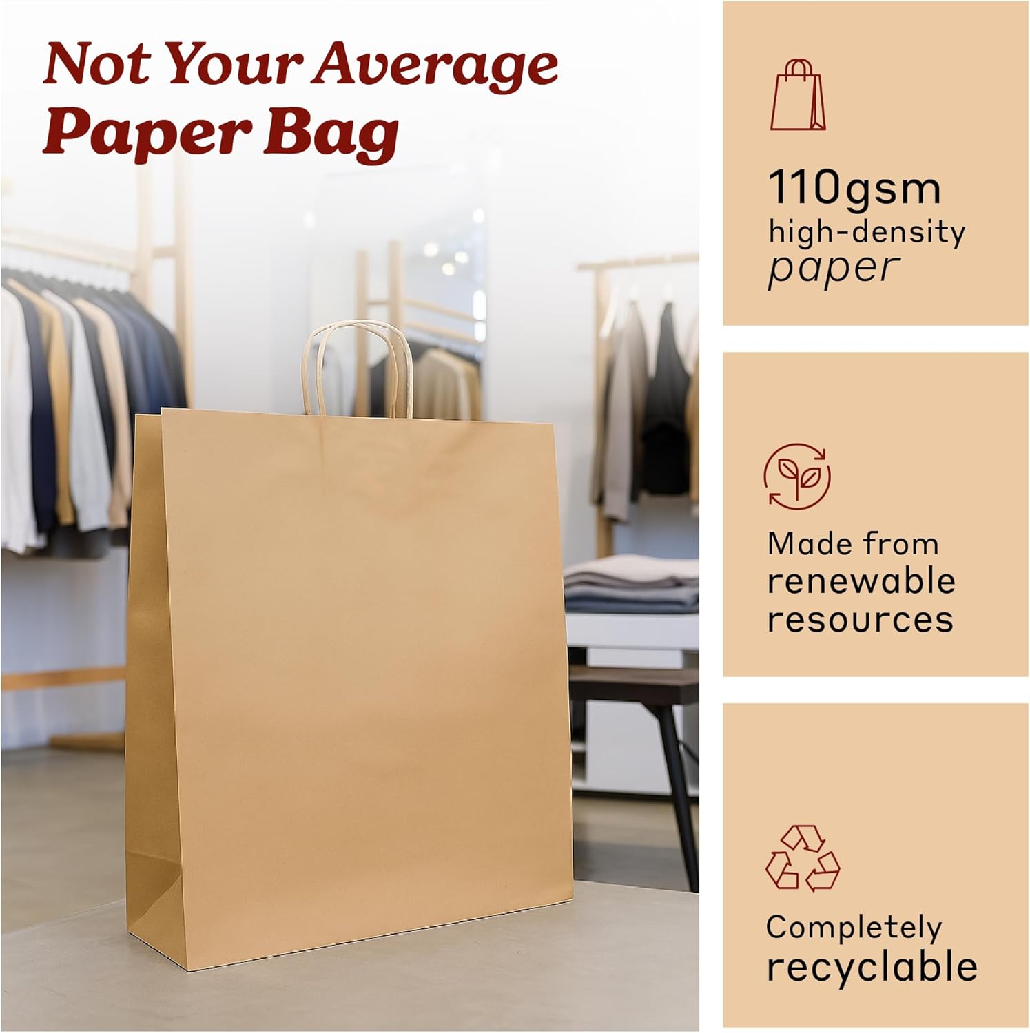 Bistro Brown Kraft Paper Bags | 10x7x12 Inches – 250 Pcs | with Twisted Handles – Shopping Bags for your Business, ideal for Takeout Containers & Restaurants/Grocers.