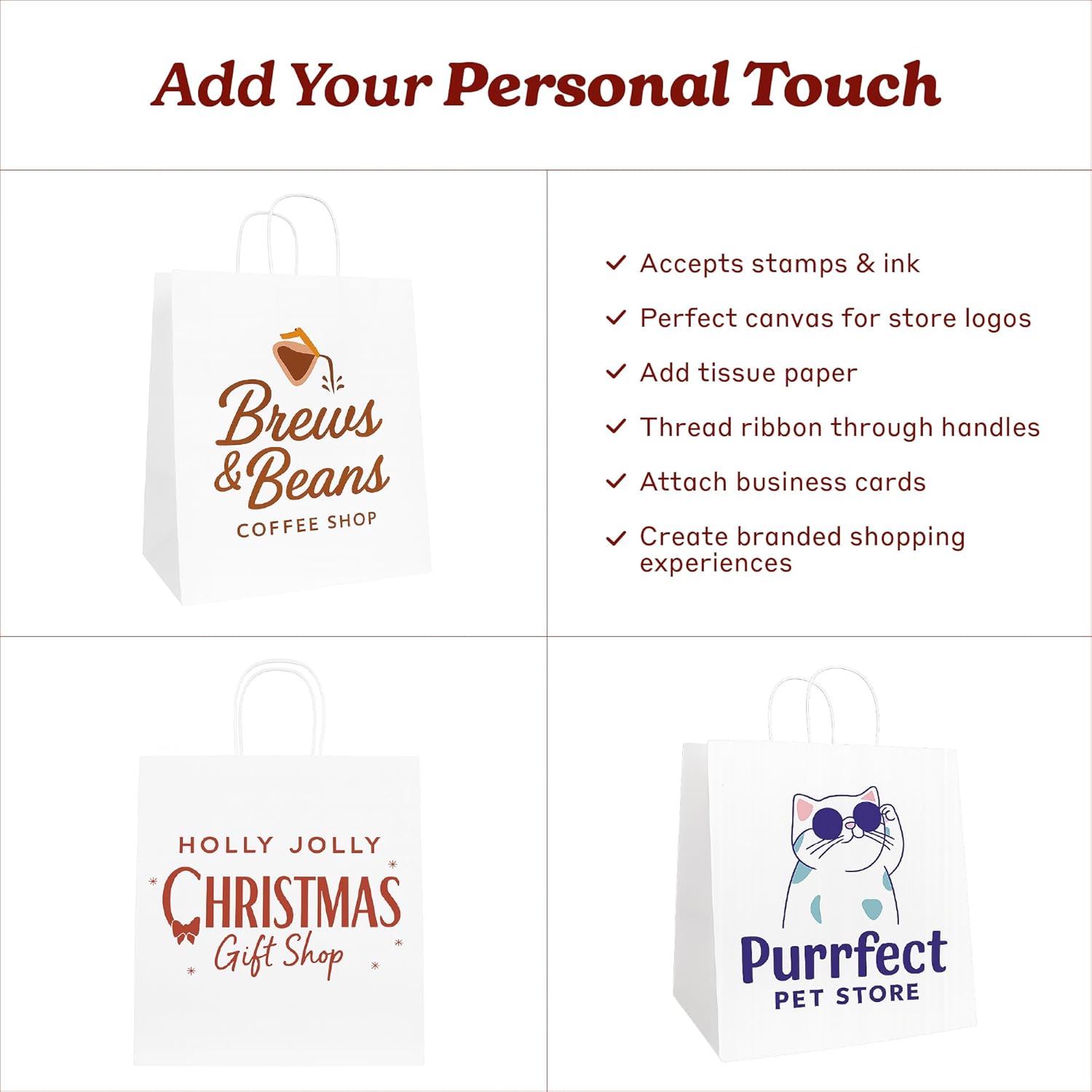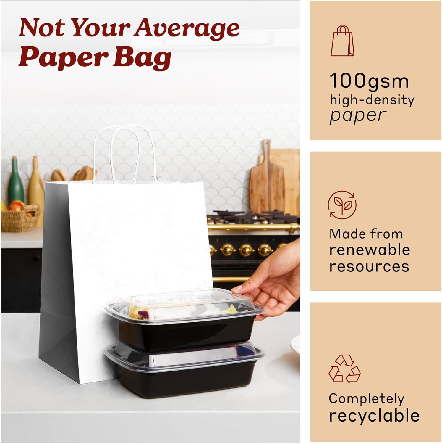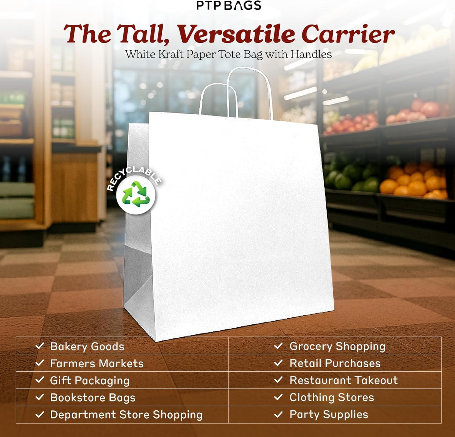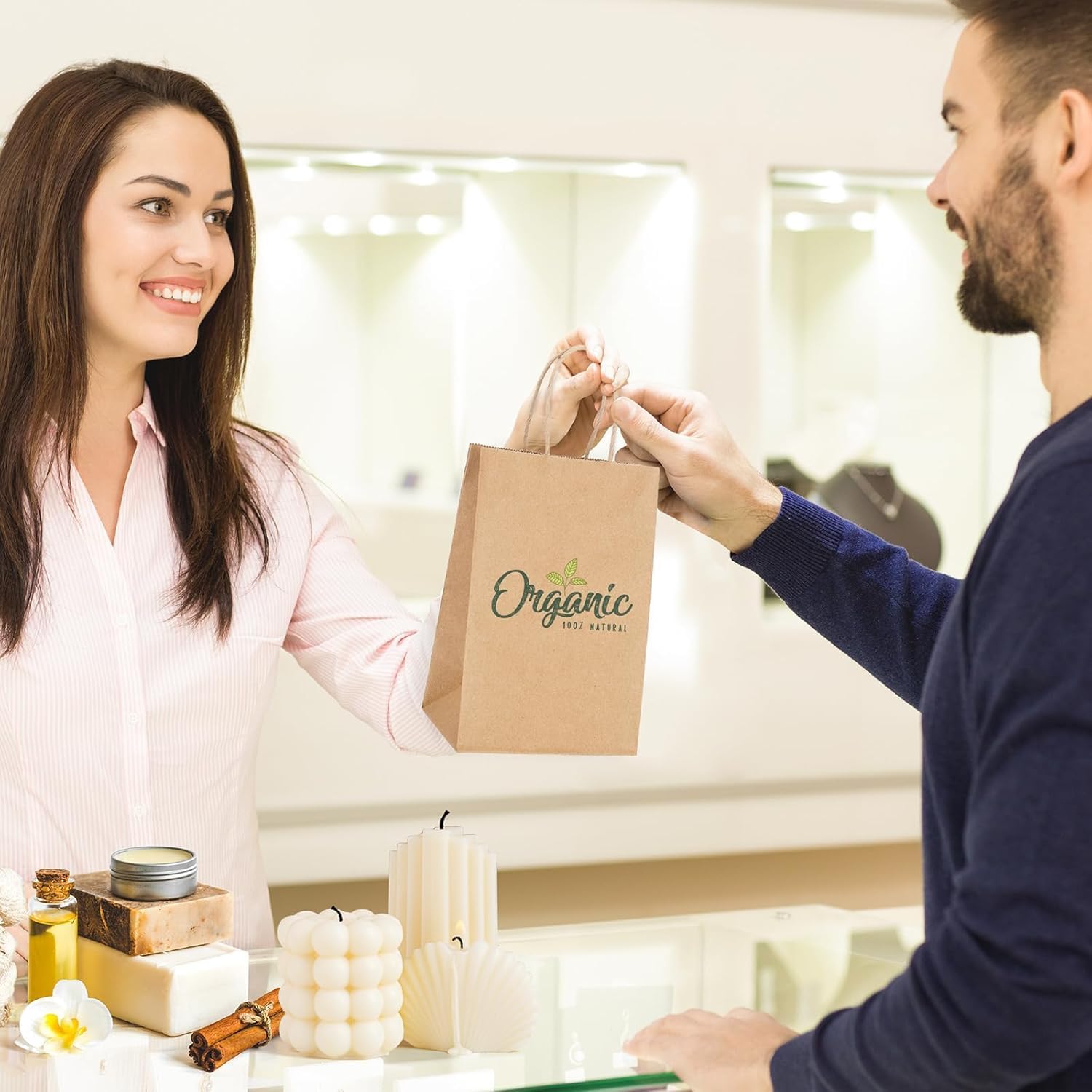 Bistro Brown Kraft Paper Bags | 10x7x12 Inches – 250 Pcs | with Twisted Handles – Shopping Bags for your Business, ideal for Takeout Containers & Restaurants/Grocers.
