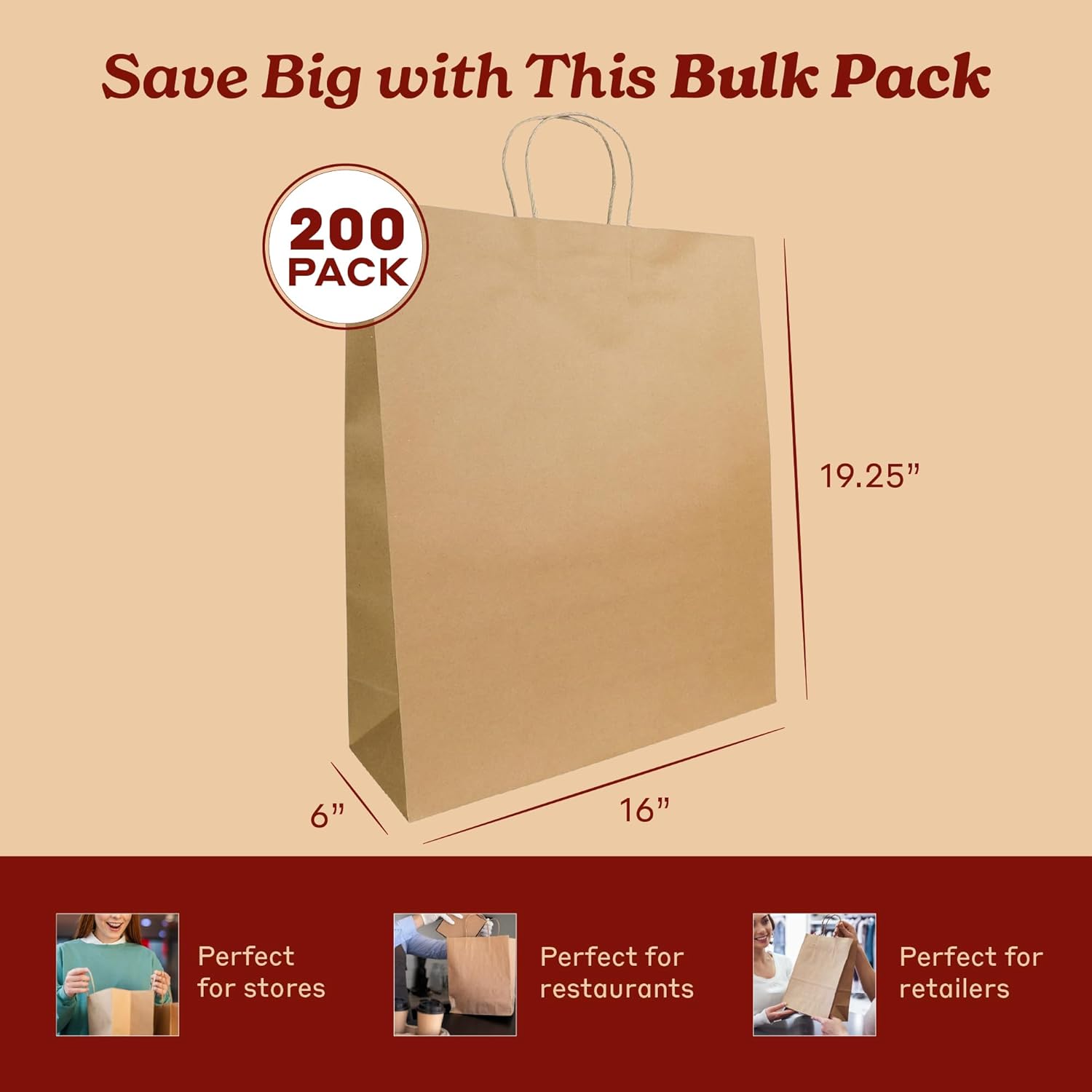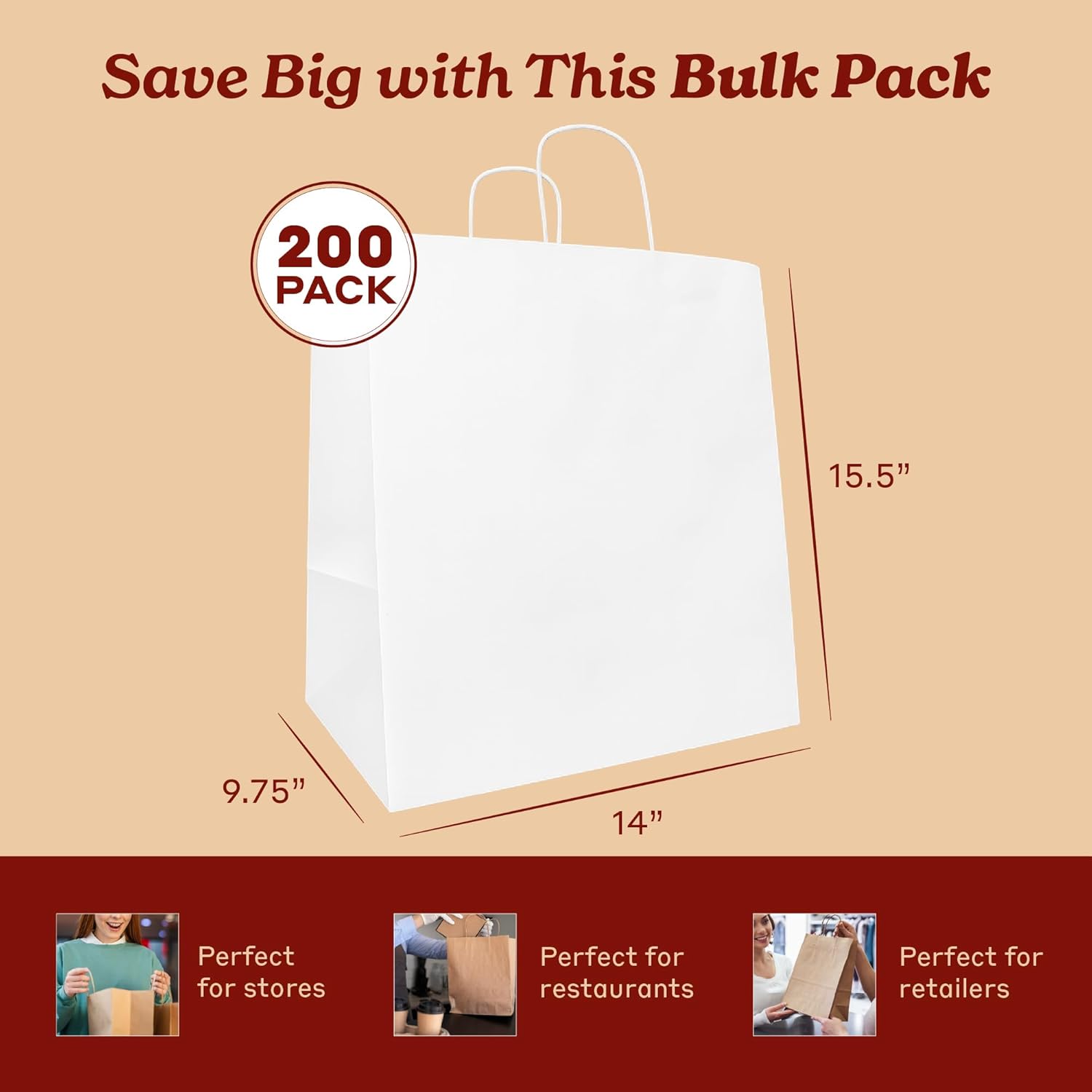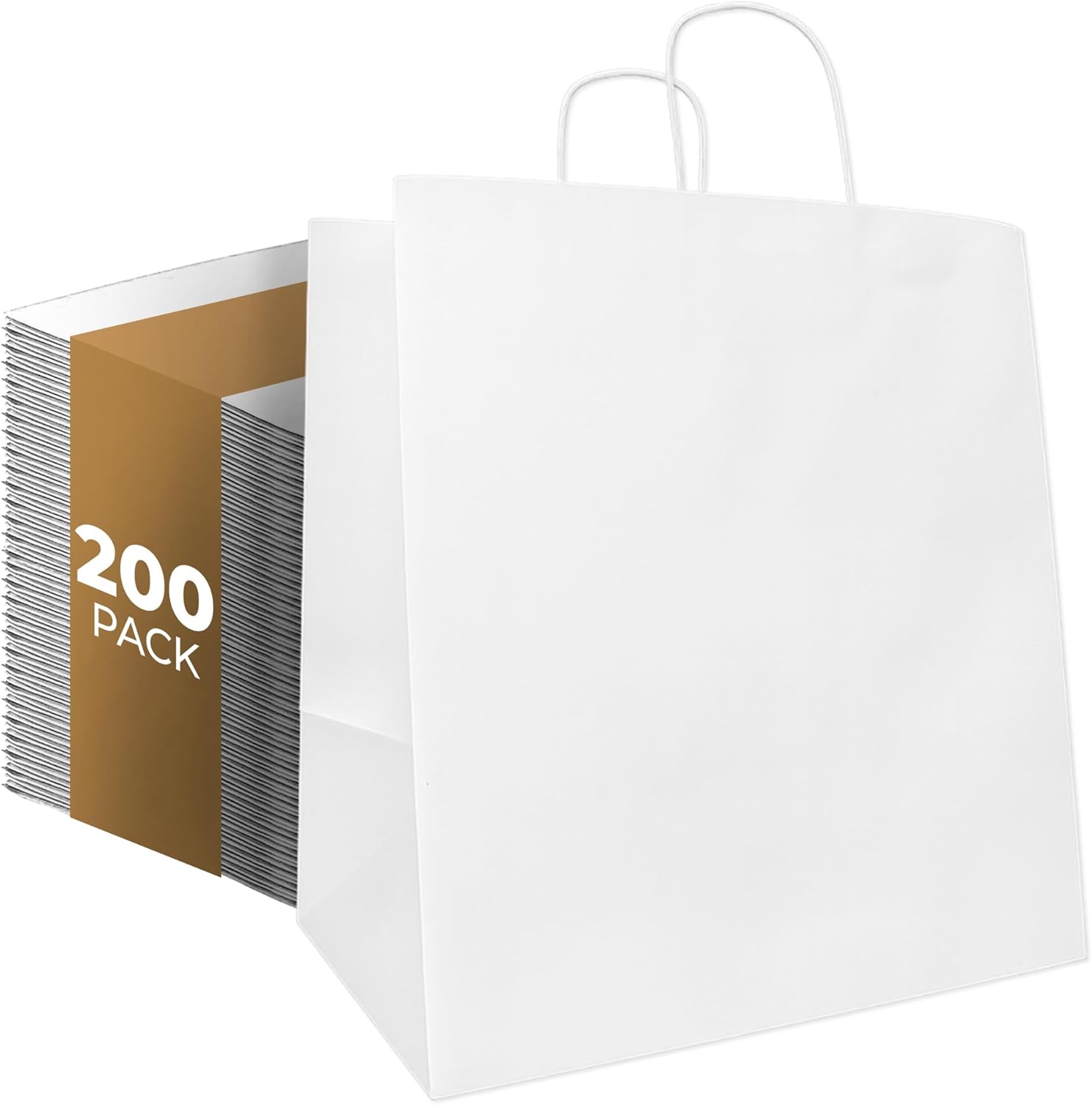 Bagtron 200 Kraft Paper Bags 14"x10"x15.75" with Twisted Handles for Take-Out, To-Go, Retail Business, Restaurant, Shopping, Craft Gift Bag, 120 GSM, Brown