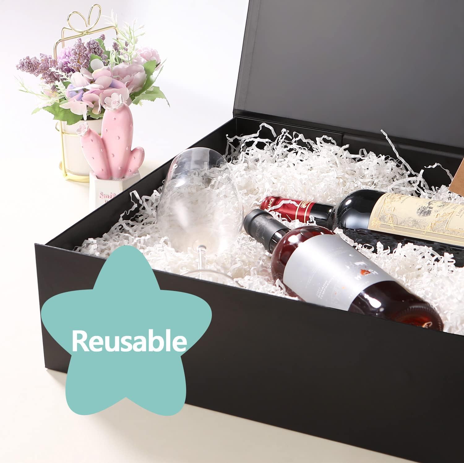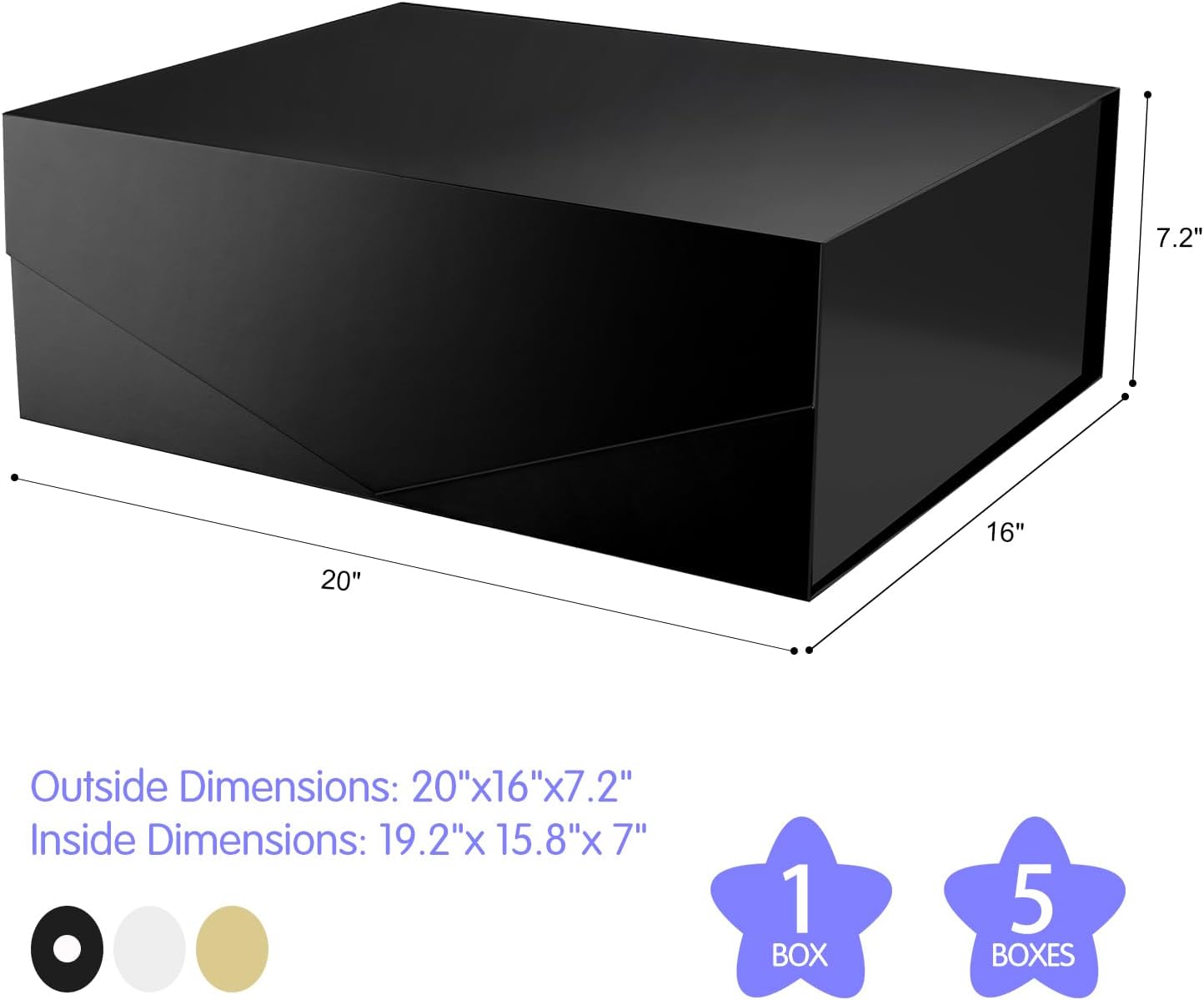 5 Extra Large Gift Boxes with Lids, 16.3x14.2x5 Inches, Black Groomsmen Magnetic Gift Boxes for Clothes and Large Gifts (Matte Black)