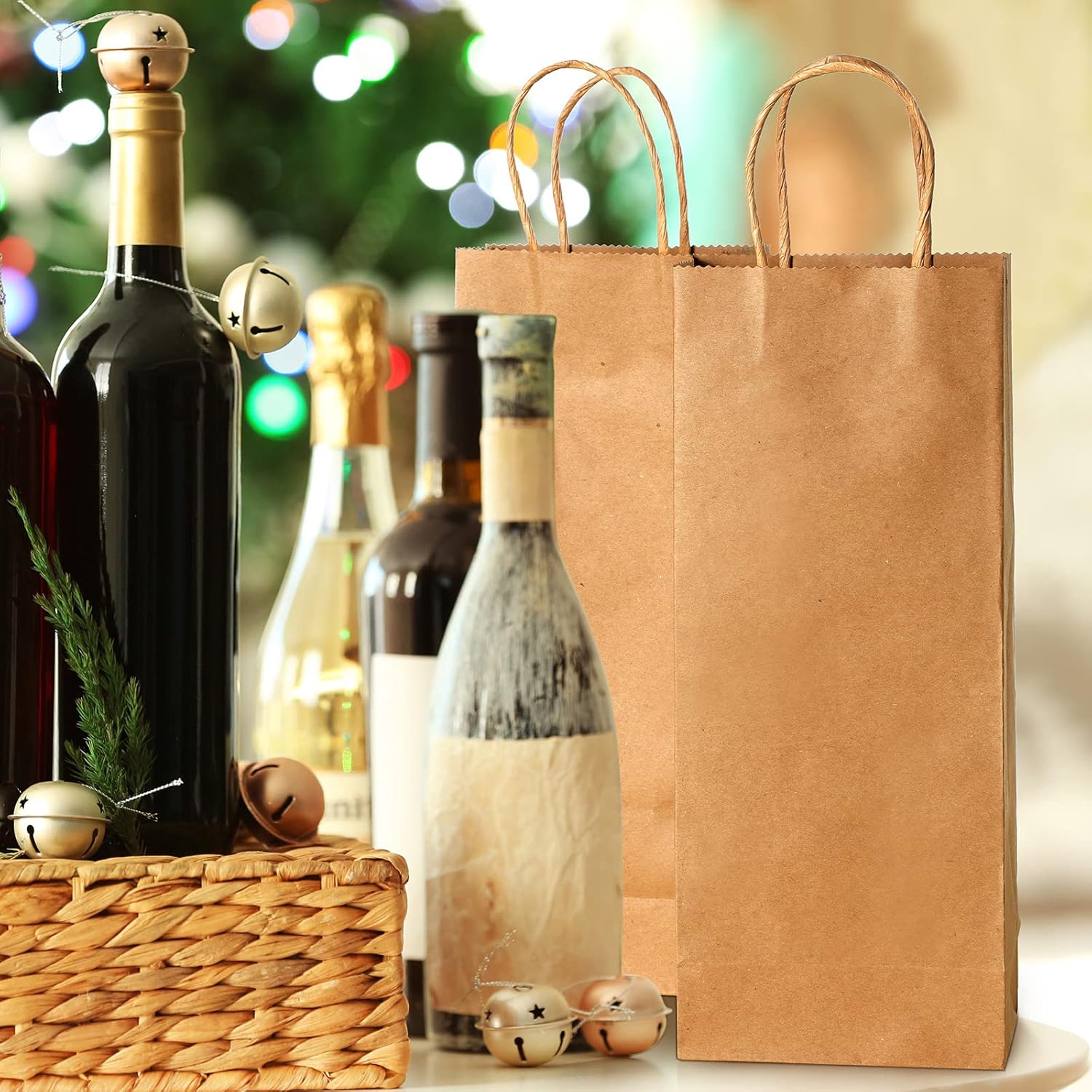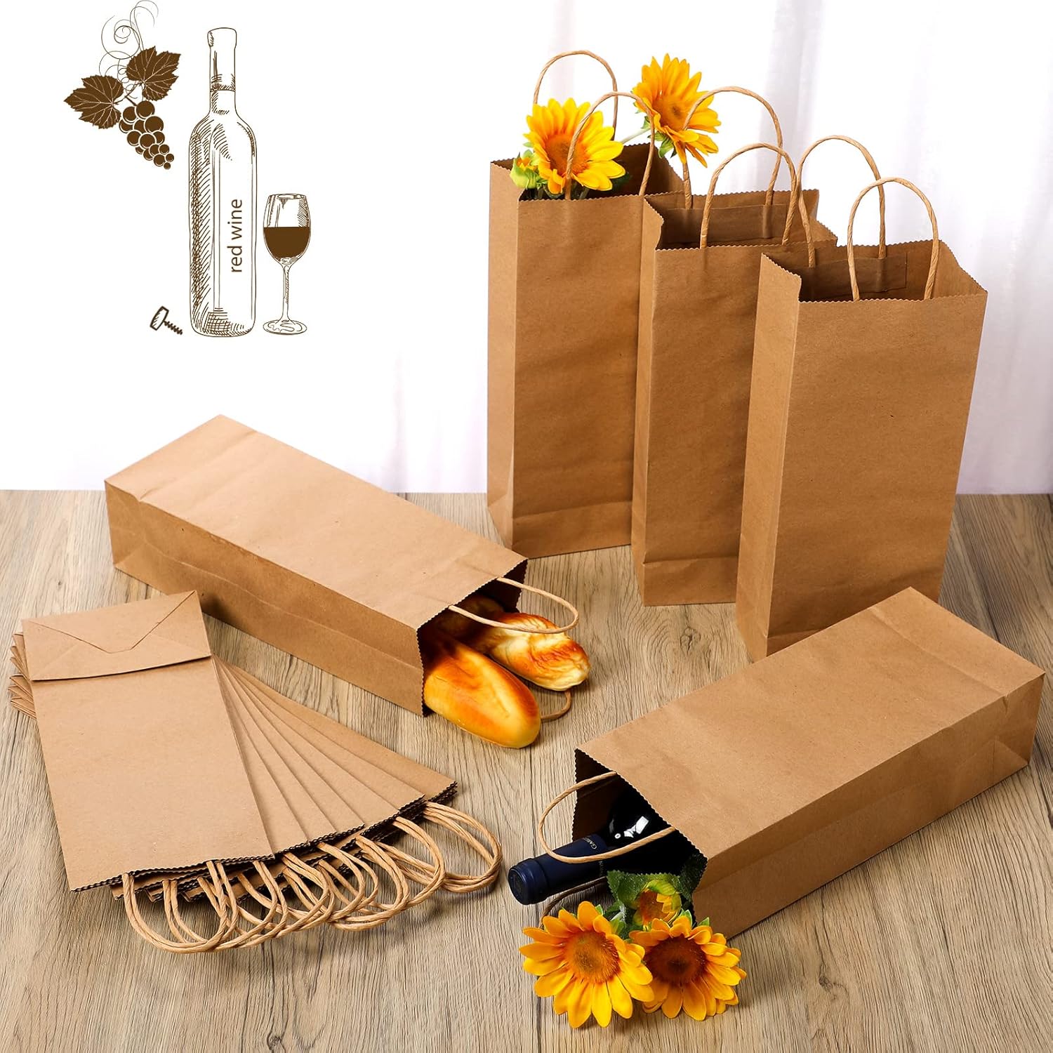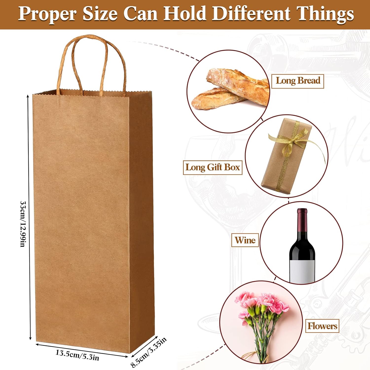Handepo 200 Pieces Paper Wine Bags Kraft with Convenient Handles 13 x 5.3 x 3.3 Inch Gift Tote Shopping Bags for Small Business Wine Gift Wrap (Brown)