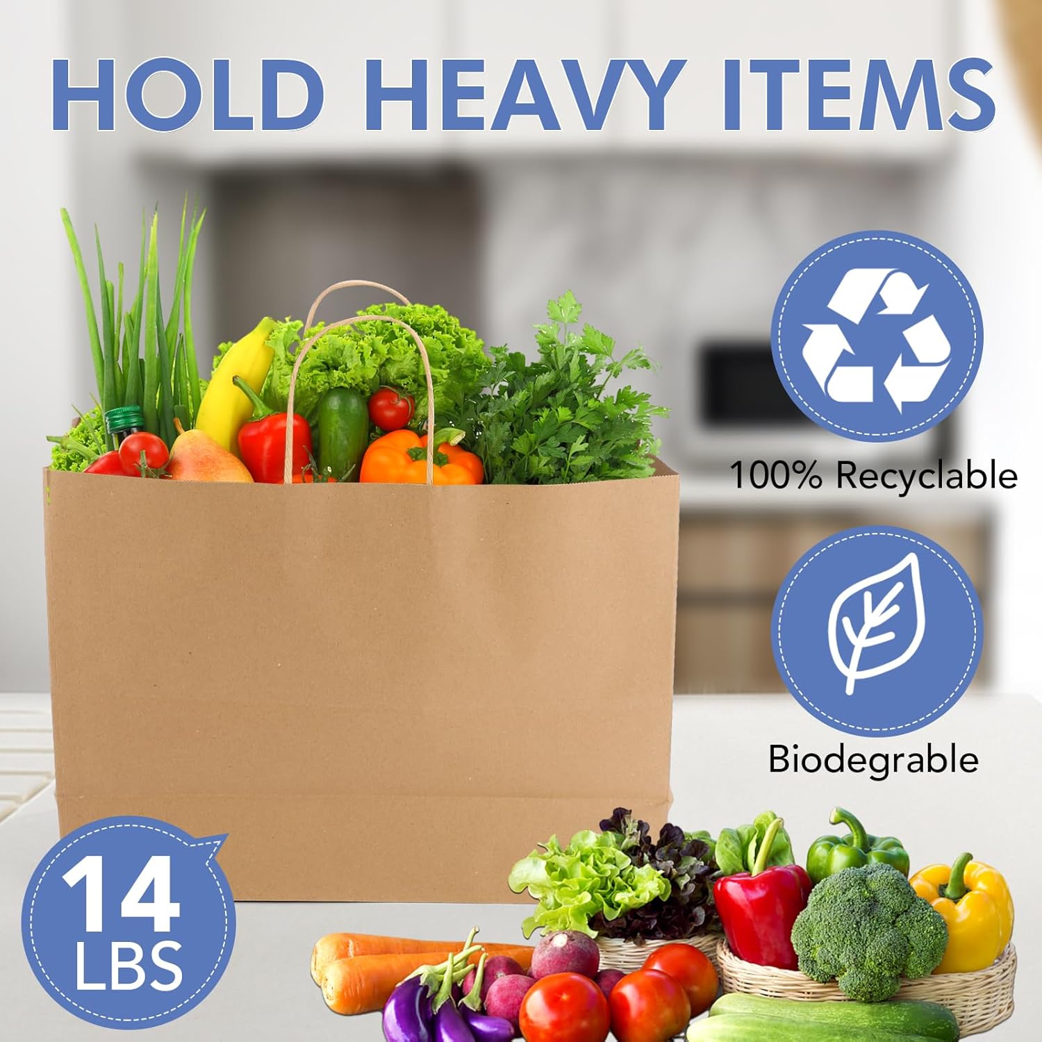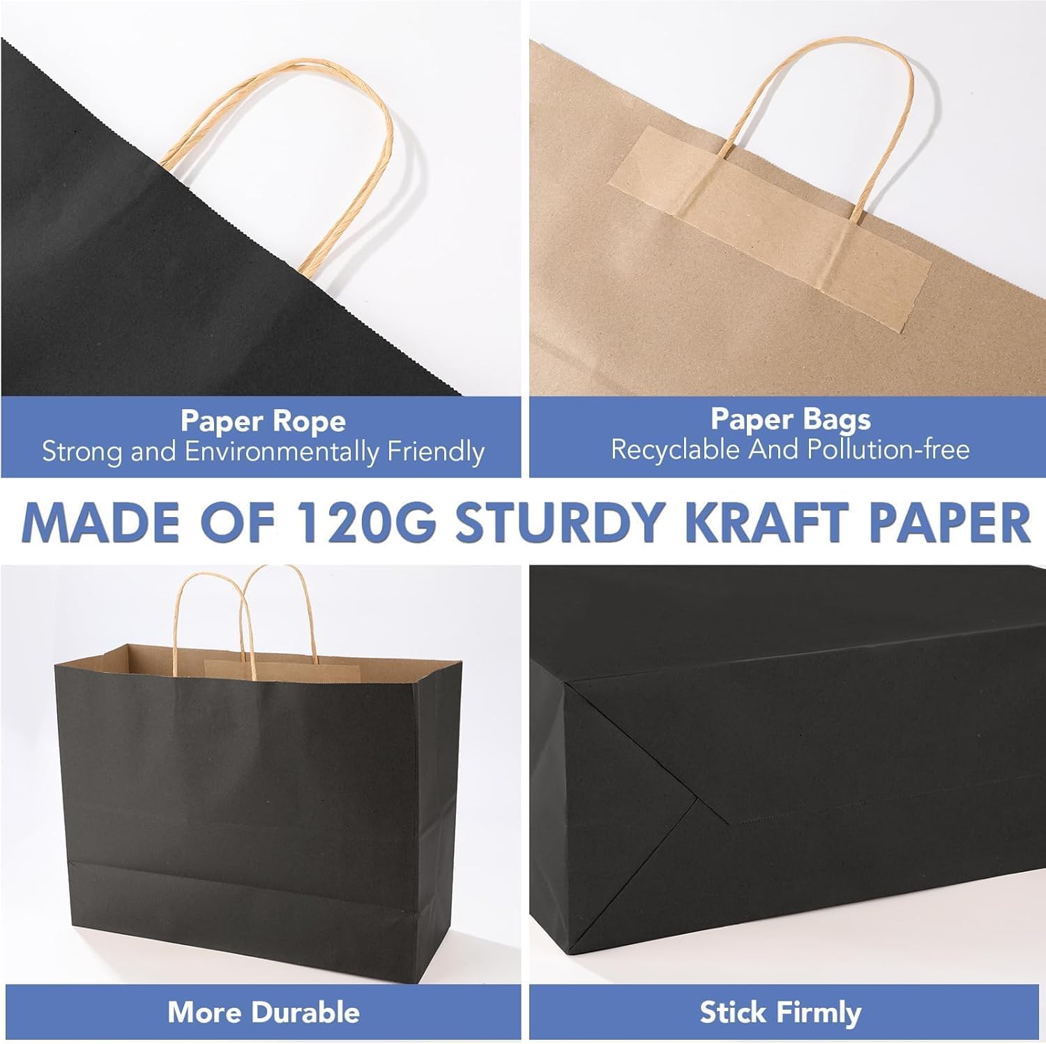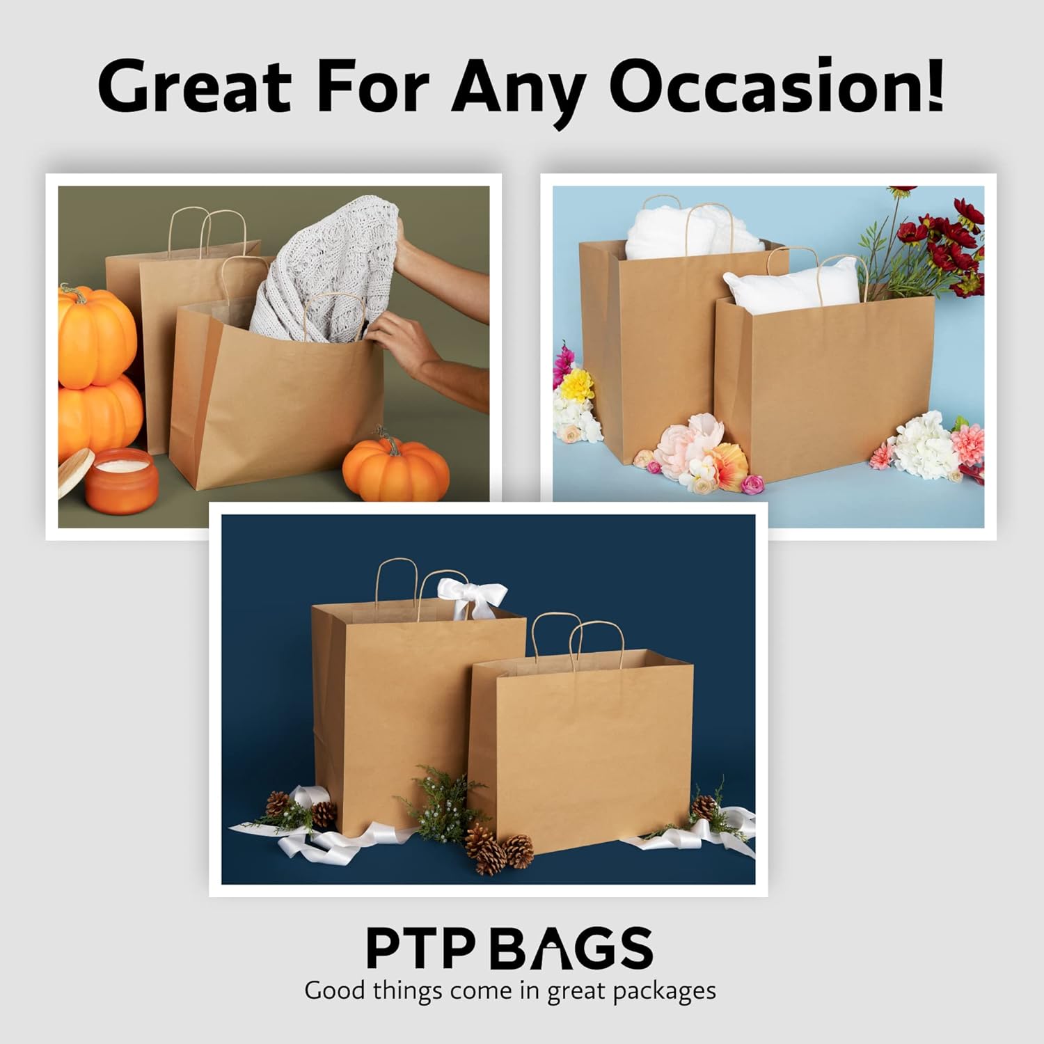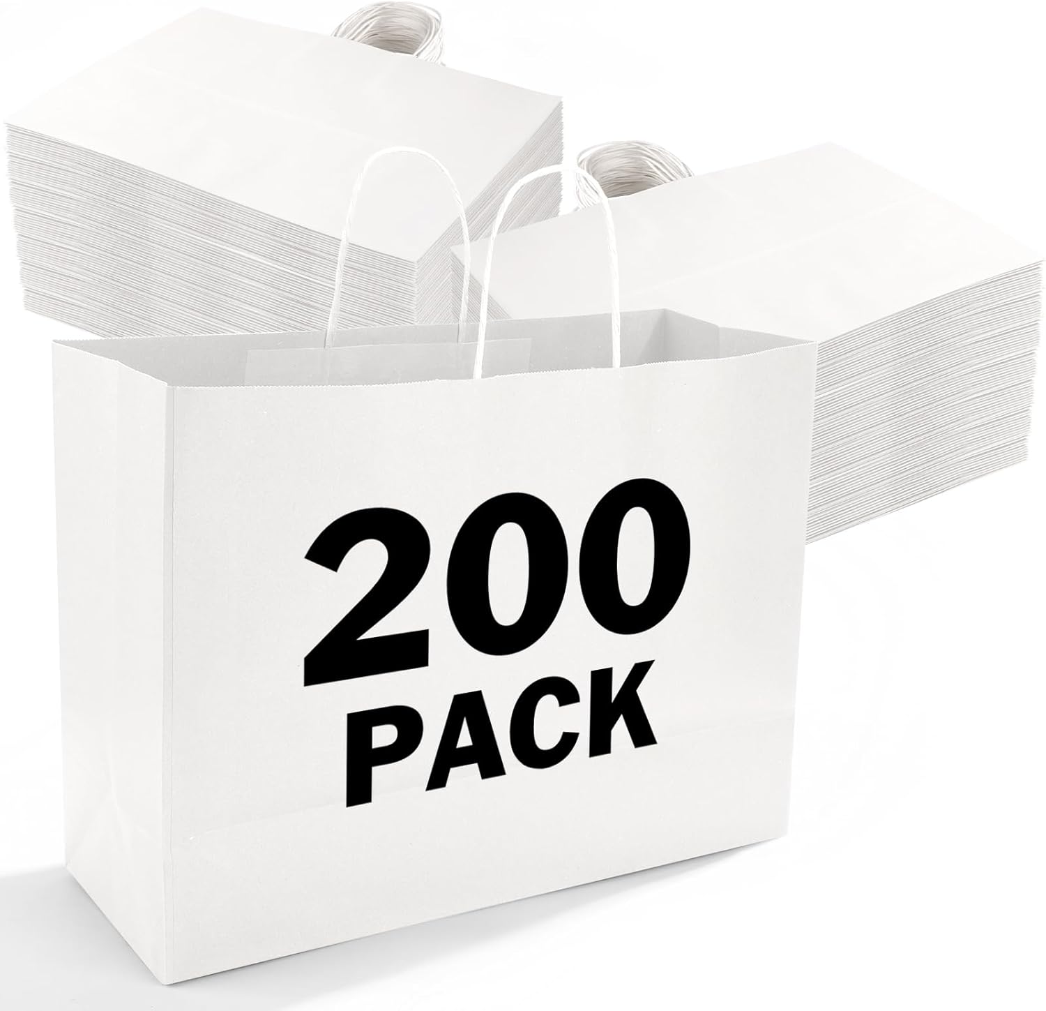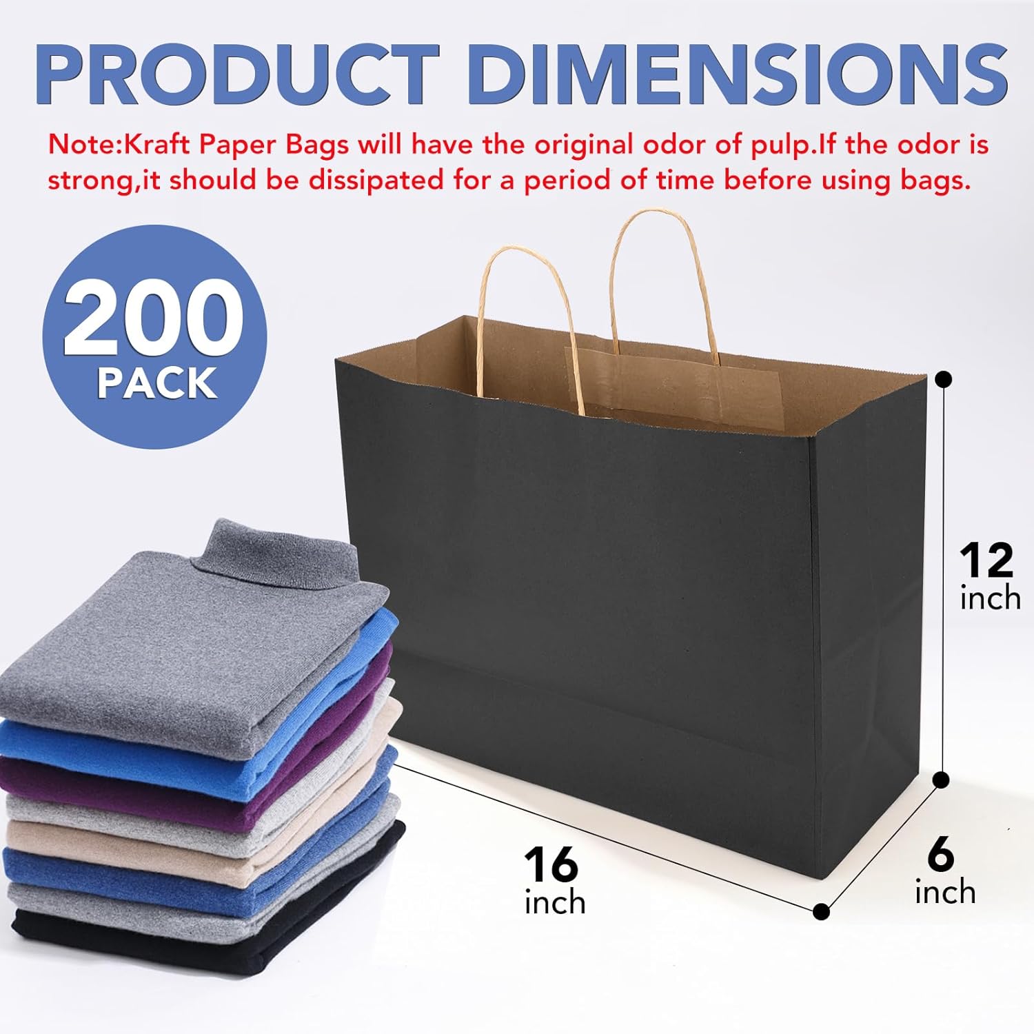 XPCARE 200Pack Large Paper Gift Bags with Handles Bulk,16x6x12 Inch Kraft Bag Packaging Brown Paper Bags for Birthday Party Boutiques Business Retail Stores Merchandise