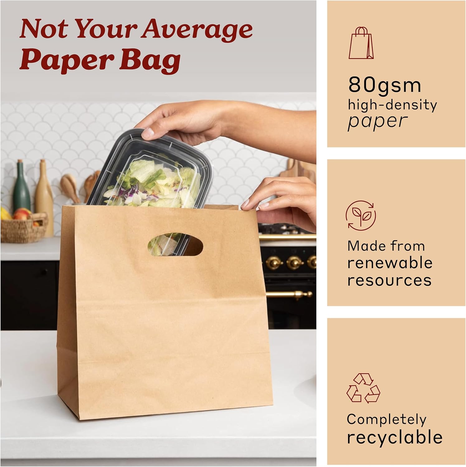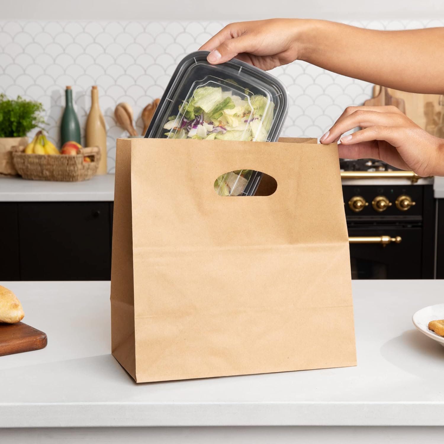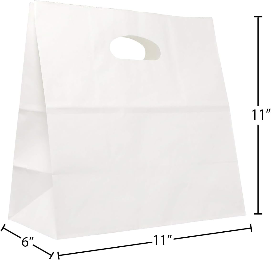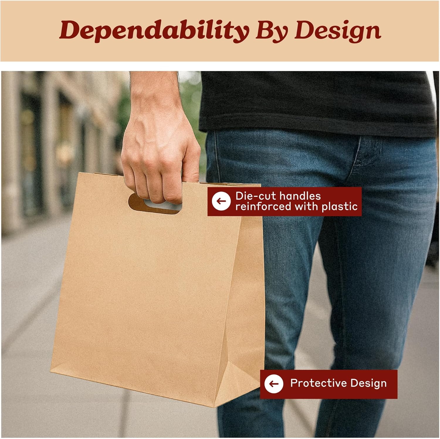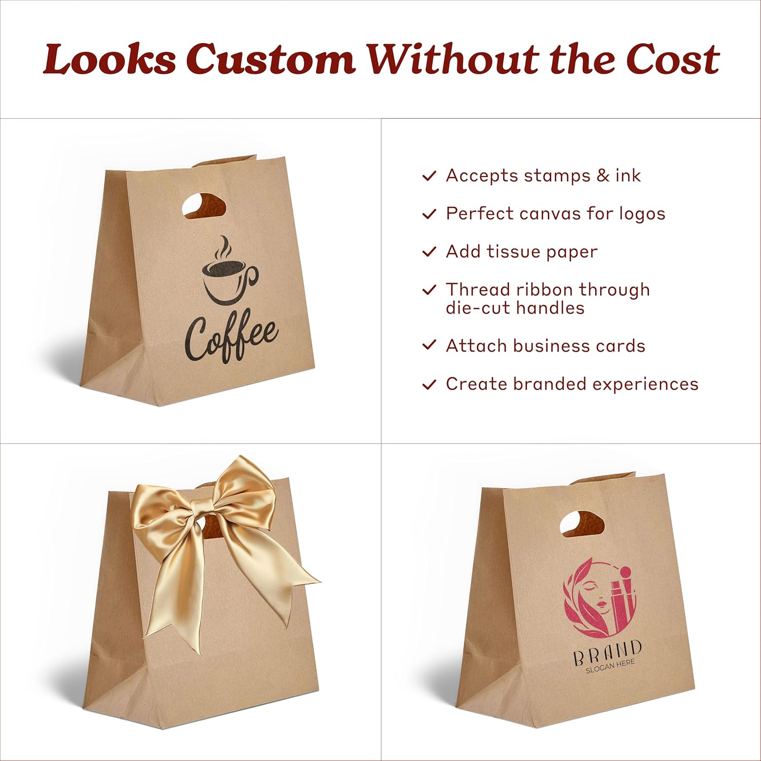 Natural Brown Kraft Paper Bags with Die Cut Handles - Recyclable Shopping Tote Bag for Retail, Gifts, Restaurant Takeout, Catering, Bakery, Small Business, Party Favors - 11" x 6" x 11", 500 Pack