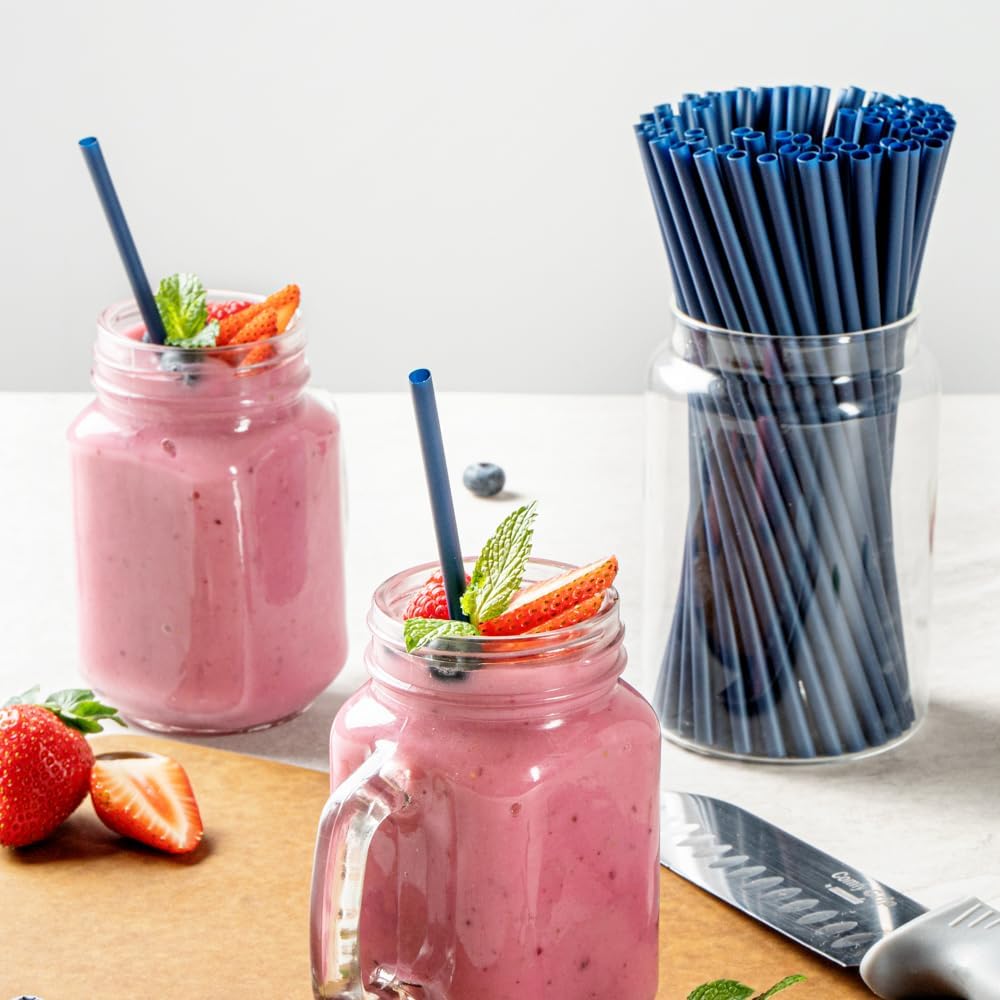 Restaurantware-Basic Nature 8.3 Inch Disposable Straws, 2000 Sustainable Straws - Sturdy, Won't Alter Flavors, Midnight Blue PLA/PBAT Straw, For Hot And Cold Drinks