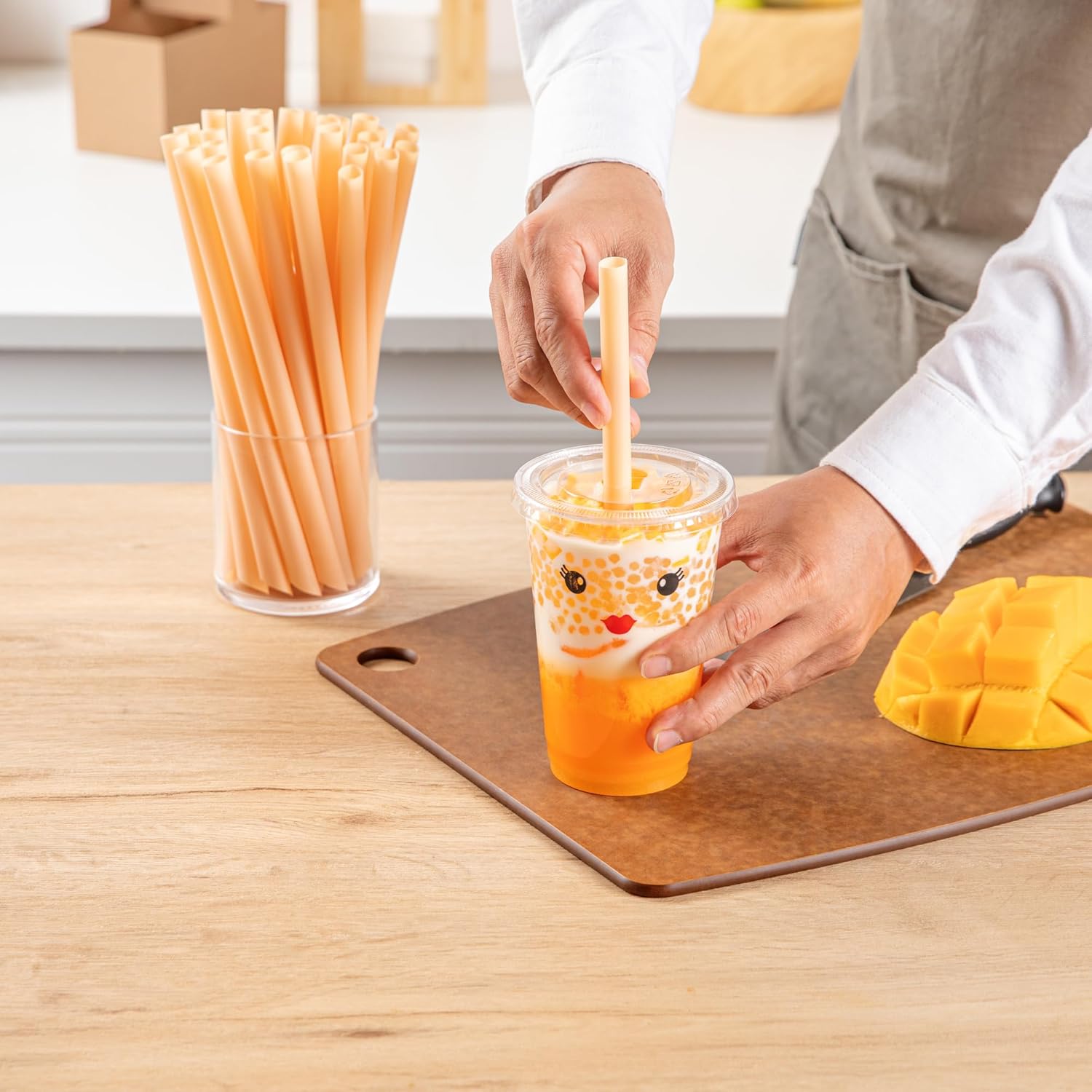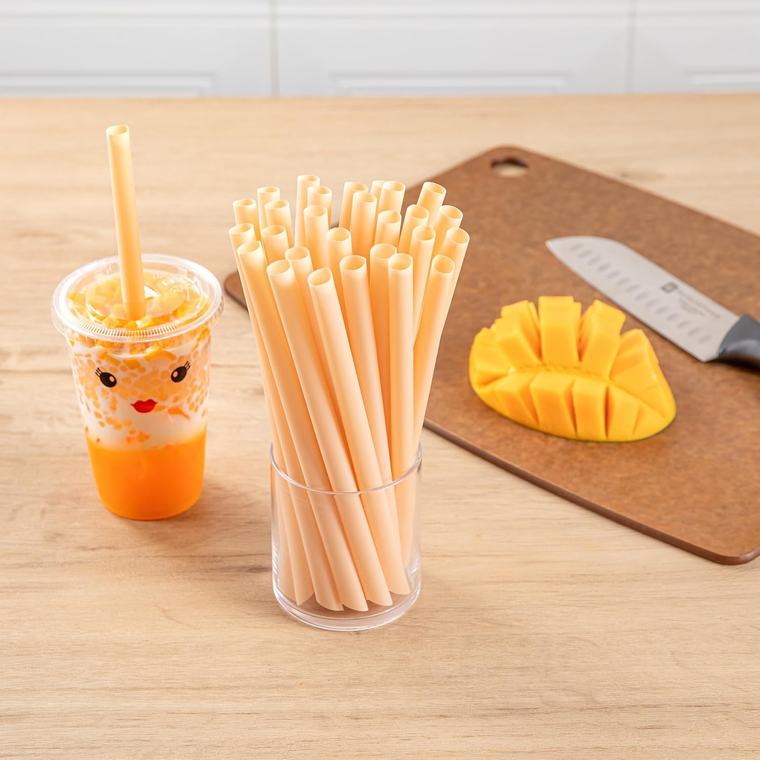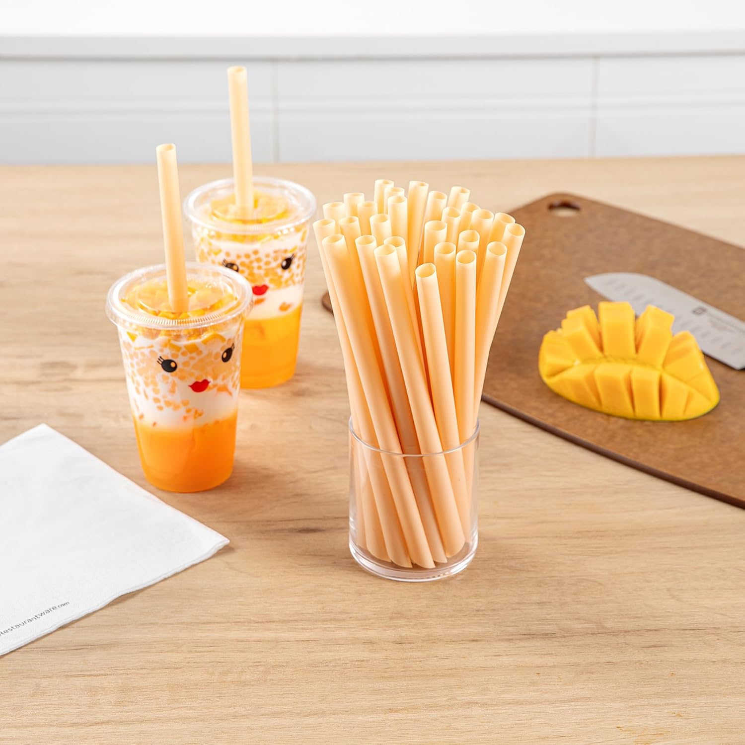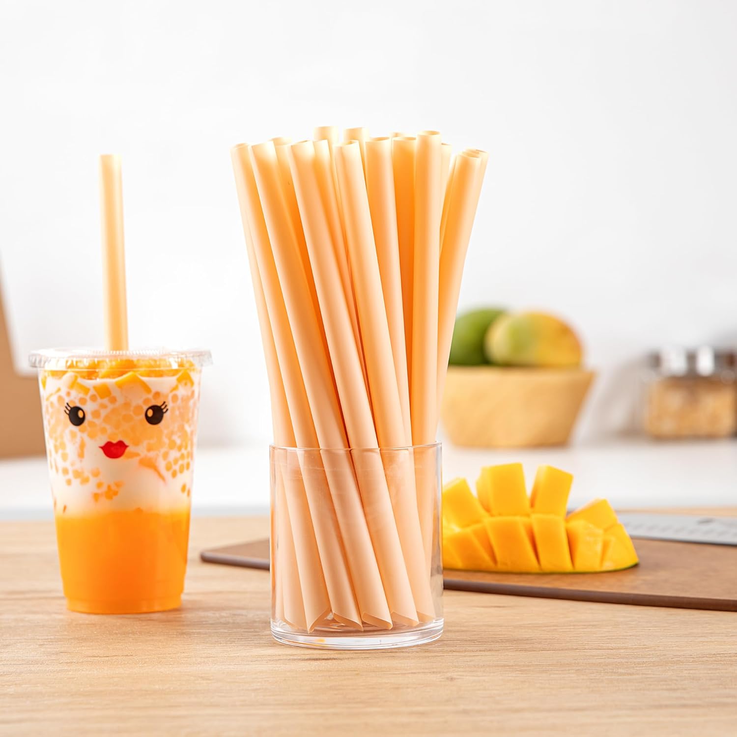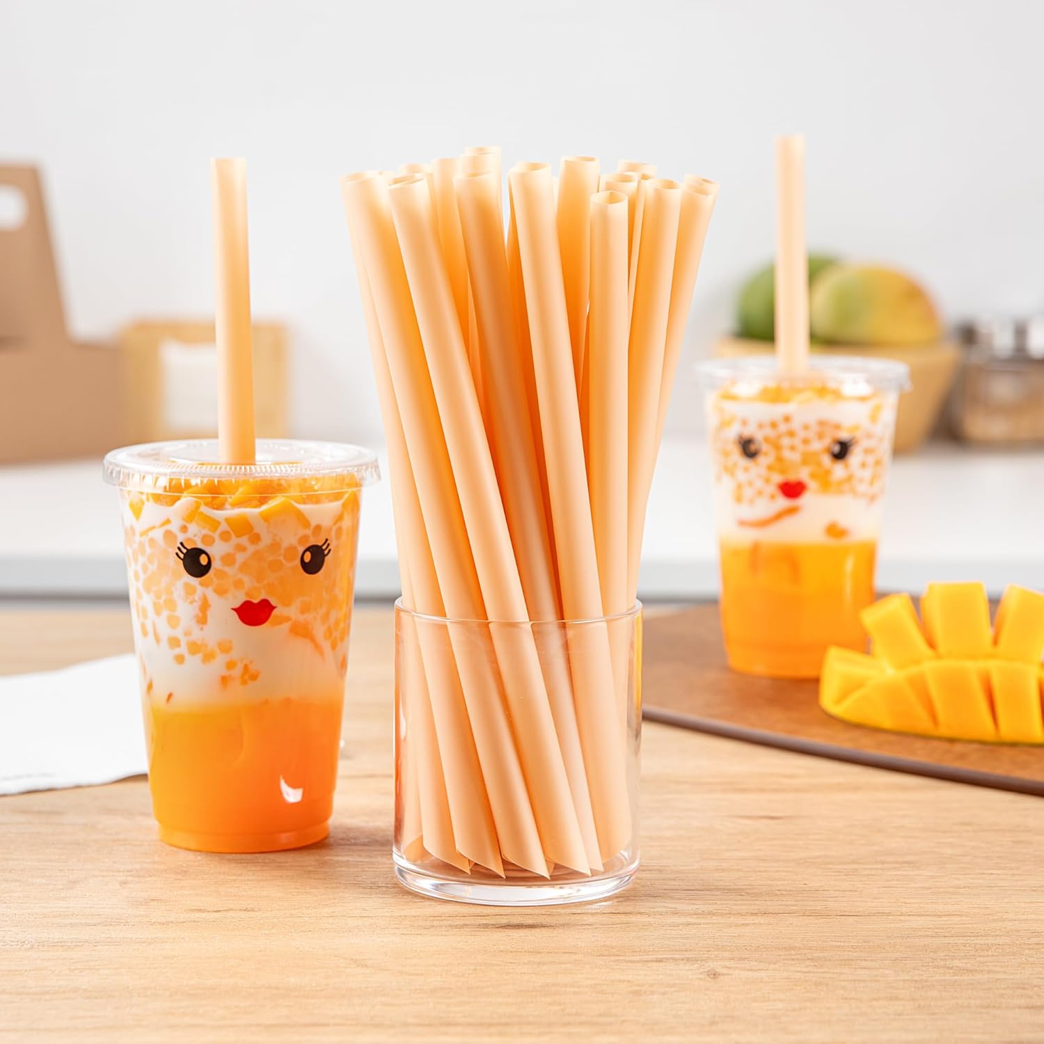 Restaurantware Orange Boba Straws 1000 Count 9 Inch Durable Wide Diameter Unwrapped Jumbo Straws with Pointed Tip Design for Thick Drinks use in Coffee Shops, Juice Bars, and Bubble Tea Shops