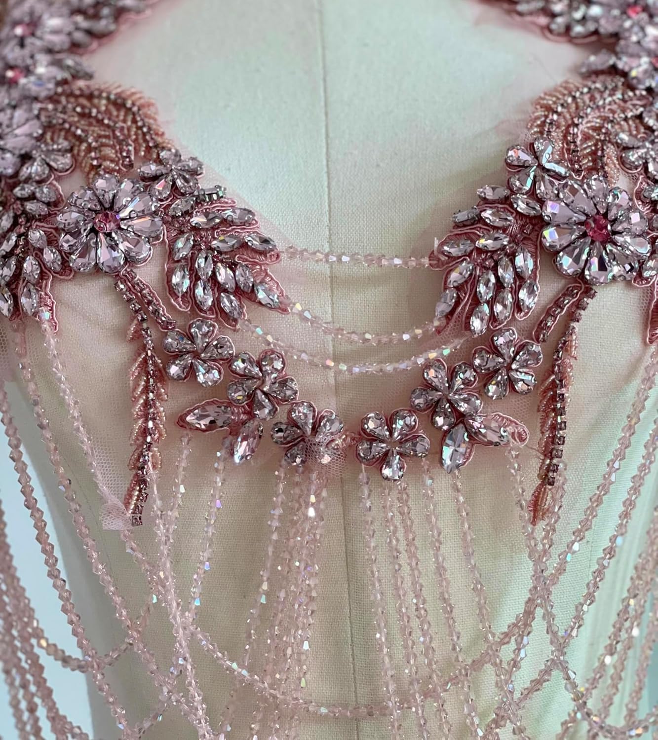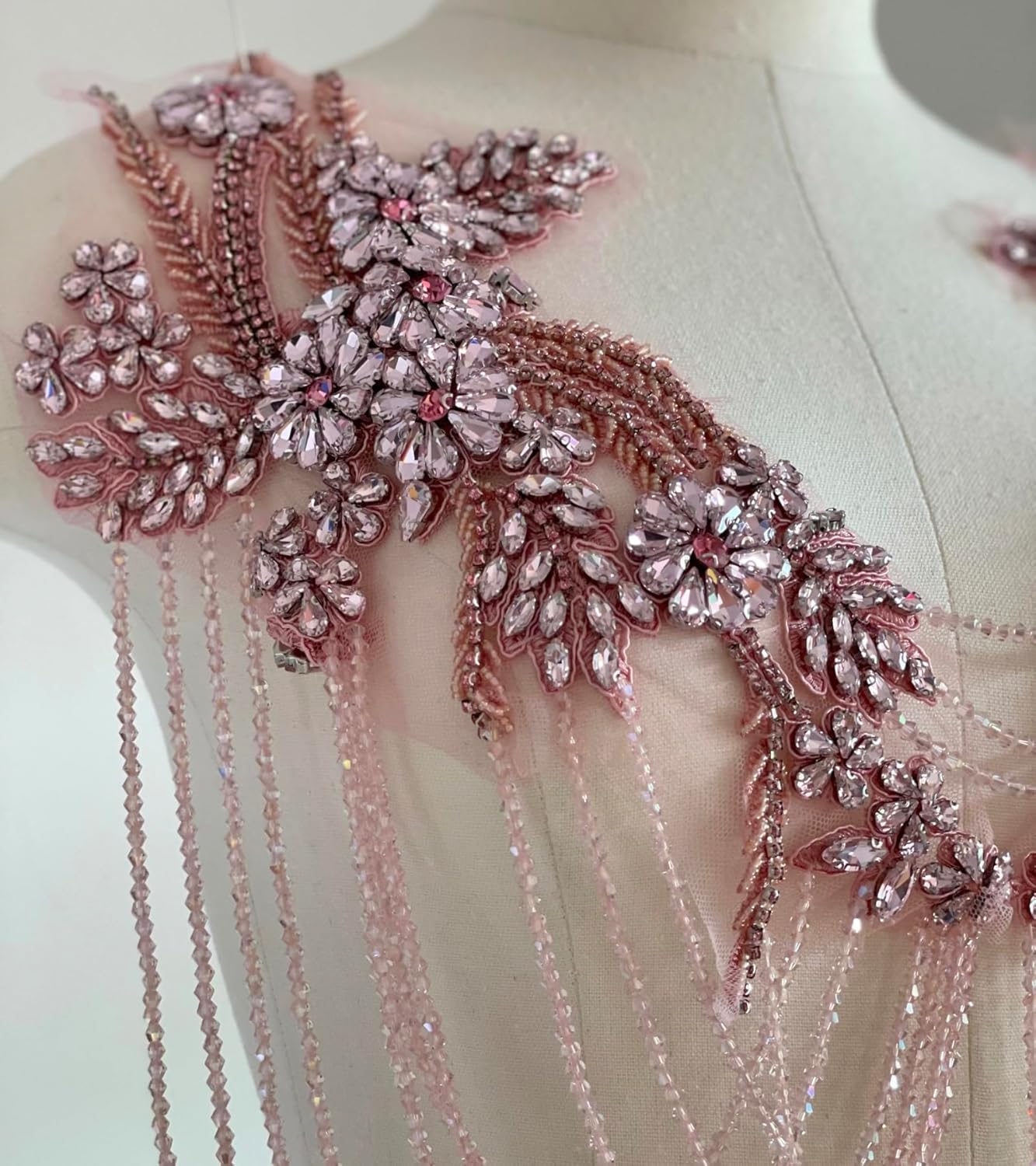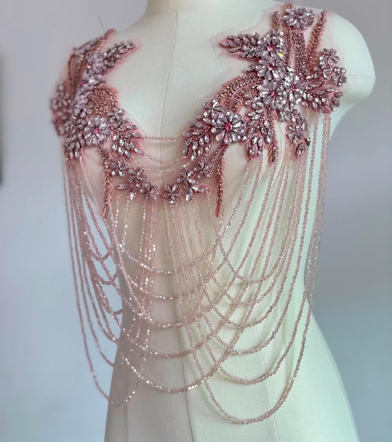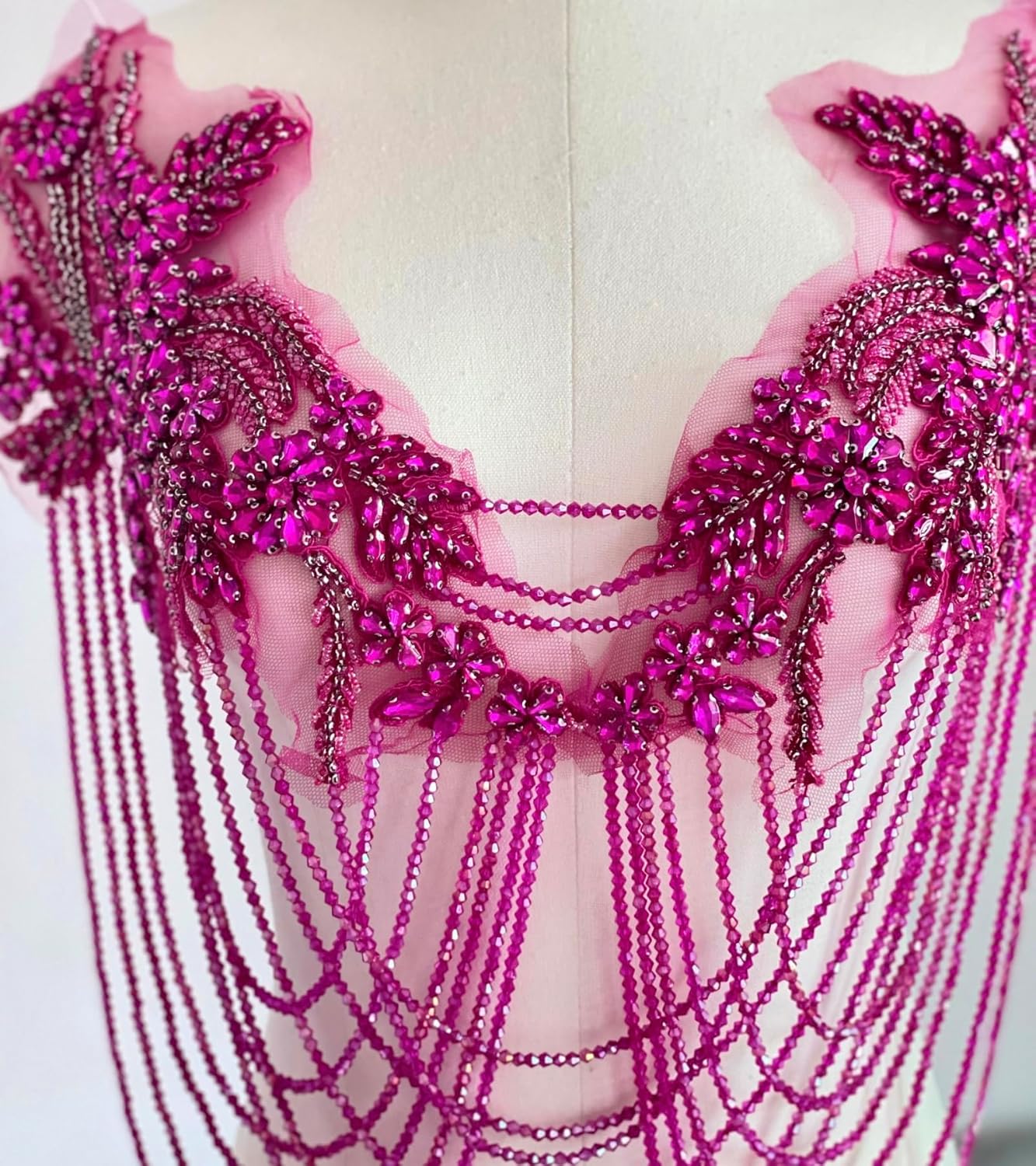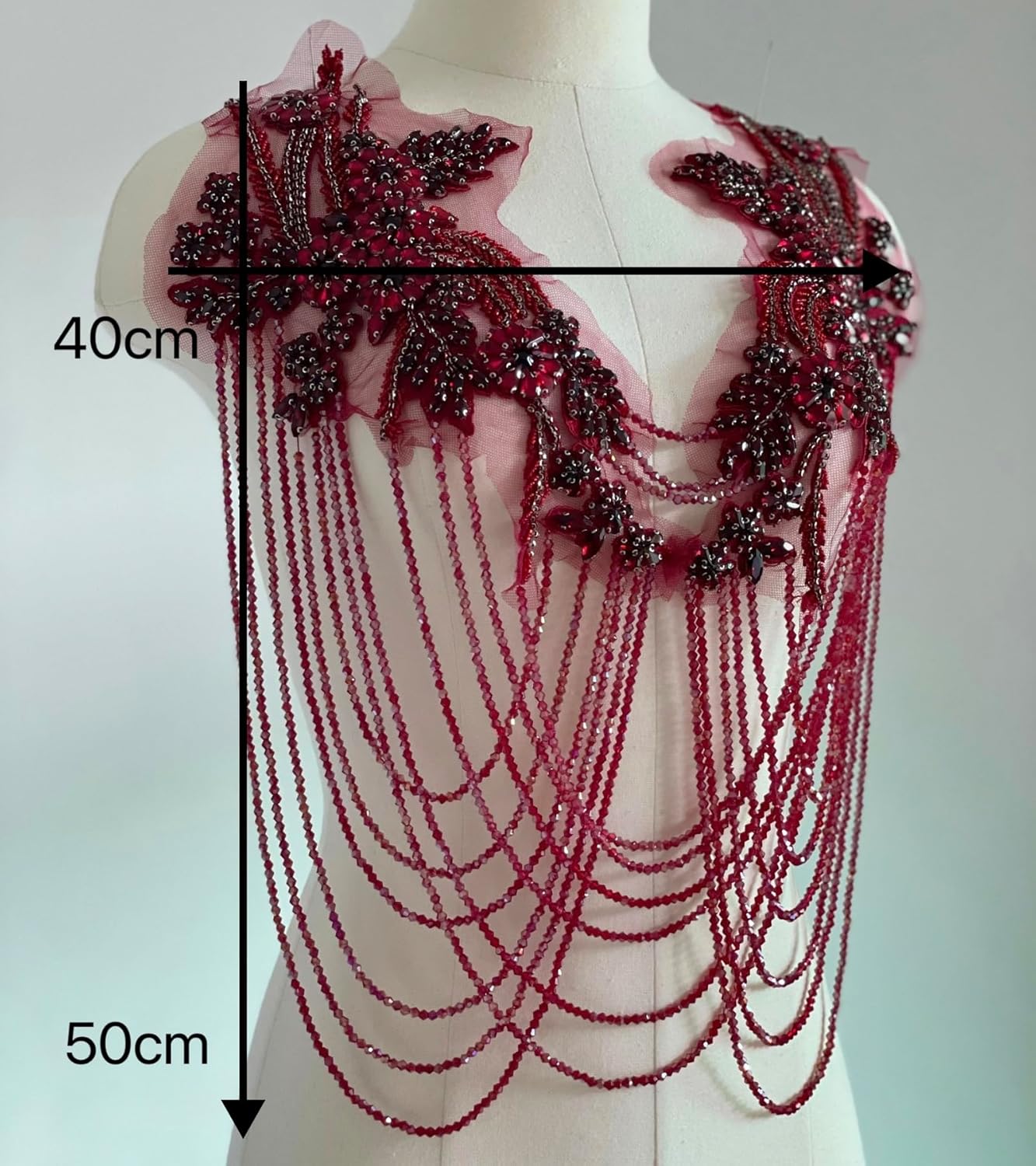 Handmade Tassel Rhinestone Applique,Rhinestone Bodice Applique, Rhinestone Applique for Dress Wedding Clothing Accessory Applique、Patch (Pink)