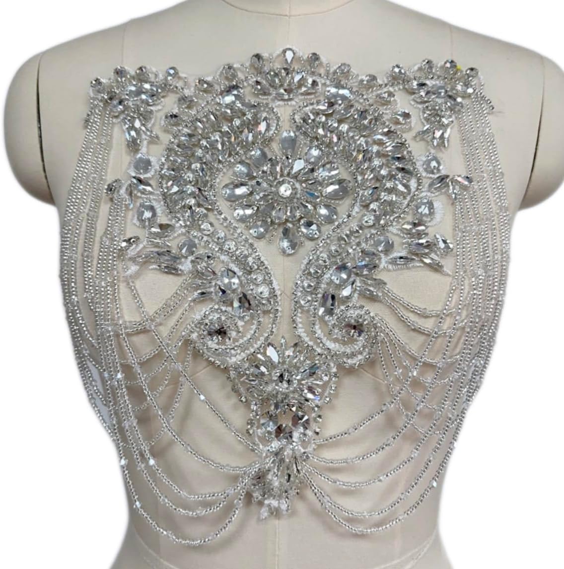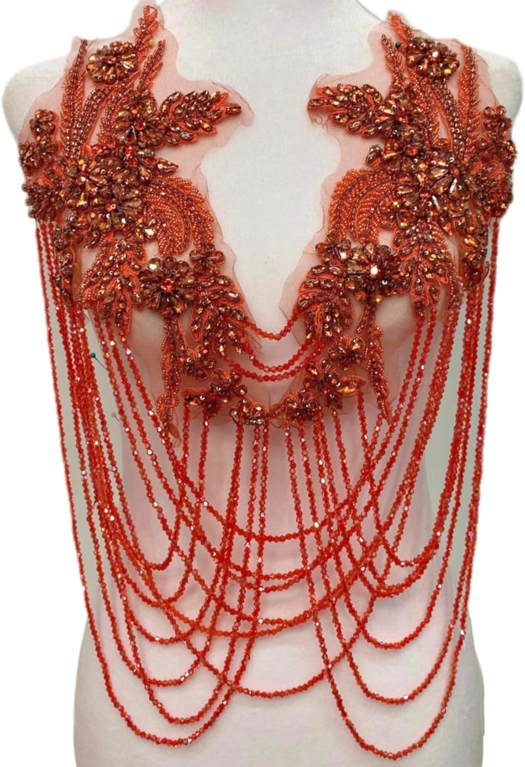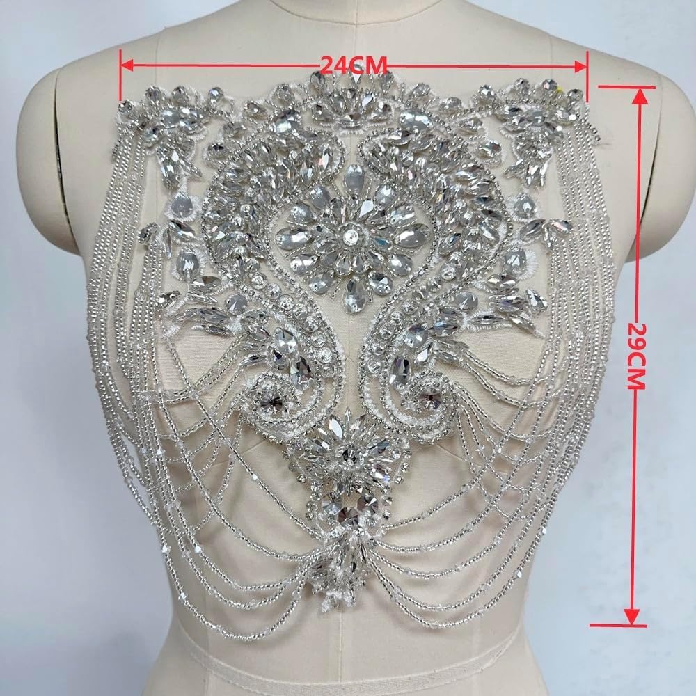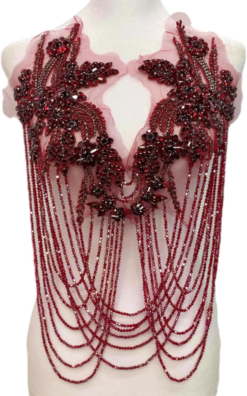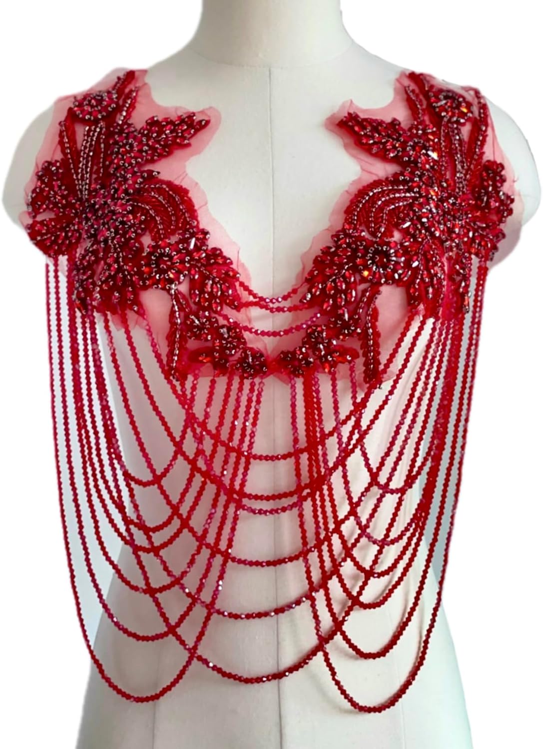Handmade Tassel Rhinestone Applique,Rhinestone Bodice Applique, Rhinestone Applique for Dress Wedding Clothing Accessory Applique、Patch (Pink)