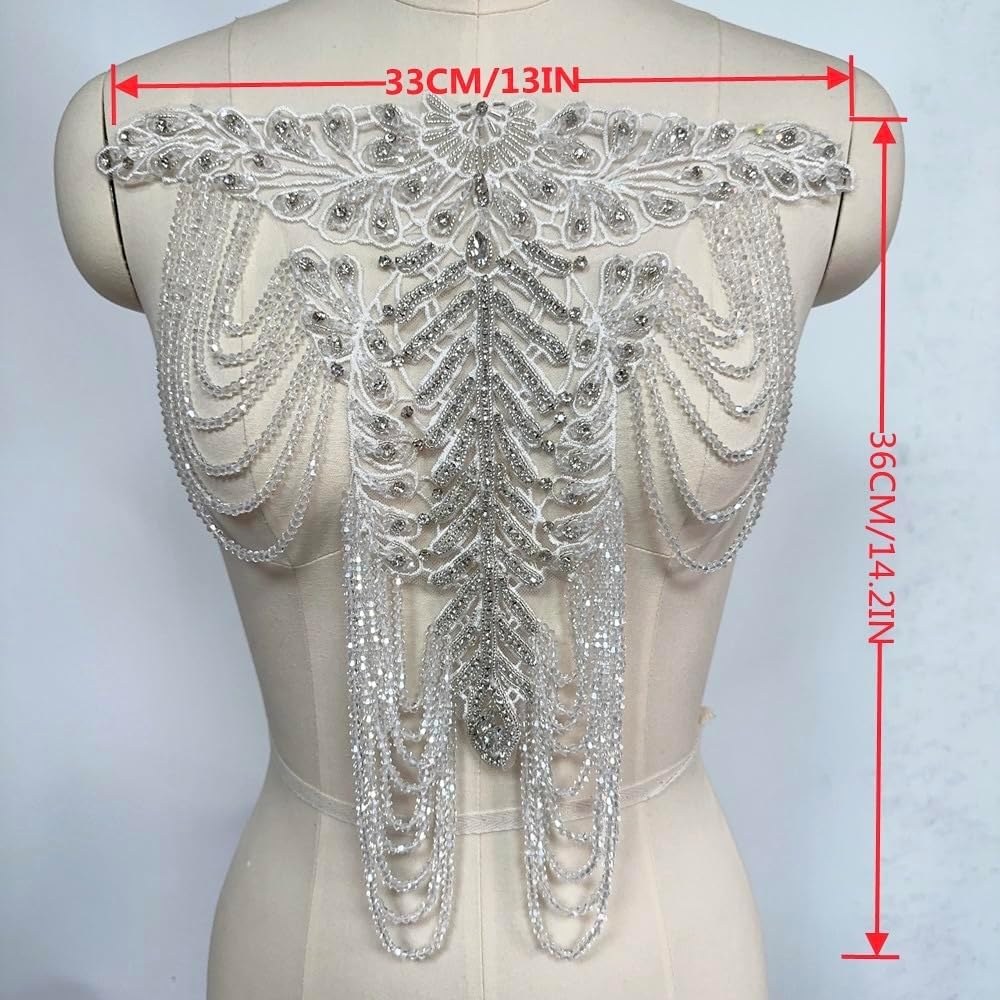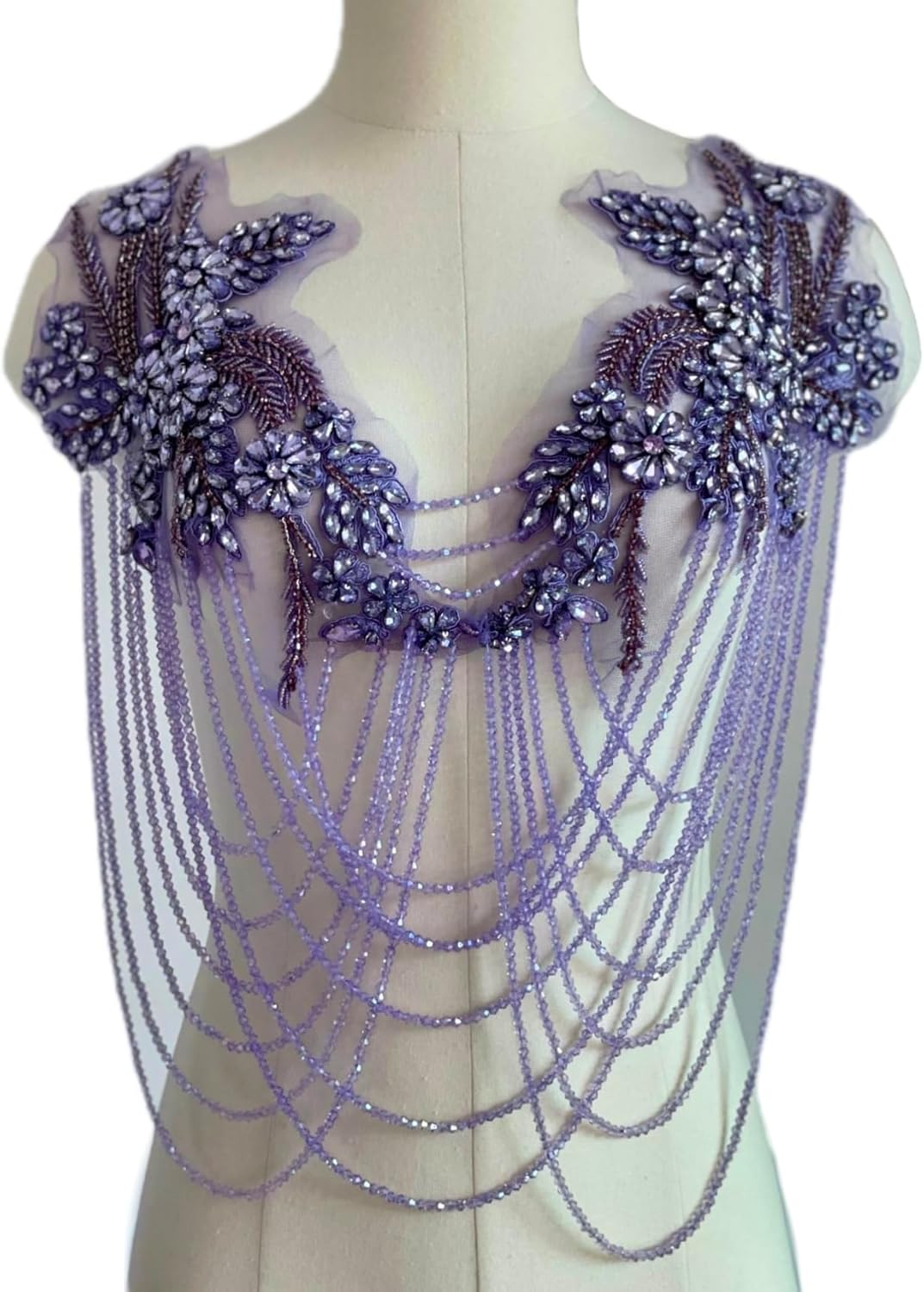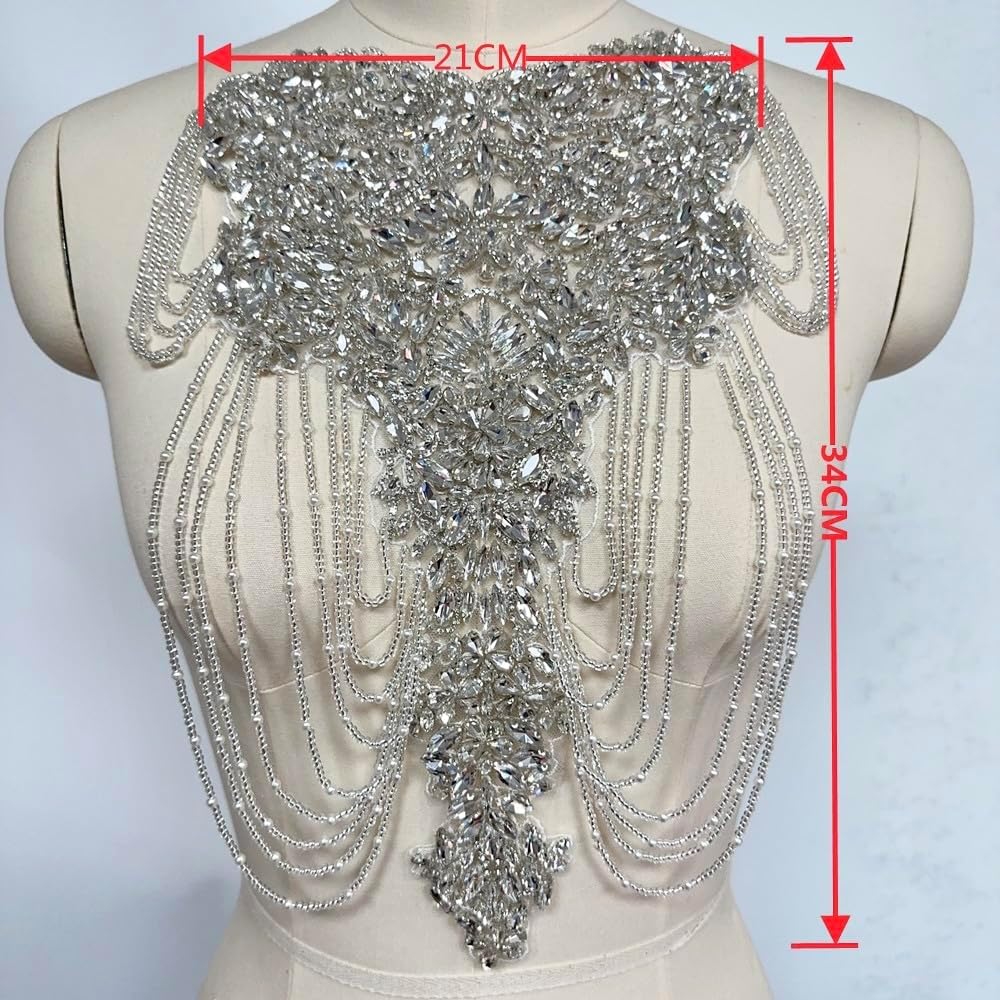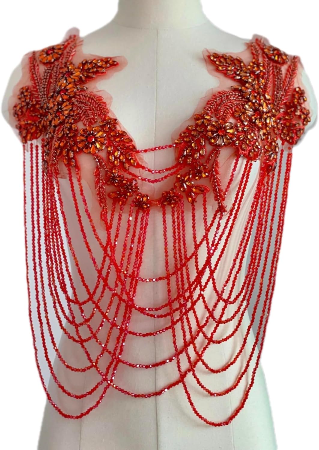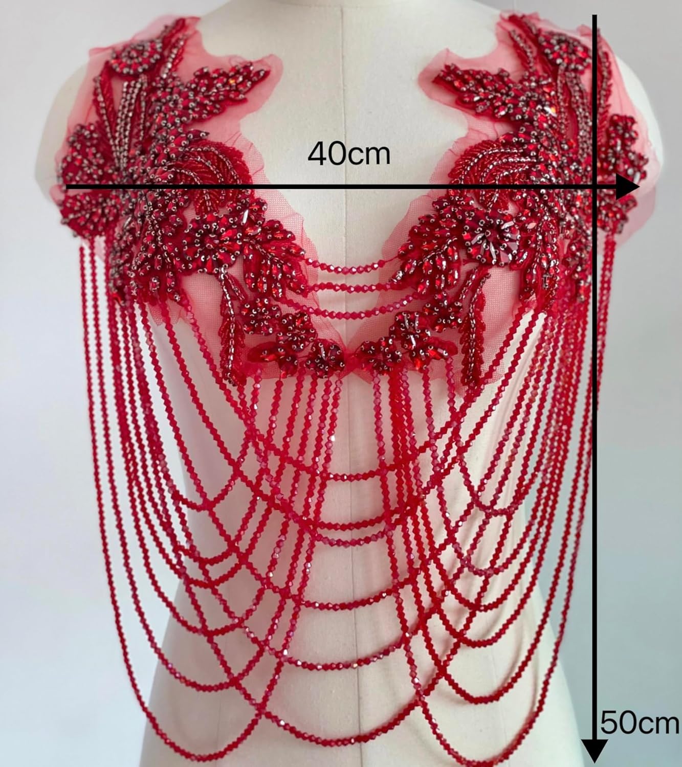 Handmade Tassel Rhinestone Applique,Rhinestone Bodice Applique, Rhinestone Applique for Dress Wedding Clothing Accessory Applique、Patch (Pink)
