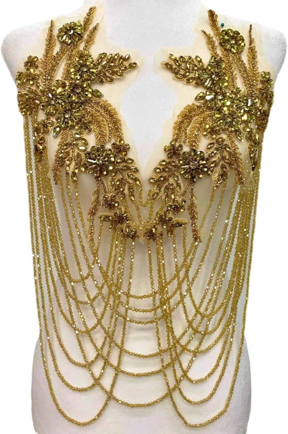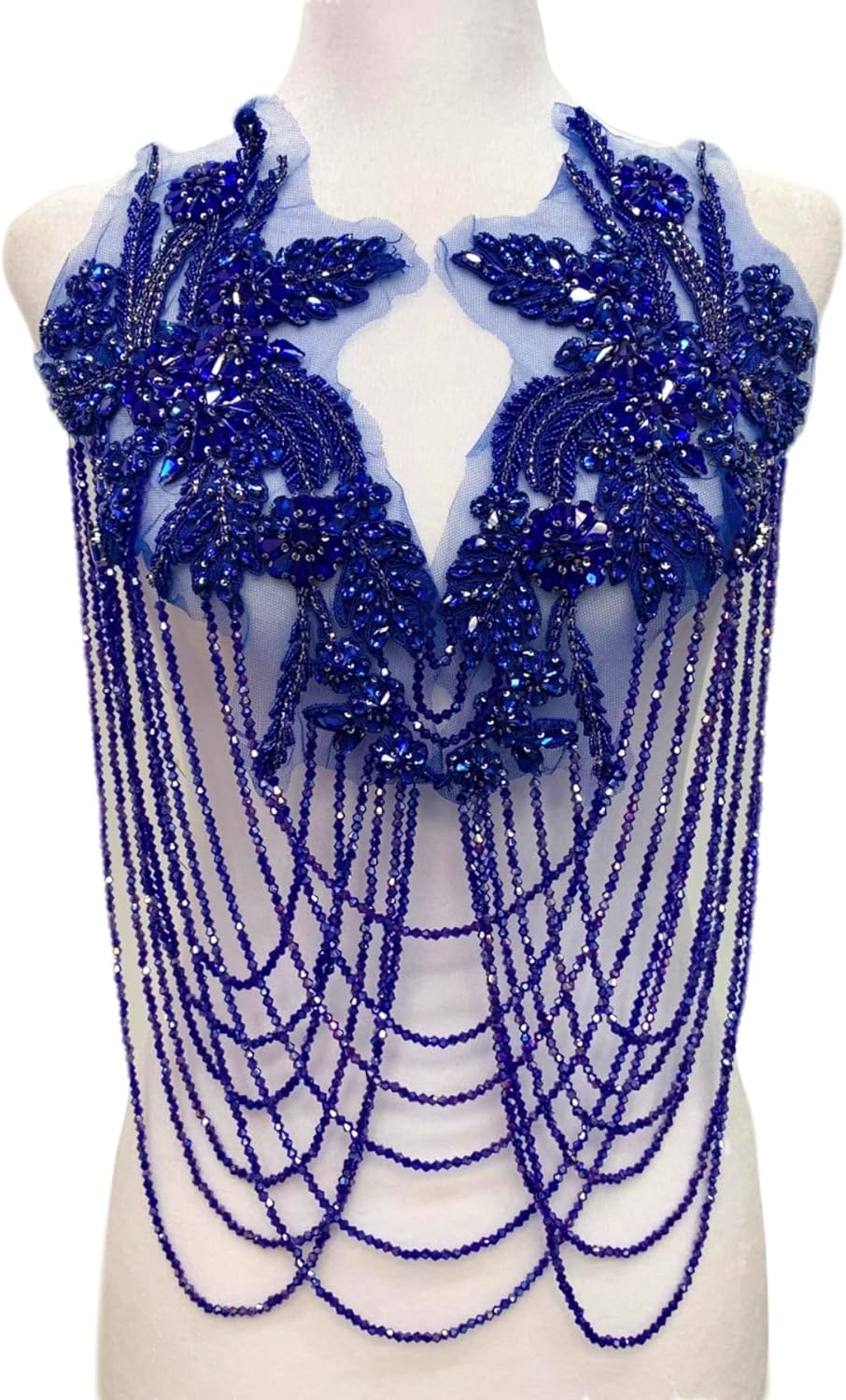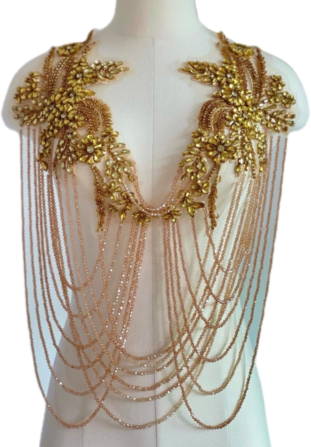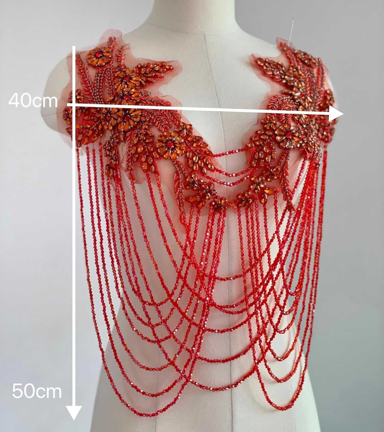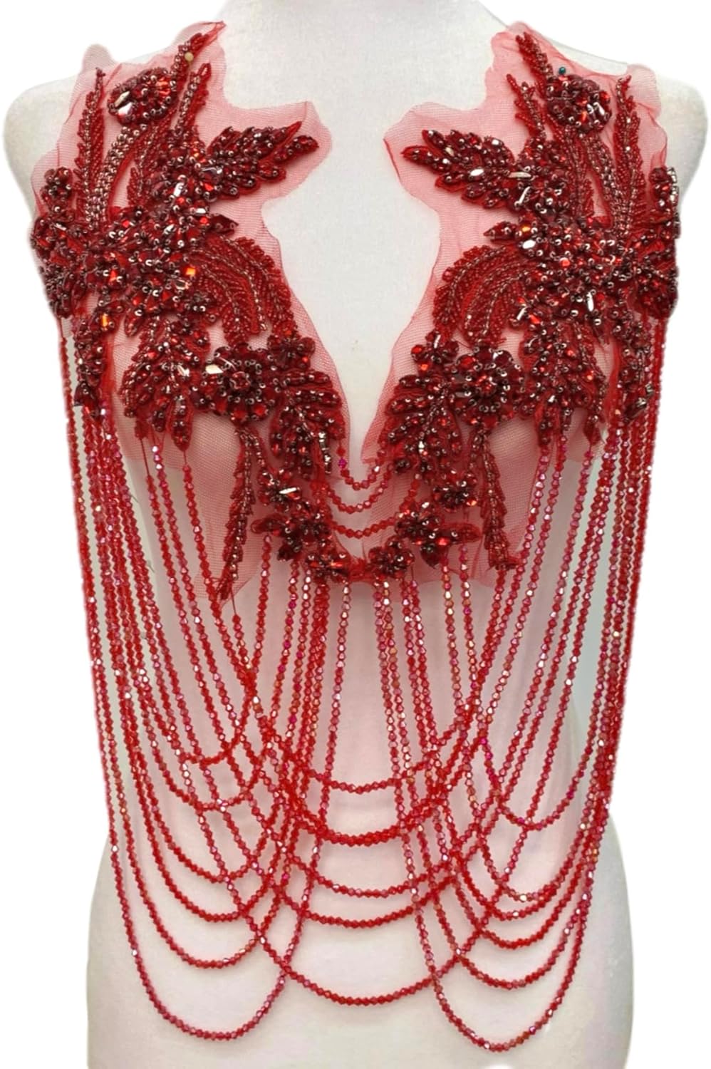 Handmade Tassel Rhinestone Applique,Rhinestone Bodice Applique, Rhinestone Applique for Dress Wedding Clothing Accessory Applique、Patch (Pink)