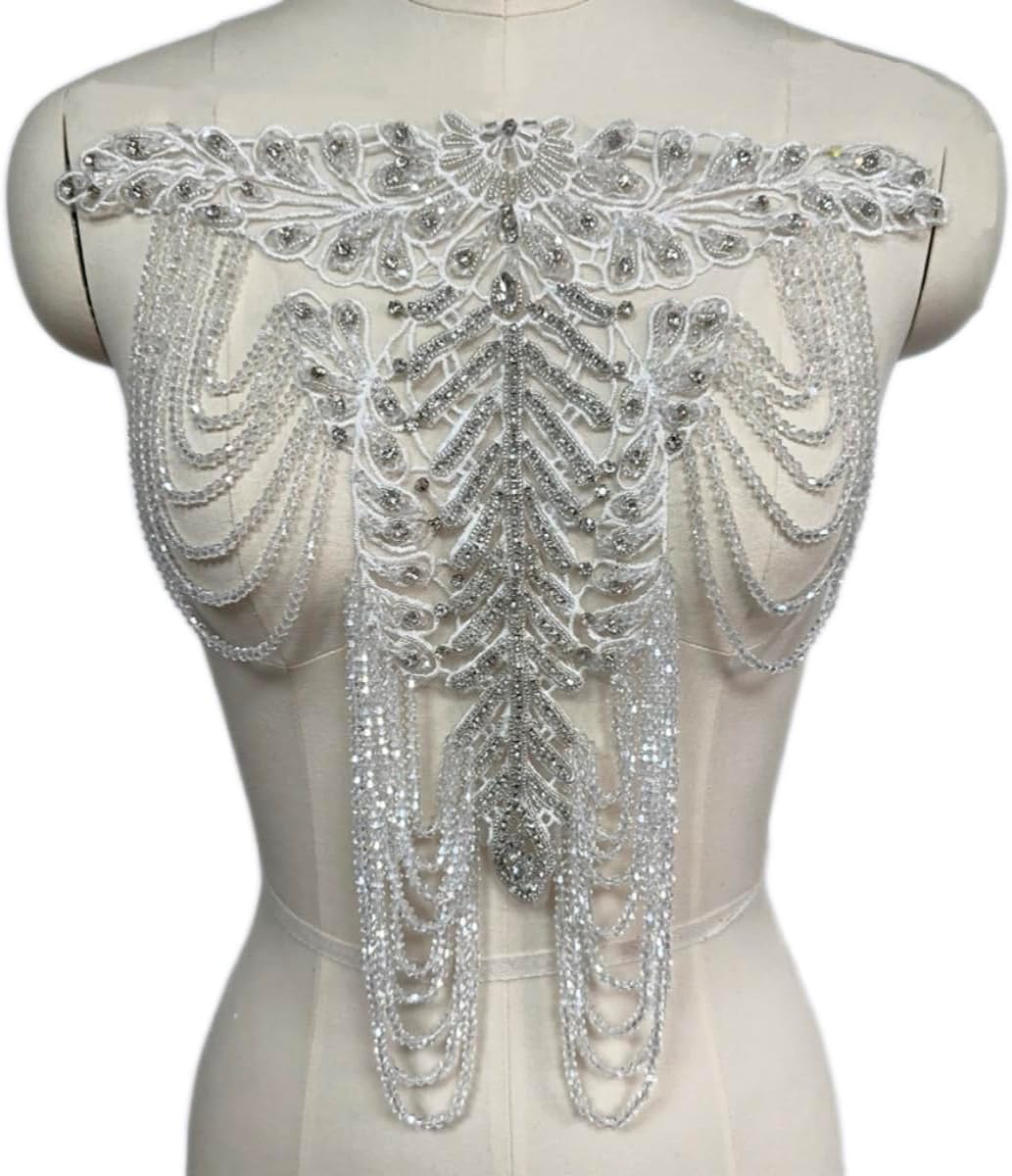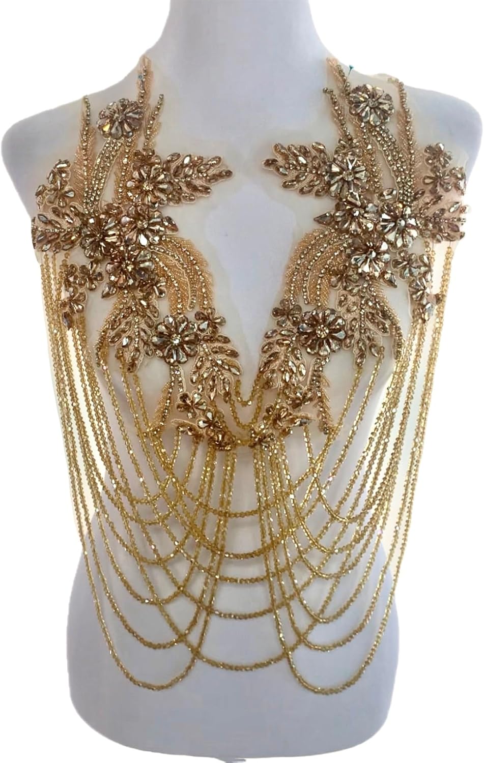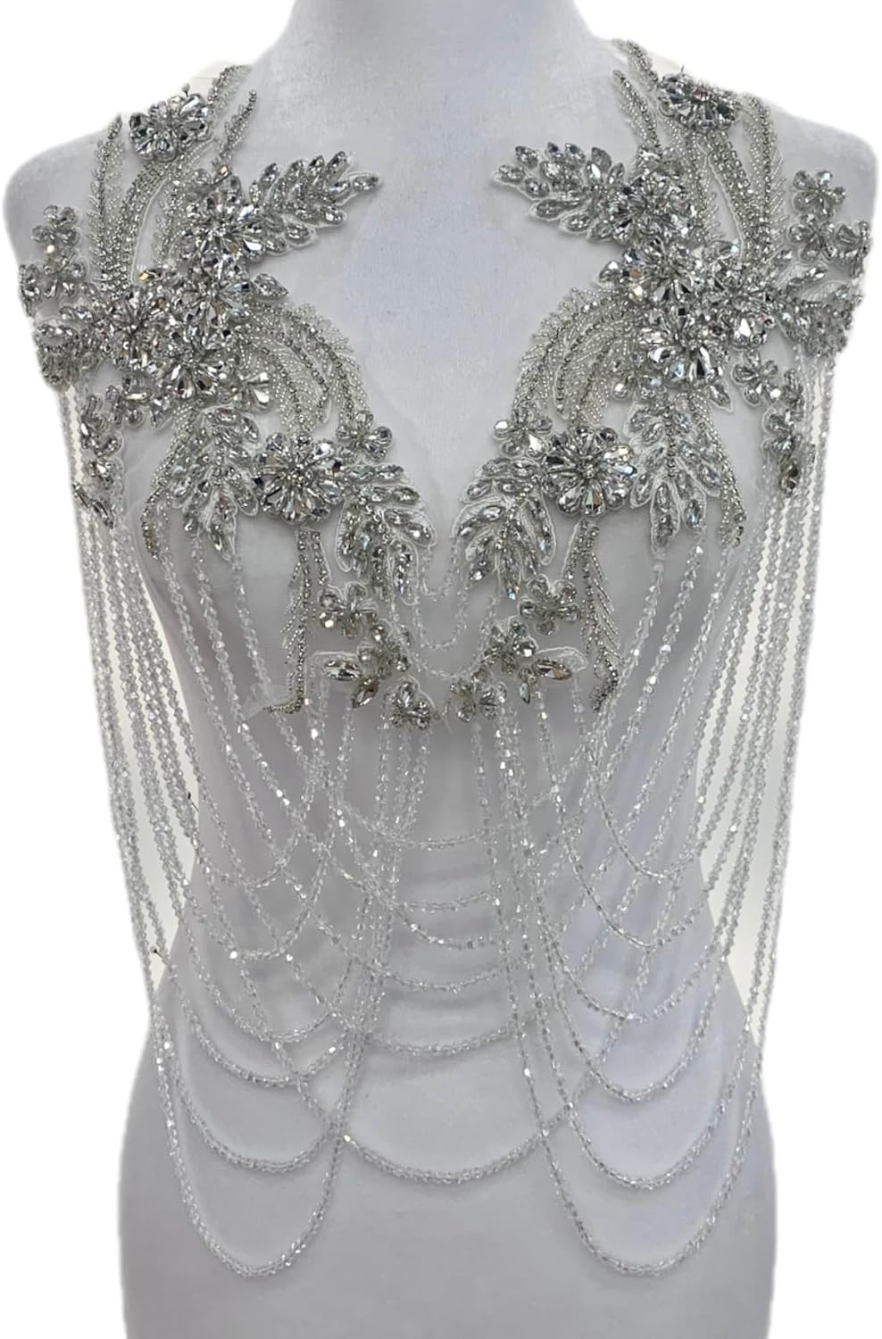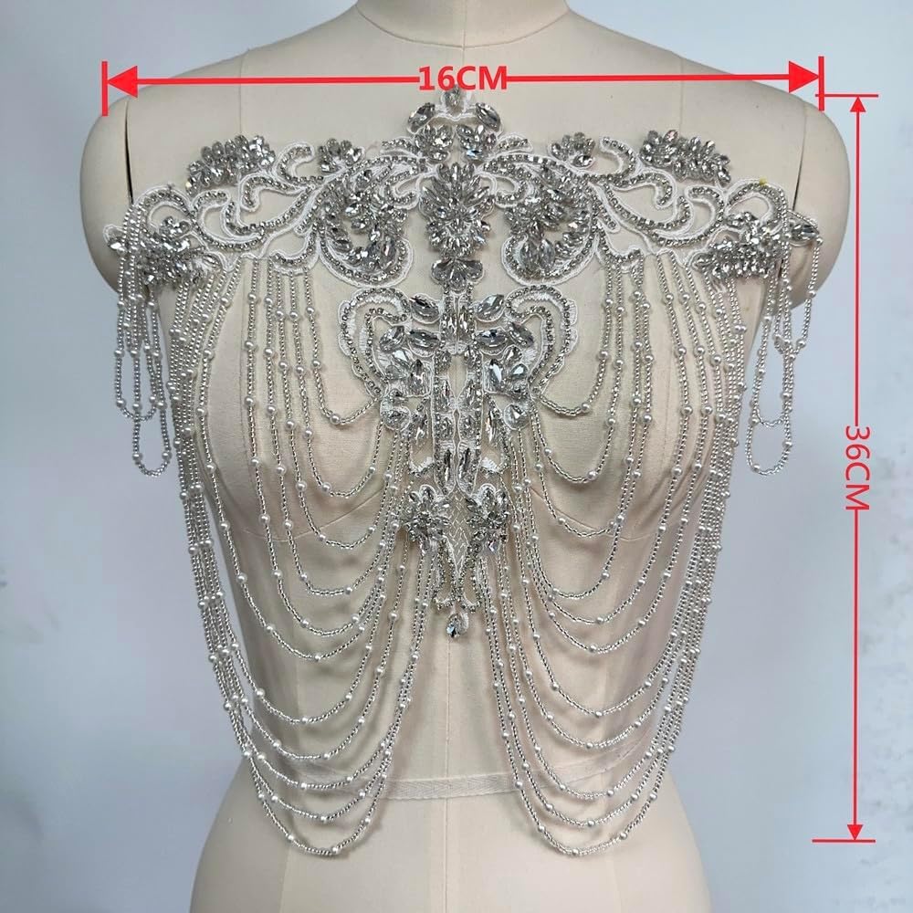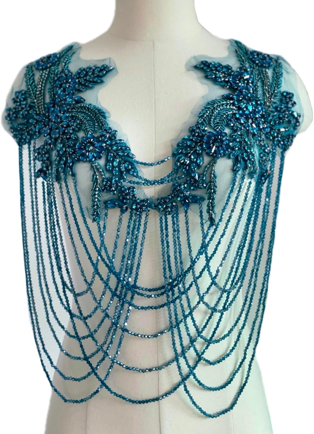 Handmade Tassel Rhinestone Applique,Rhinestone Bodice Applique, Rhinestone Applique for Dress Wedding Clothing Accessory Applique、Patch (Pink)