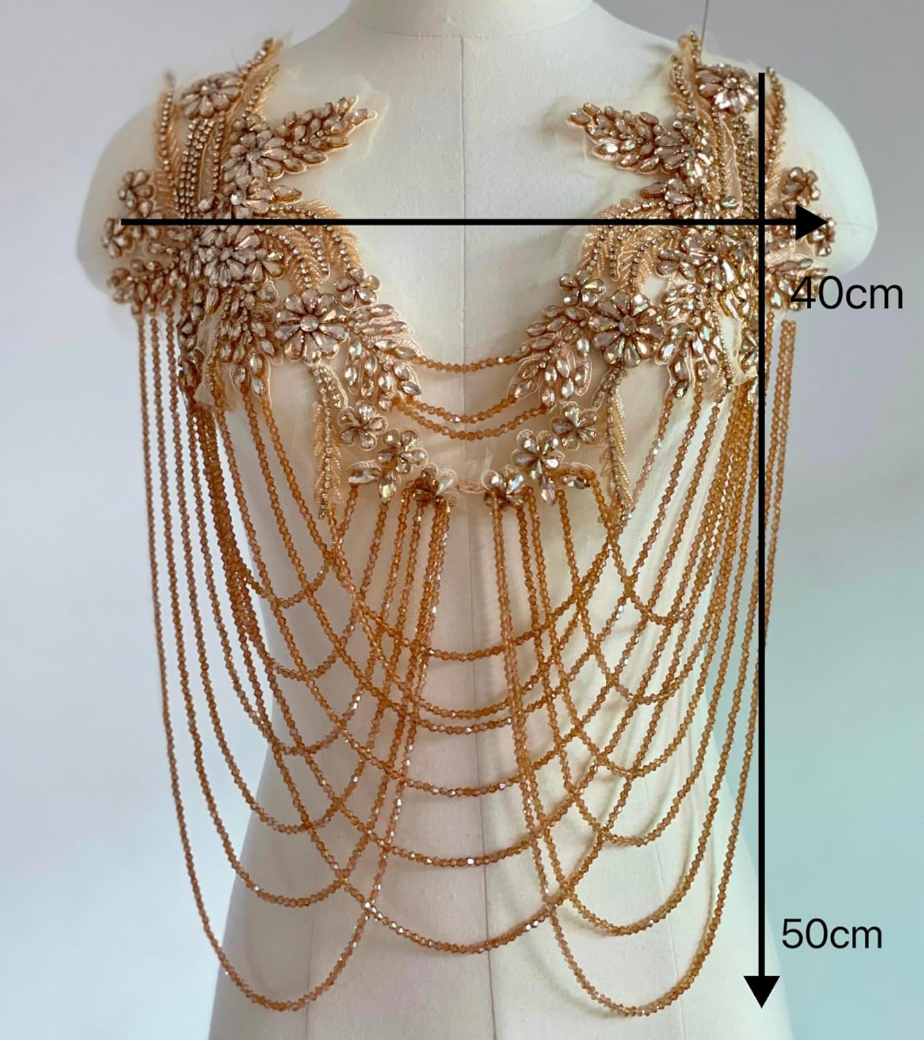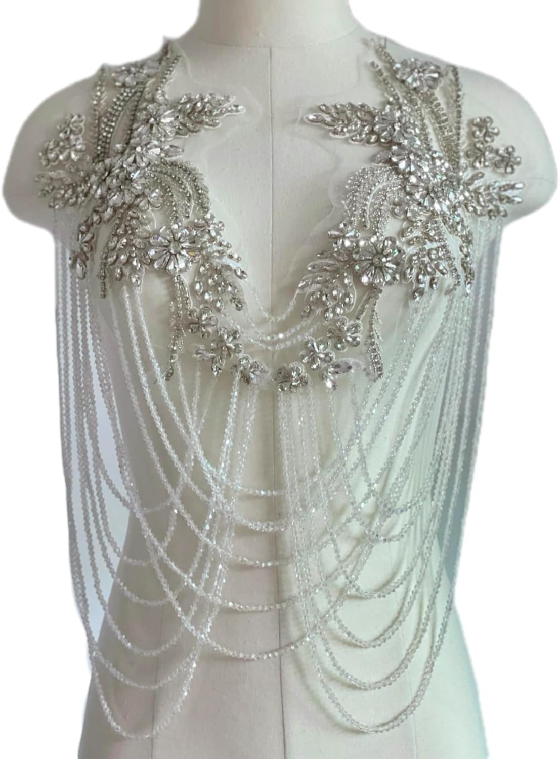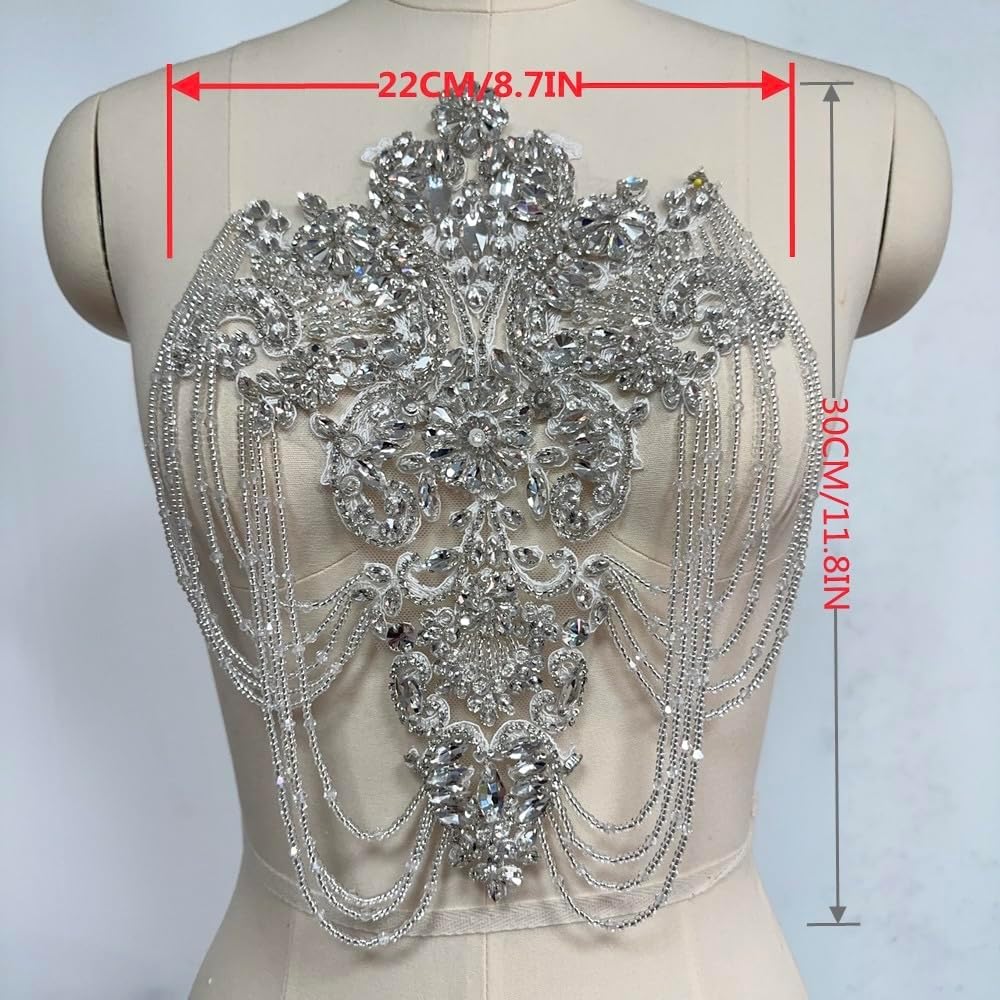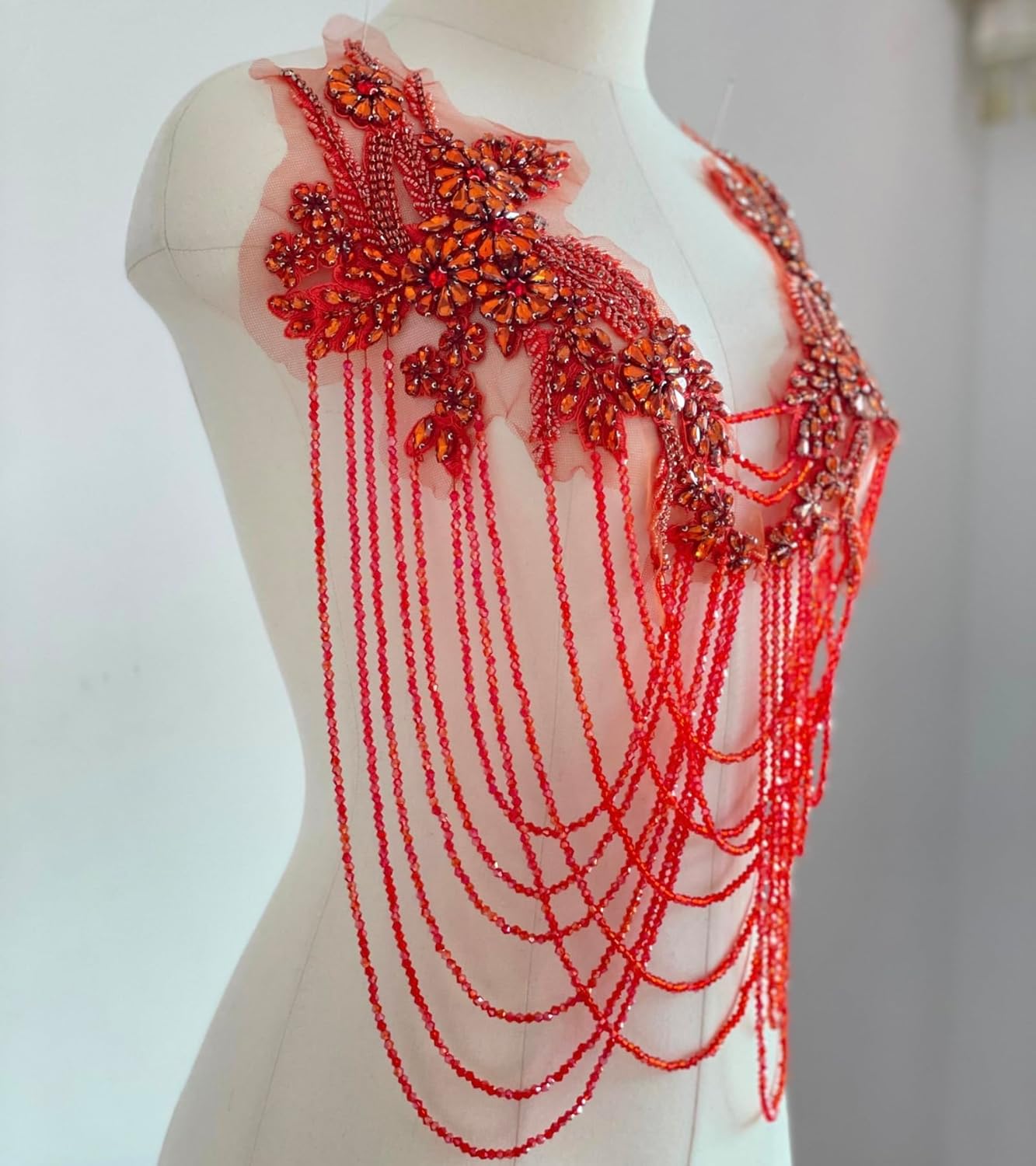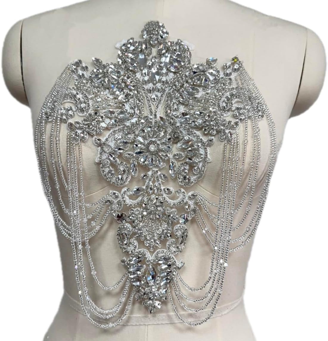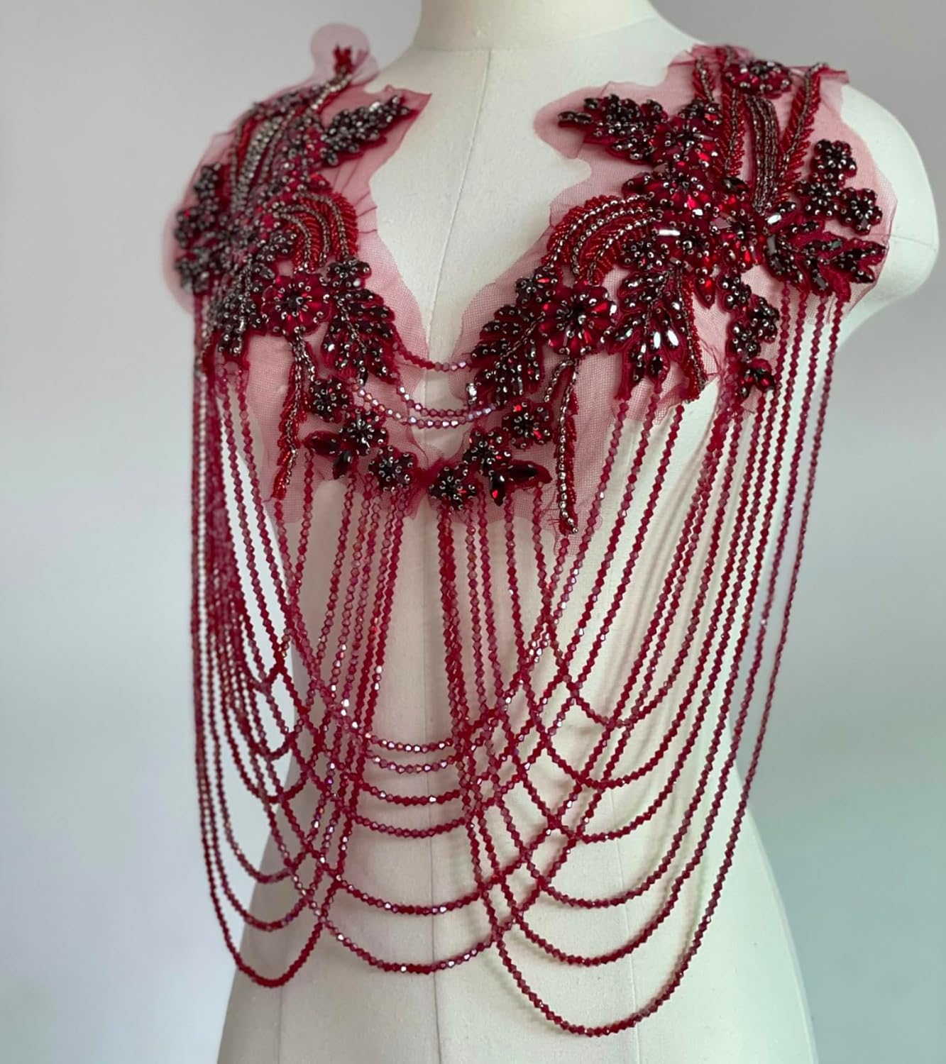 Handmade Tassel Rhinestone Applique,Rhinestone Bodice Applique, Rhinestone Applique for Dress Wedding Clothing Accessory Applique、Patch (Pink)