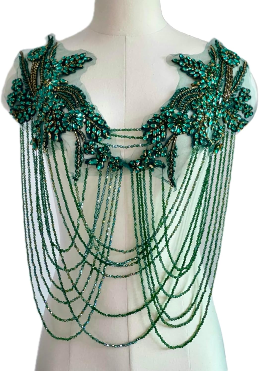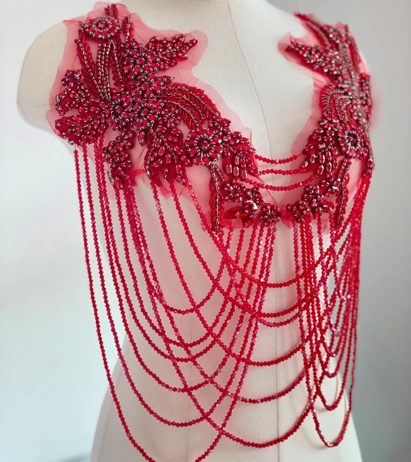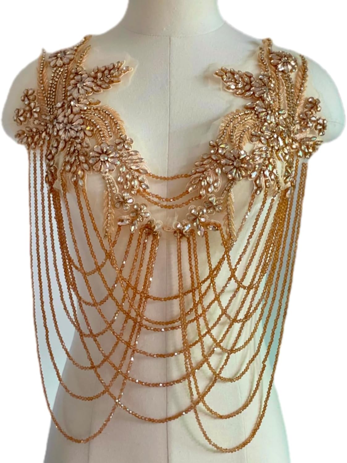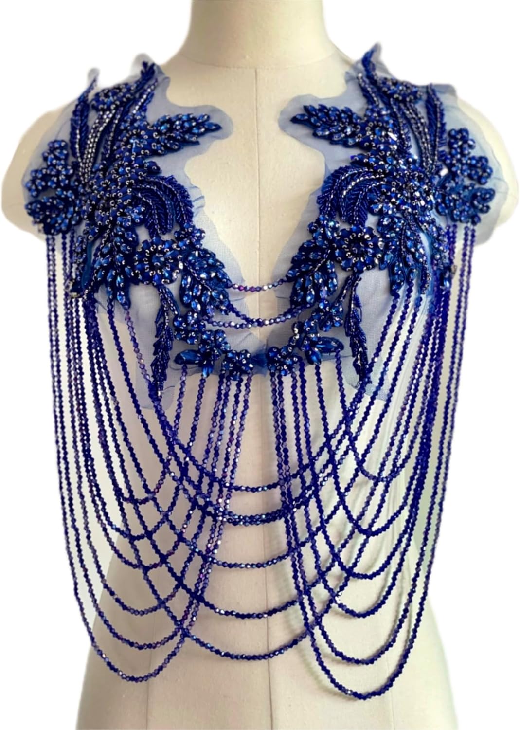 Handmade Tassel Rhinestone Applique,Rhinestone Bodice Applique, Rhinestone Applique for Dress Wedding Clothing Accessory Applique、Patch (Pink)