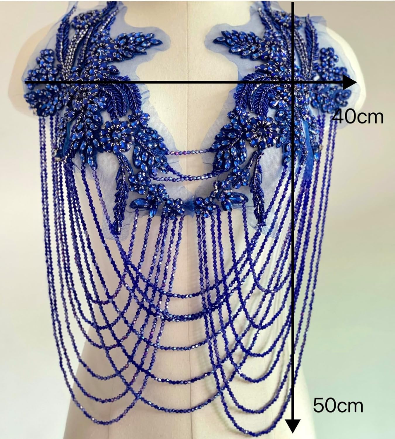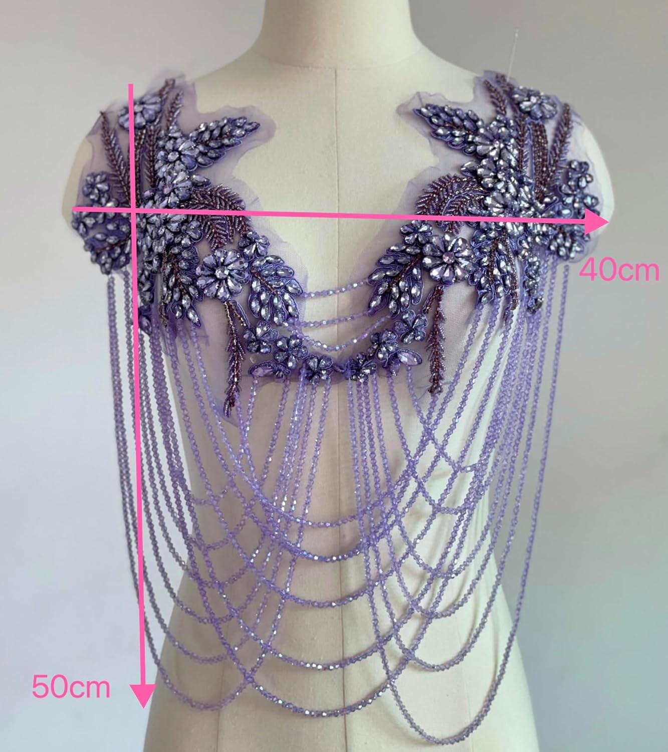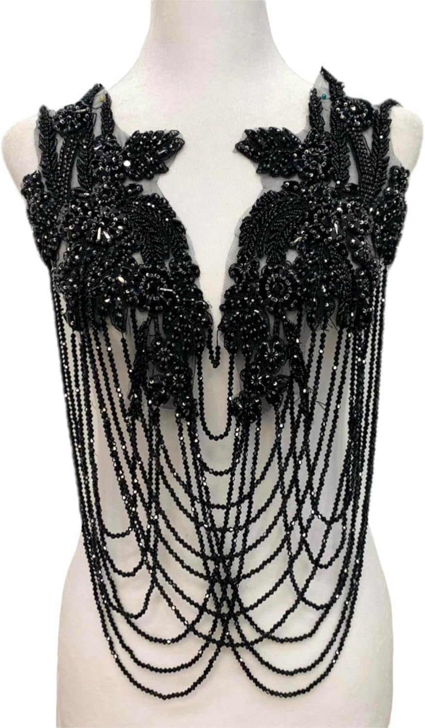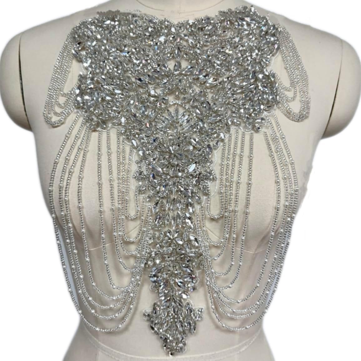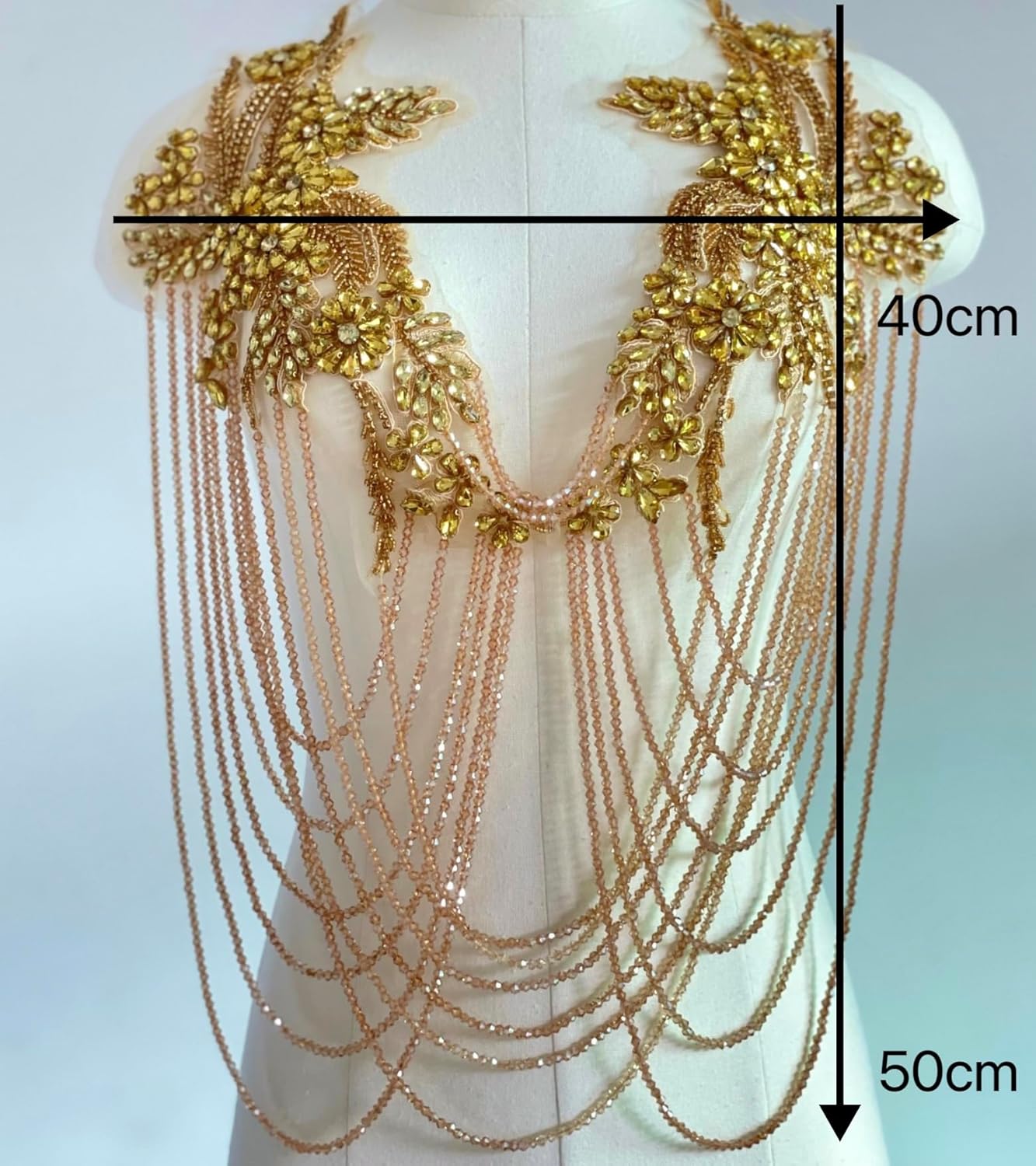 Handmade Tassel Rhinestone Applique,Rhinestone Bodice Applique, Rhinestone Applique for Dress Wedding Clothing Accessory Applique、Patch (Pink)