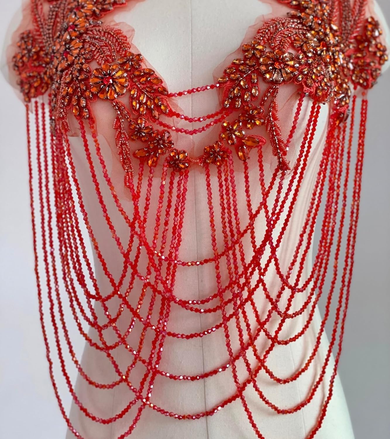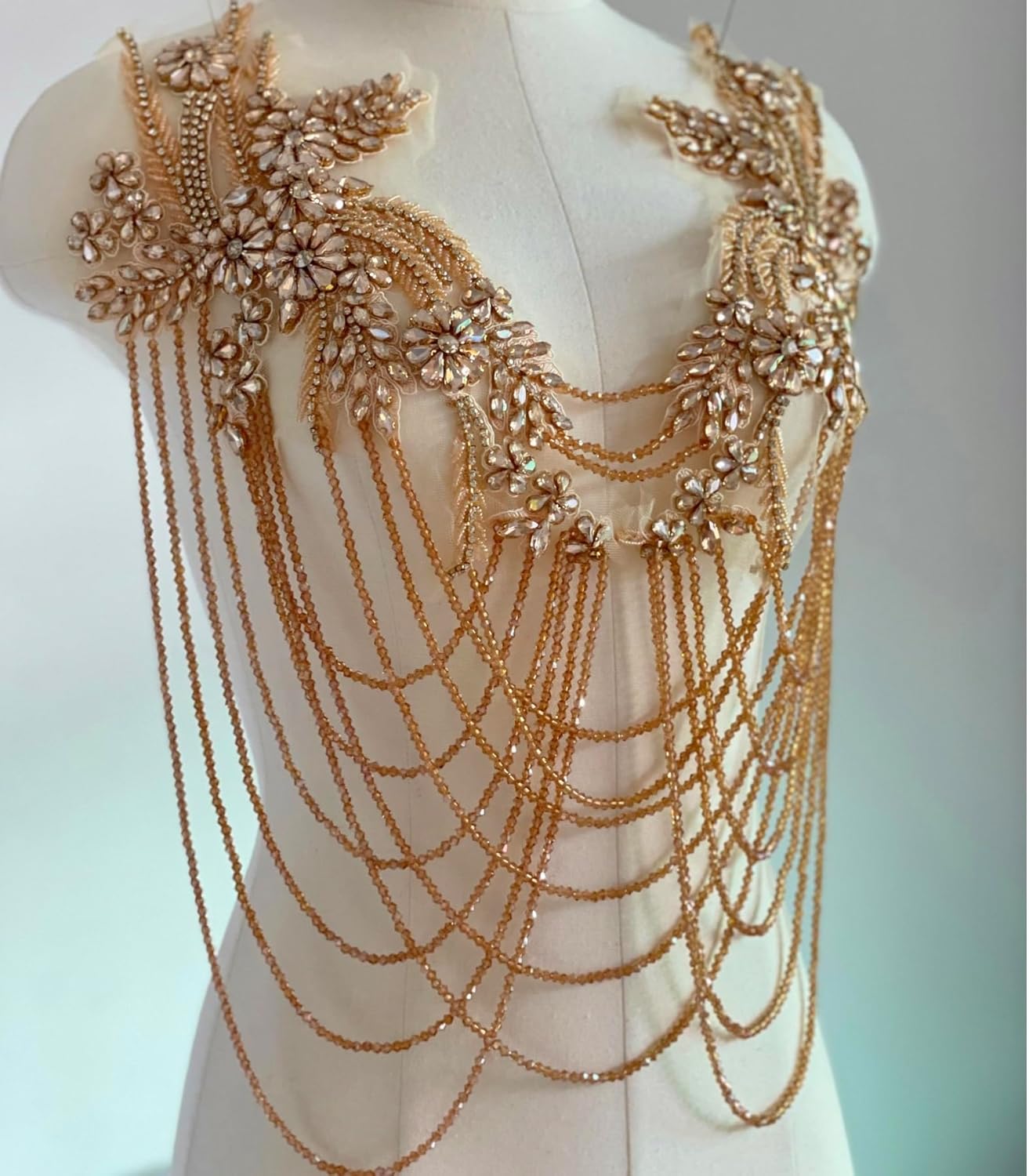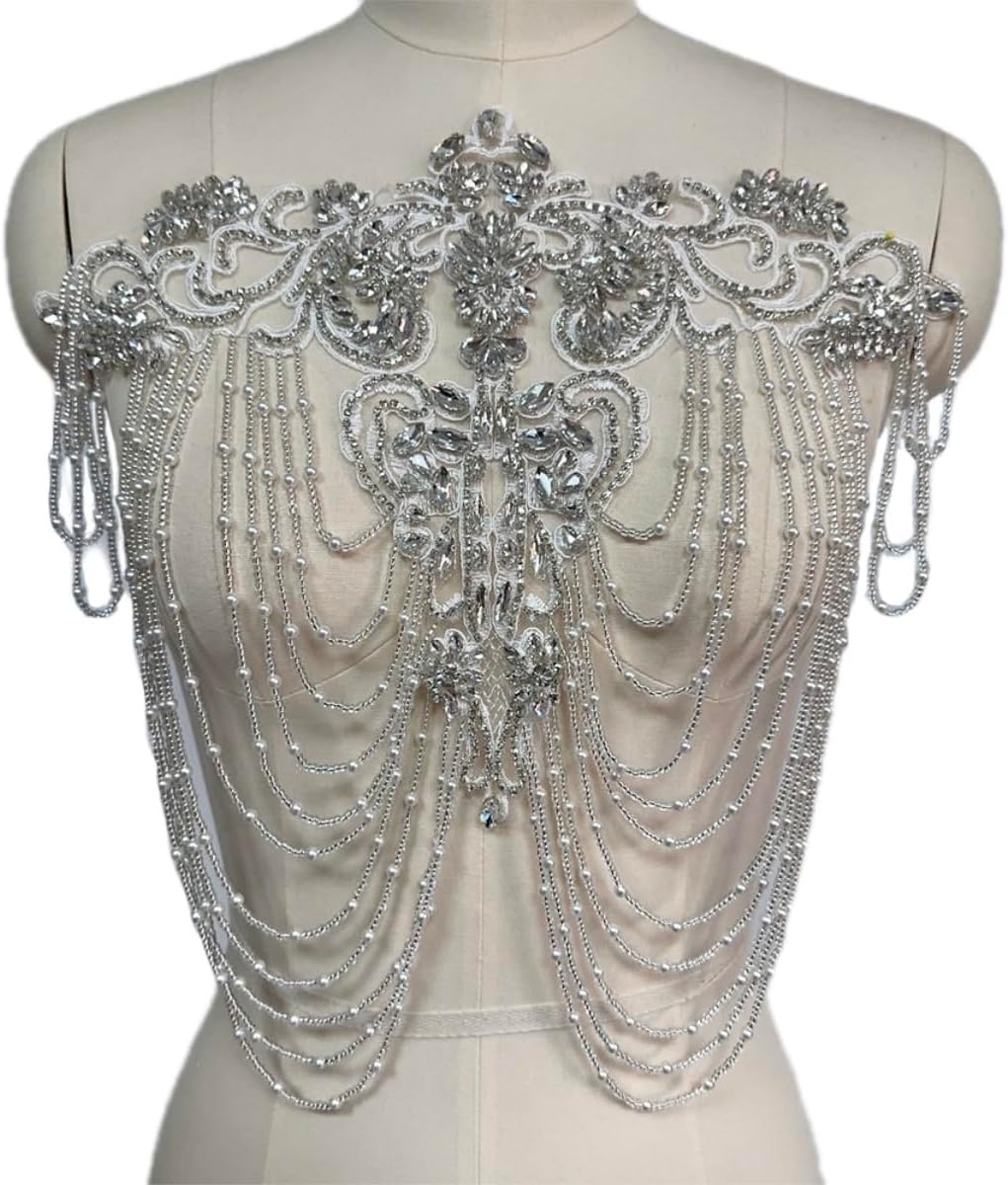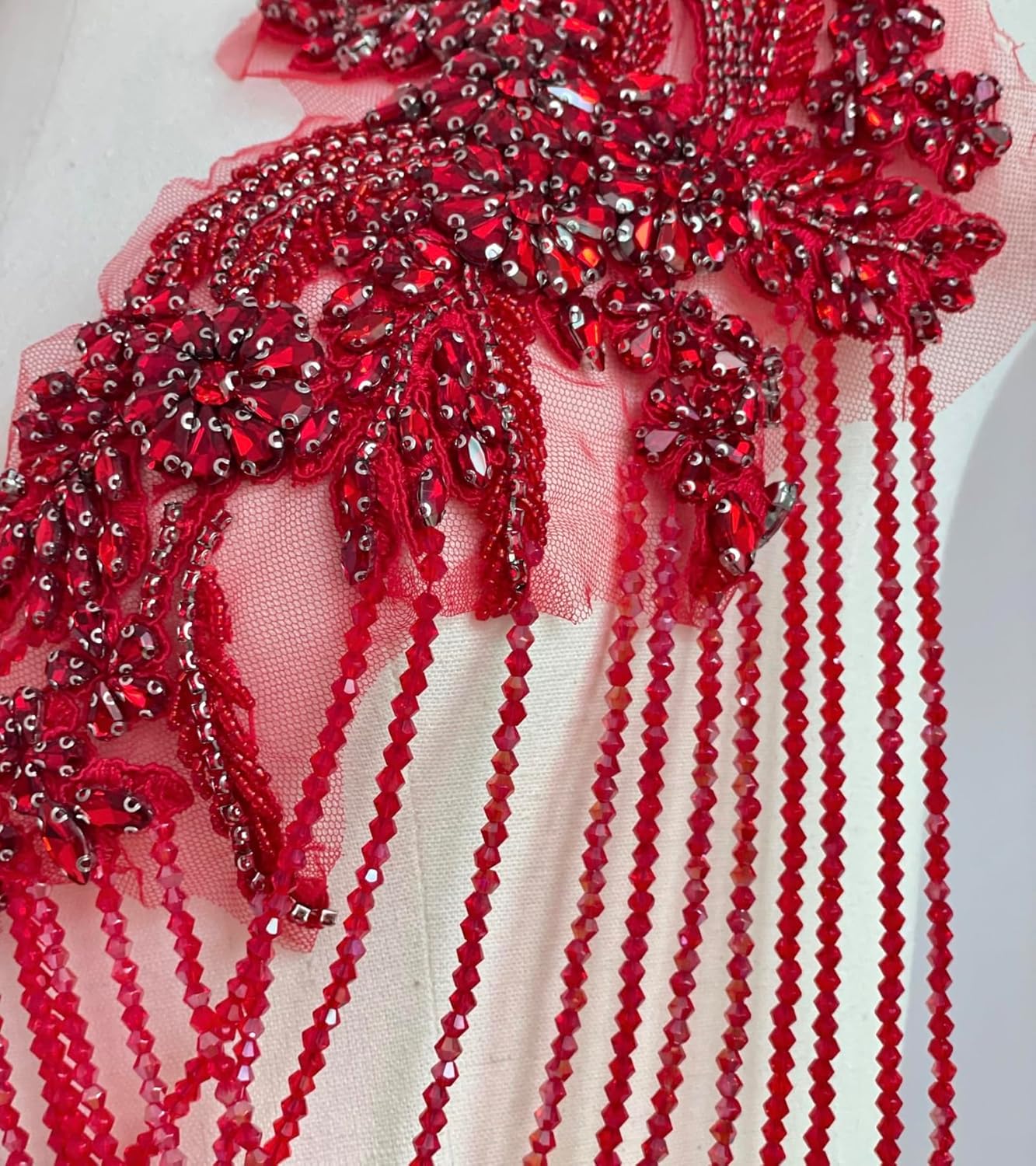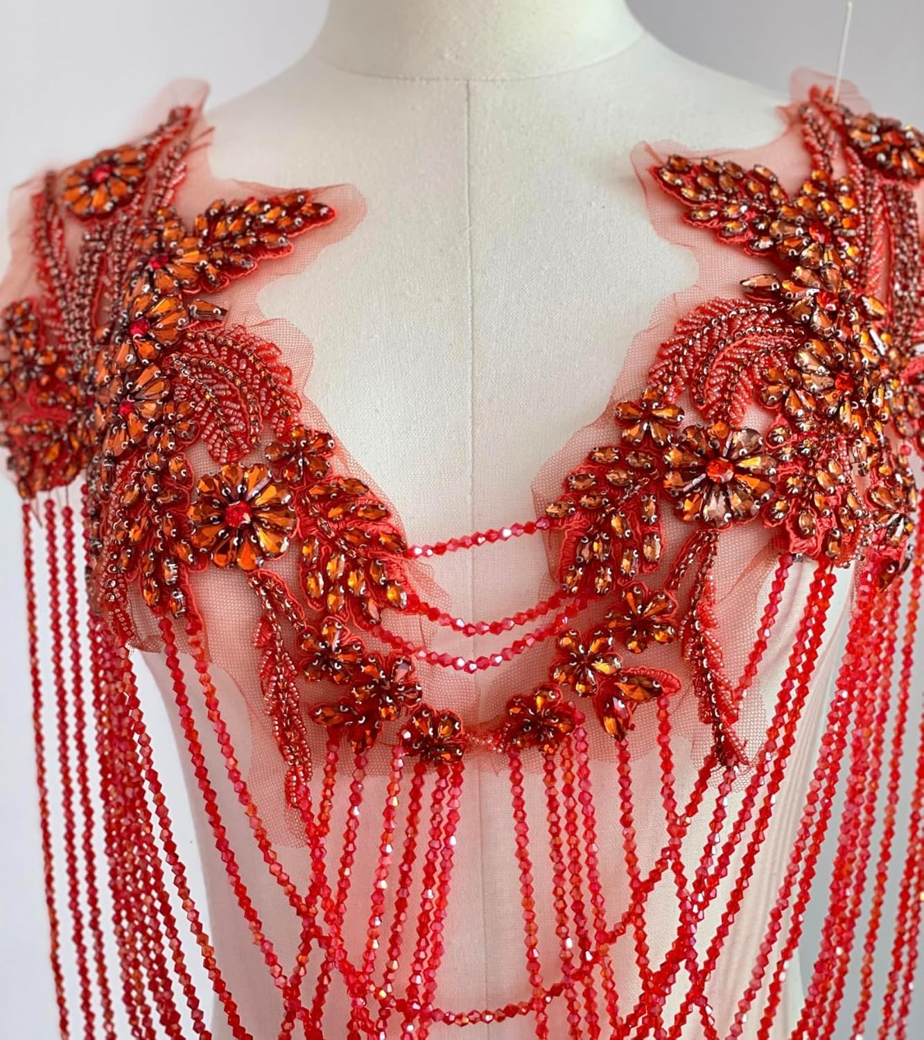 Handmade Tassel Rhinestone Applique,Rhinestone Bodice Applique, Rhinestone Applique for Dress Wedding Clothing Accessory Applique、Patch (Pink)